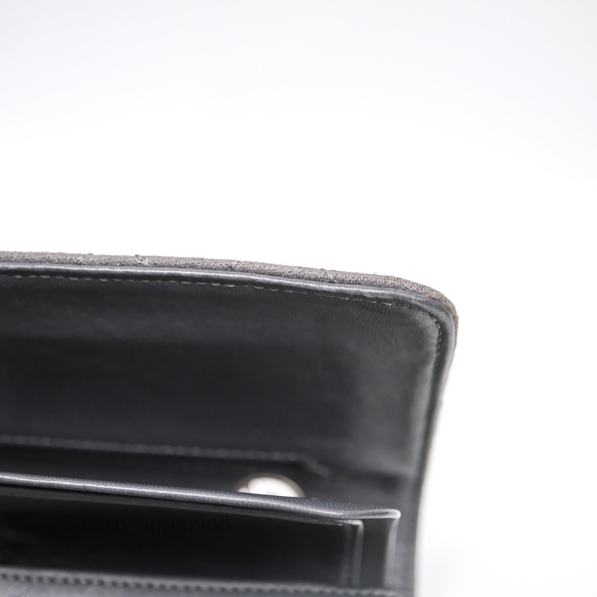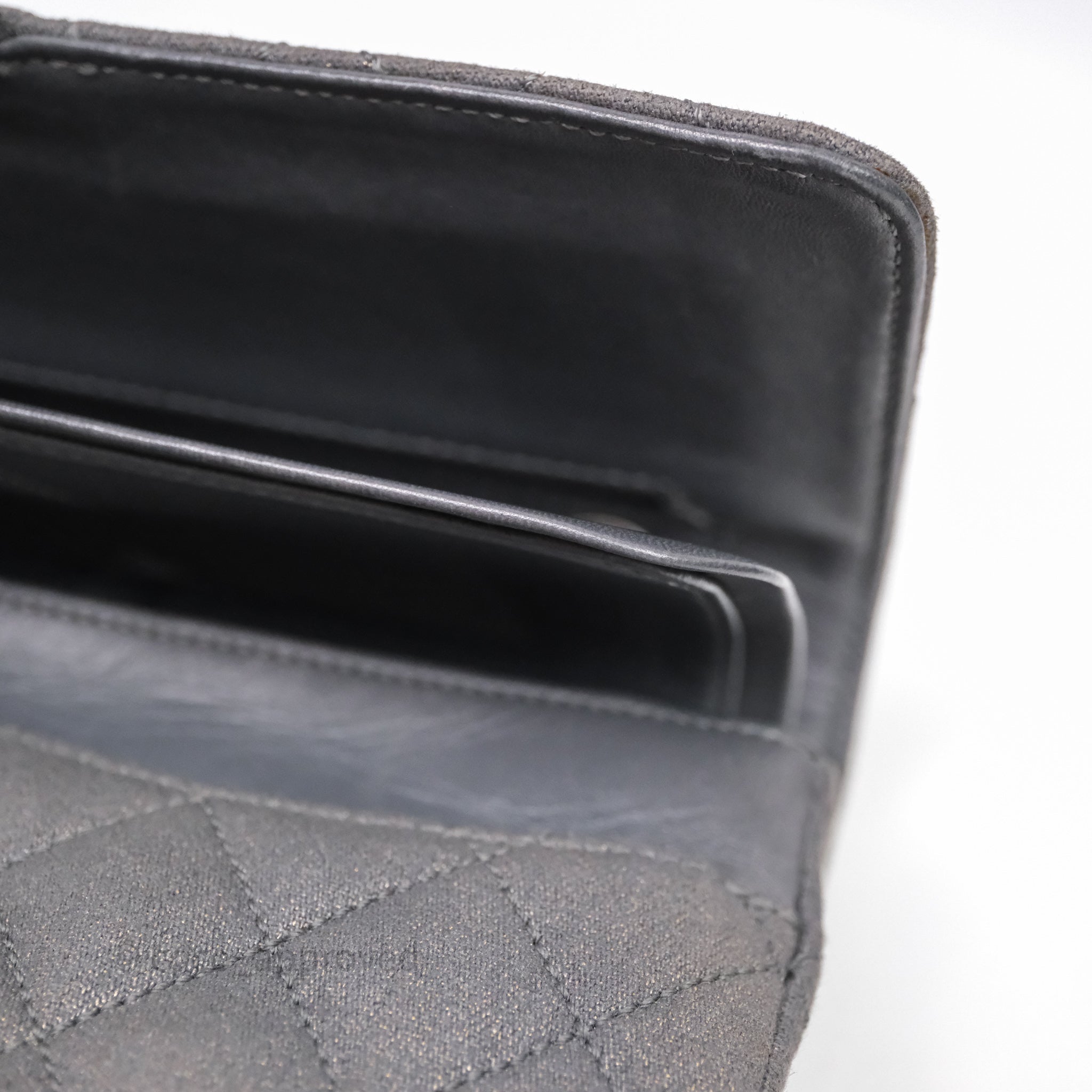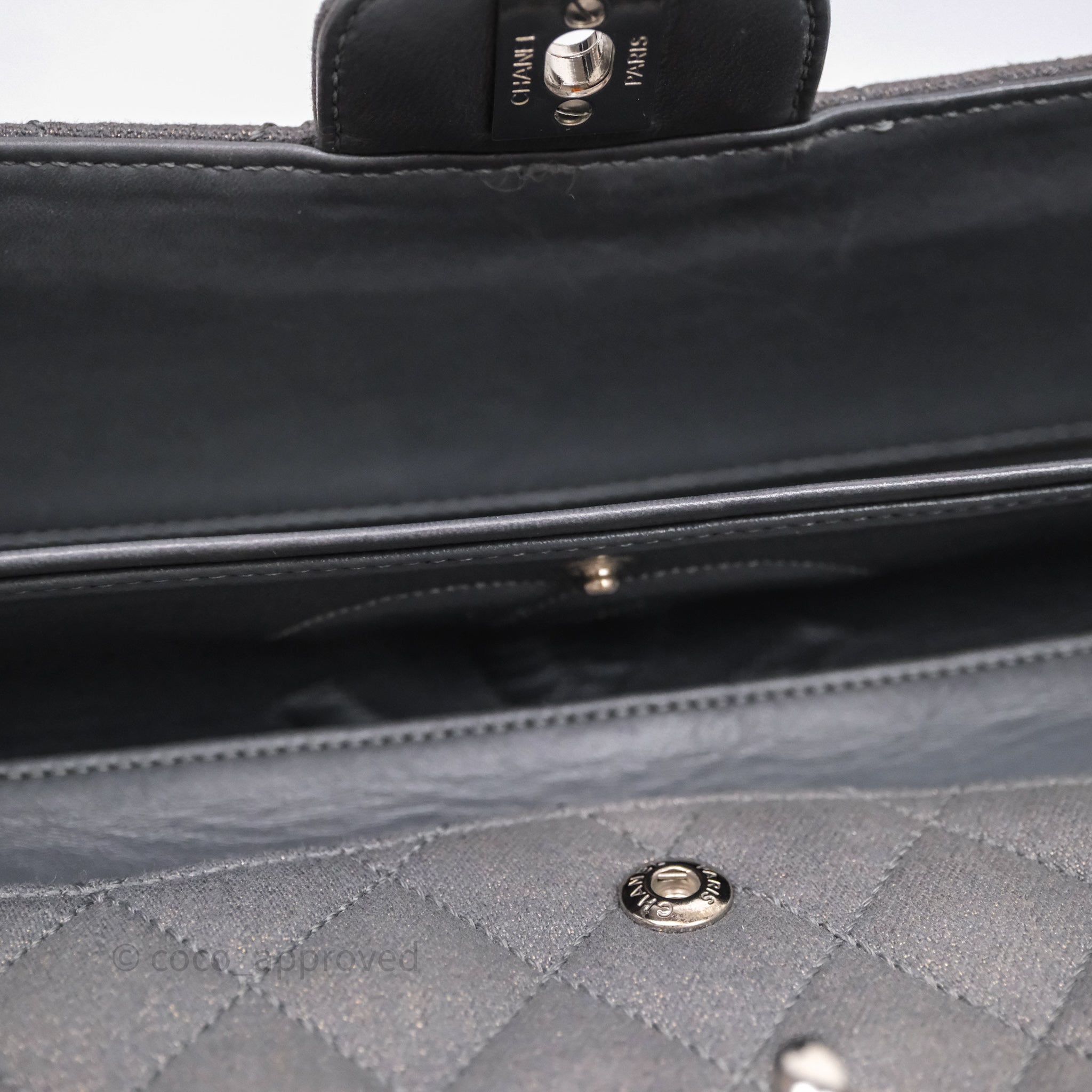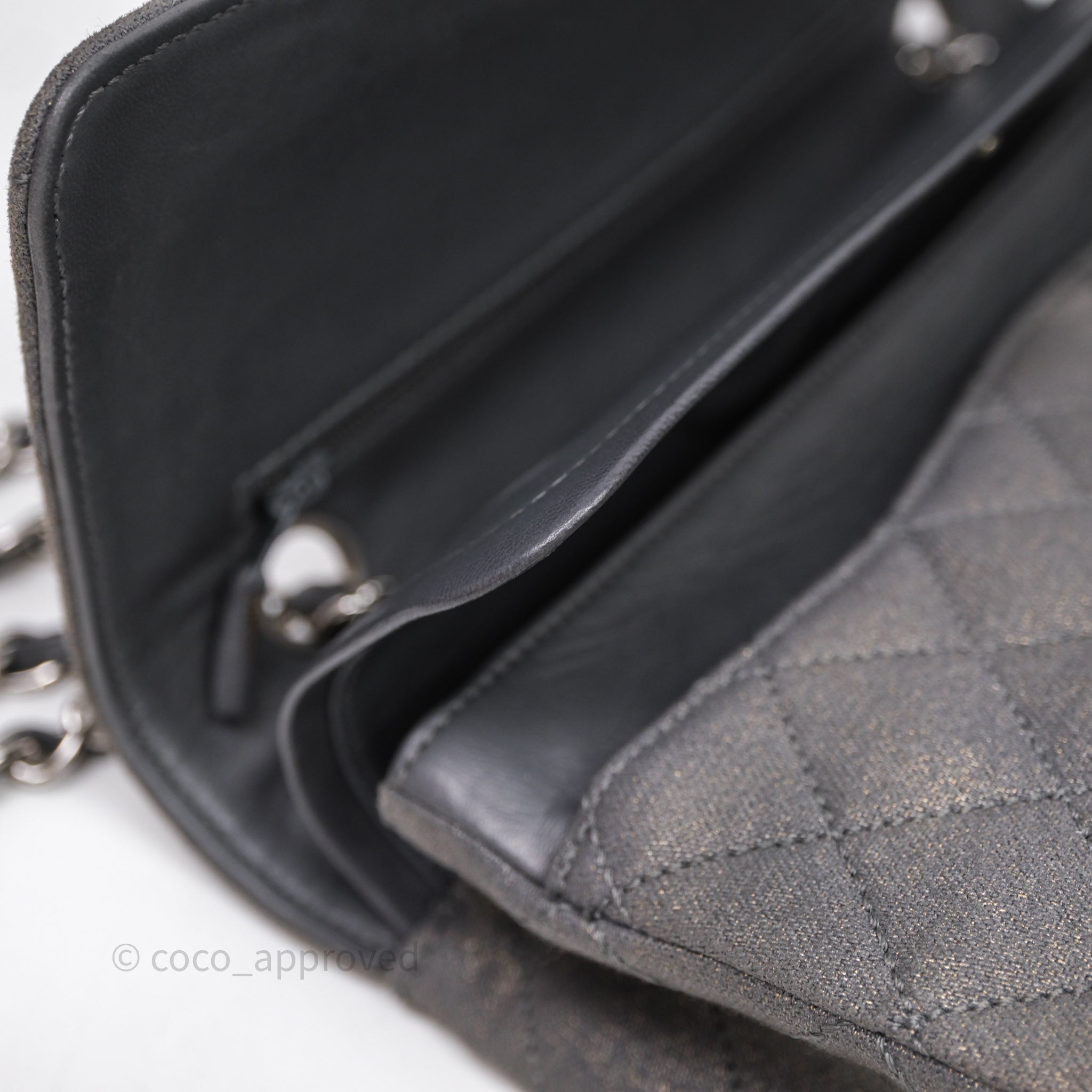 Chanel Classic M/L Medium Flap Quilted Iridescent Metallic Grey Canvas Silver Hardware