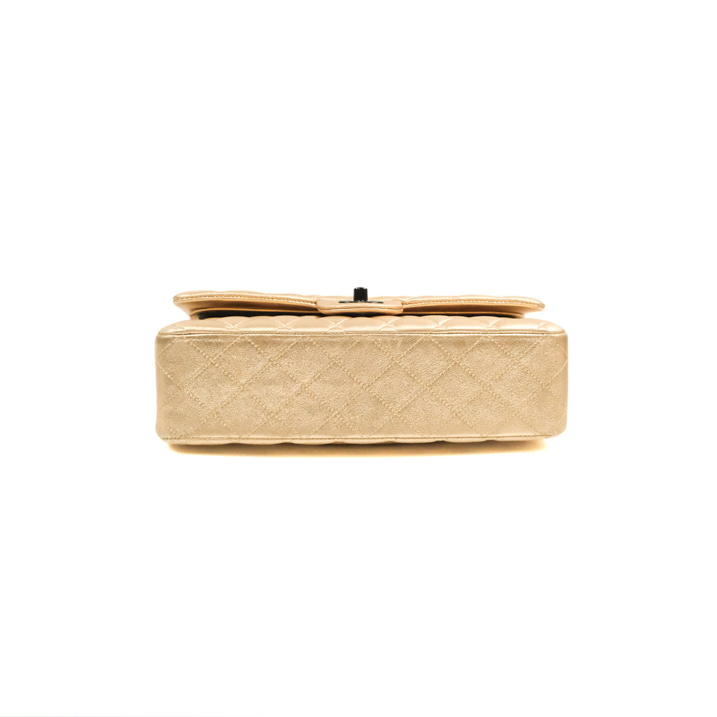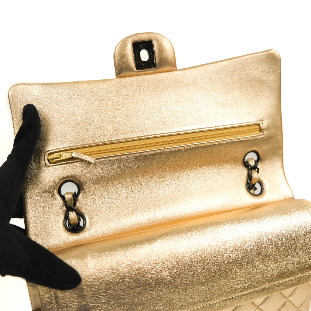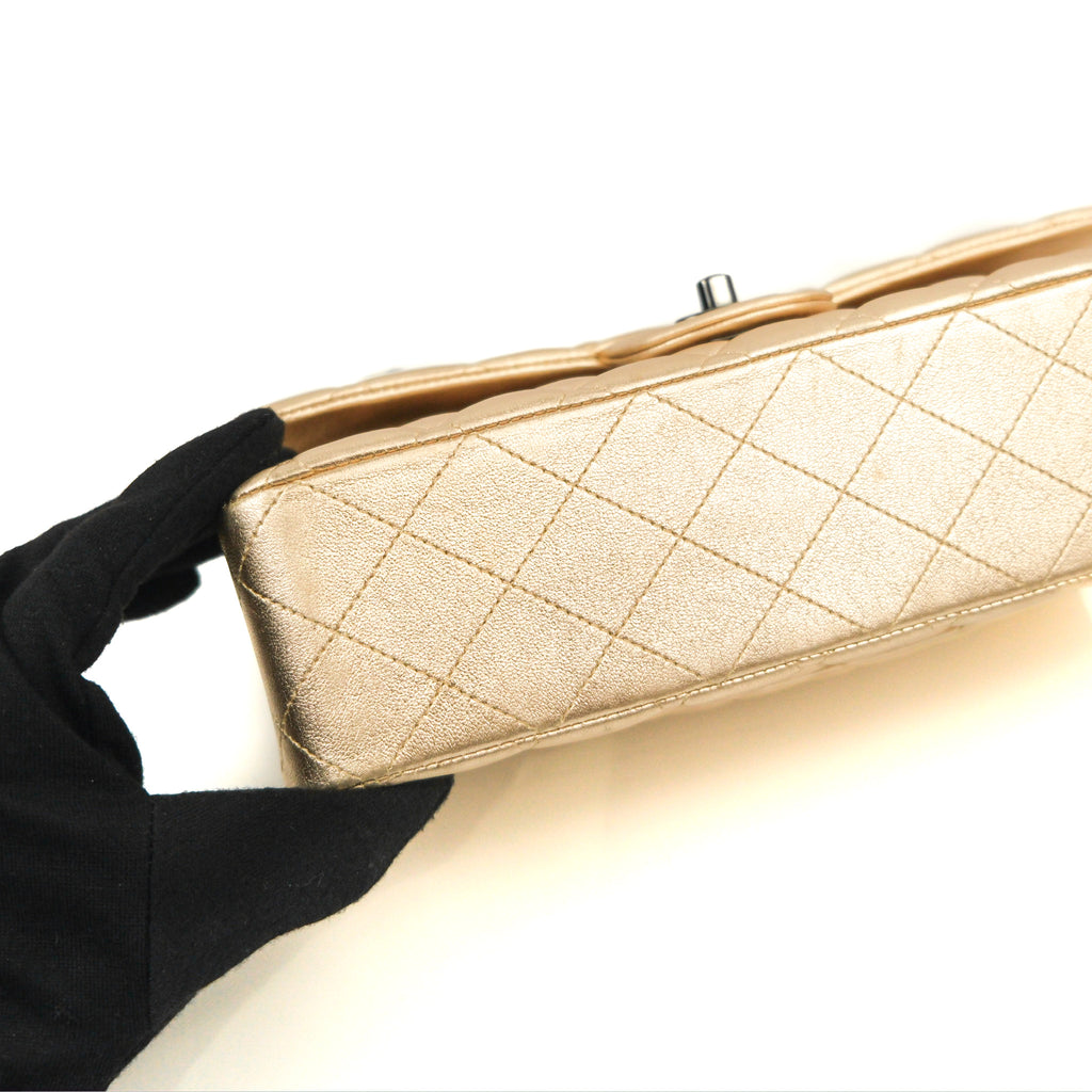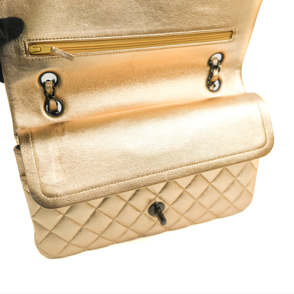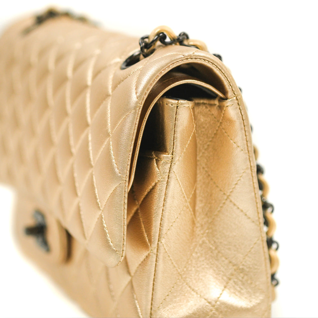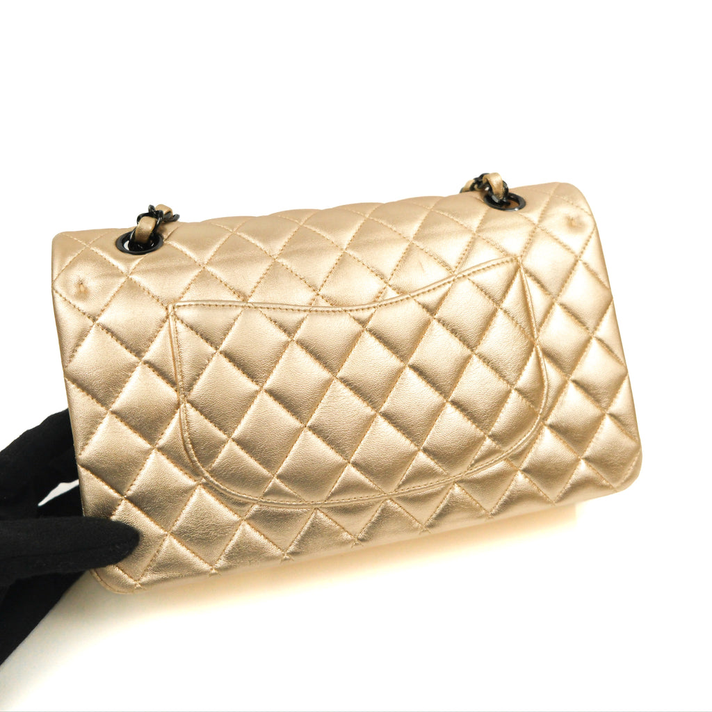 Chanel Classic M/L Medium Flap Quilted Metallic Gold Lambskin Gun Metal