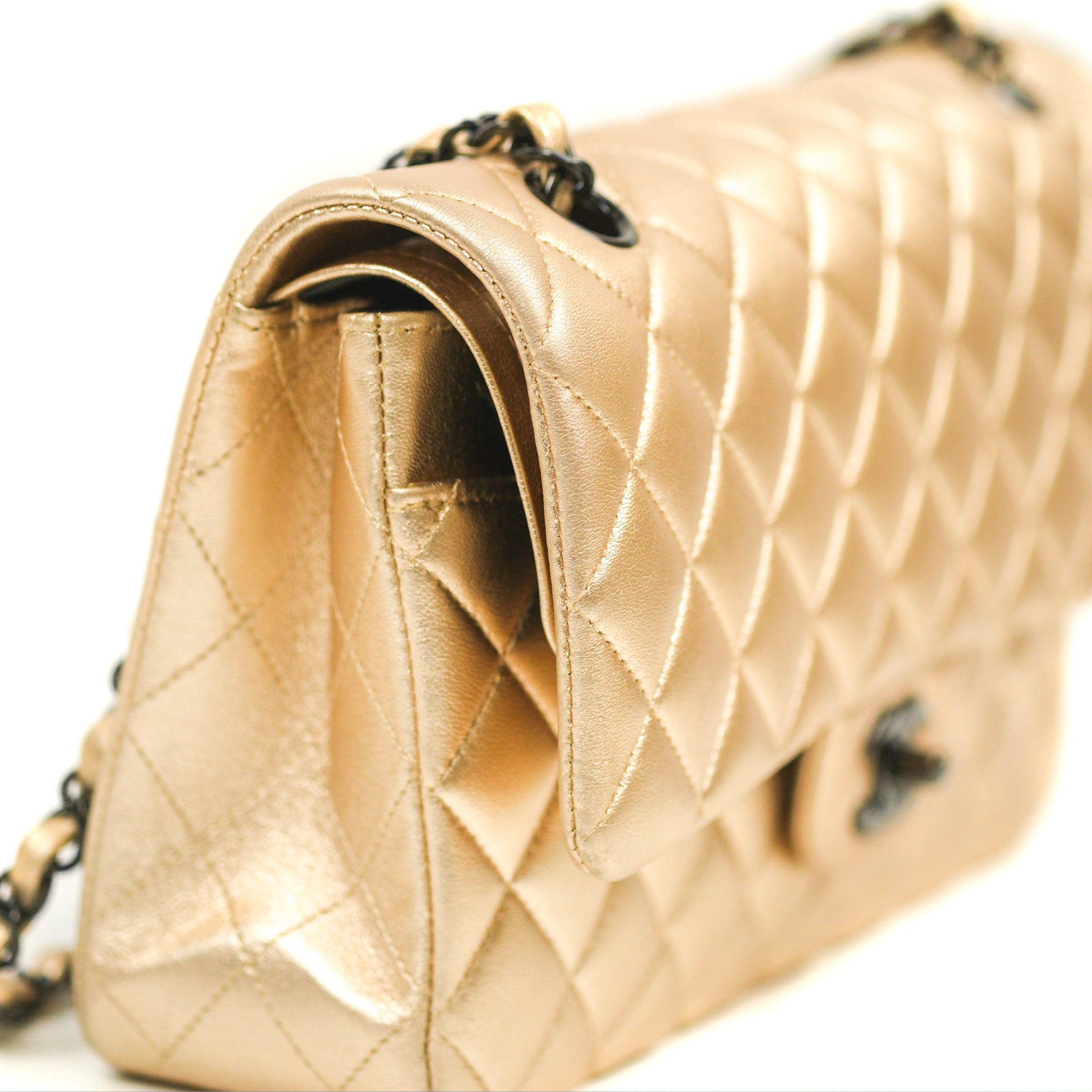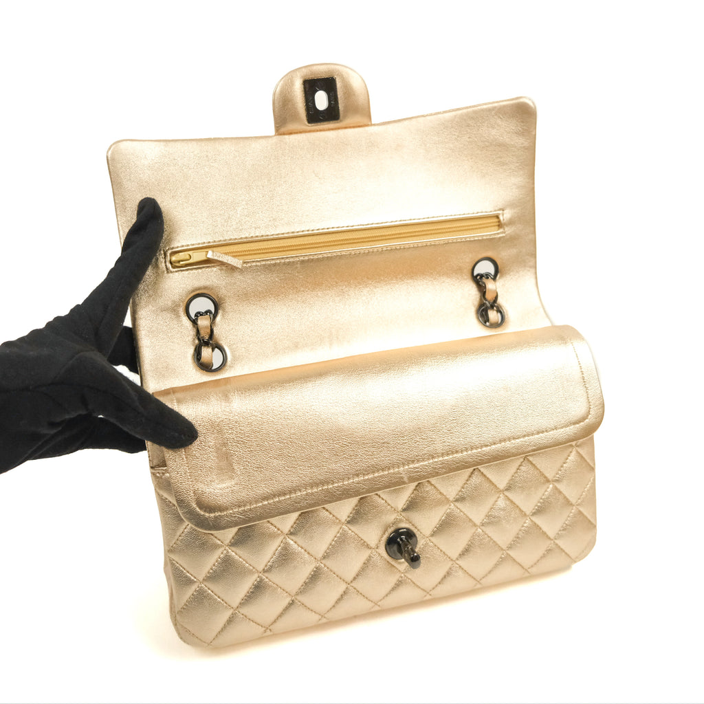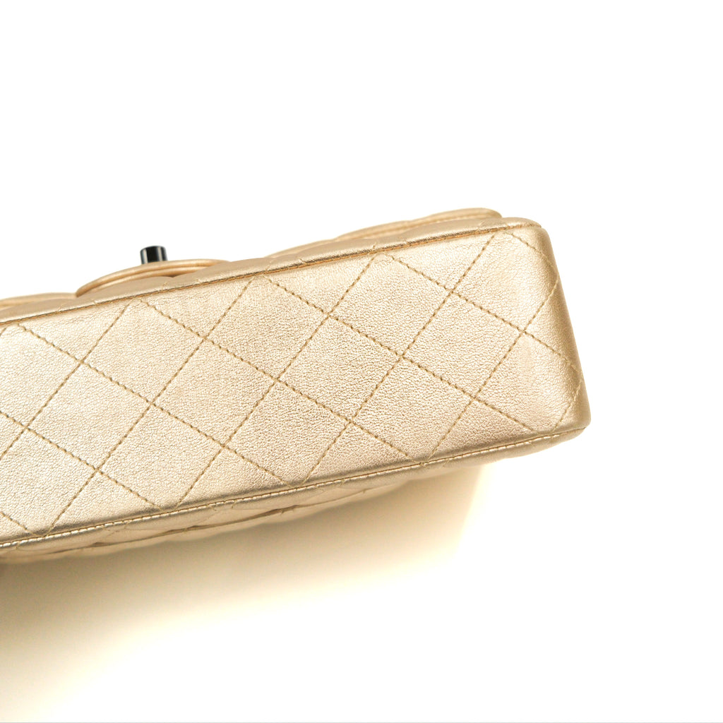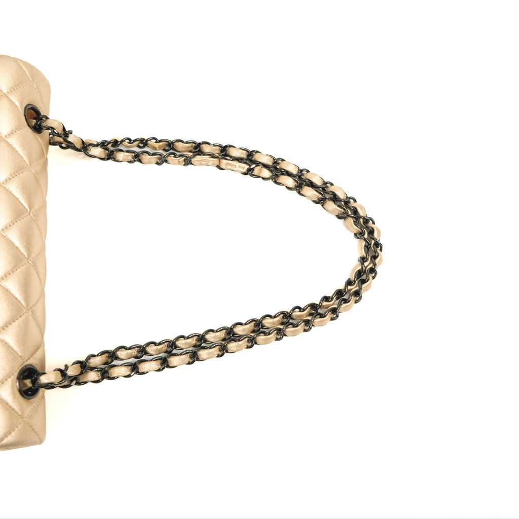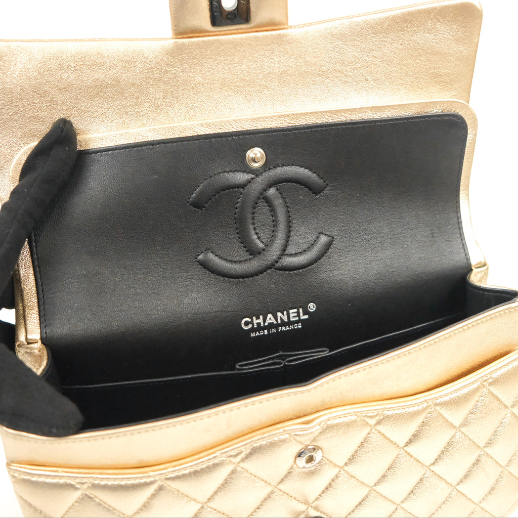 Chanel Classic M/L Medium Flap Quilted Metallic Gold Lambskin Gun Metal