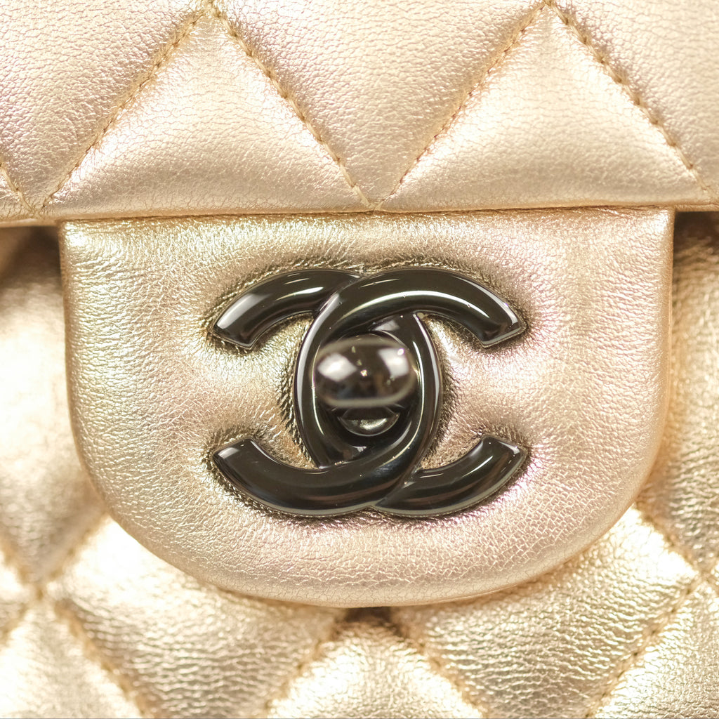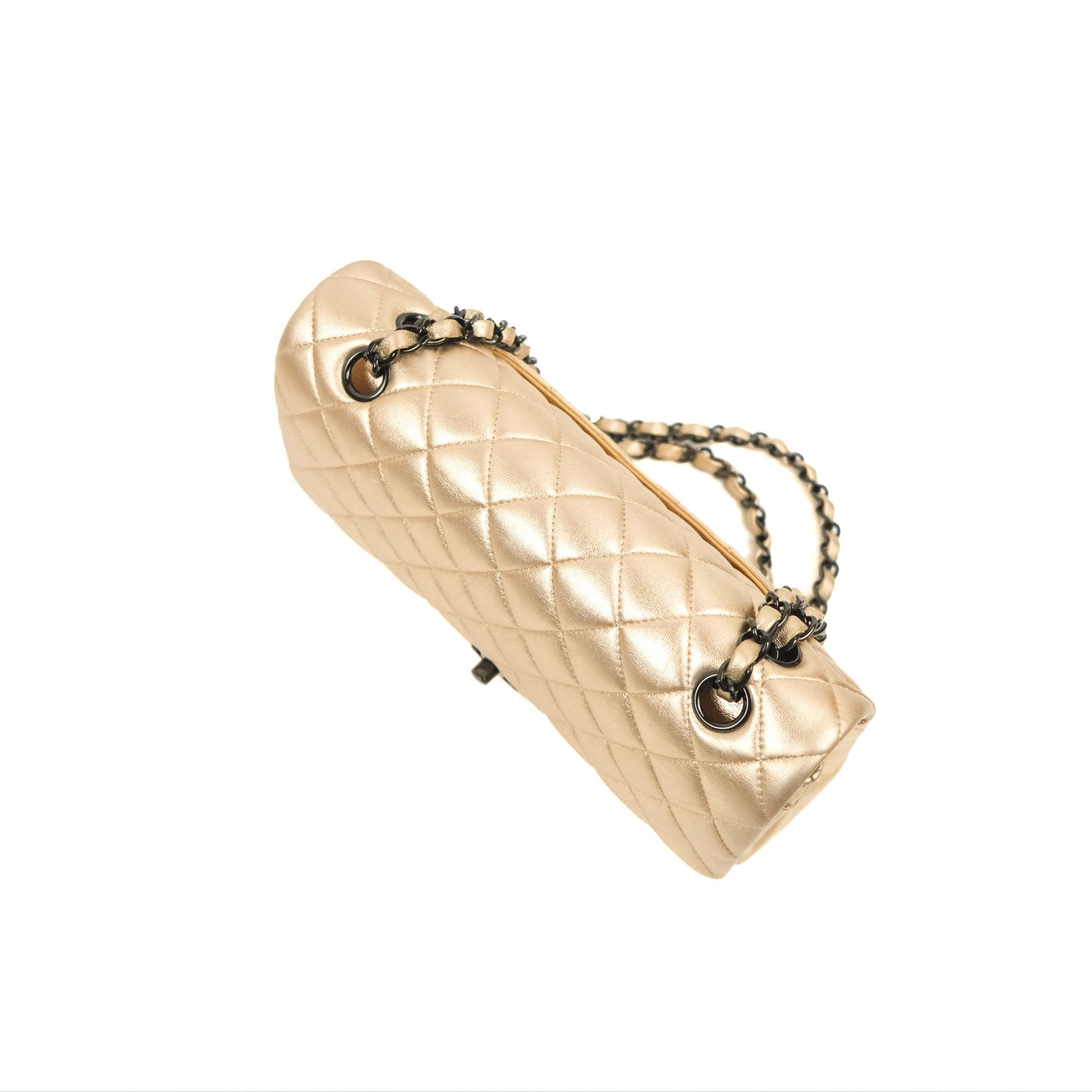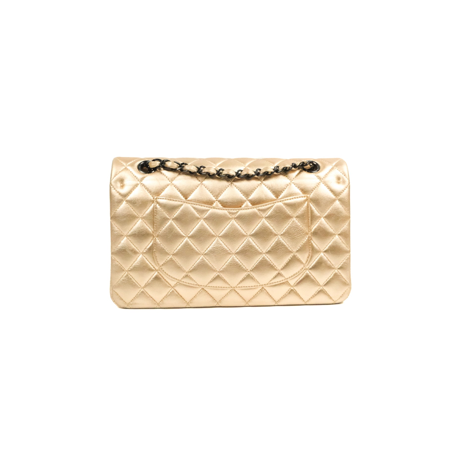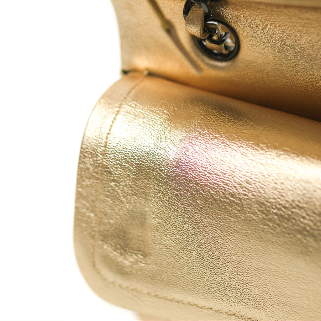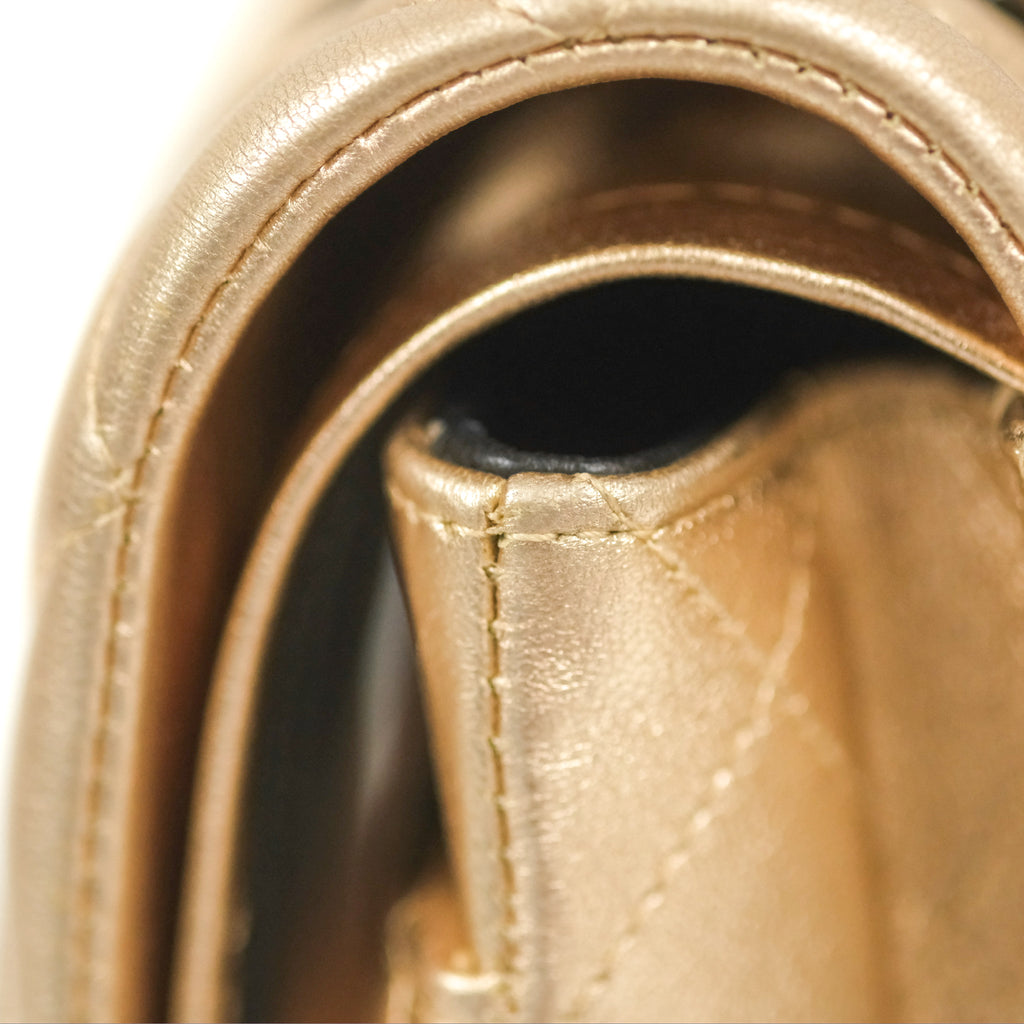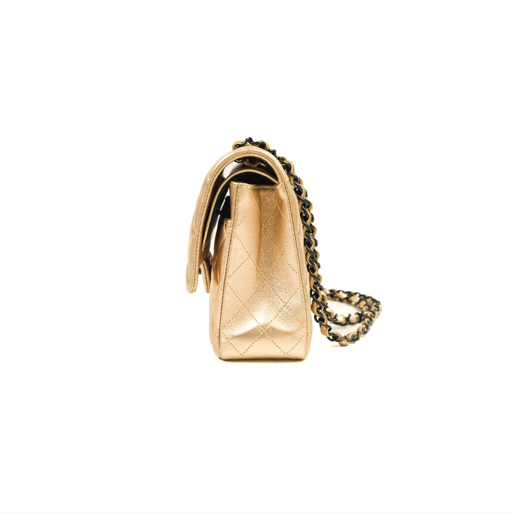Chanel Classic M/L Medium Flap Quilted Metallic Gold Lambskin Gun Metal