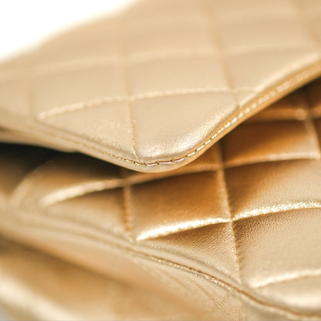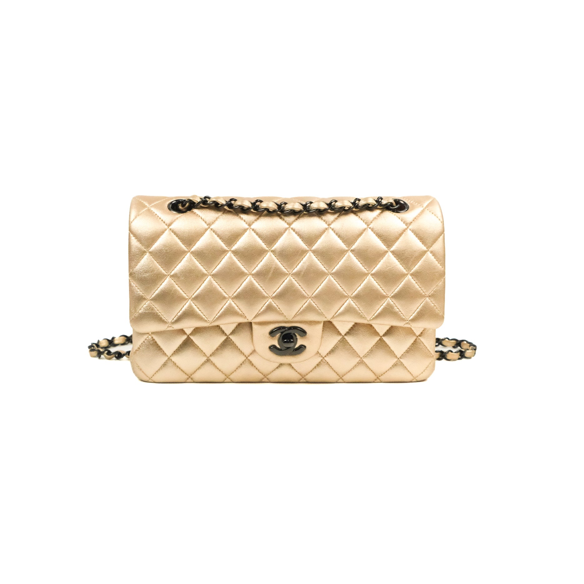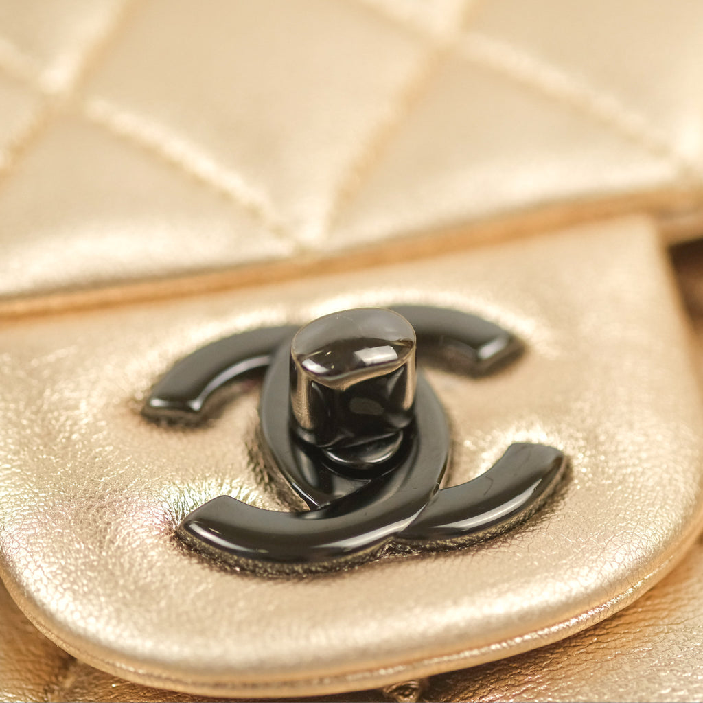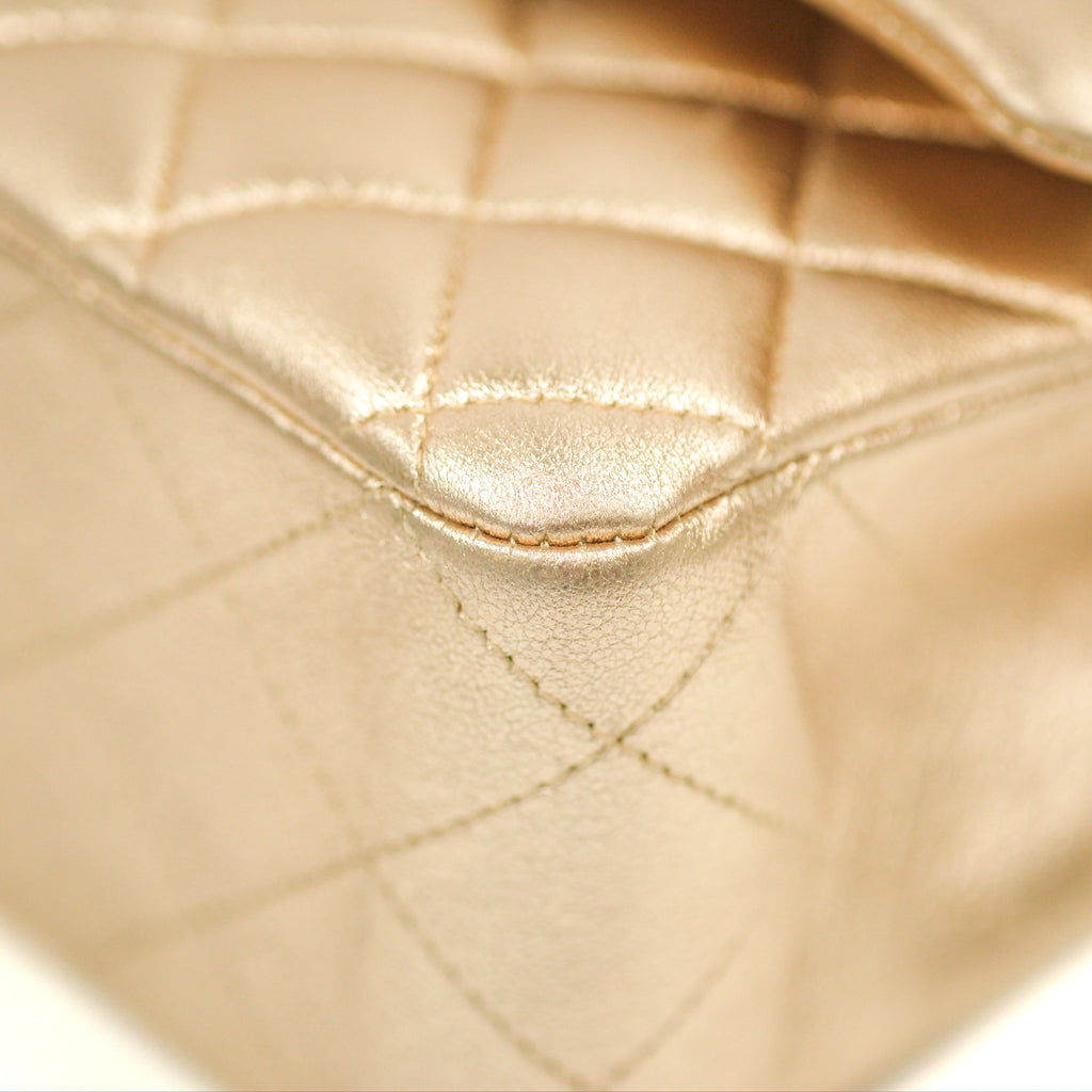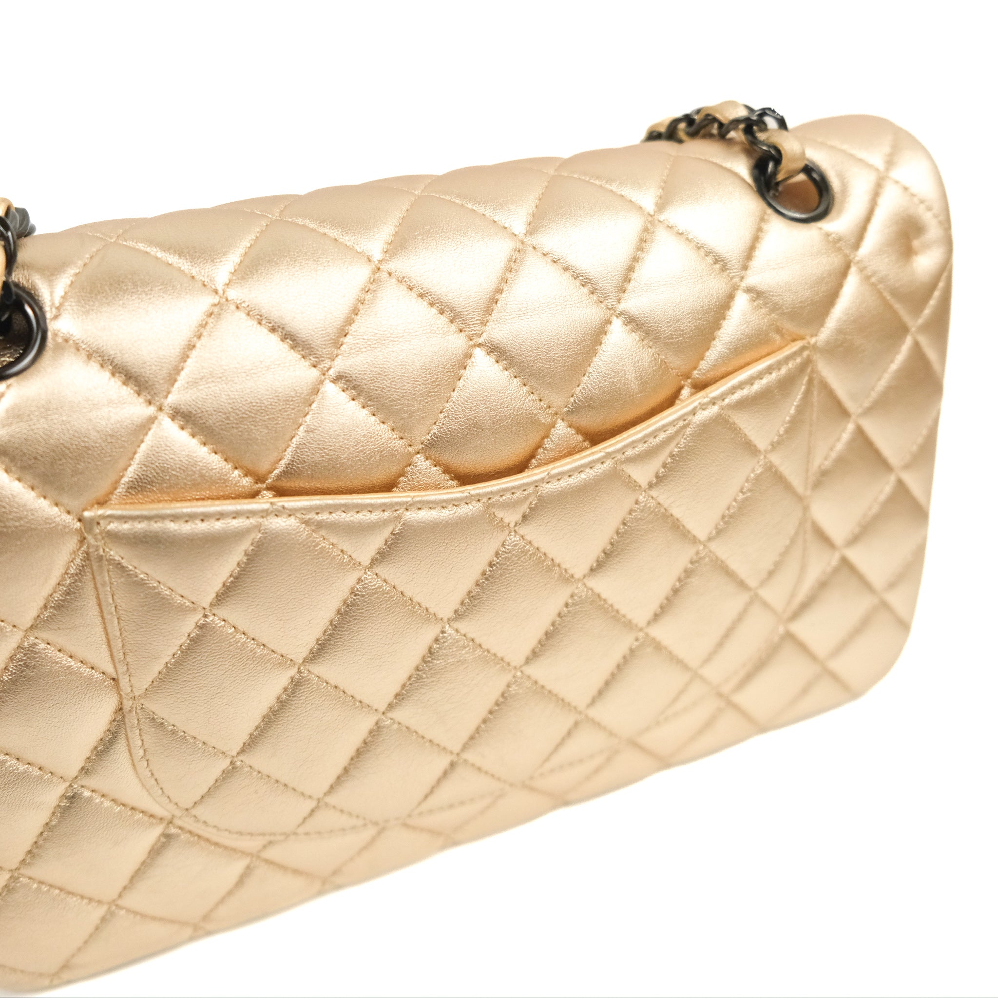 Chanel Classic M/L Medium Flap Quilted Metallic Gold Lambskin Gun Metal