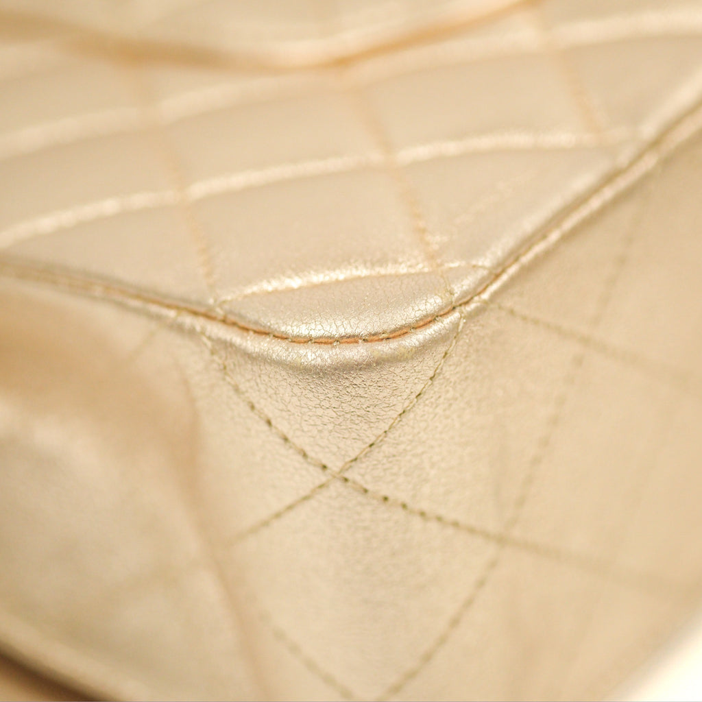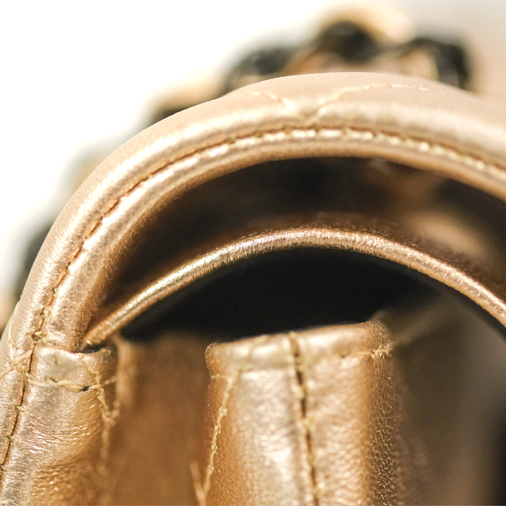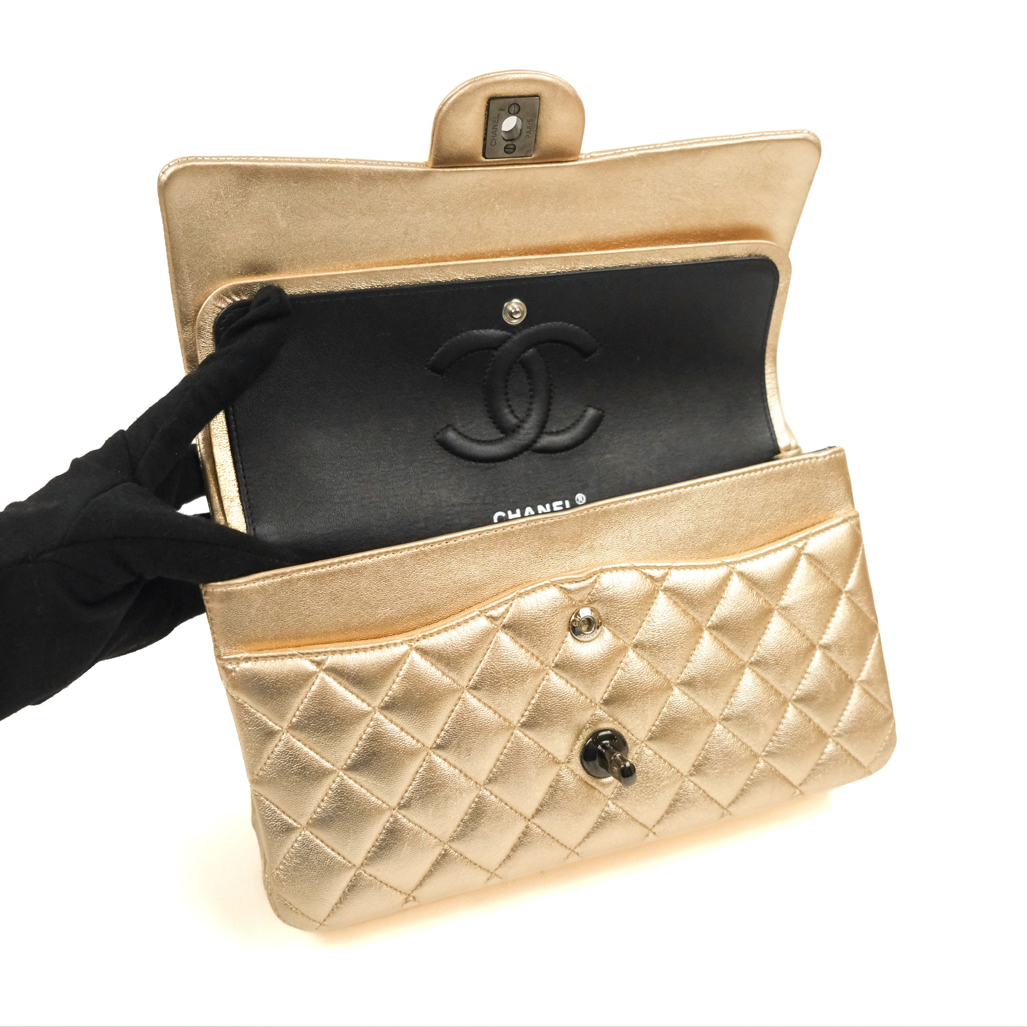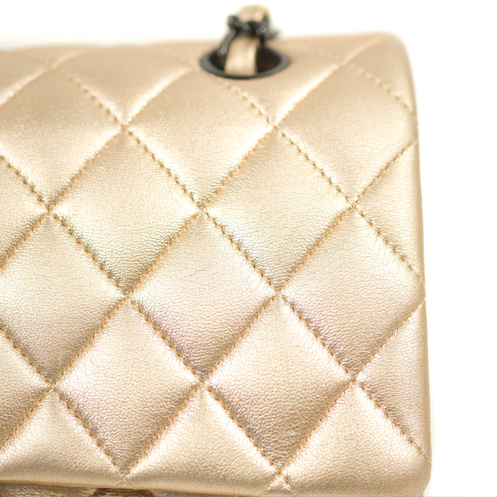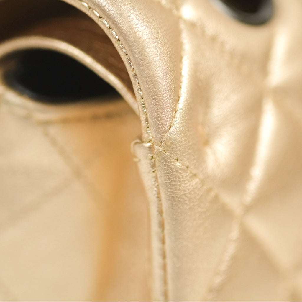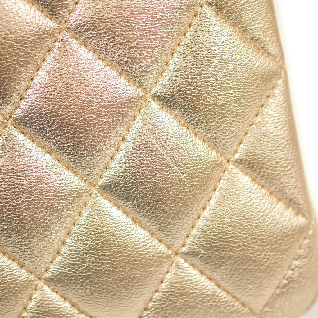 Chanel Classic M/L Medium Flap Quilted Metallic Gold Lambskin Gun Metal