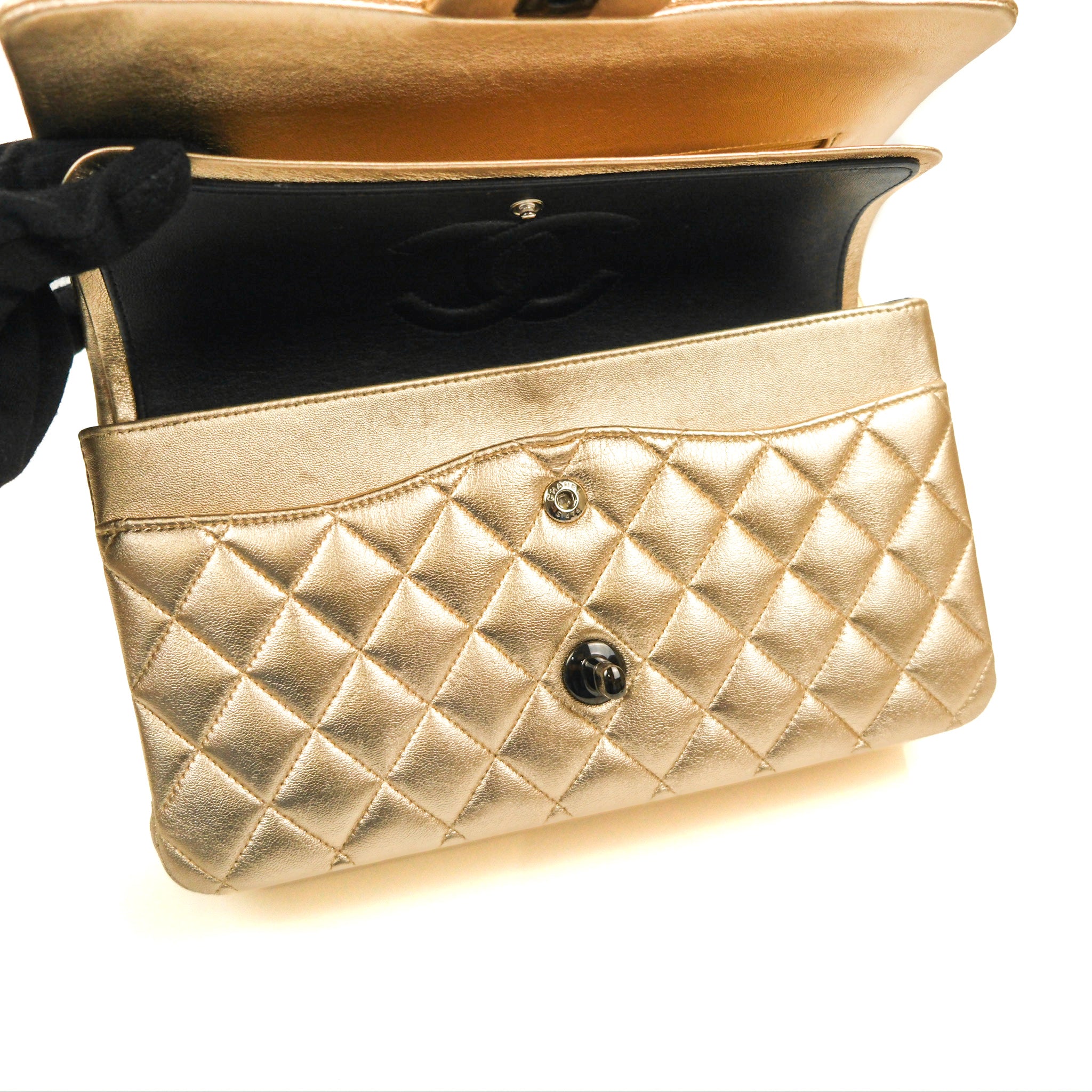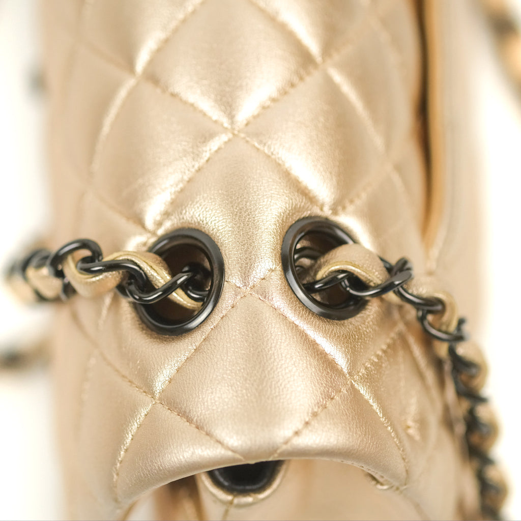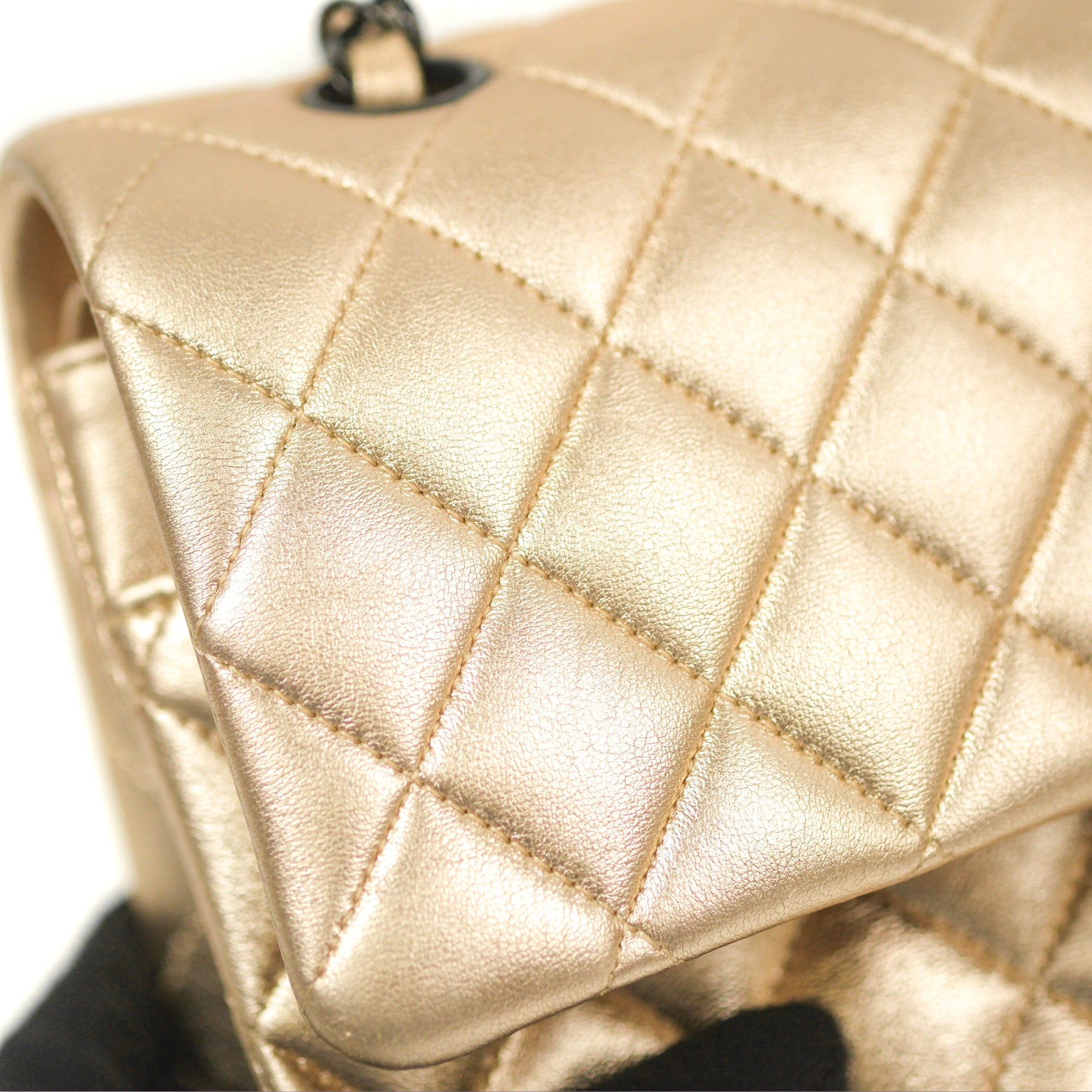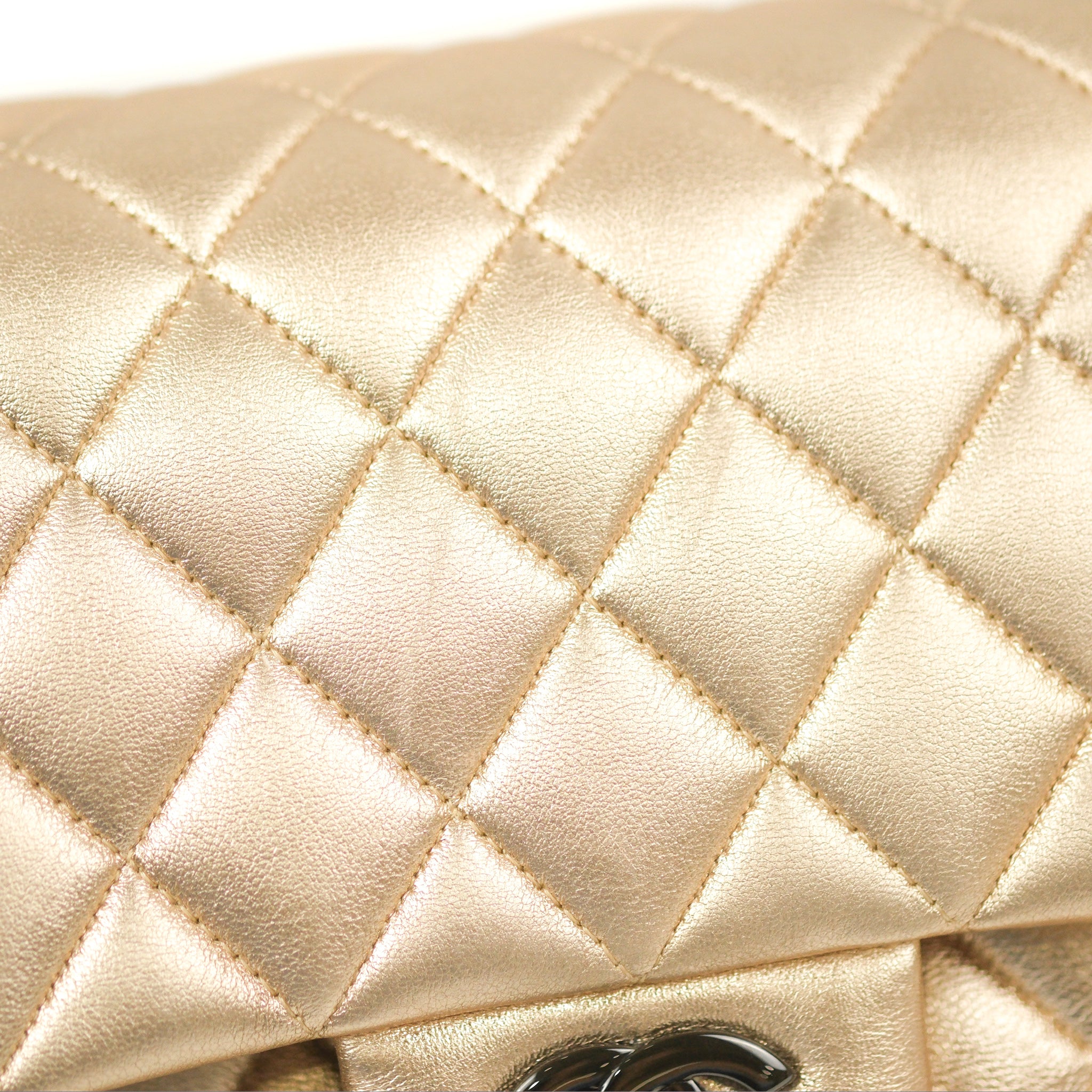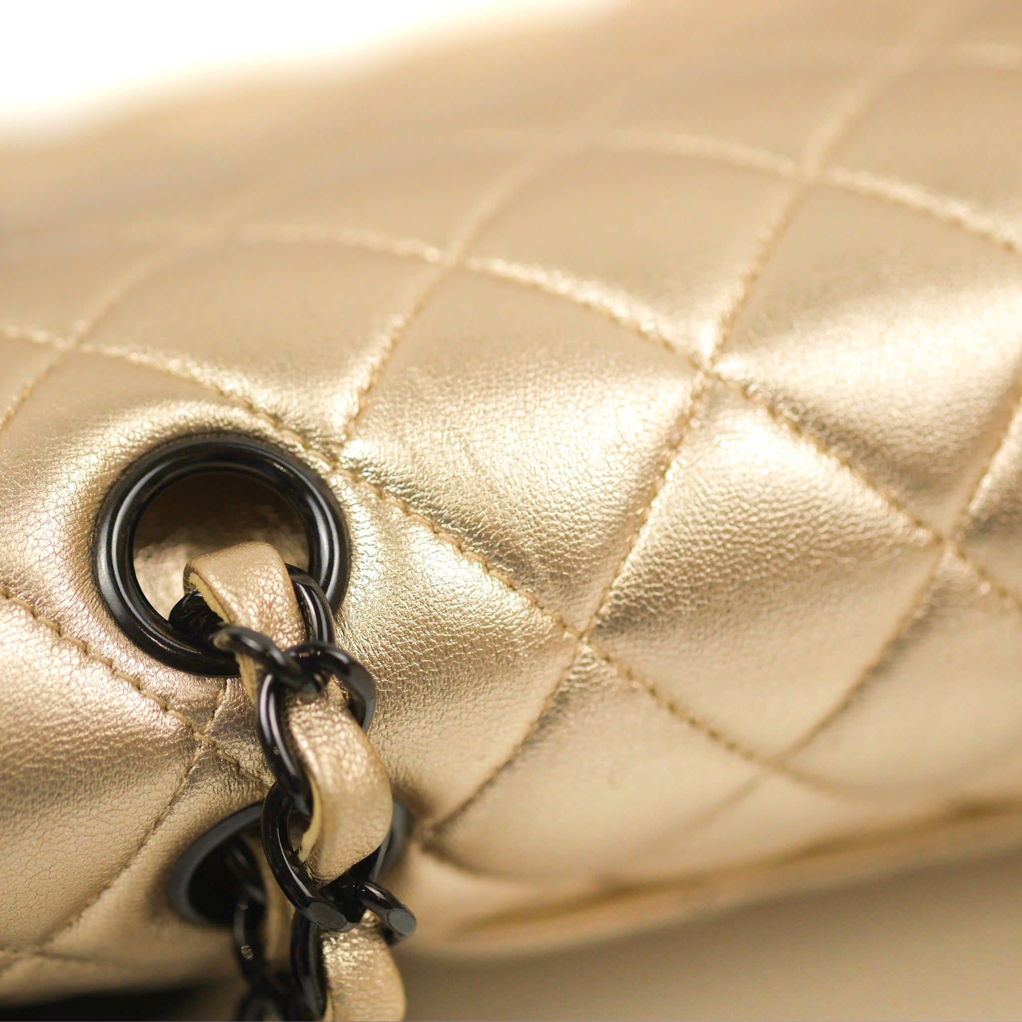 Chanel Classic M/L Medium Flap Quilted Metallic Gold Lambskin Gun Metal