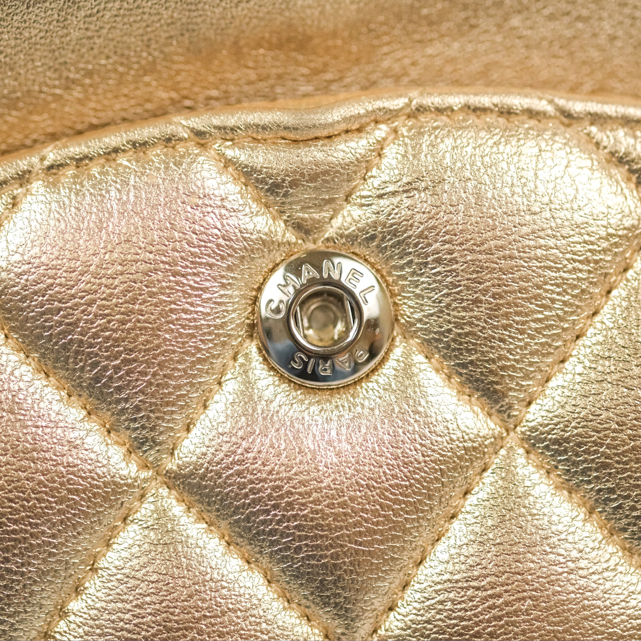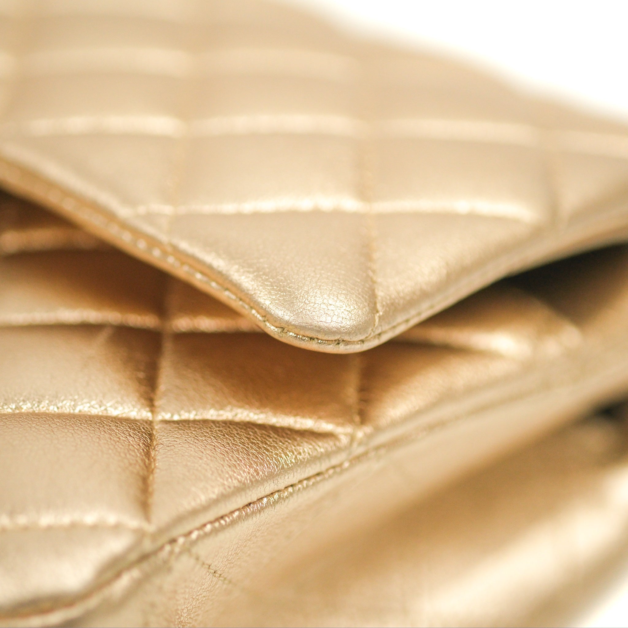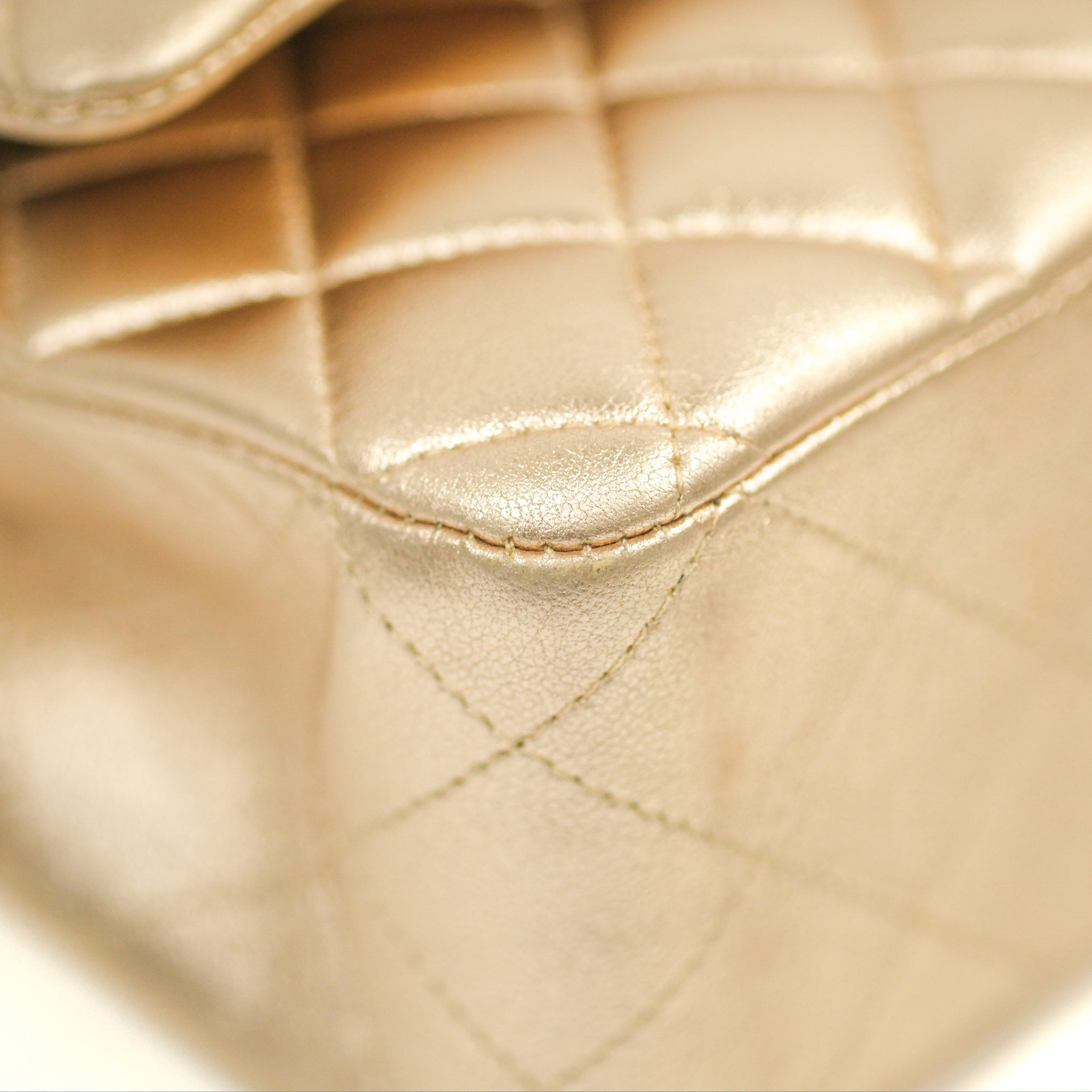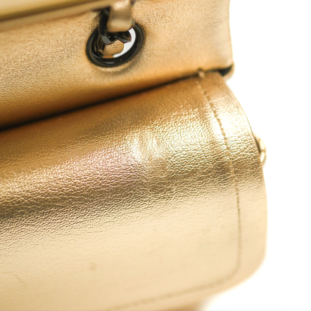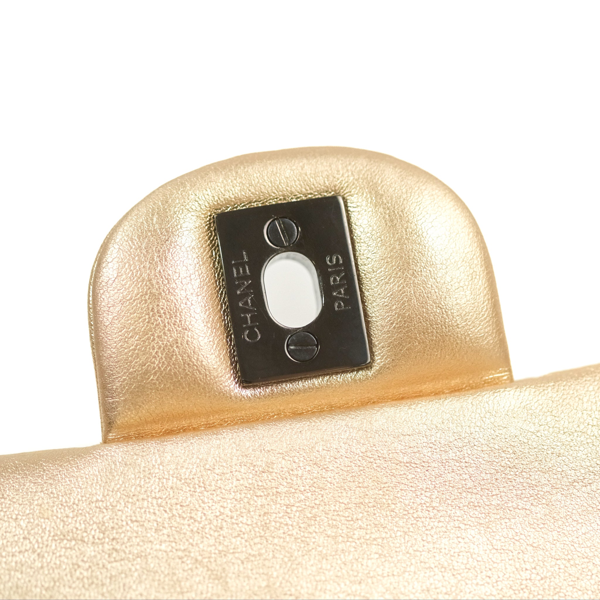 Chanel Classic M/L Medium Flap Quilted Metallic Gold Lambskin Gun Metal
