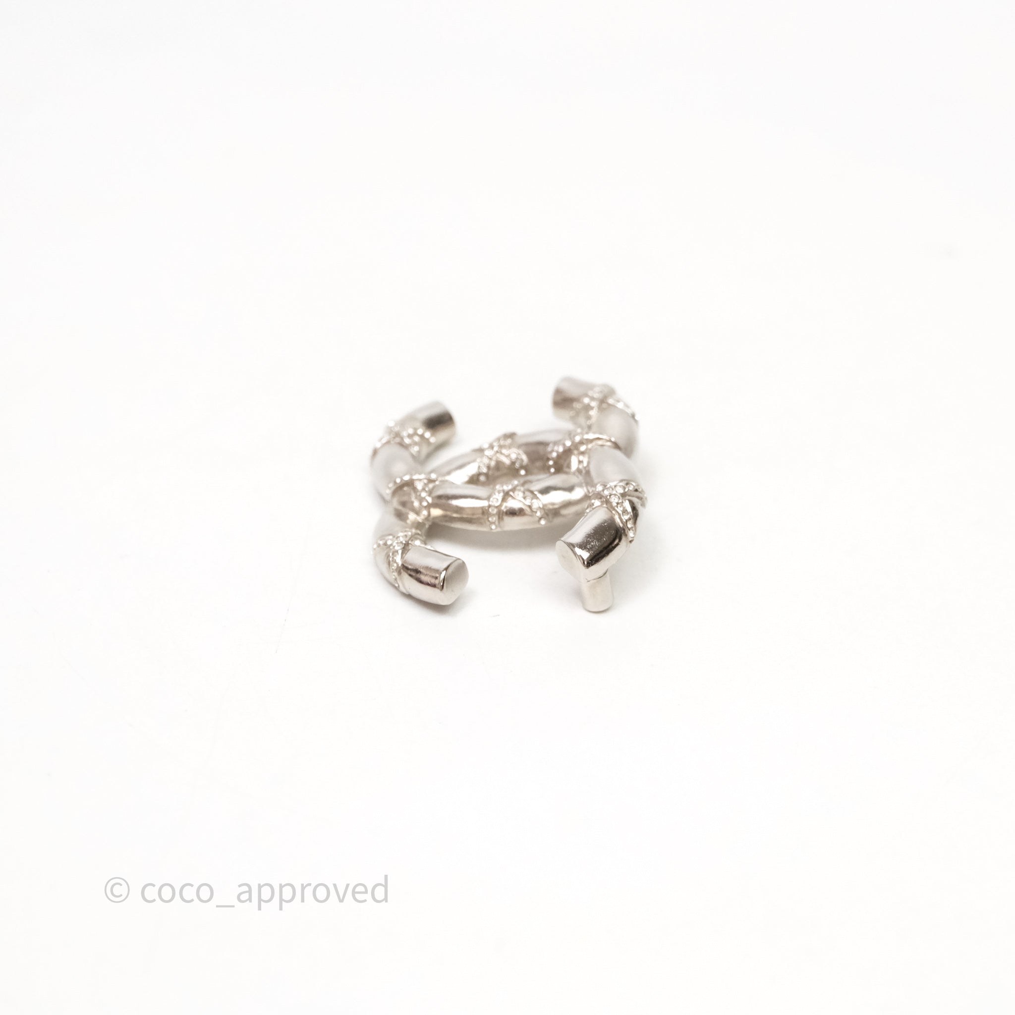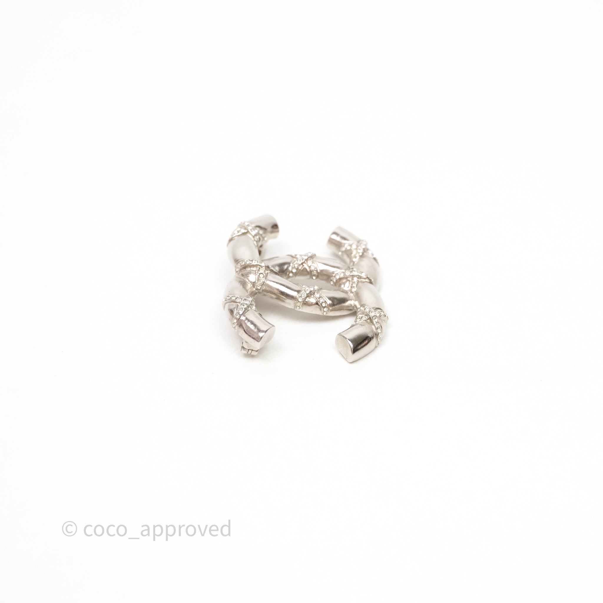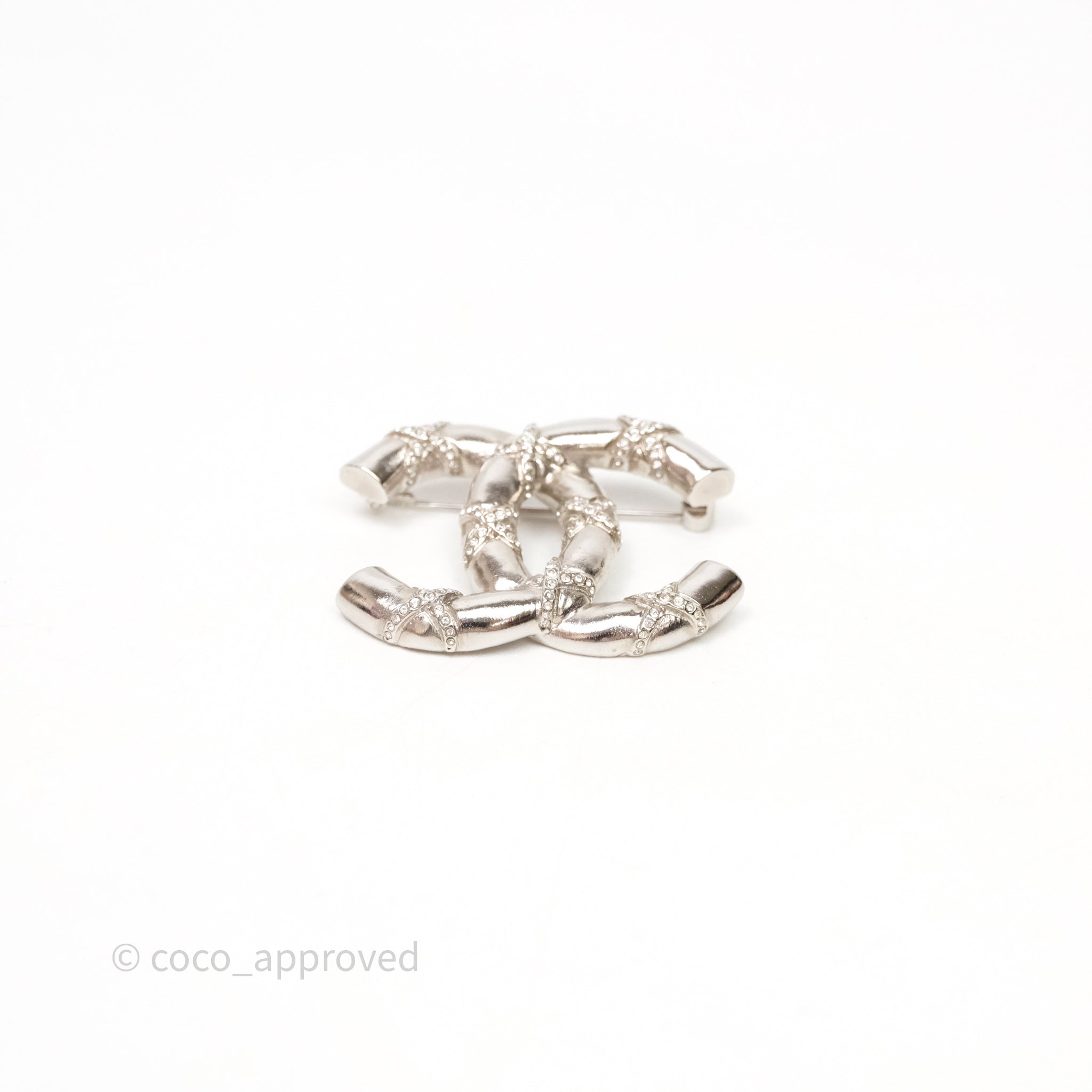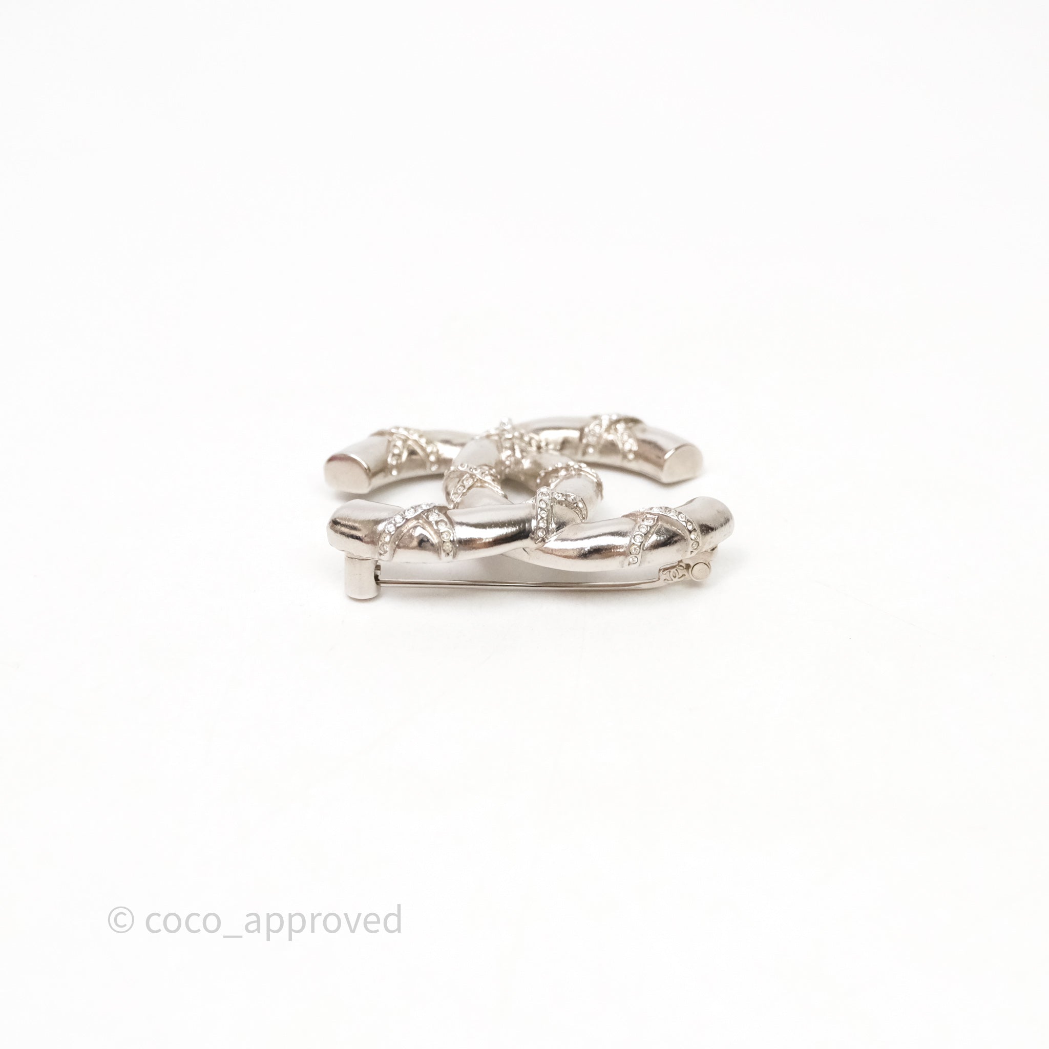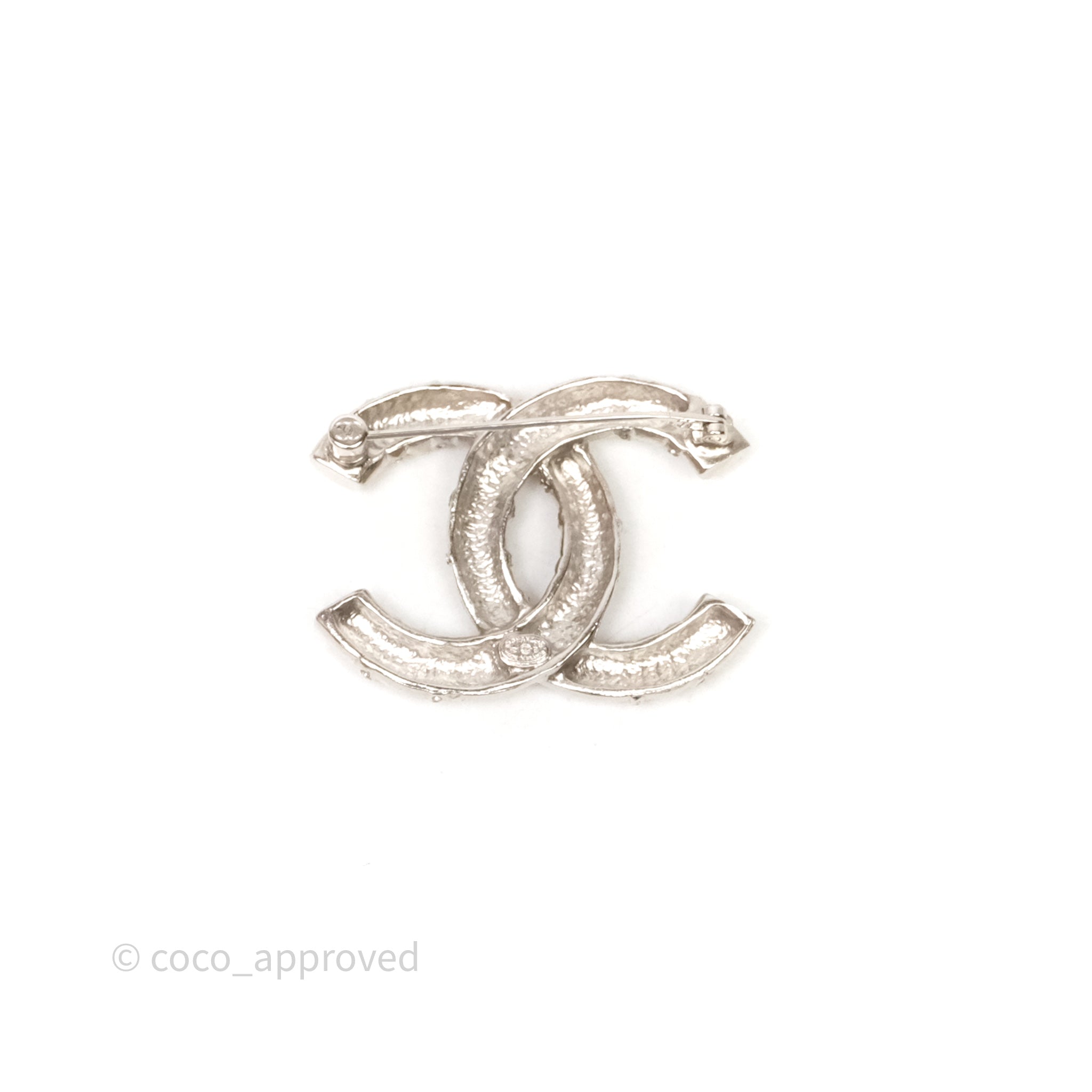 Chanel Crystal CC Logo Brooch Silver Tone 21B