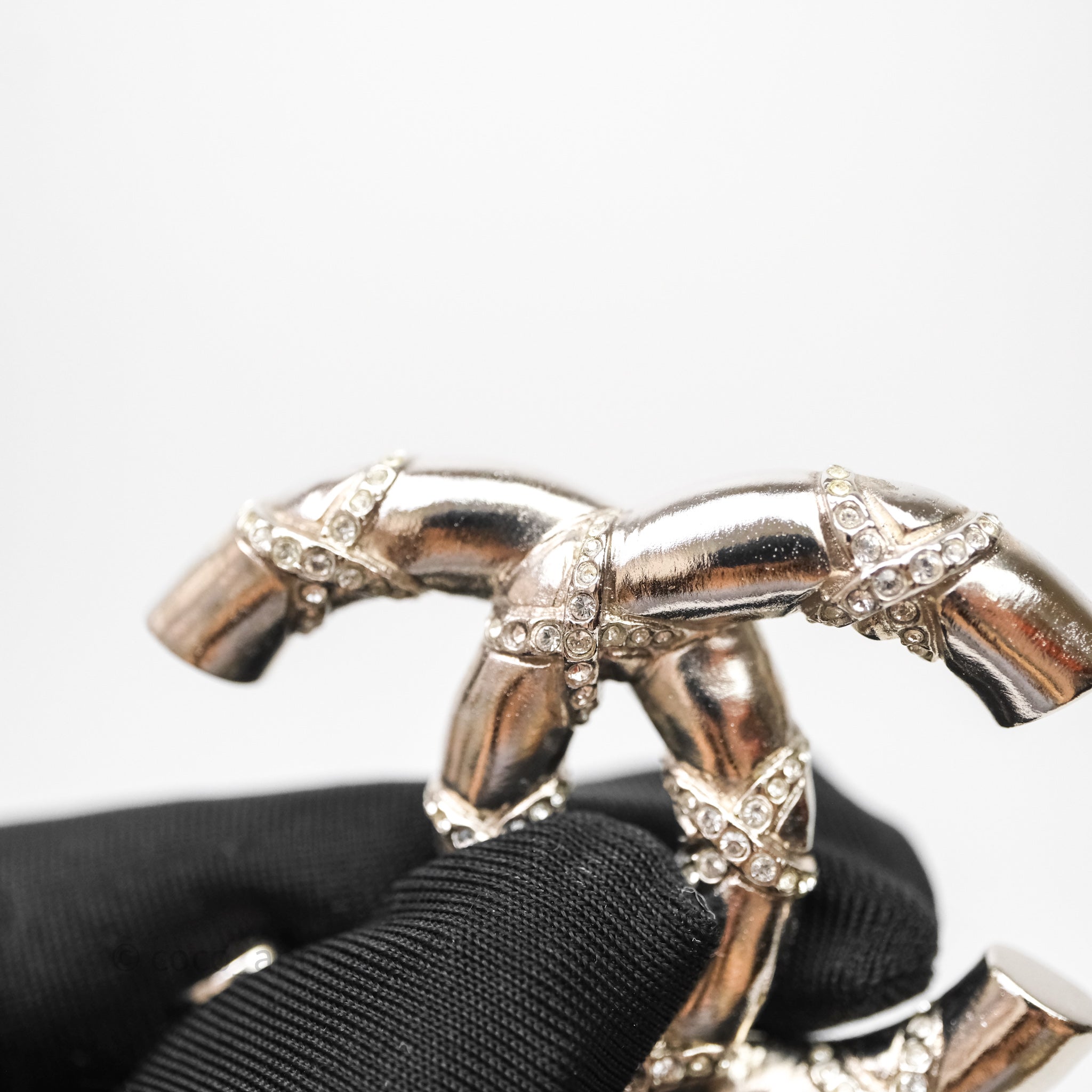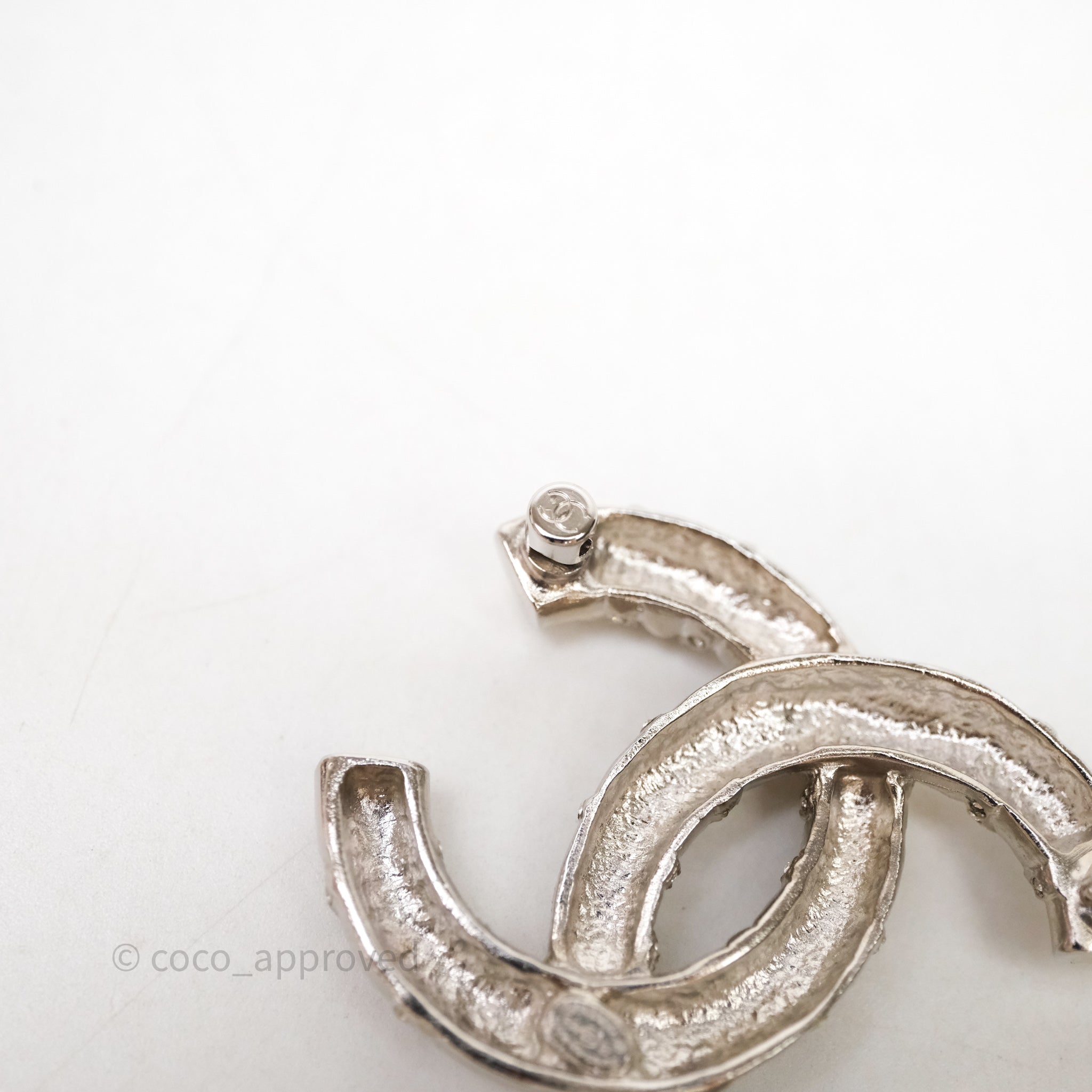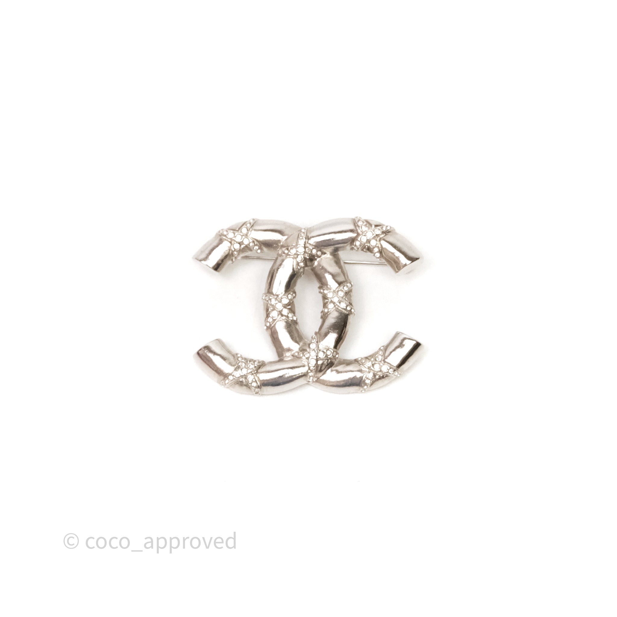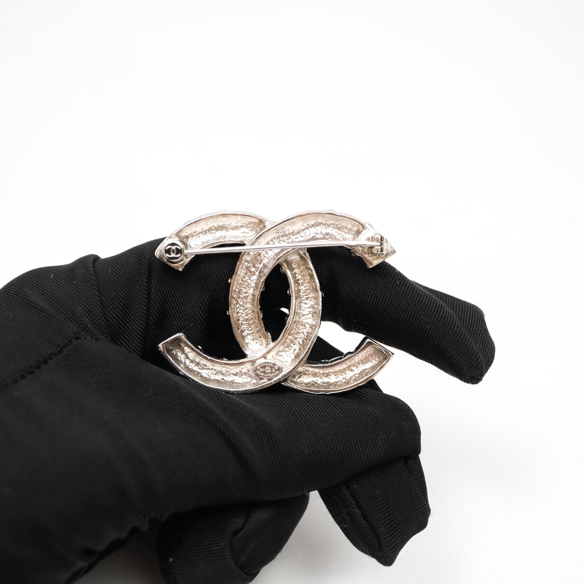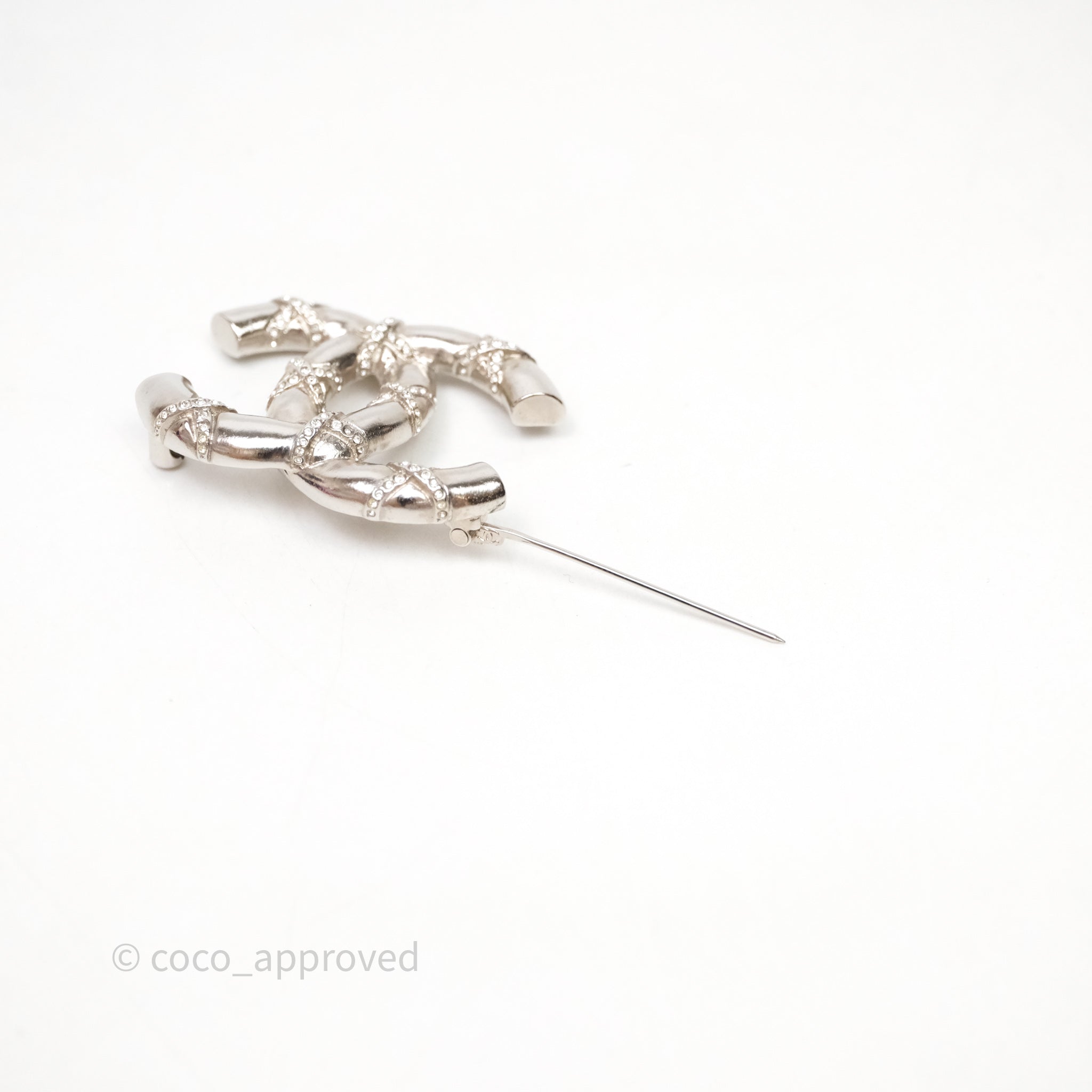 Chanel Crystal CC Logo Brooch Silver Tone 21B