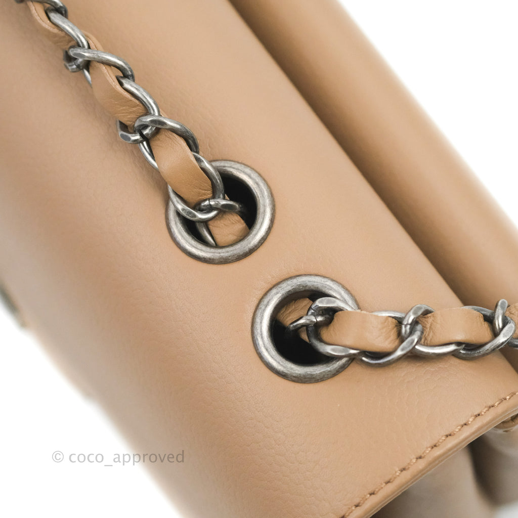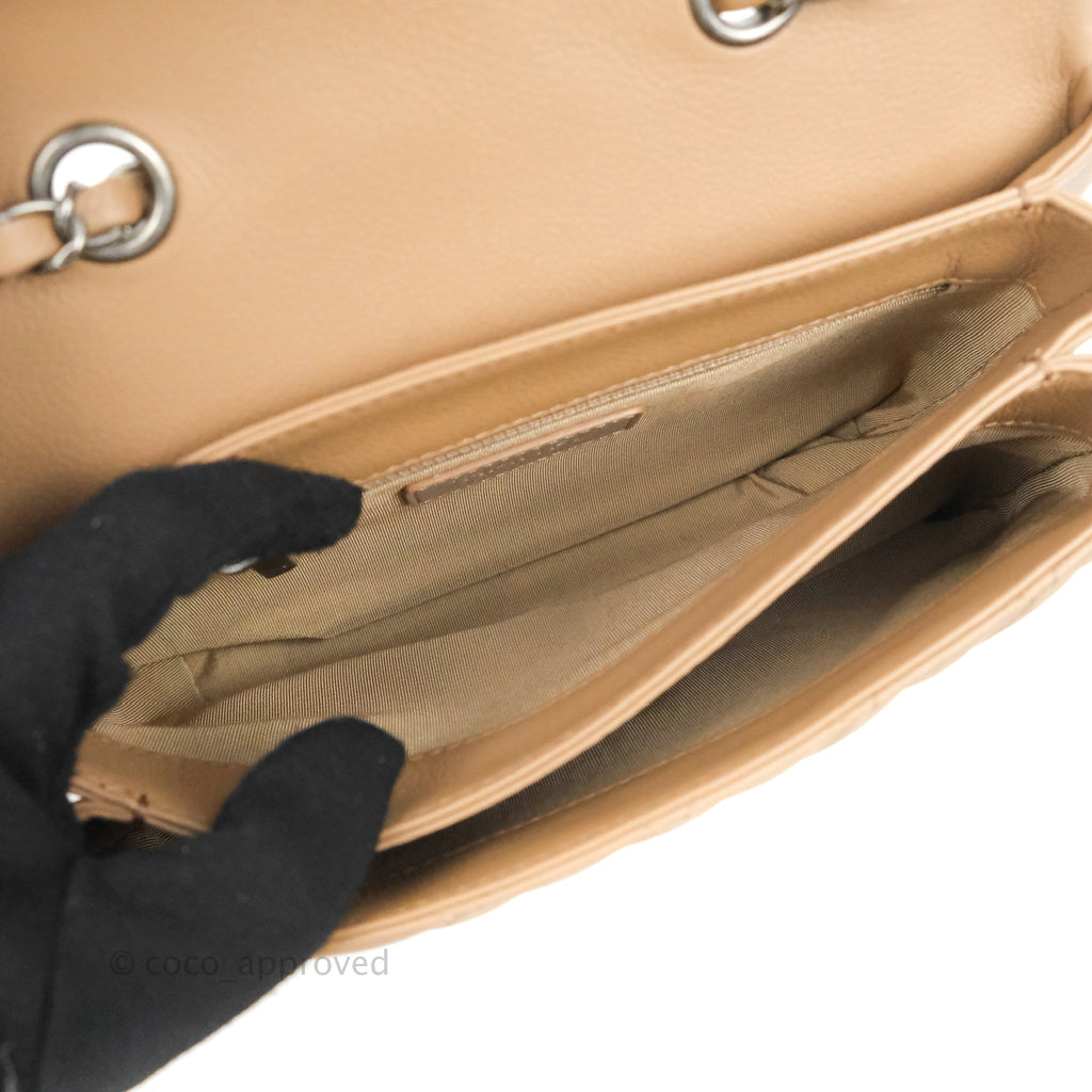 Chanel Flap Bag Dark Beige Caviar Ruthenium Hardware 17B