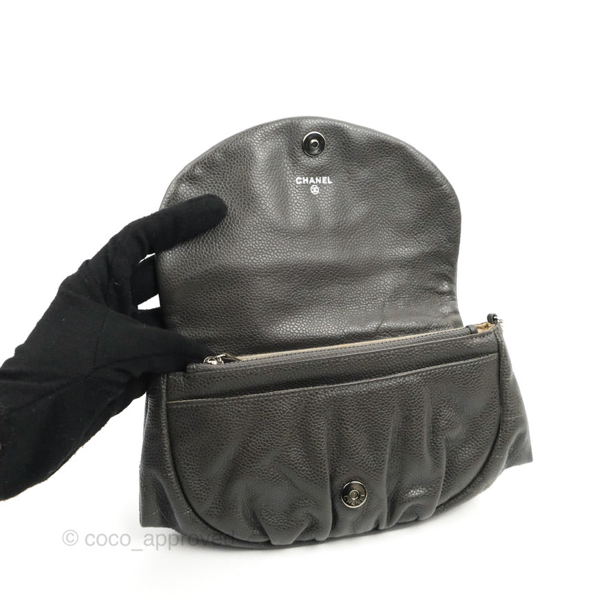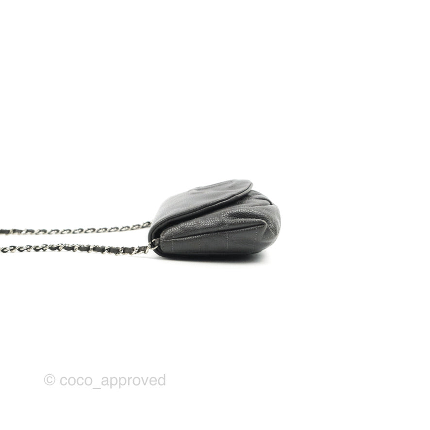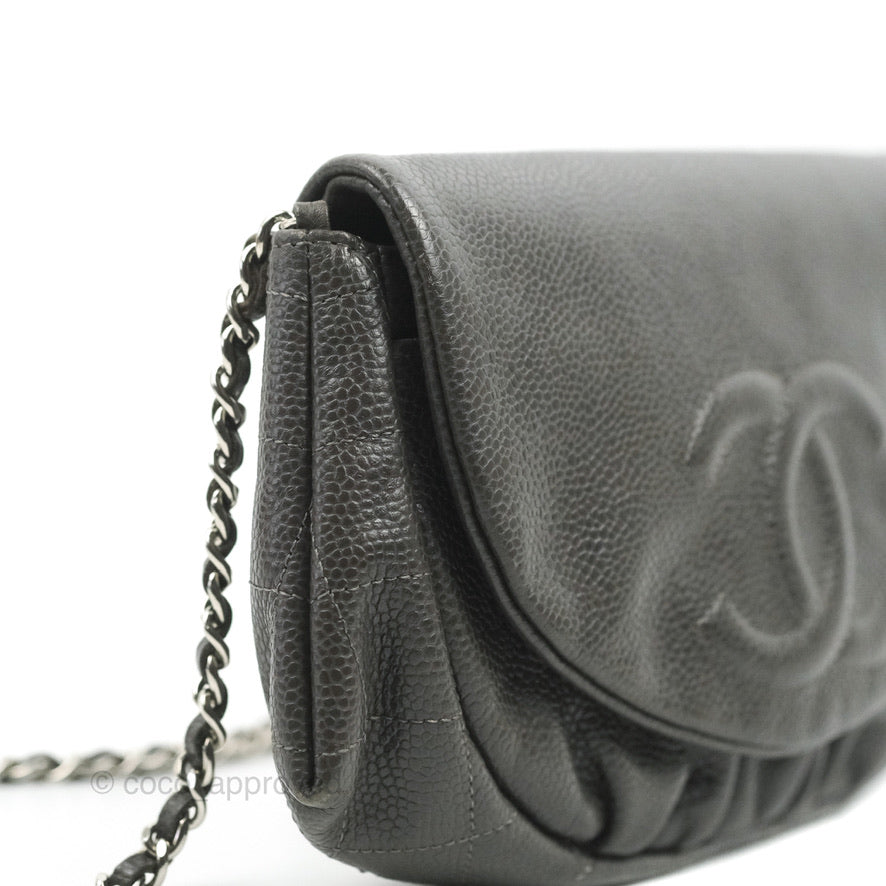Chanel Half Moon Wallet on Chain WOC Dark Grey Caviar Silver Hardware