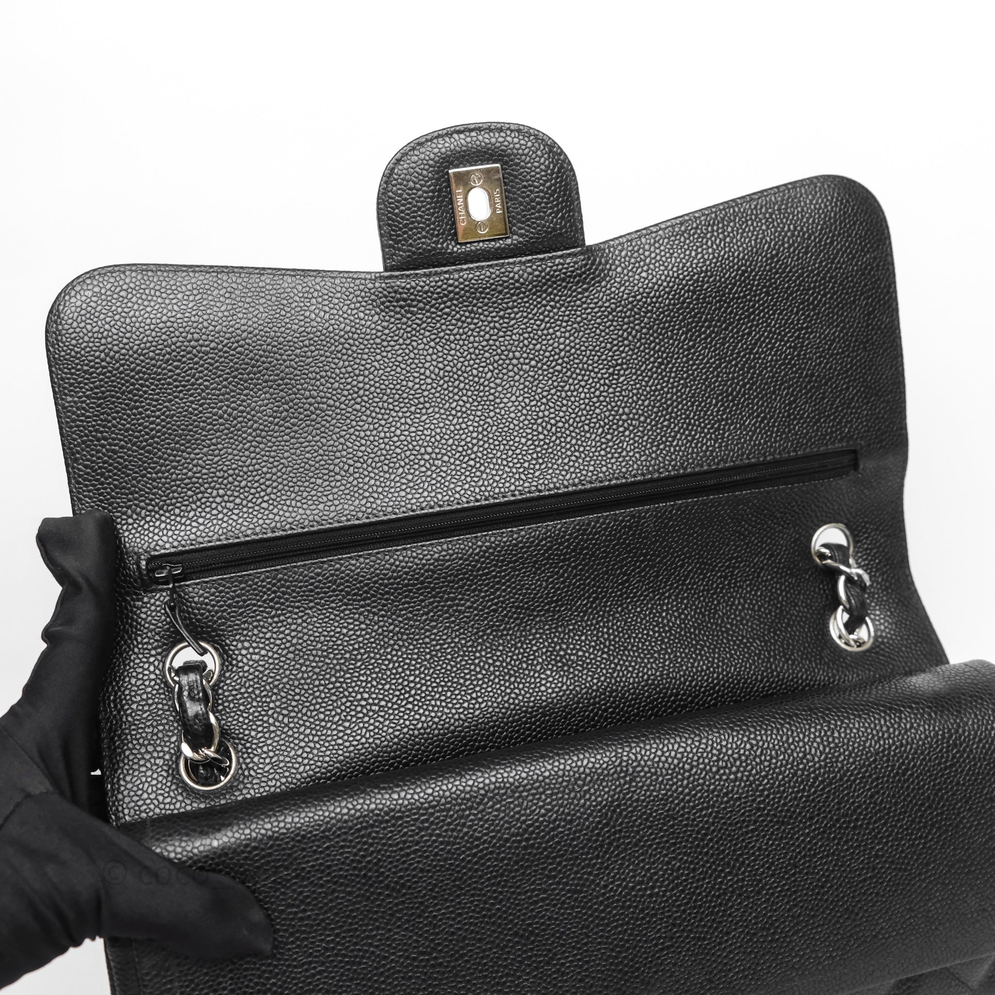 Chanel Jumbo Double Flap Black Caviar Silver Hardware