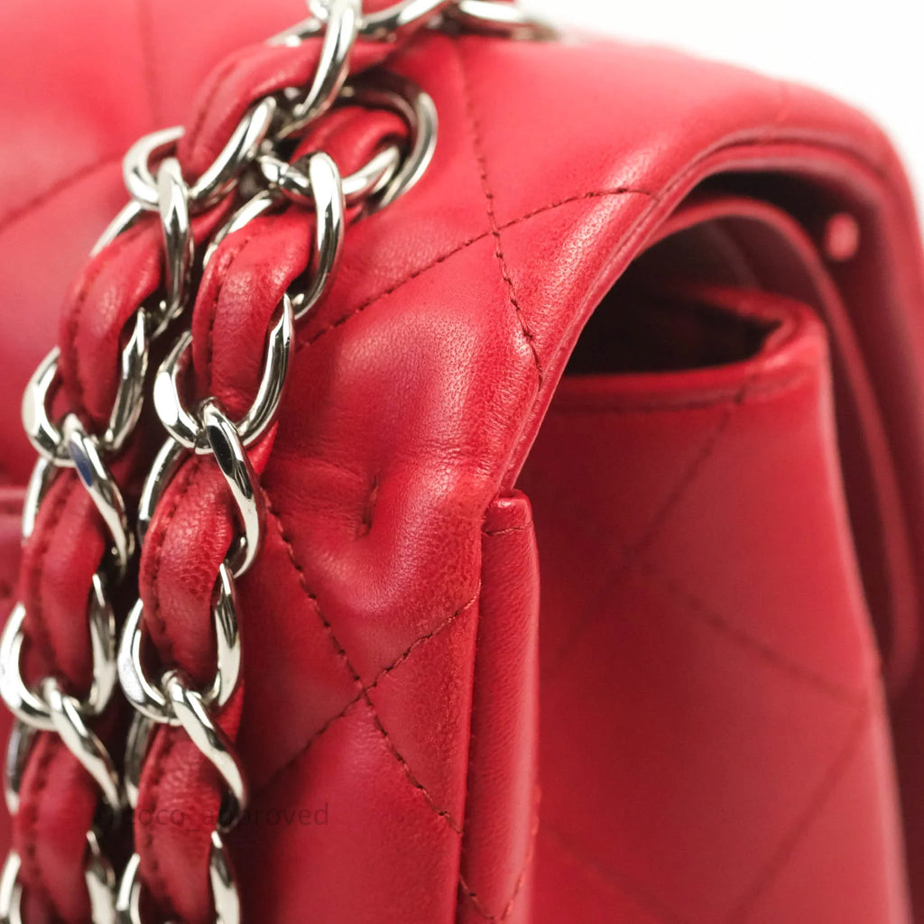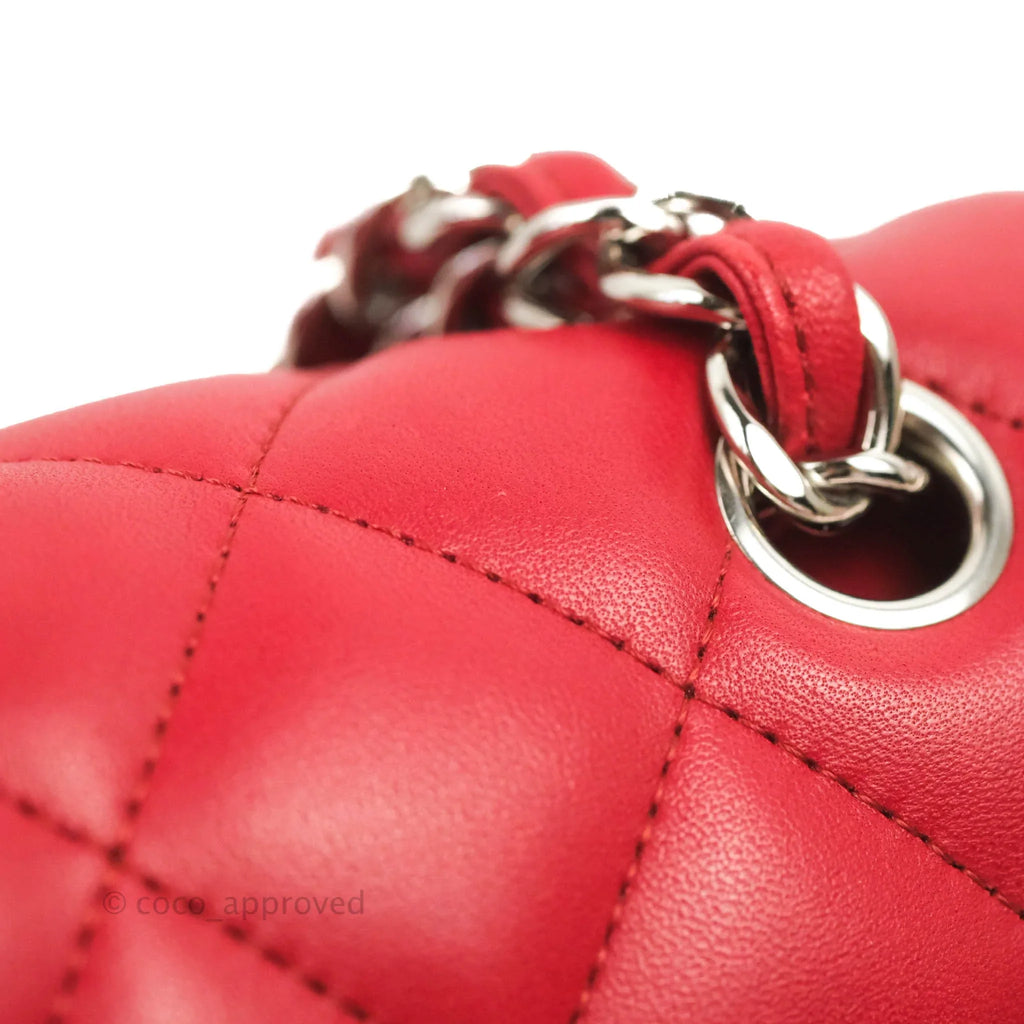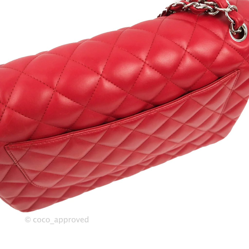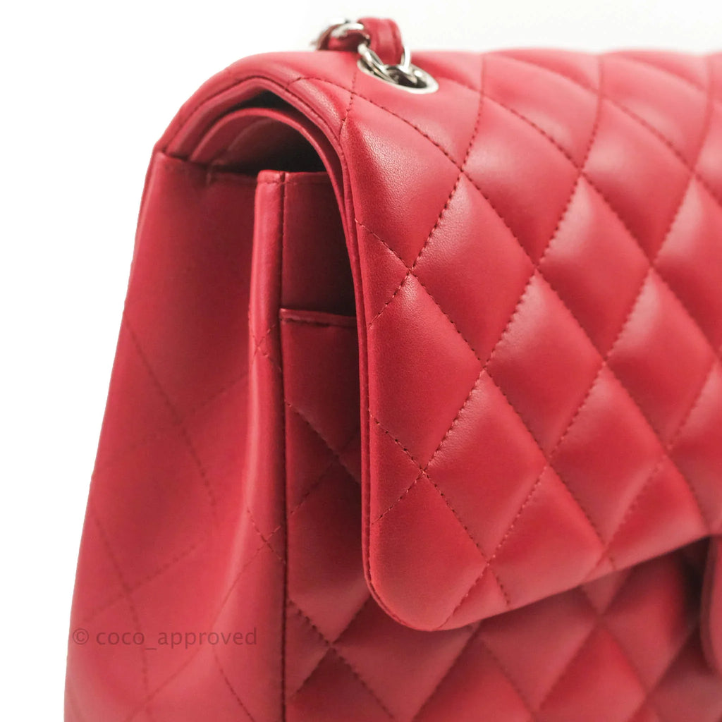 Chanel Jumbo Double Flap Red Lambskin Silver Hardware⁣⁣