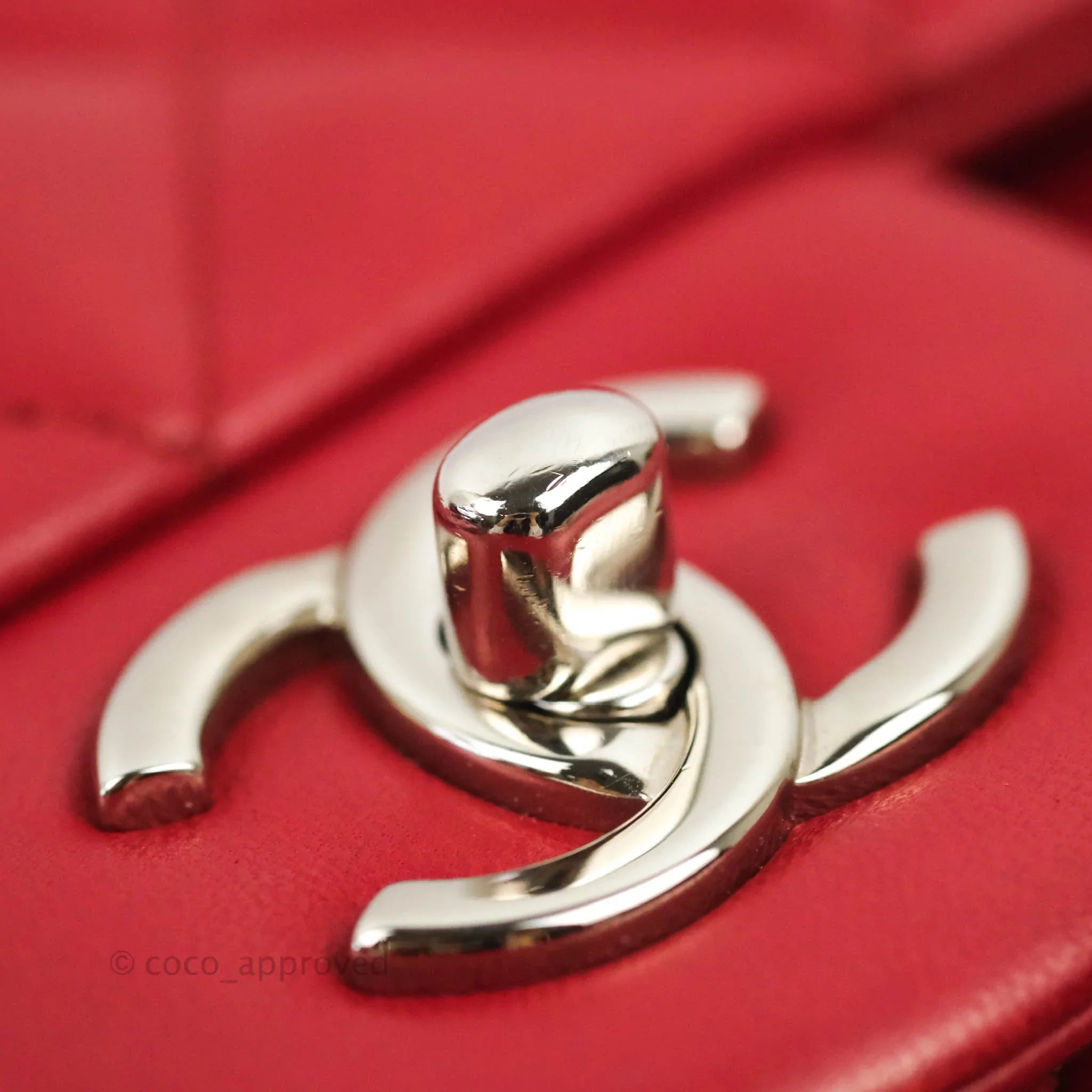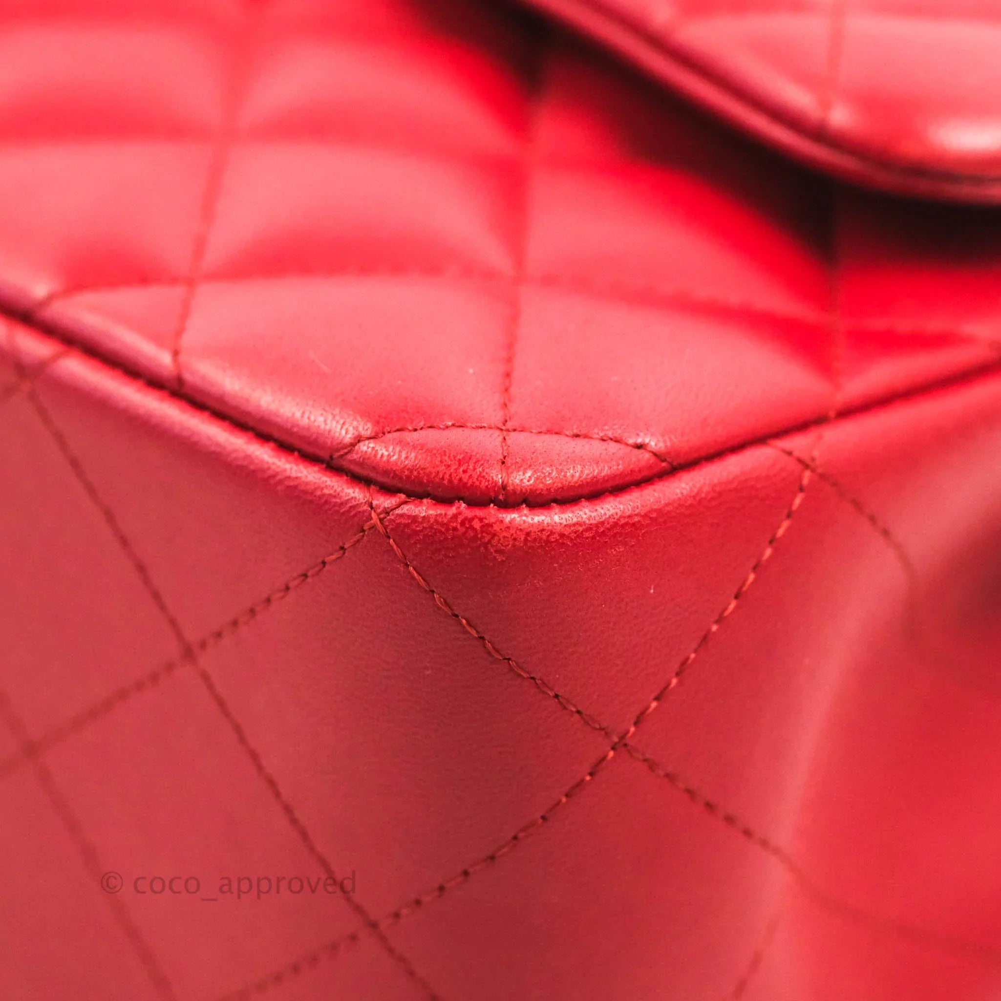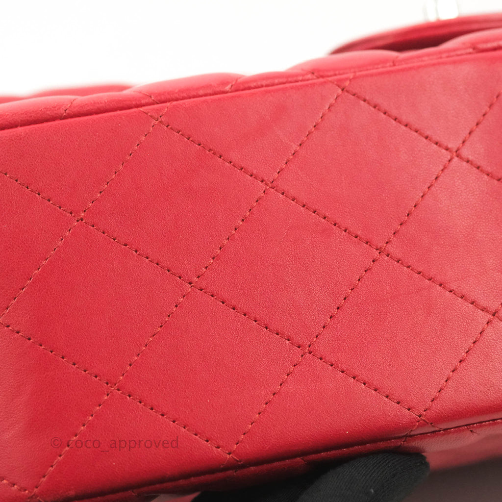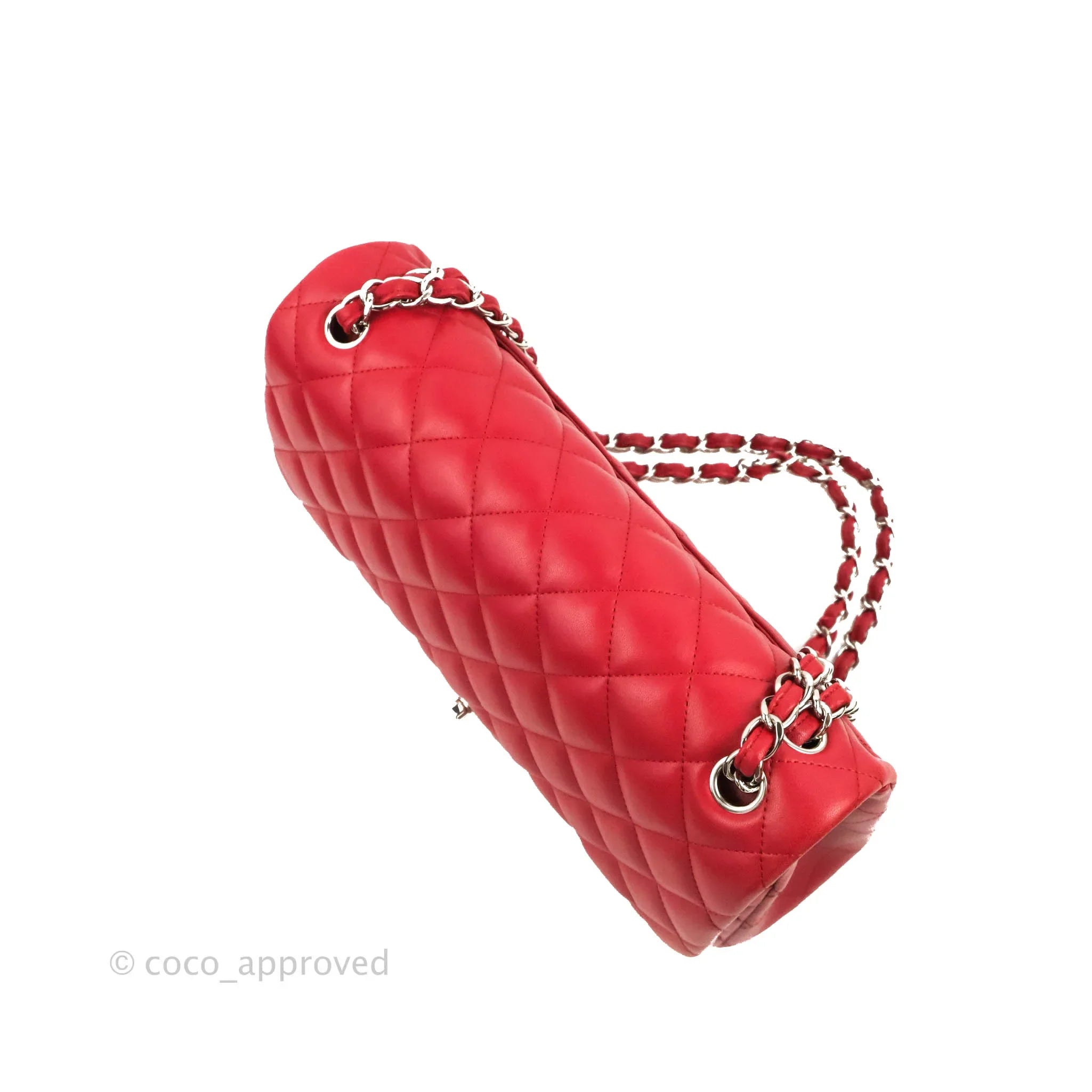 Chanel Jumbo Double Flap Red Lambskin Silver Hardware⁣⁣