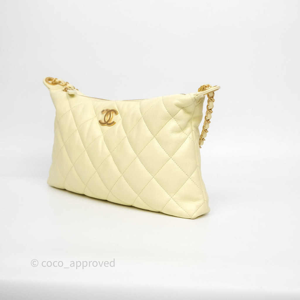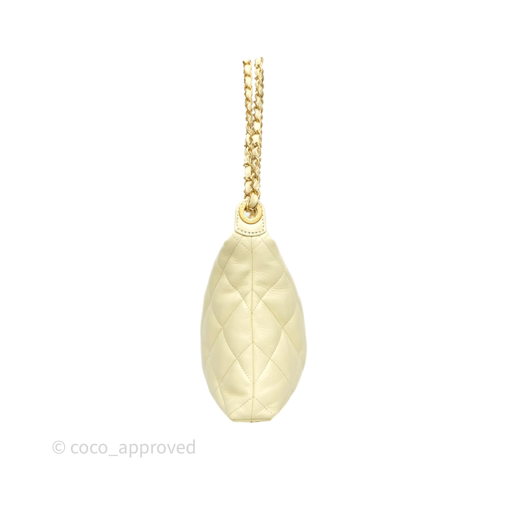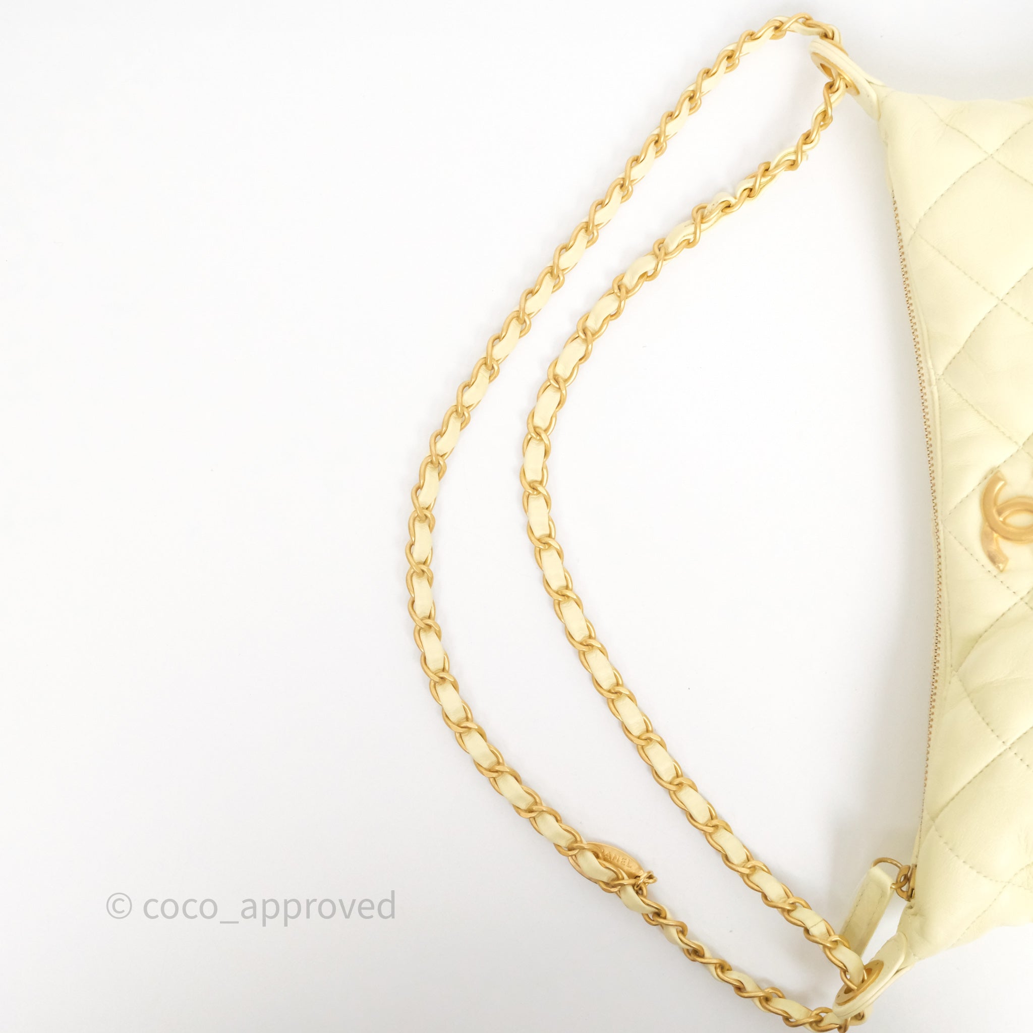 Chanel Large Hobo with Chain Light Yellow Lambskin Aged Gold Hardware 25S