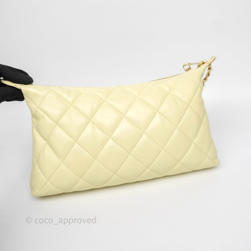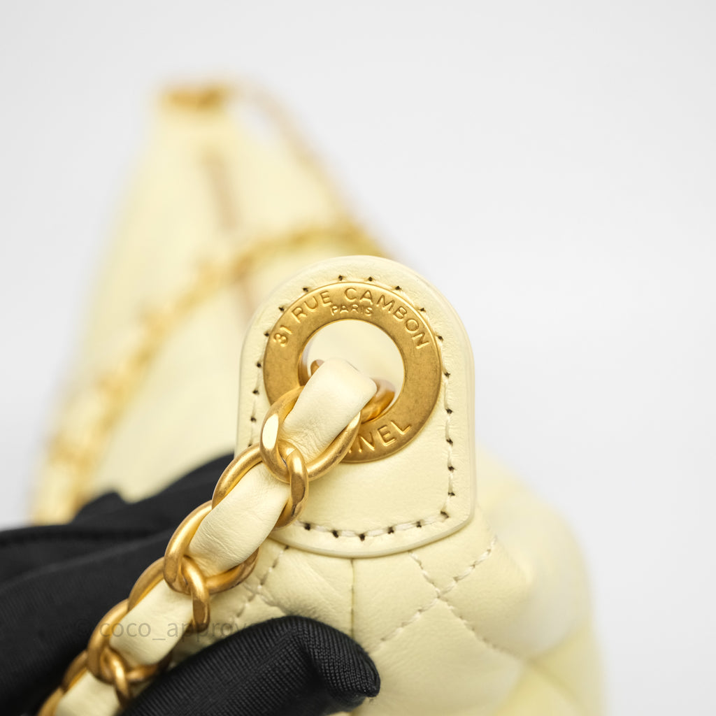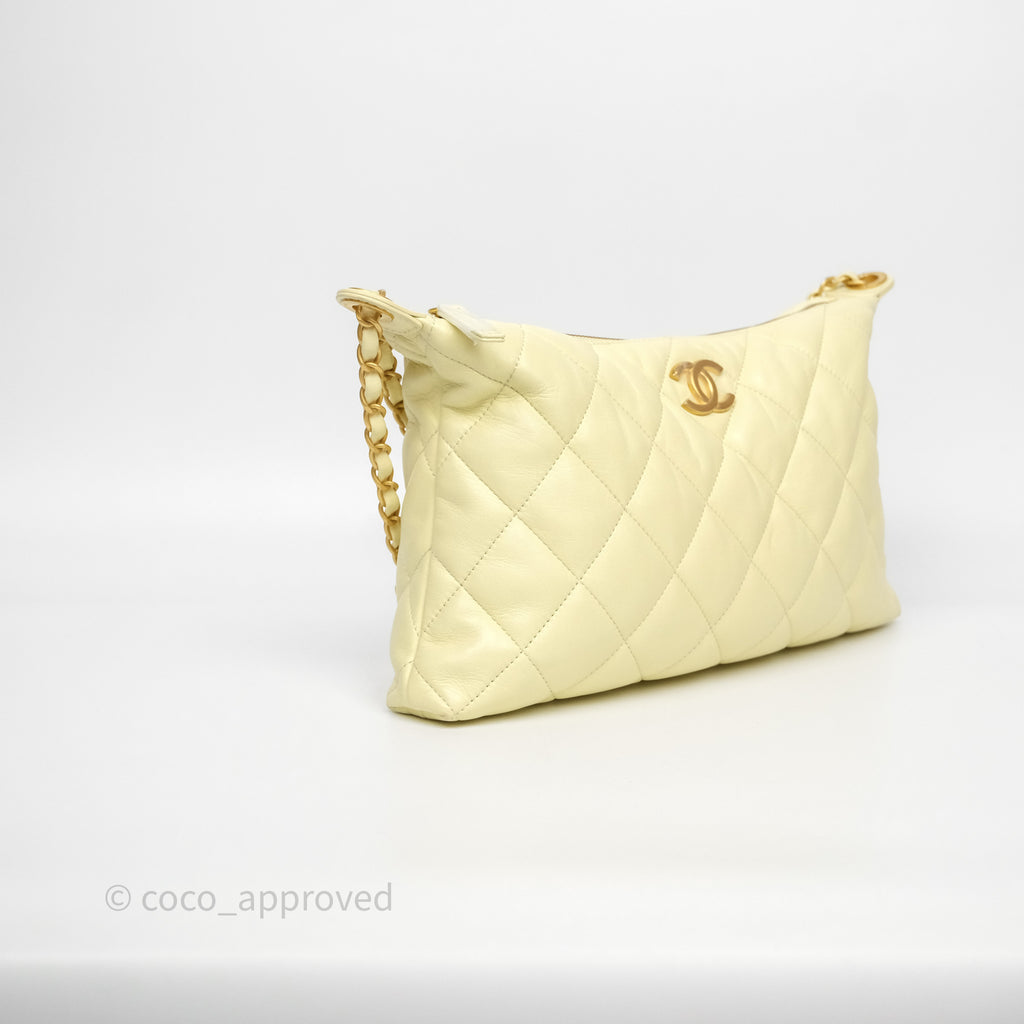 Chanel Large Hobo with Chain Light Yellow Lambskin Aged Gold Hardware 25S