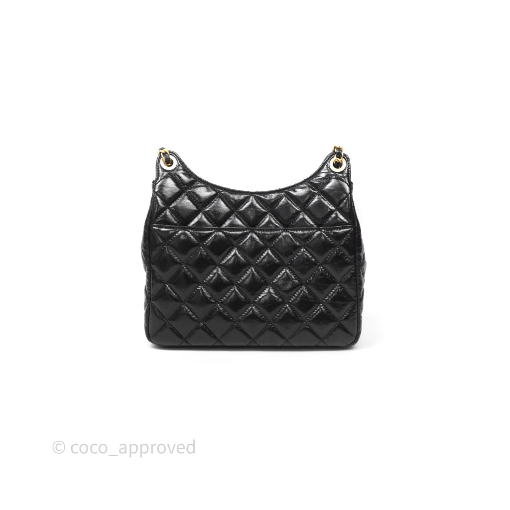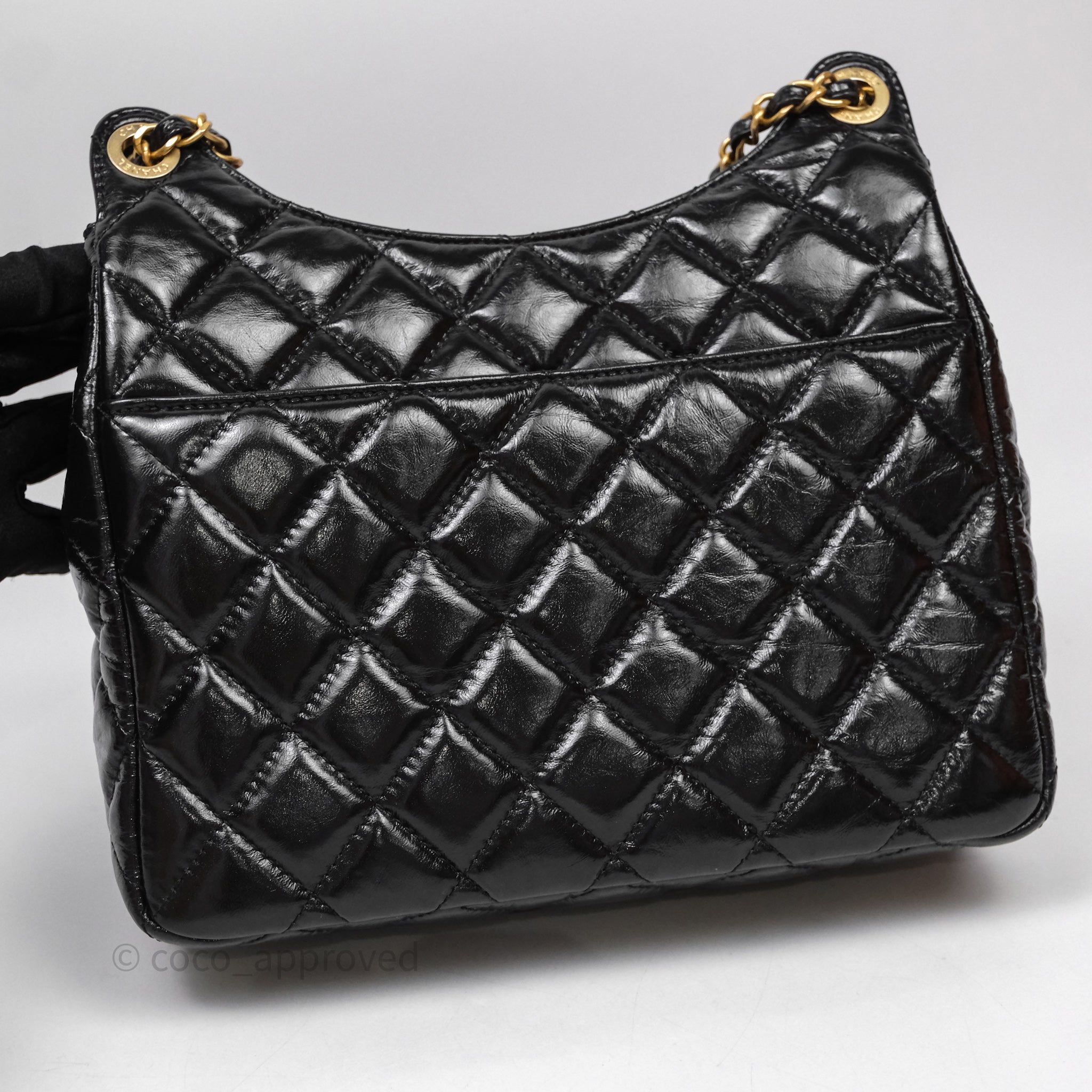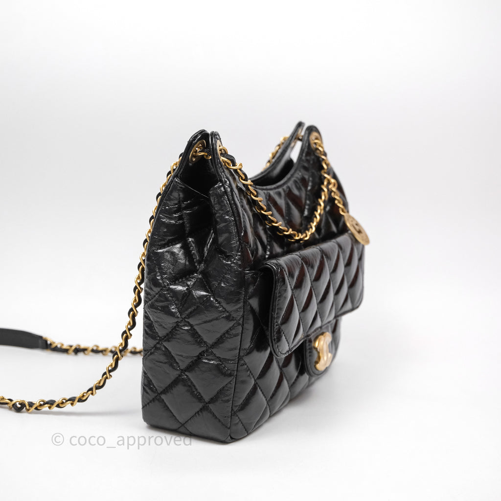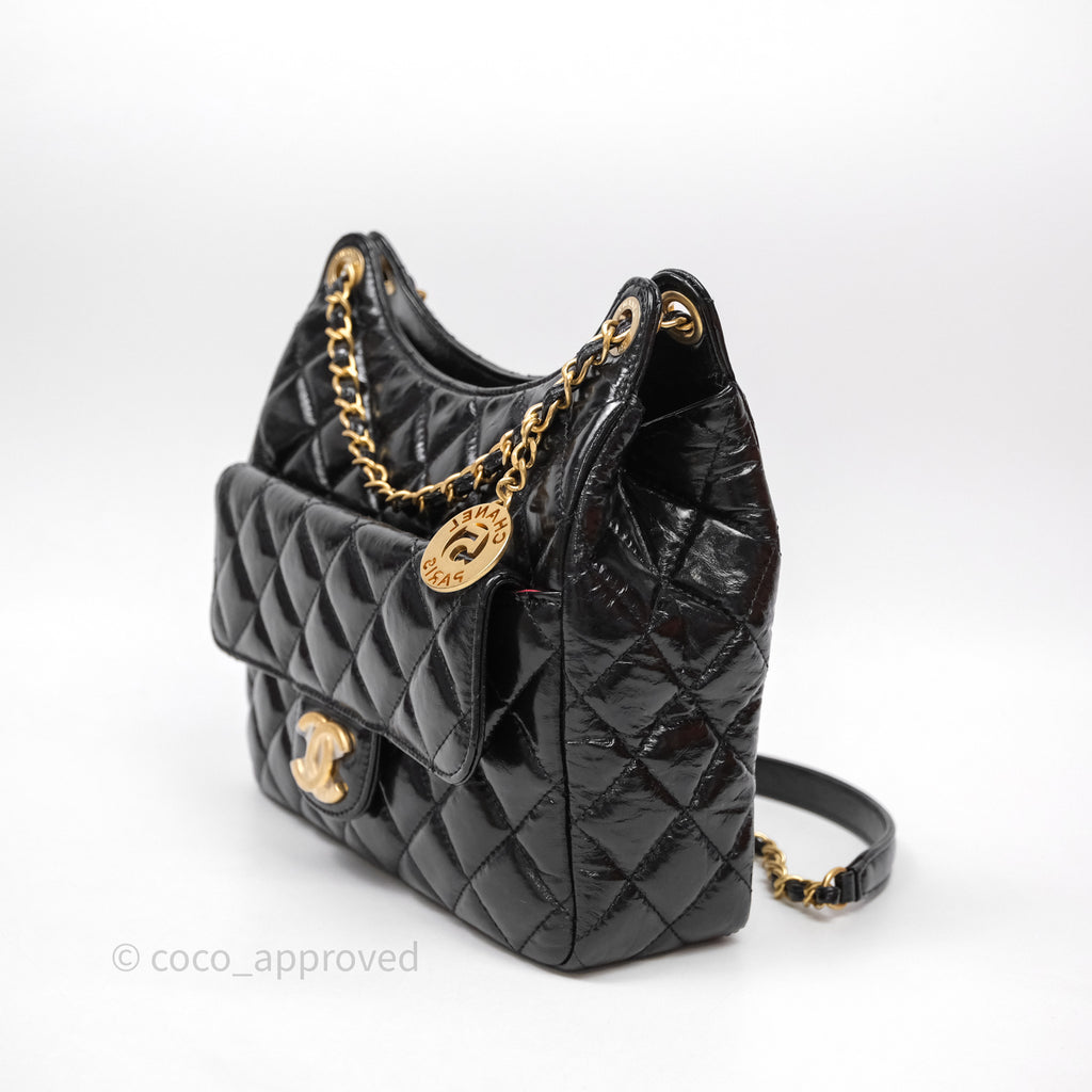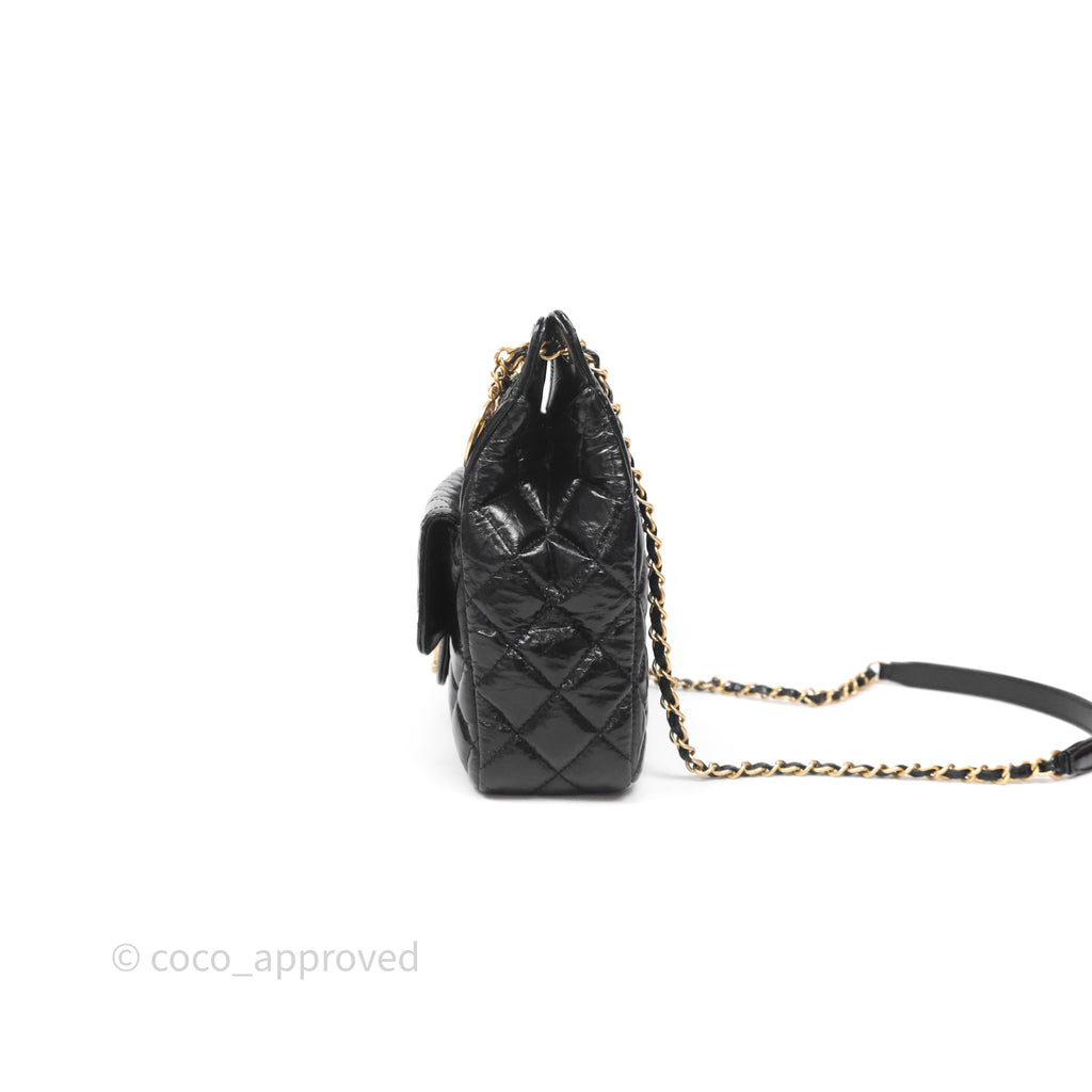 Chanel Medium Quilted Wavy CC Hobo Black Shiny Crumpled Calfskin Aged Gold Hardware