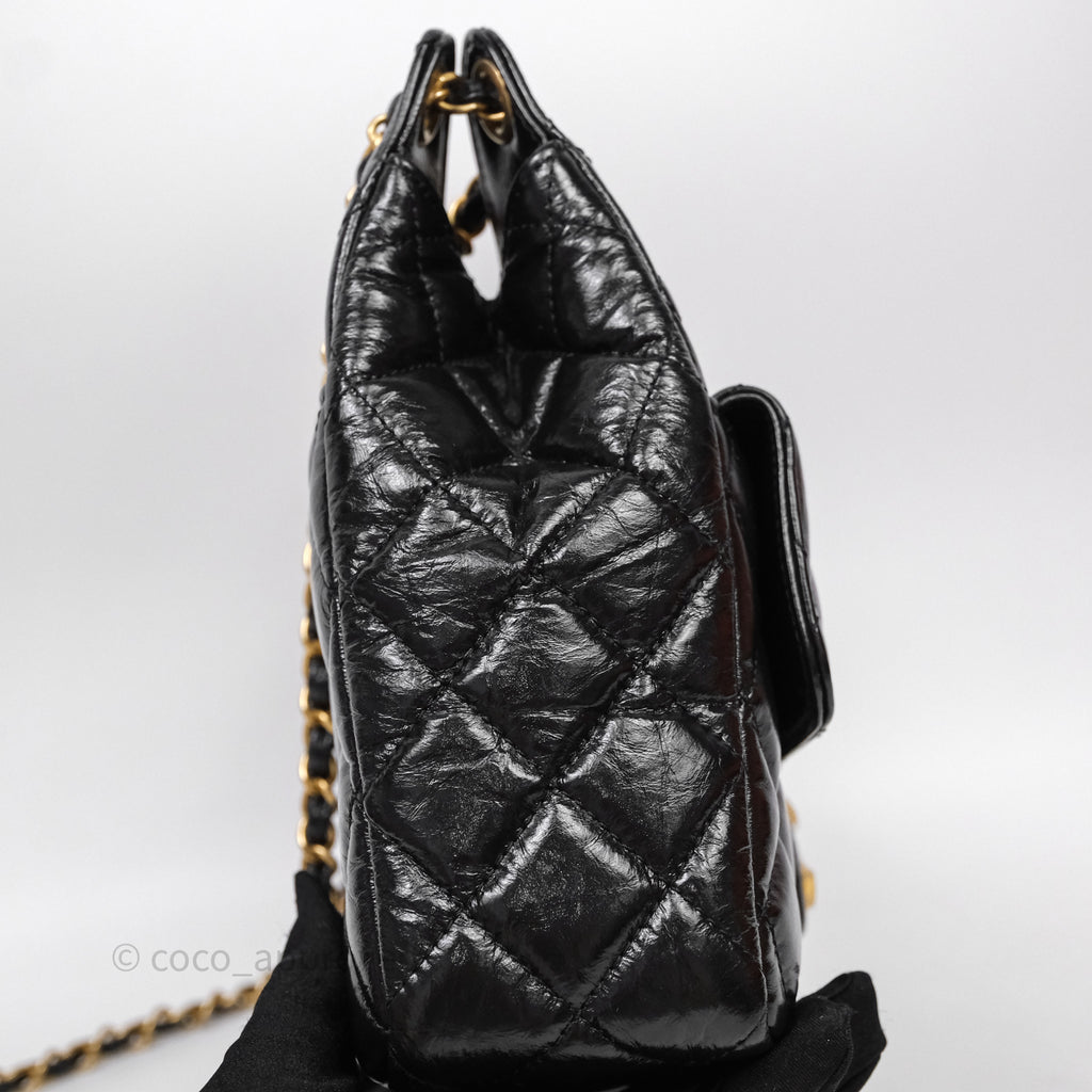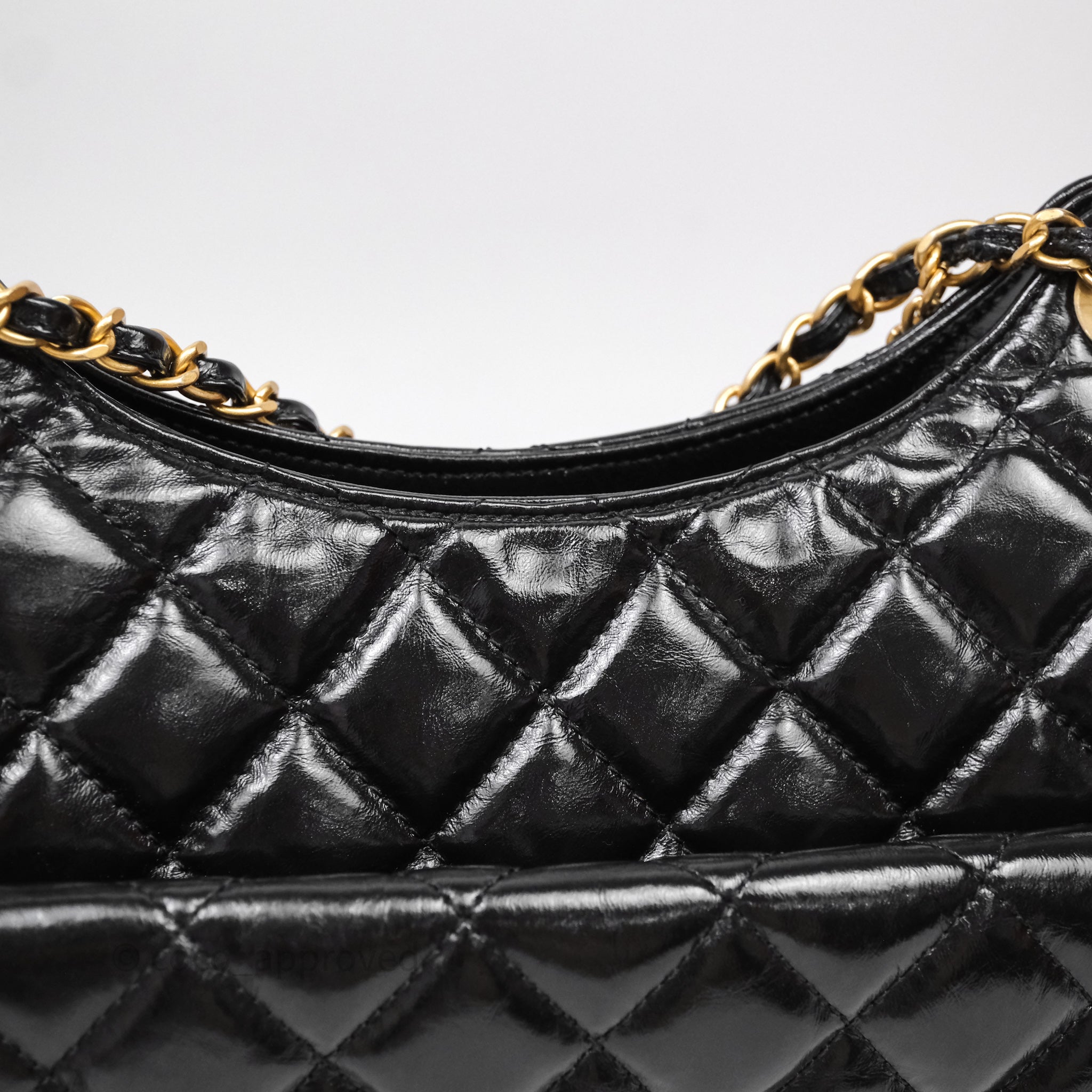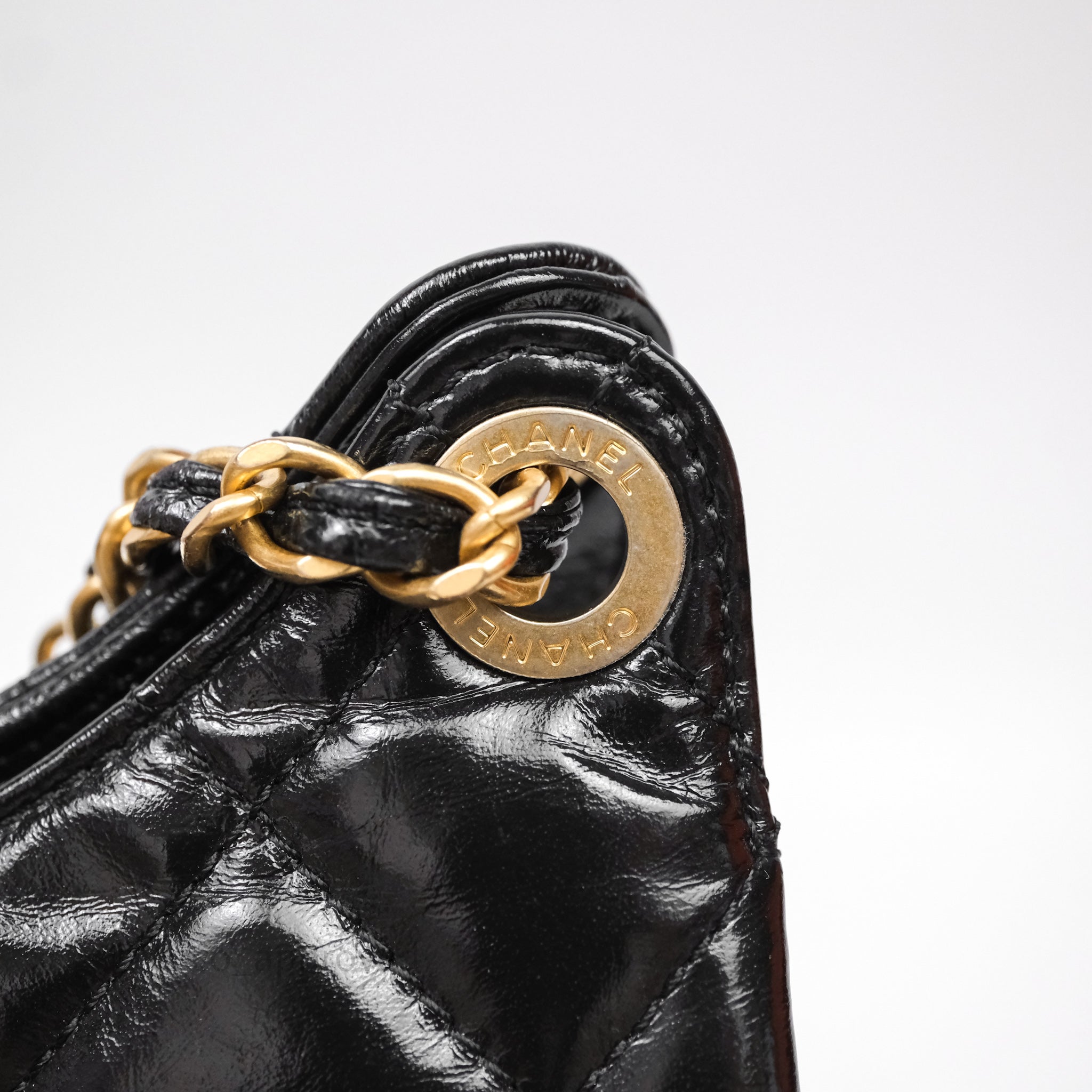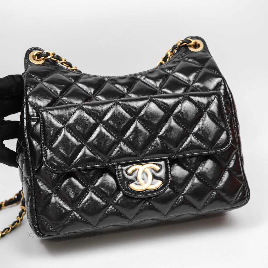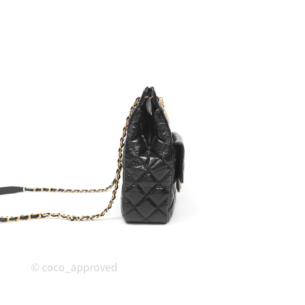 Chanel Medium Quilted Wavy CC Hobo Black Shiny Crumpled Calfskin Aged Gold Hardware