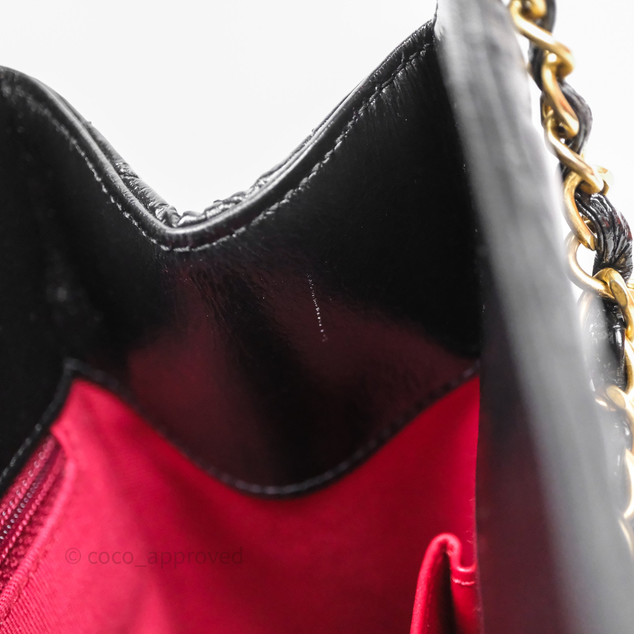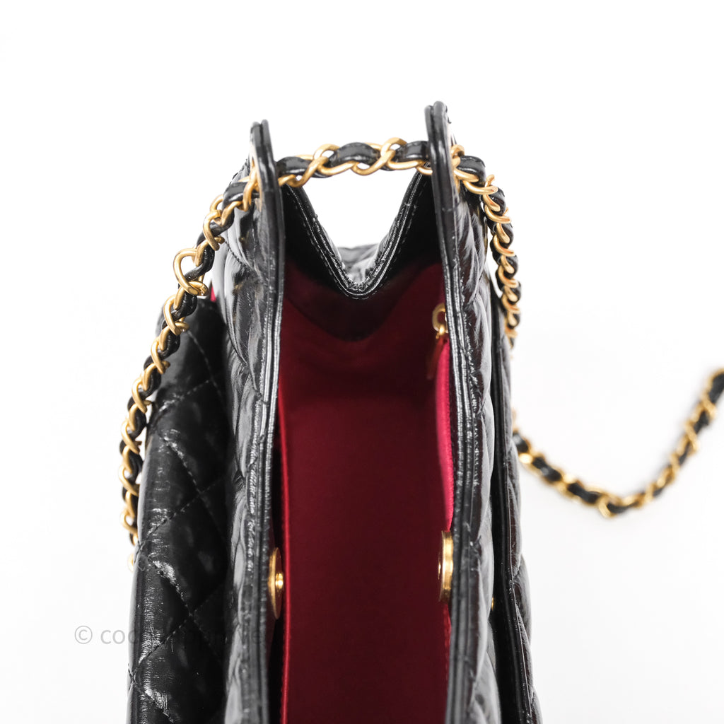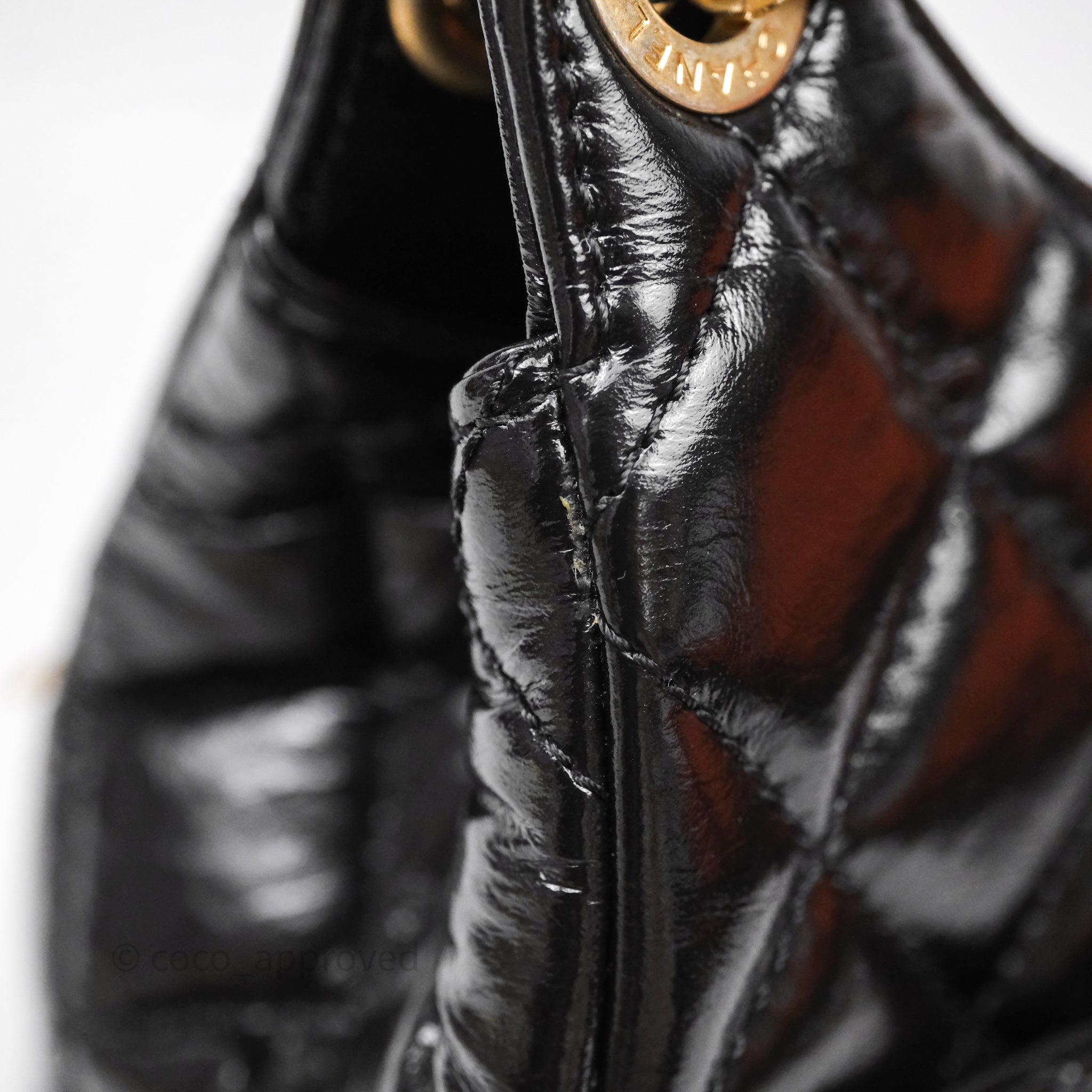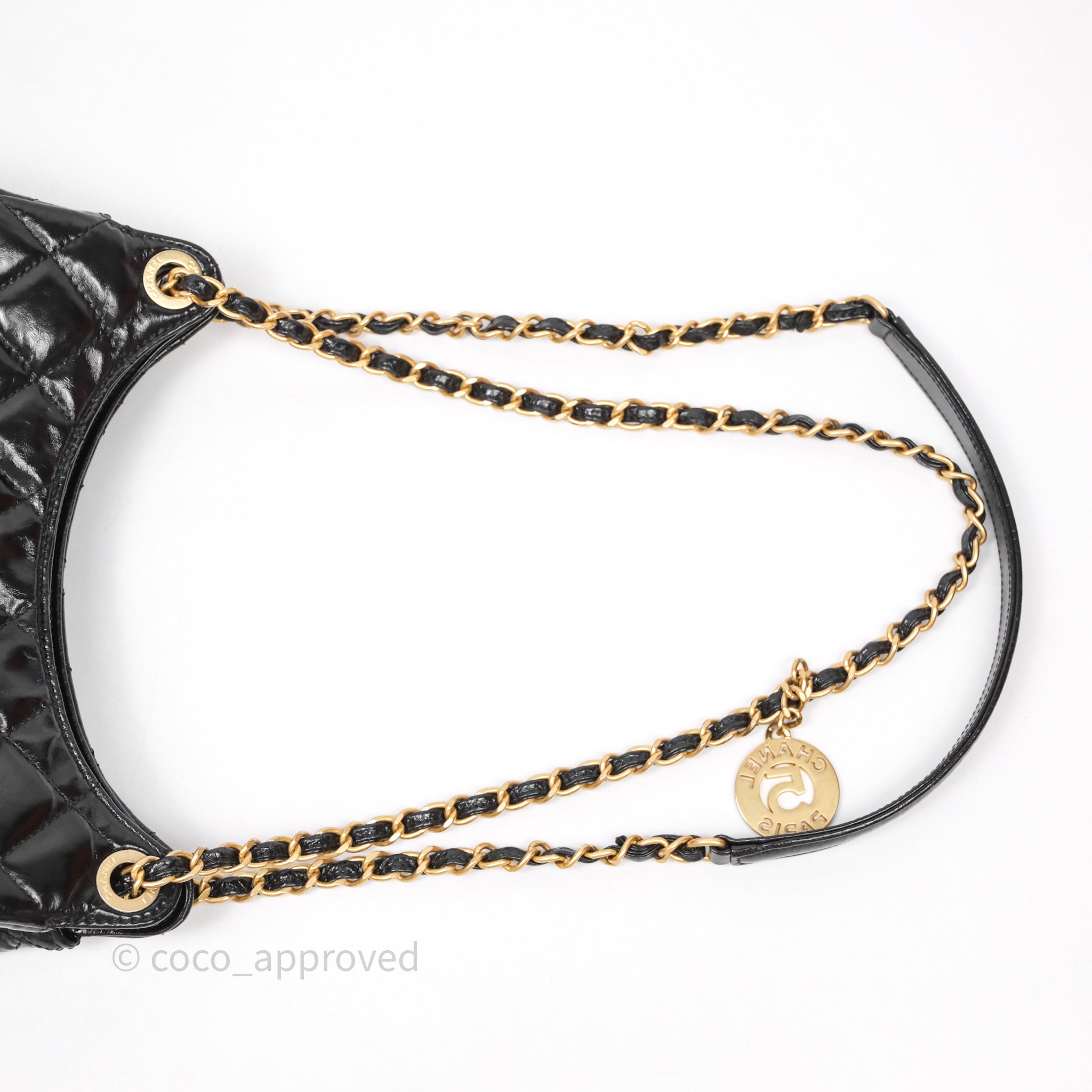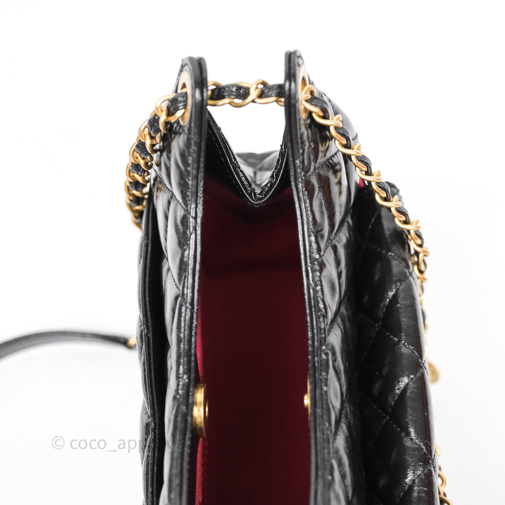 Chanel Medium Quilted Wavy CC Hobo Black Shiny Crumpled Calfskin Aged Gold Hardware
