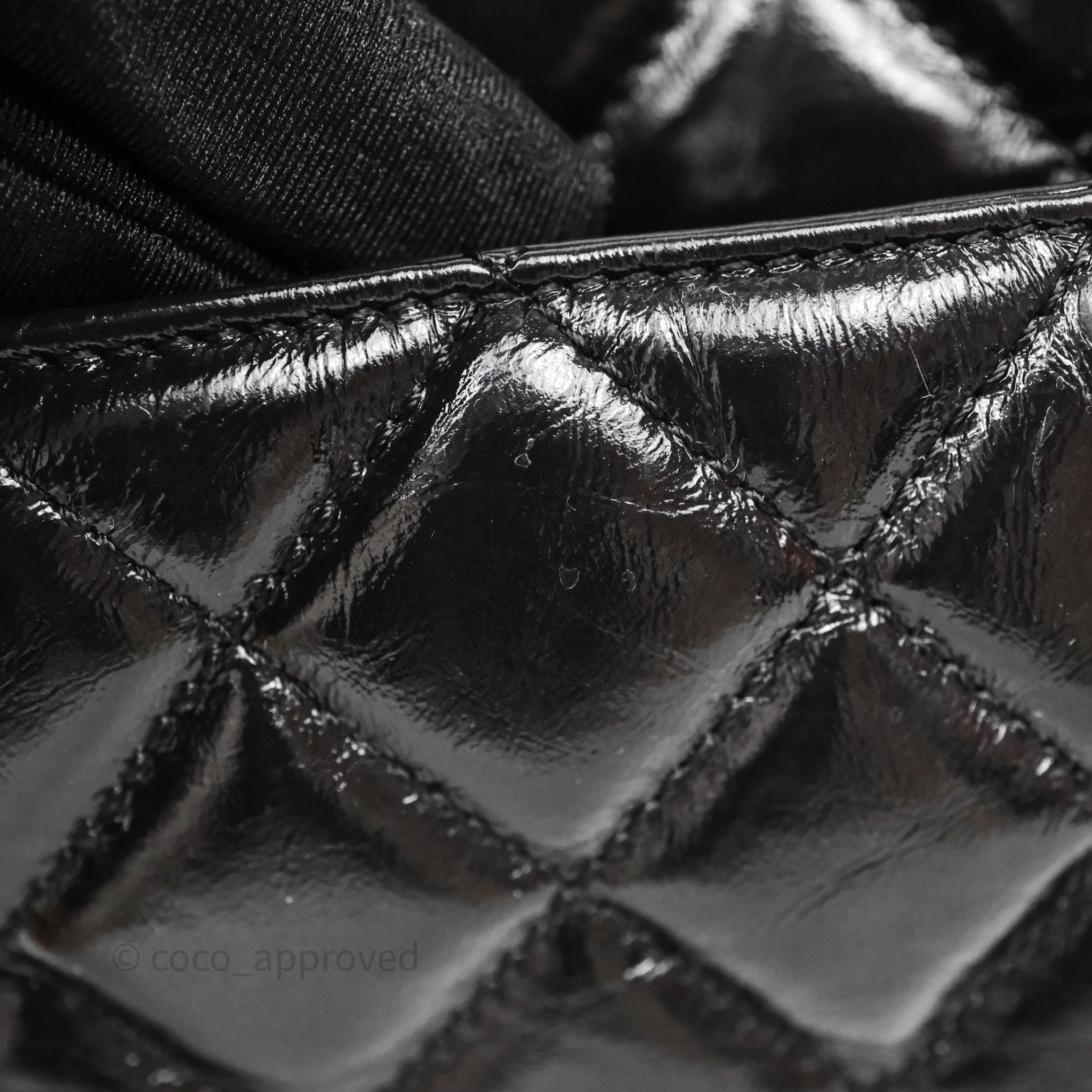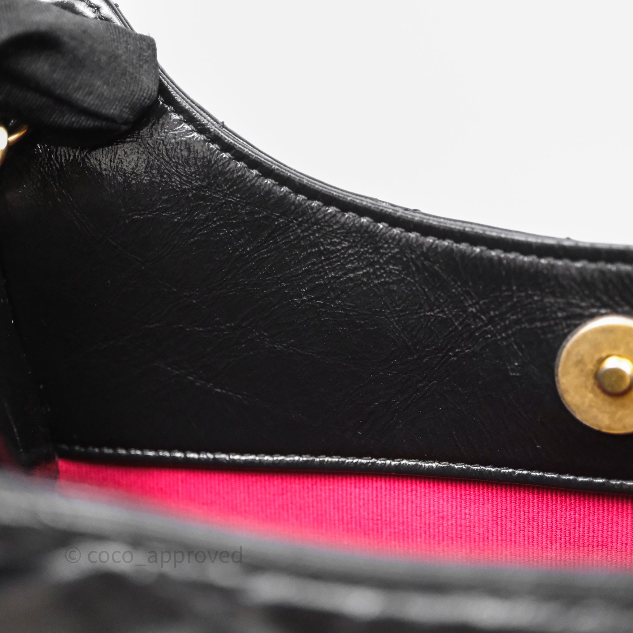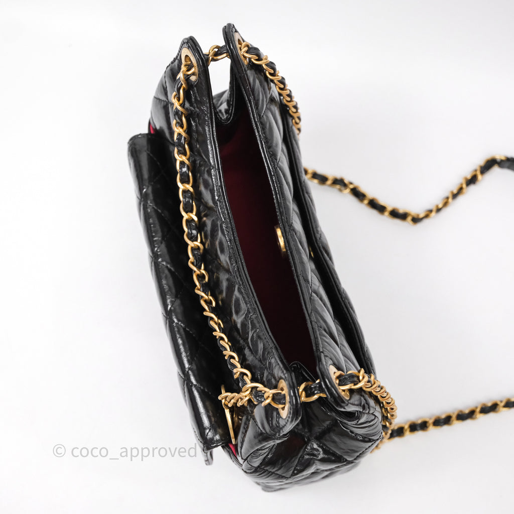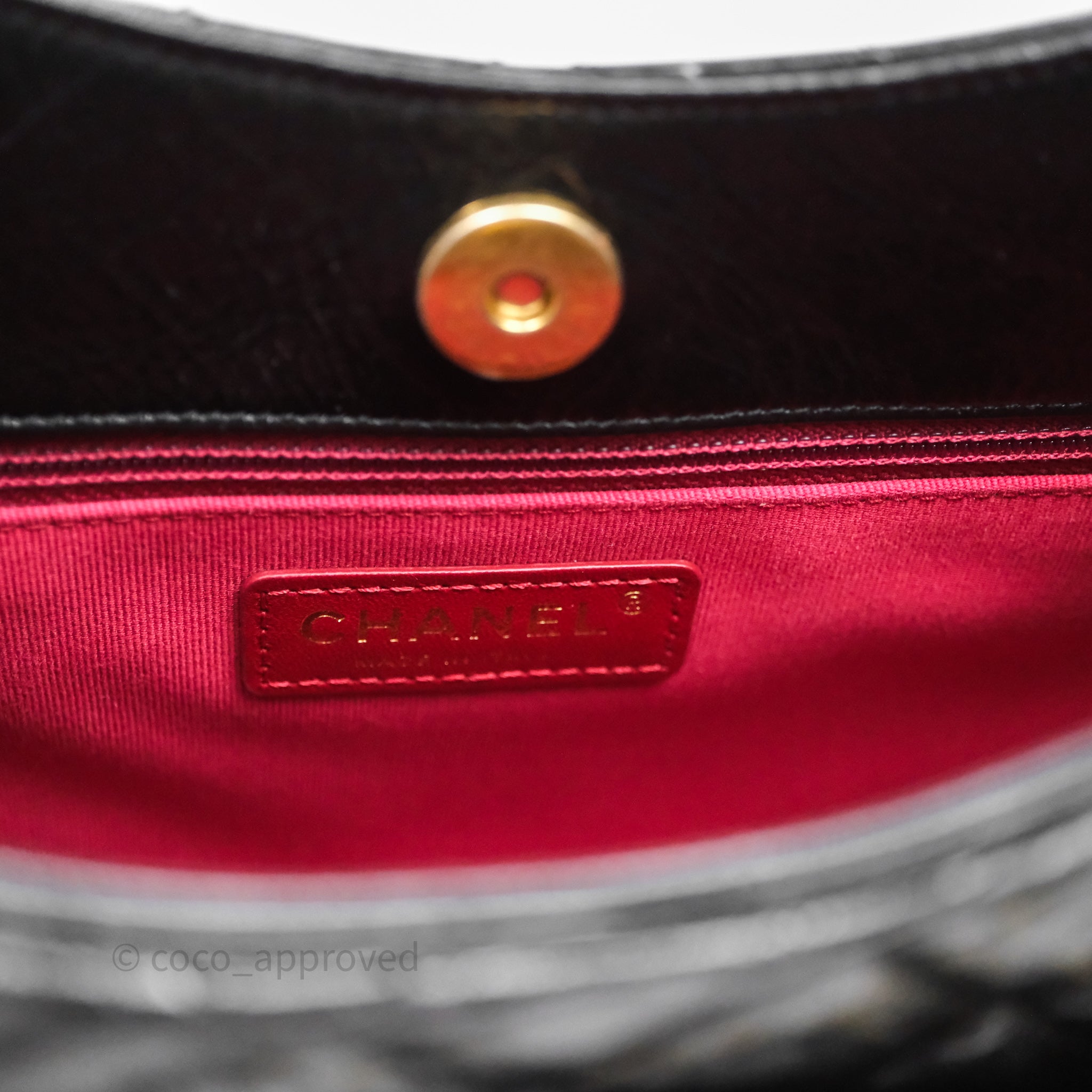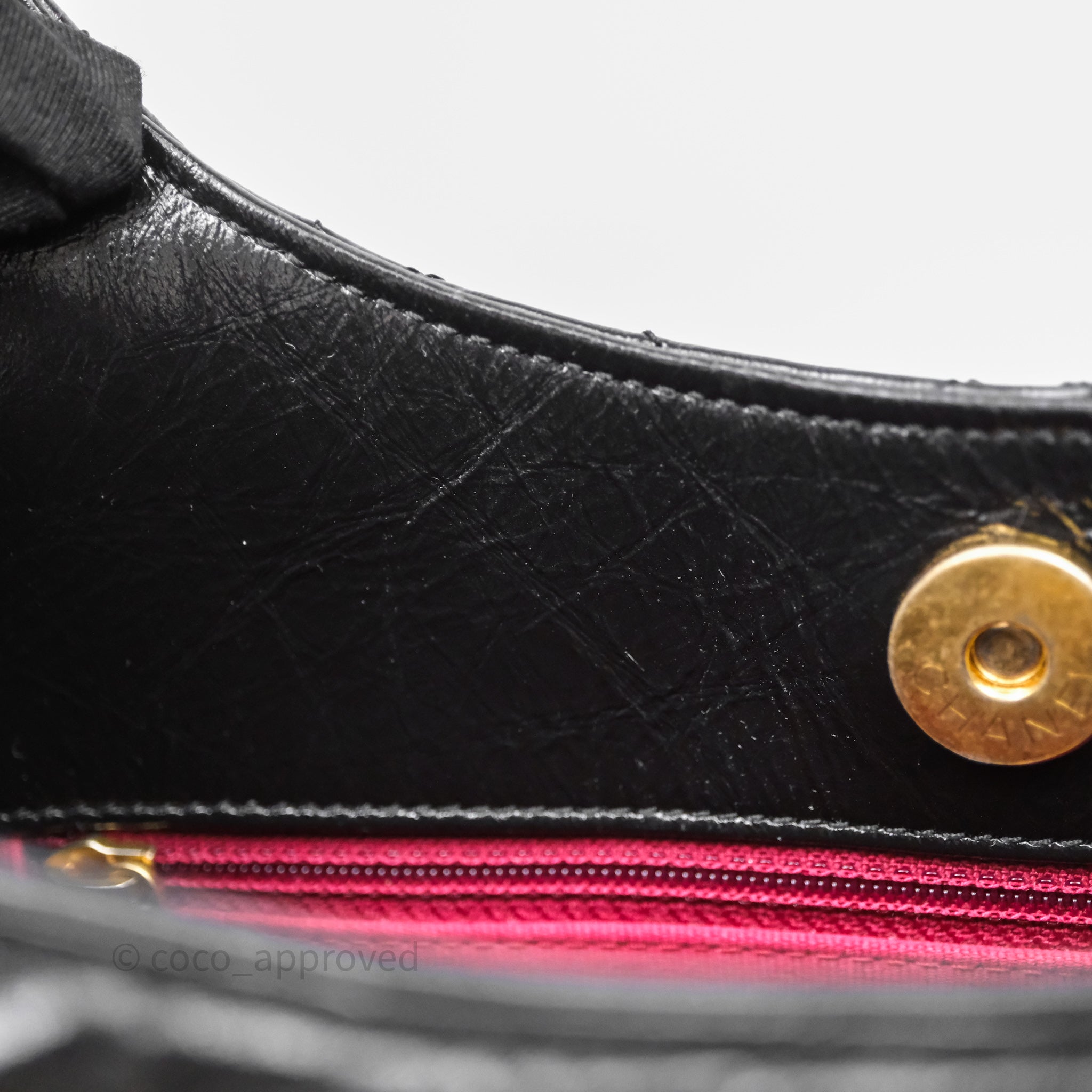 Chanel Medium Quilted Wavy CC Hobo Black Shiny Crumpled Calfskin Aged Gold Hardware
