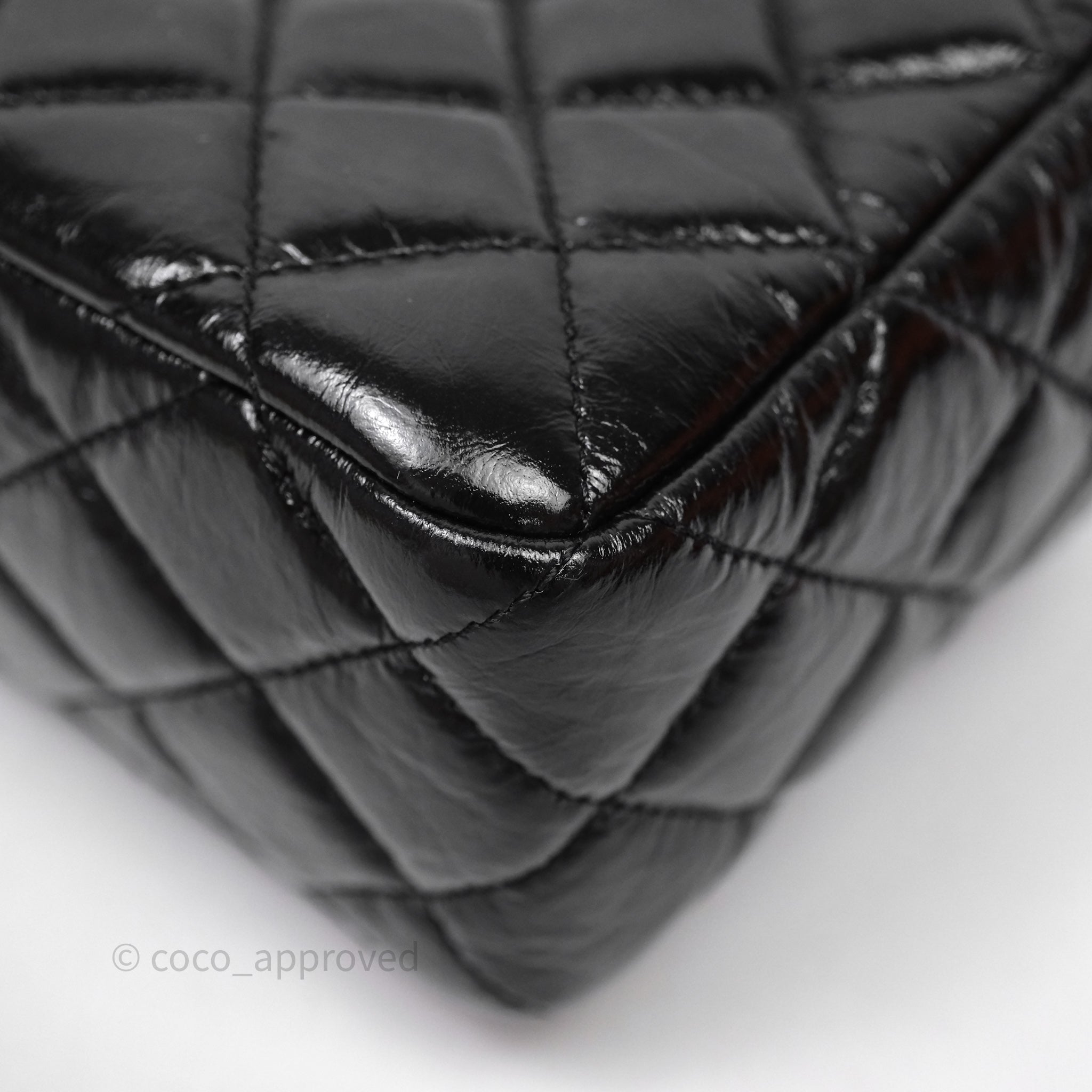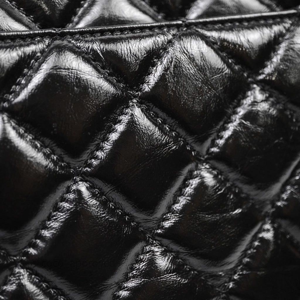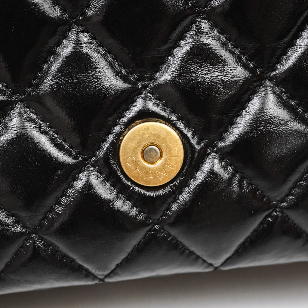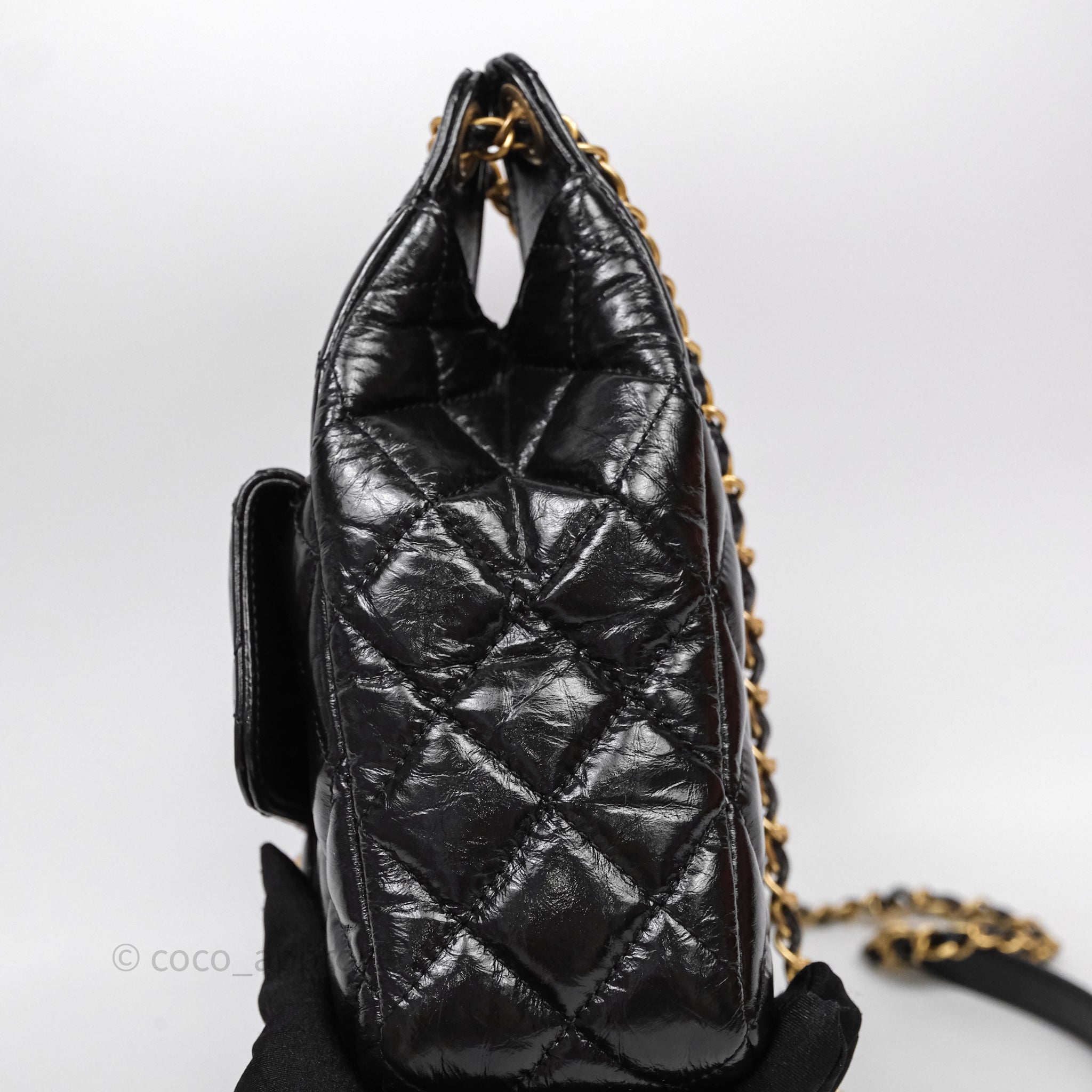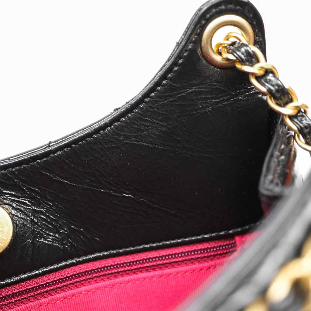 Chanel Medium Quilted Wavy CC Hobo Black Shiny Crumpled Calfskin Aged Gold Hardware