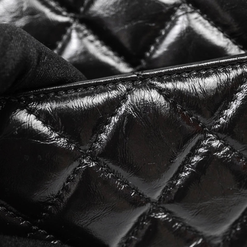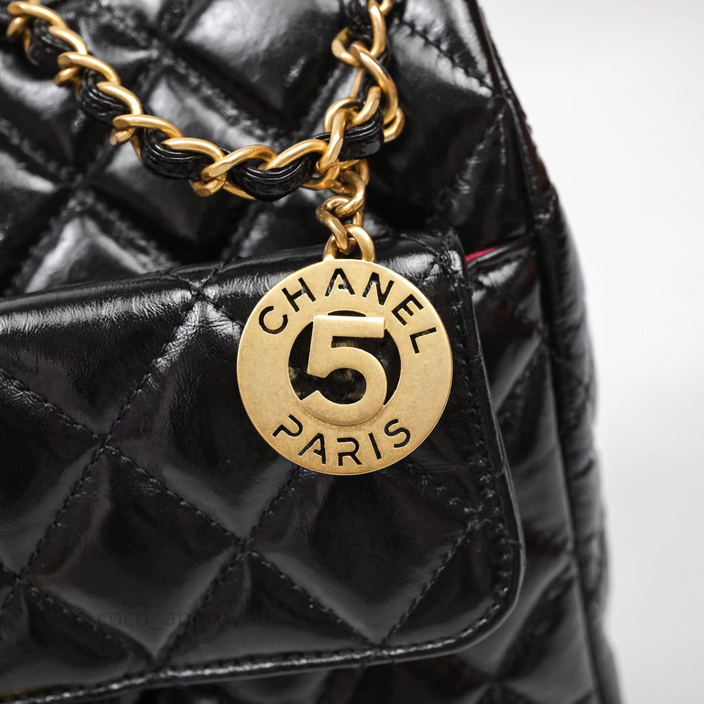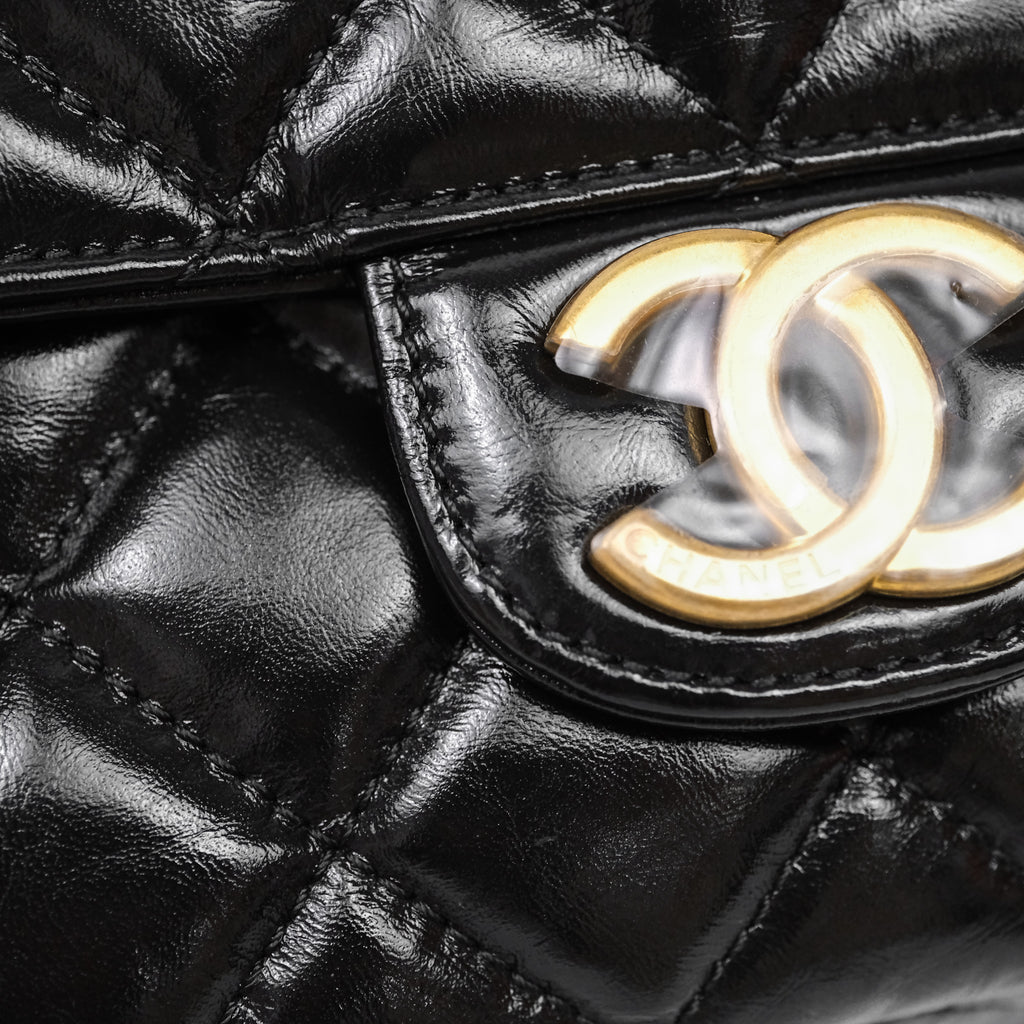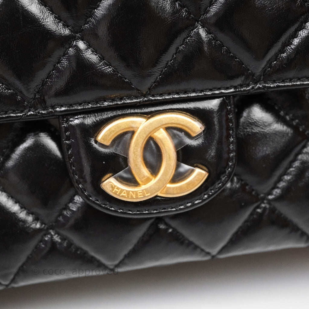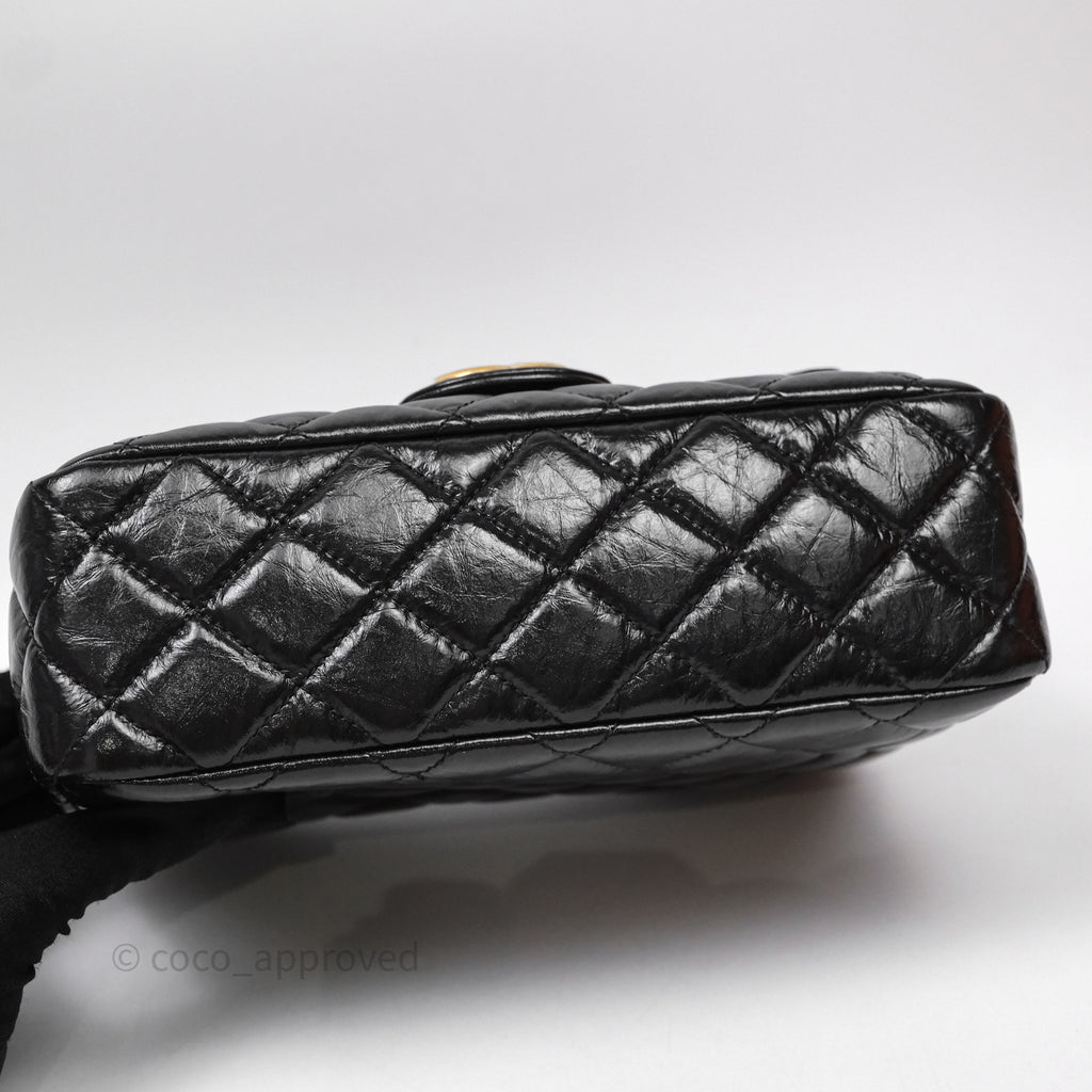 Chanel Medium Quilted Wavy CC Hobo Black Shiny Crumpled Calfskin Aged Gold Hardware