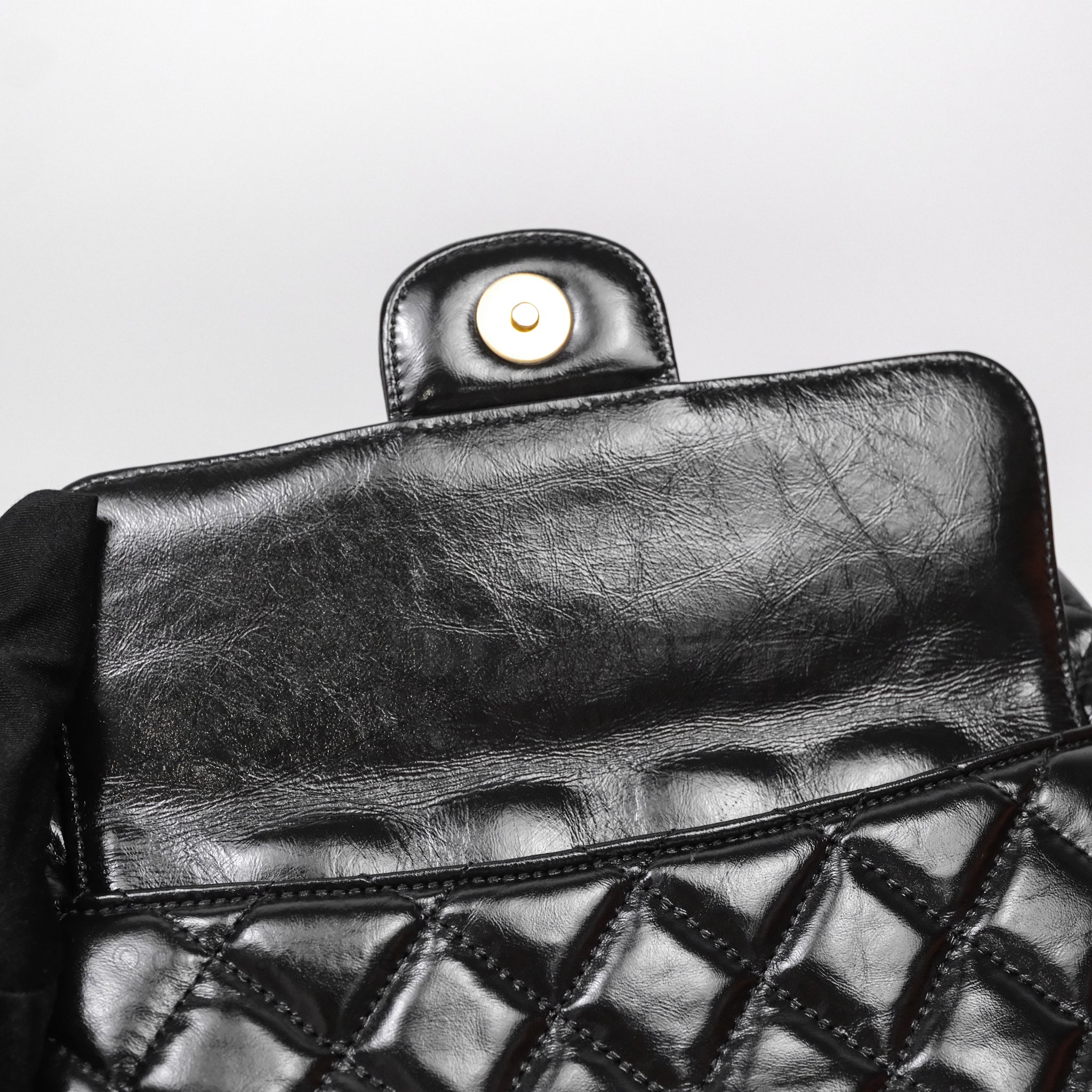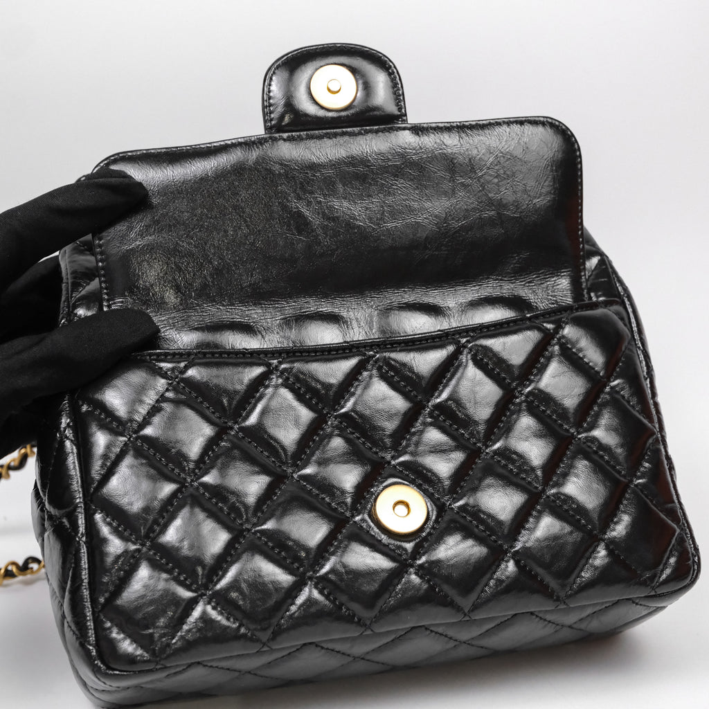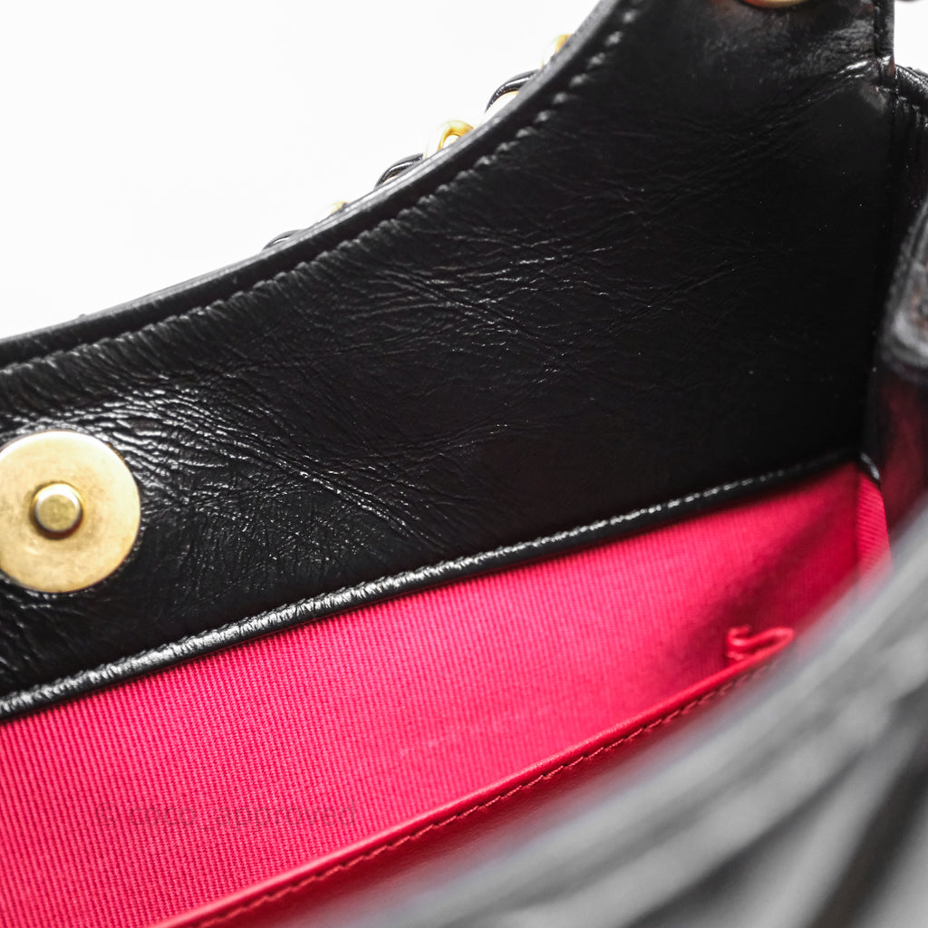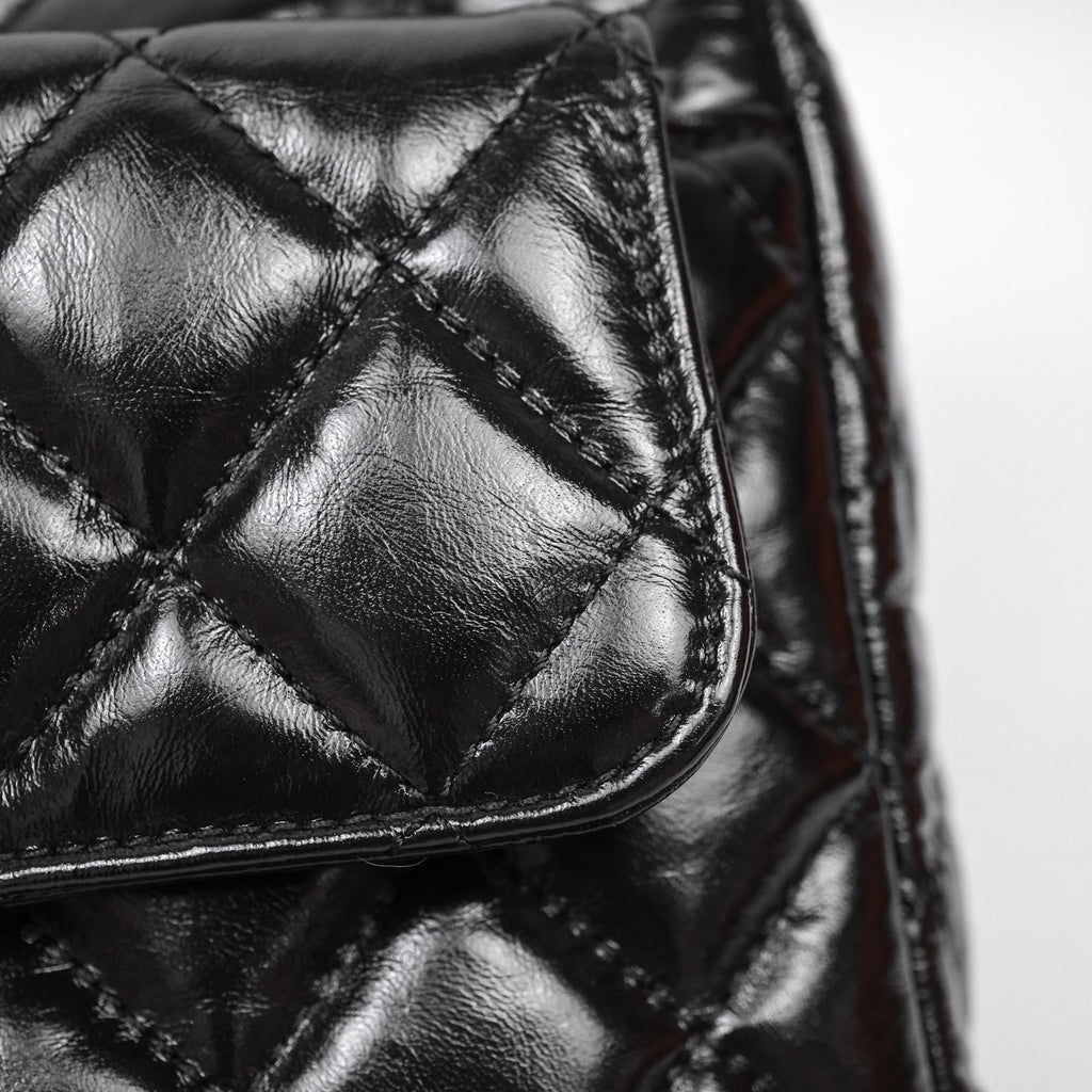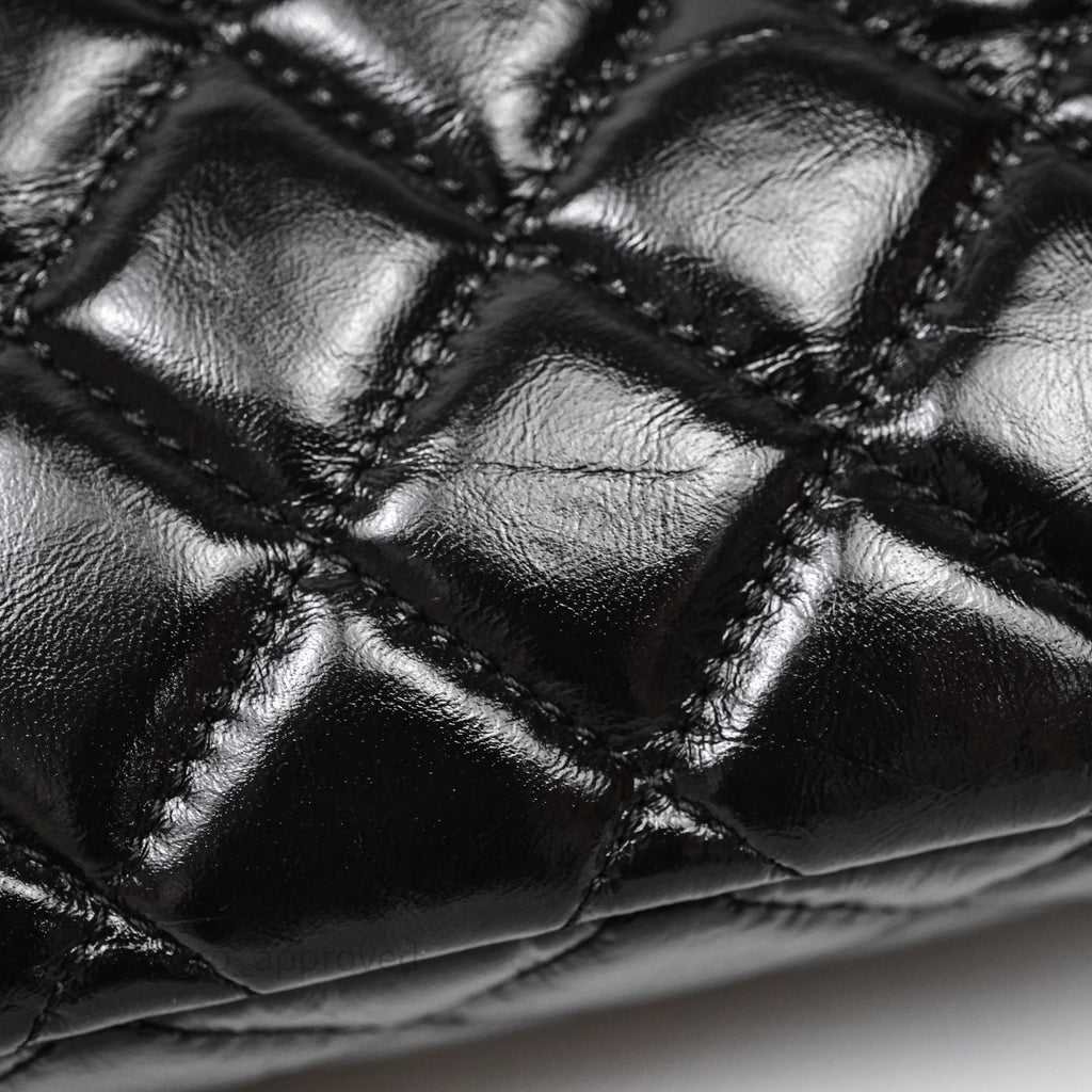 Chanel Medium Quilted Wavy CC Hobo Black Shiny Crumpled Calfskin Aged Gold Hardware