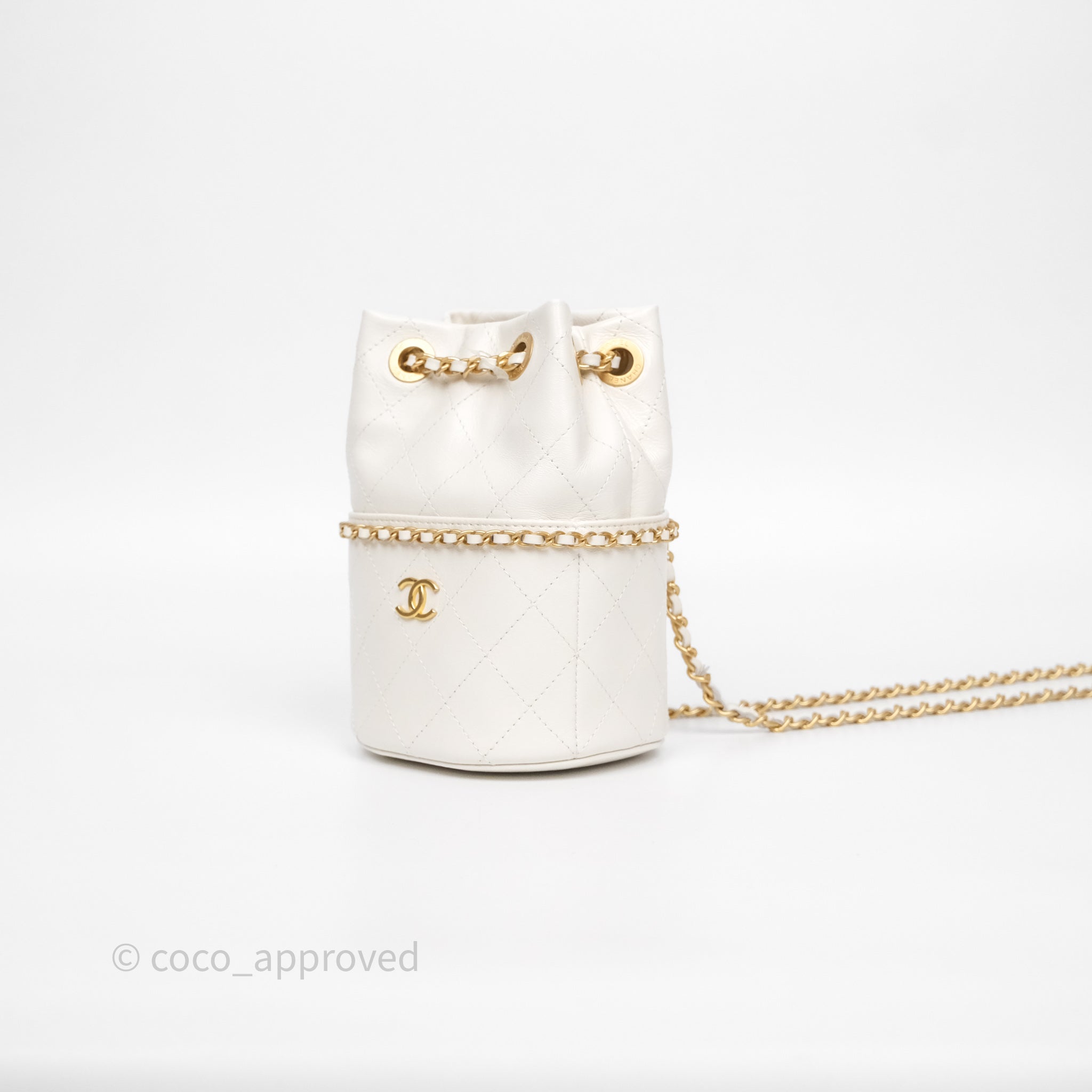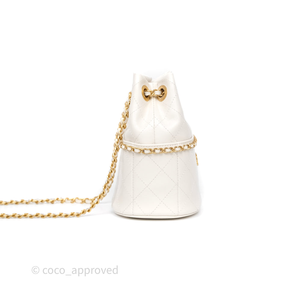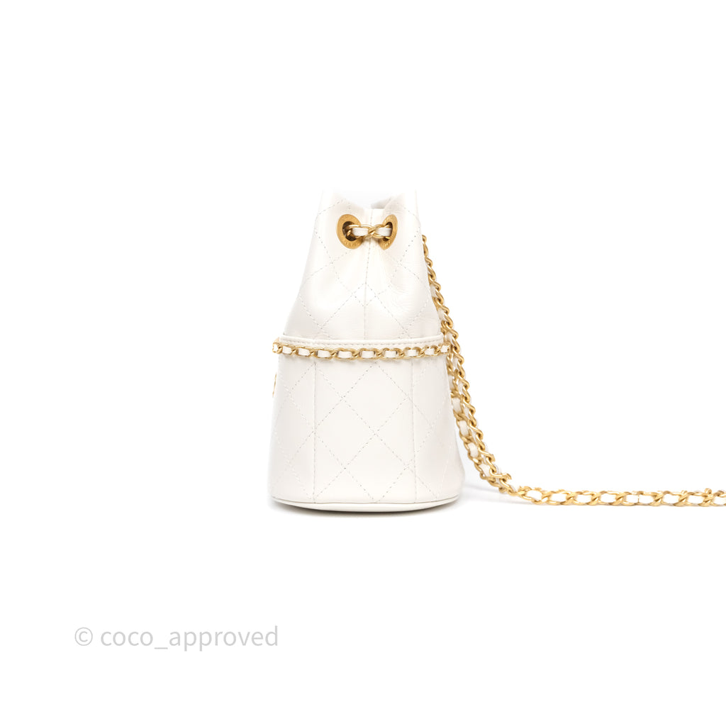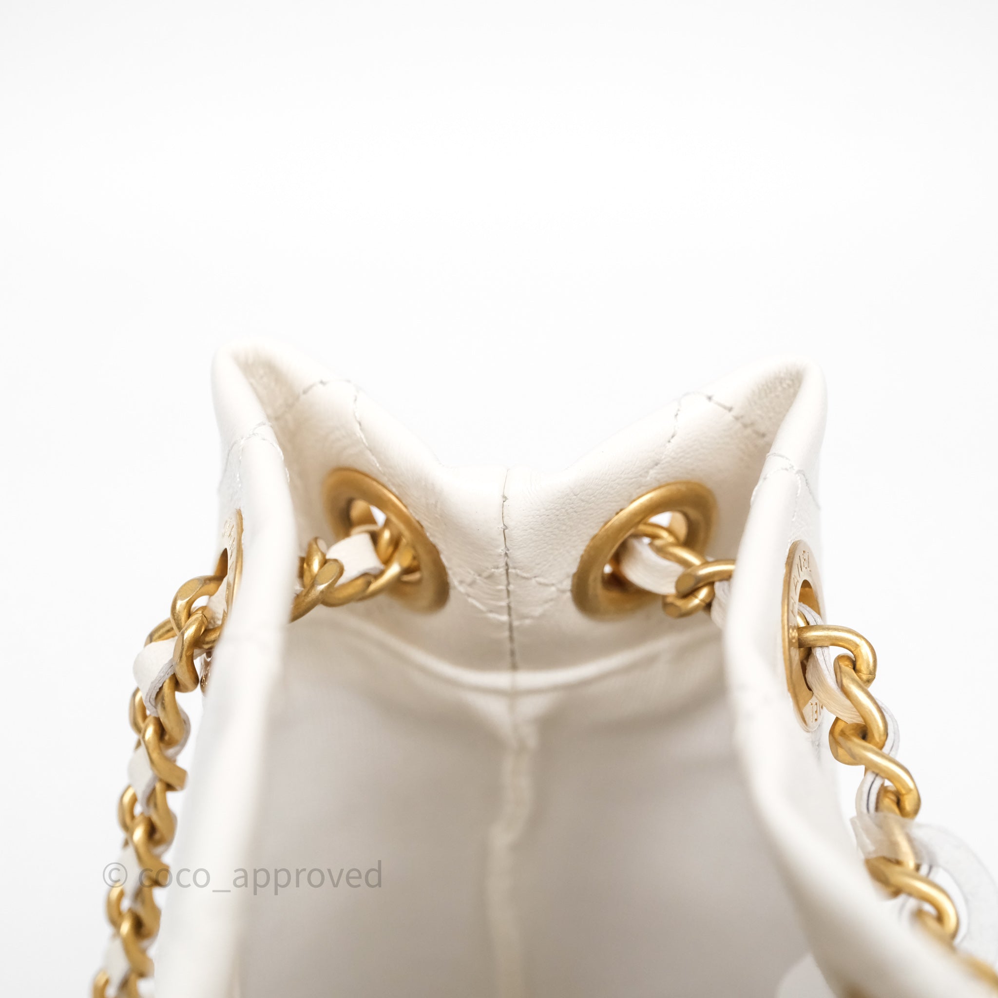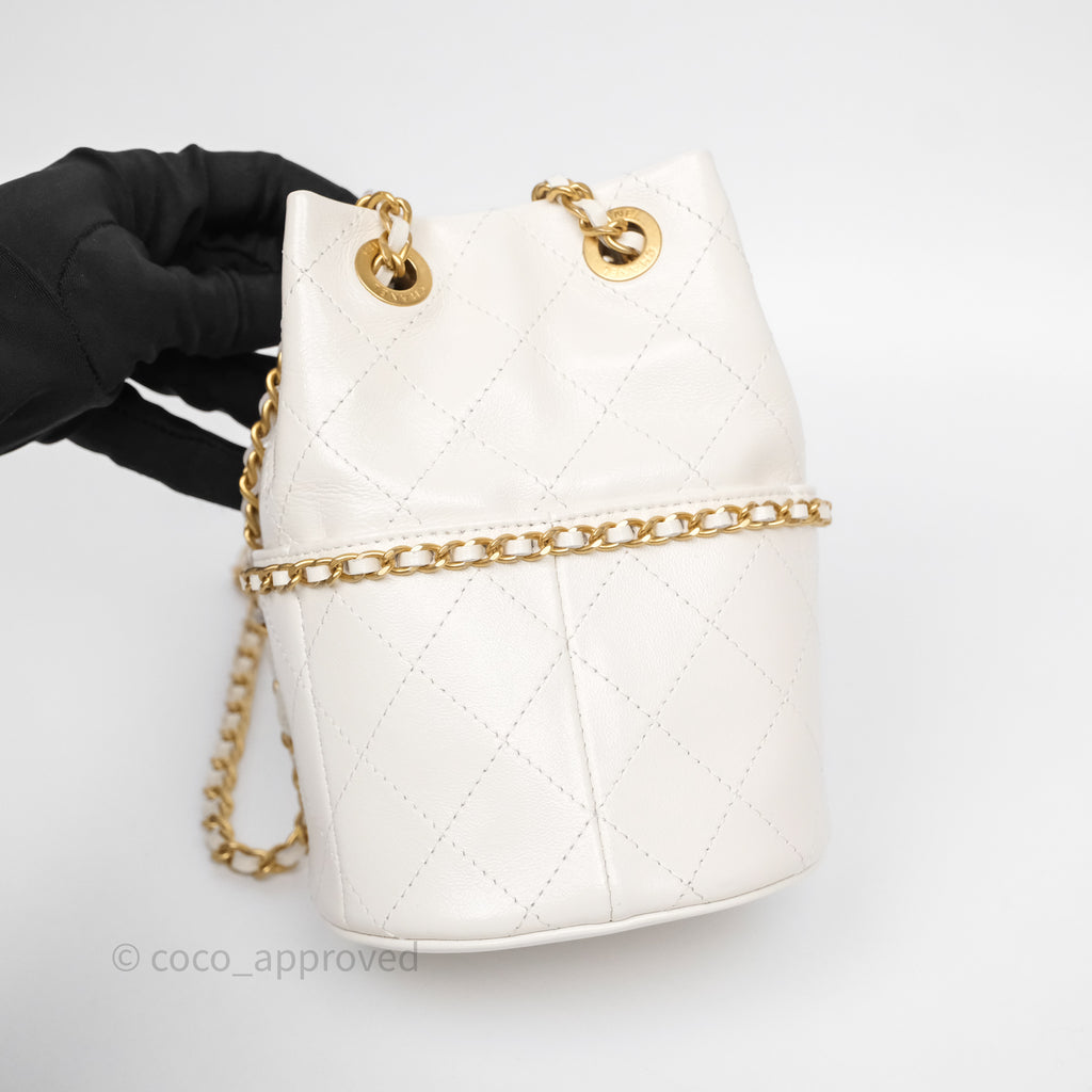 Chanel Mini Bucket Bag White Shiny Lambskin Aged Gold Hardware 25C