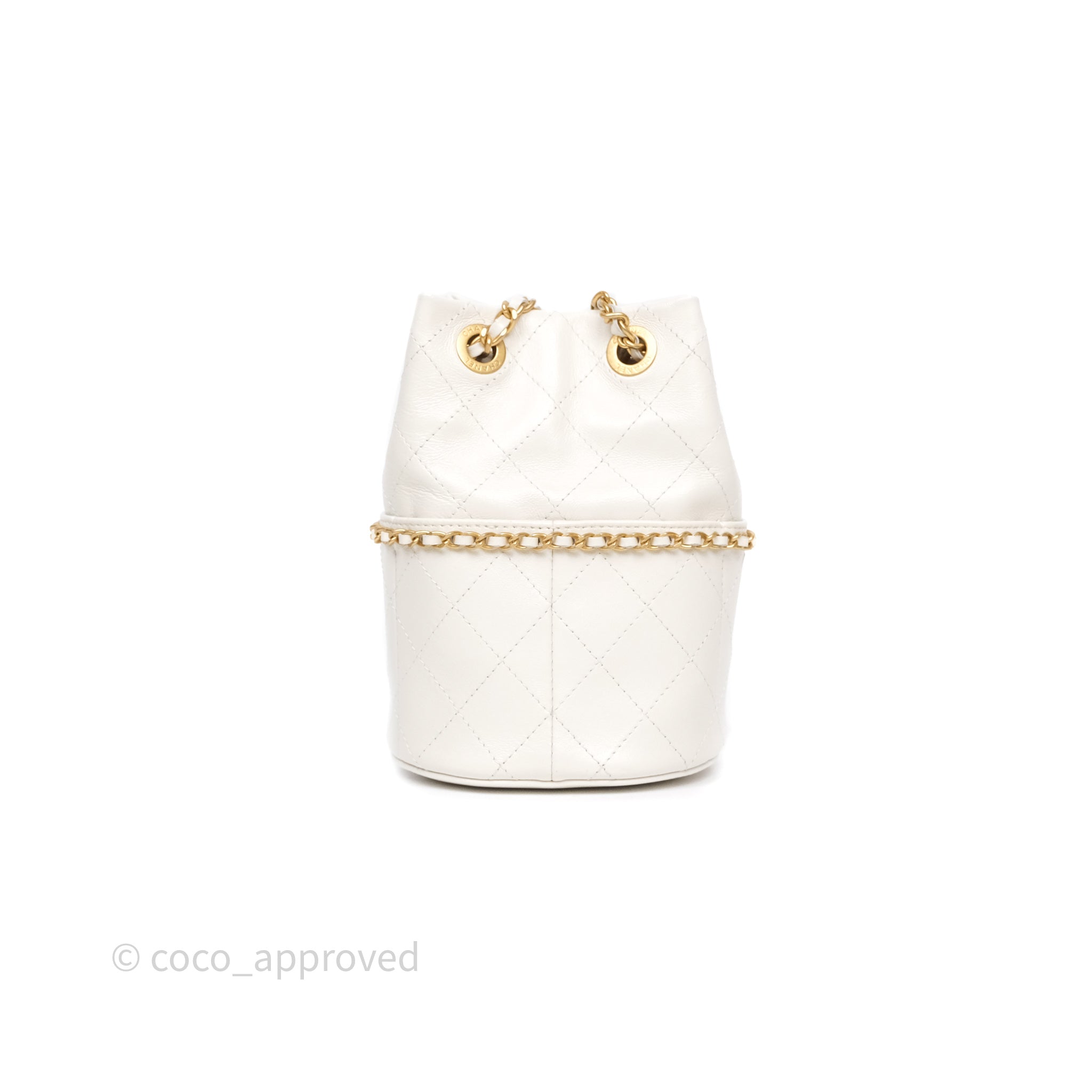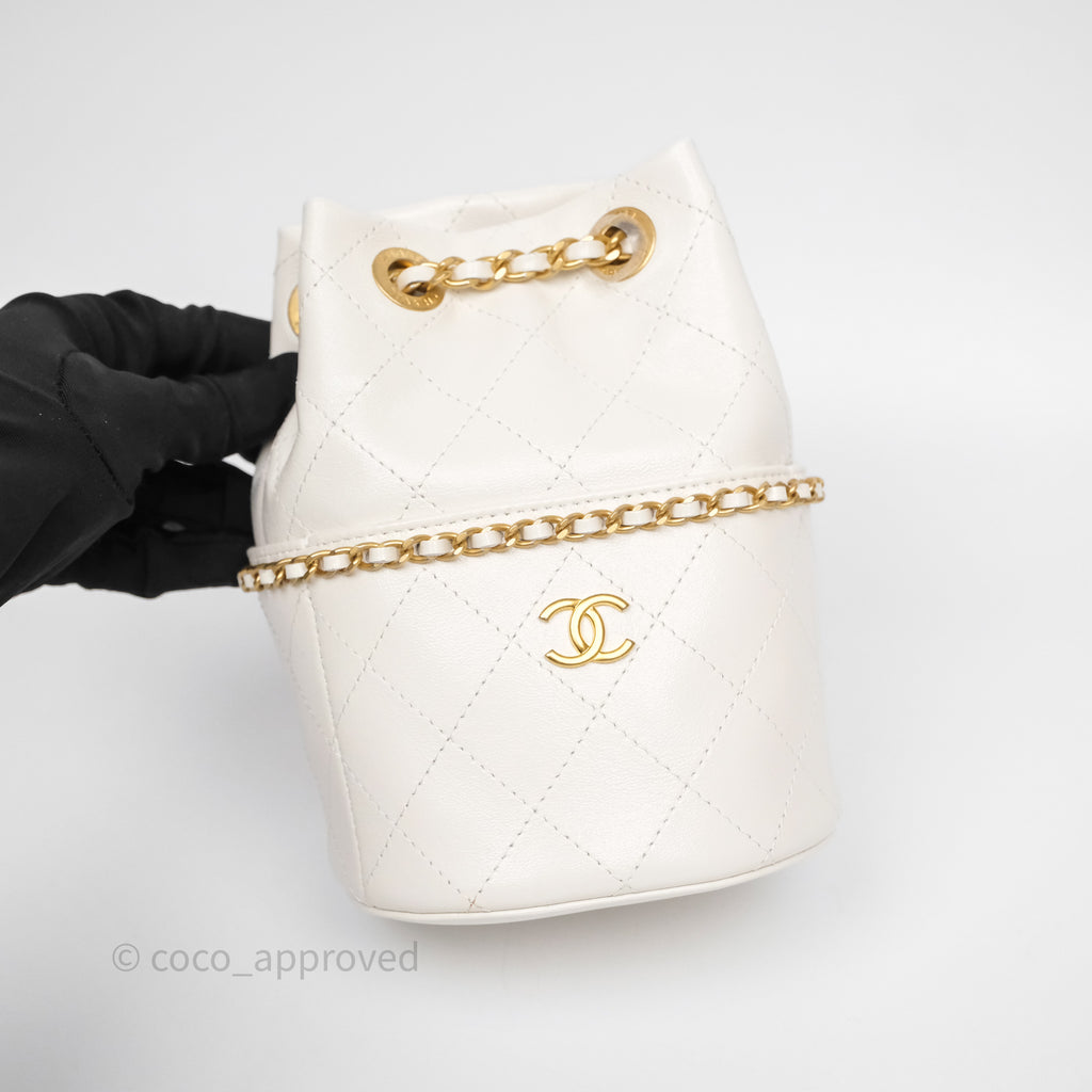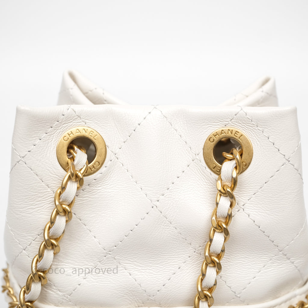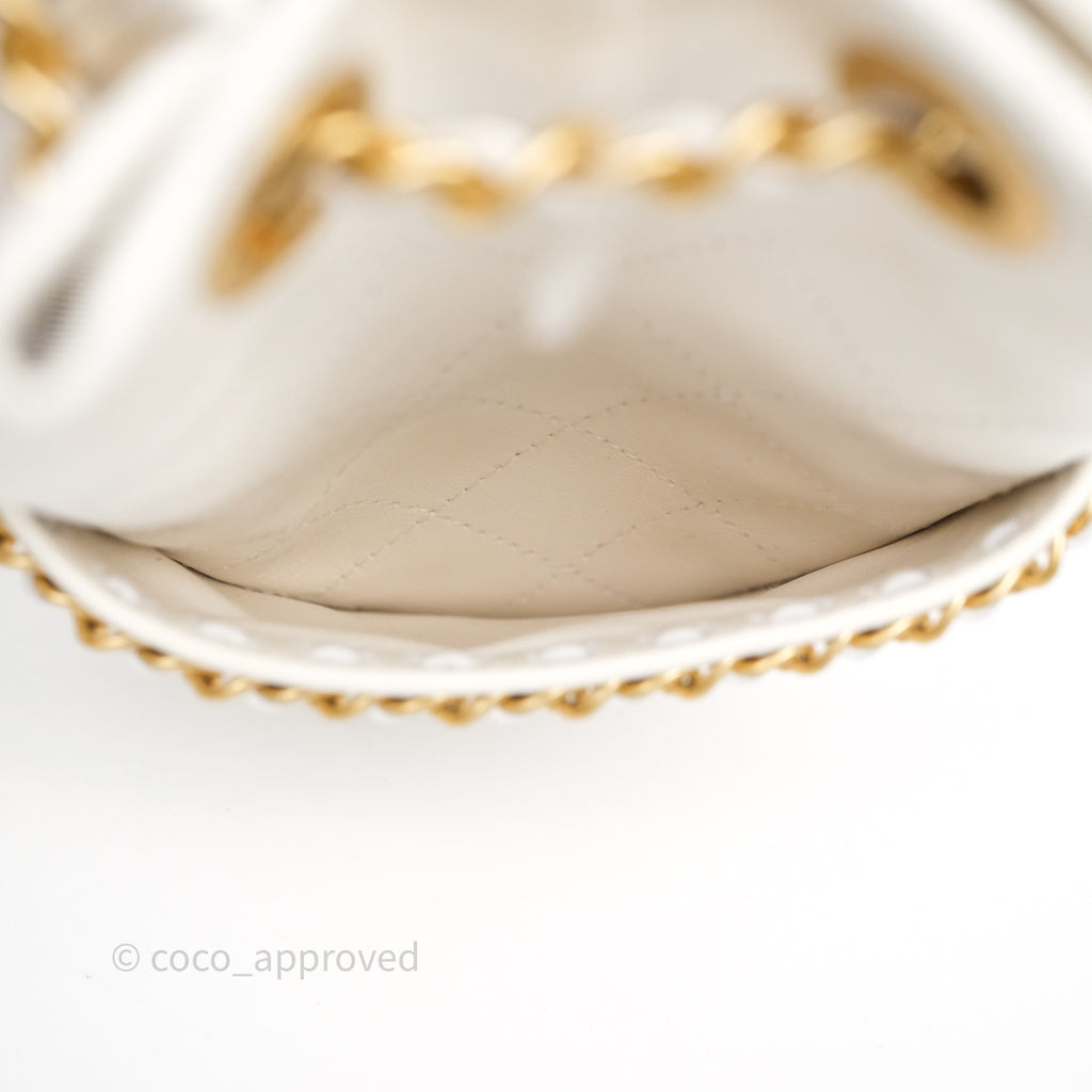 Chanel Mini Bucket Bag White Shiny Lambskin Aged Gold Hardware 25C