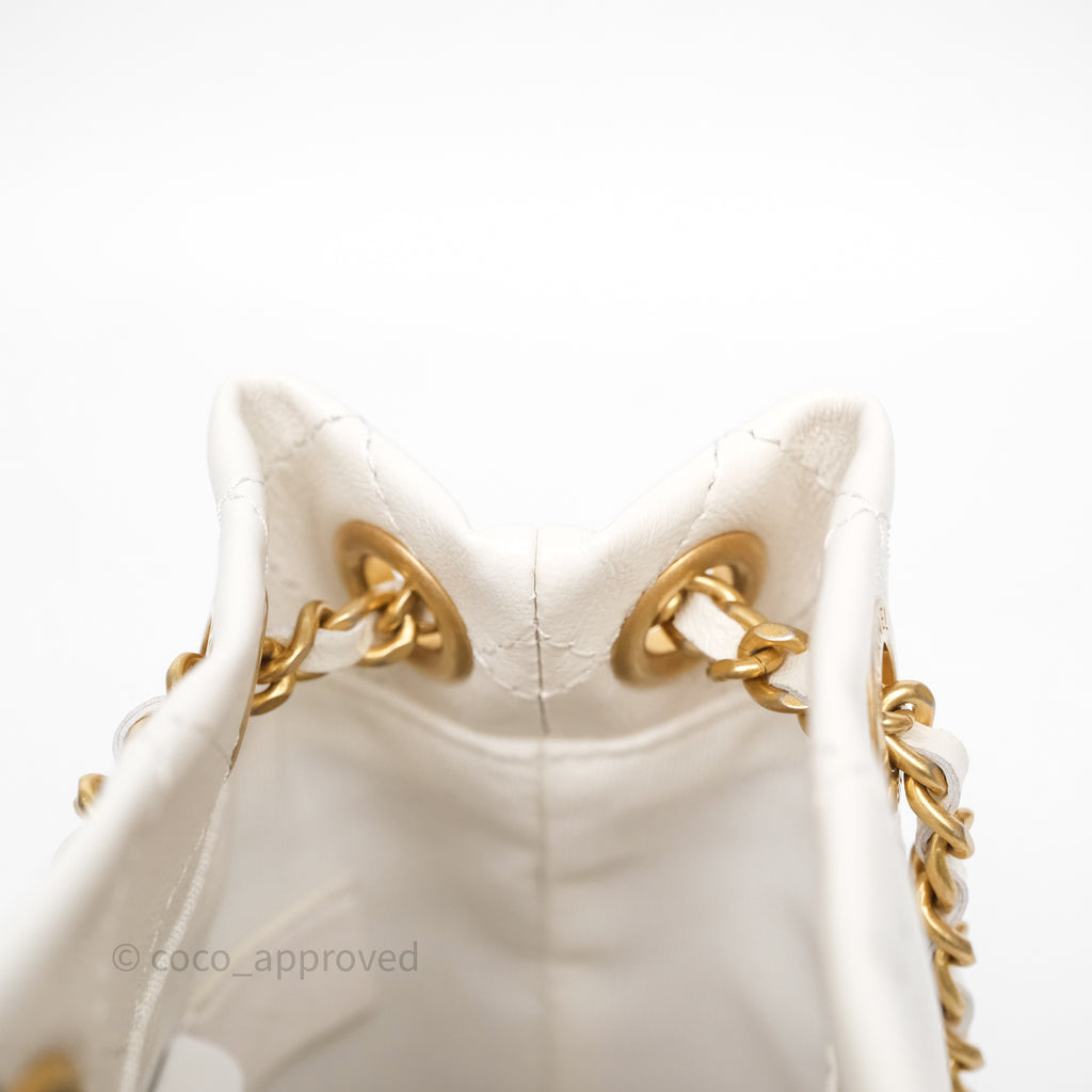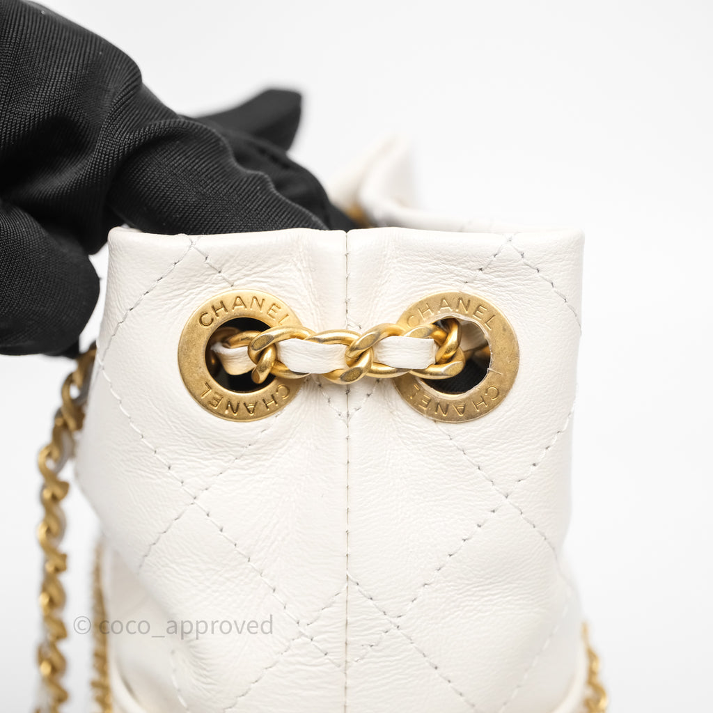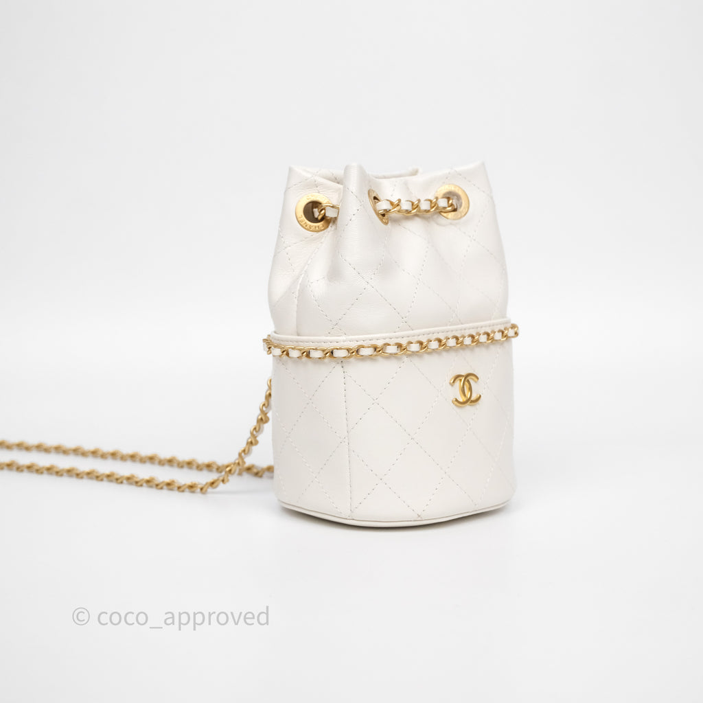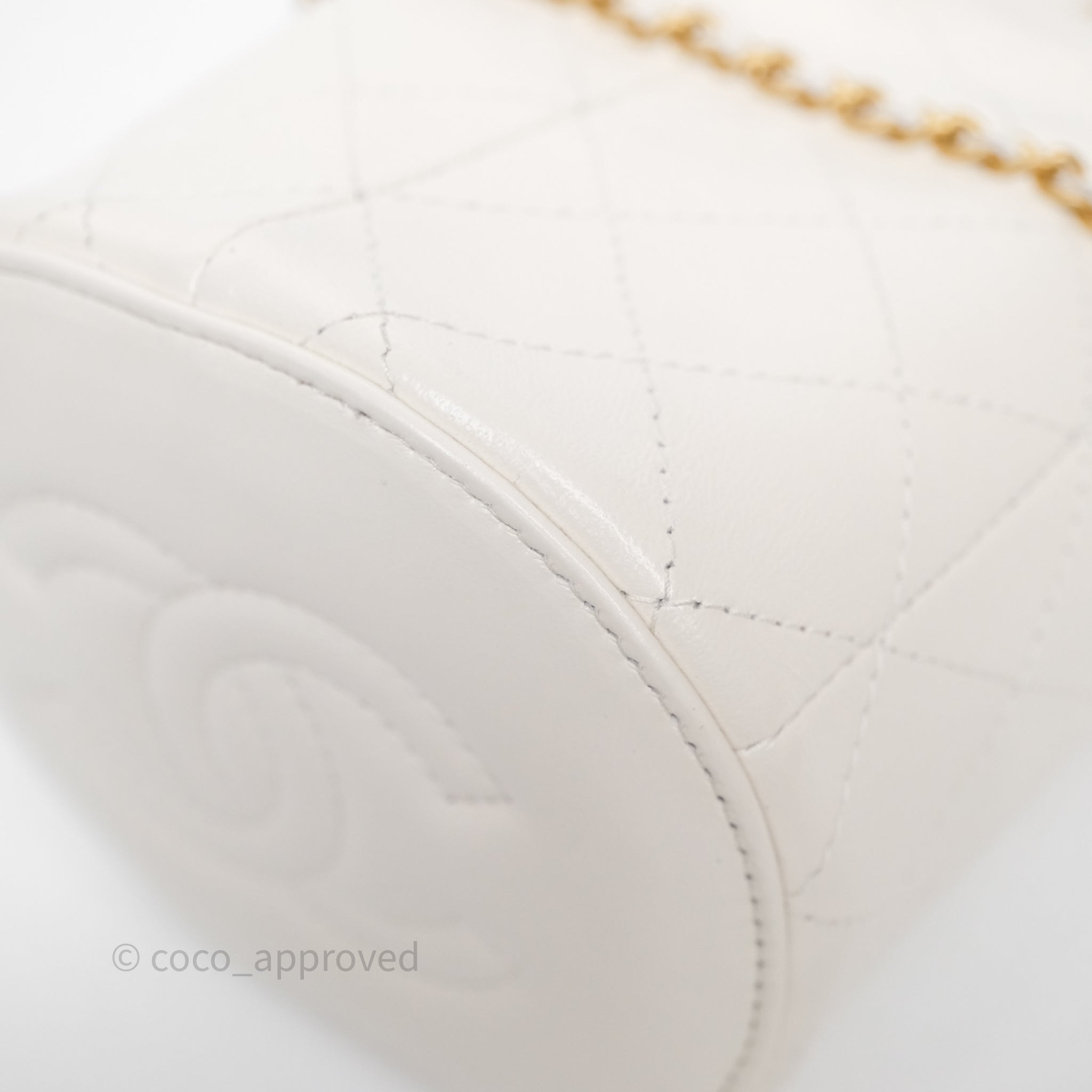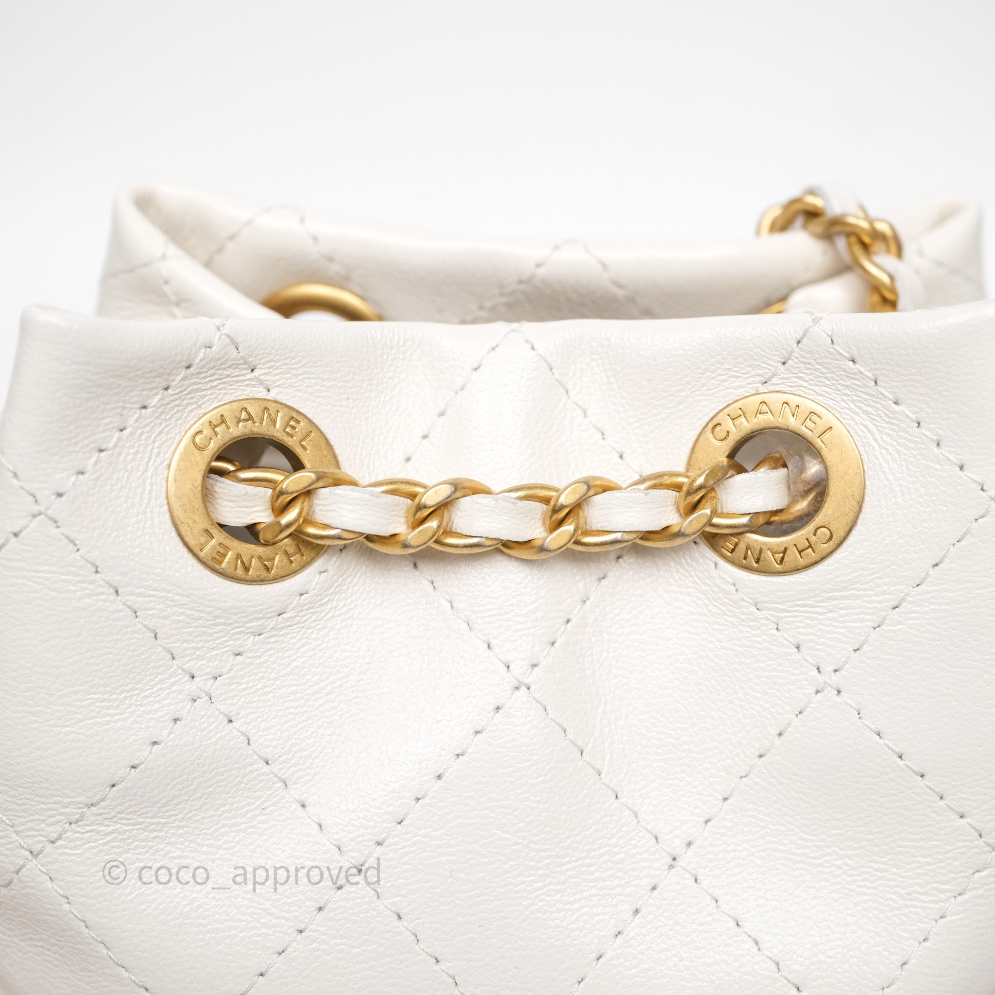 Chanel Mini Bucket Bag White Shiny Lambskin Aged Gold Hardware 25C