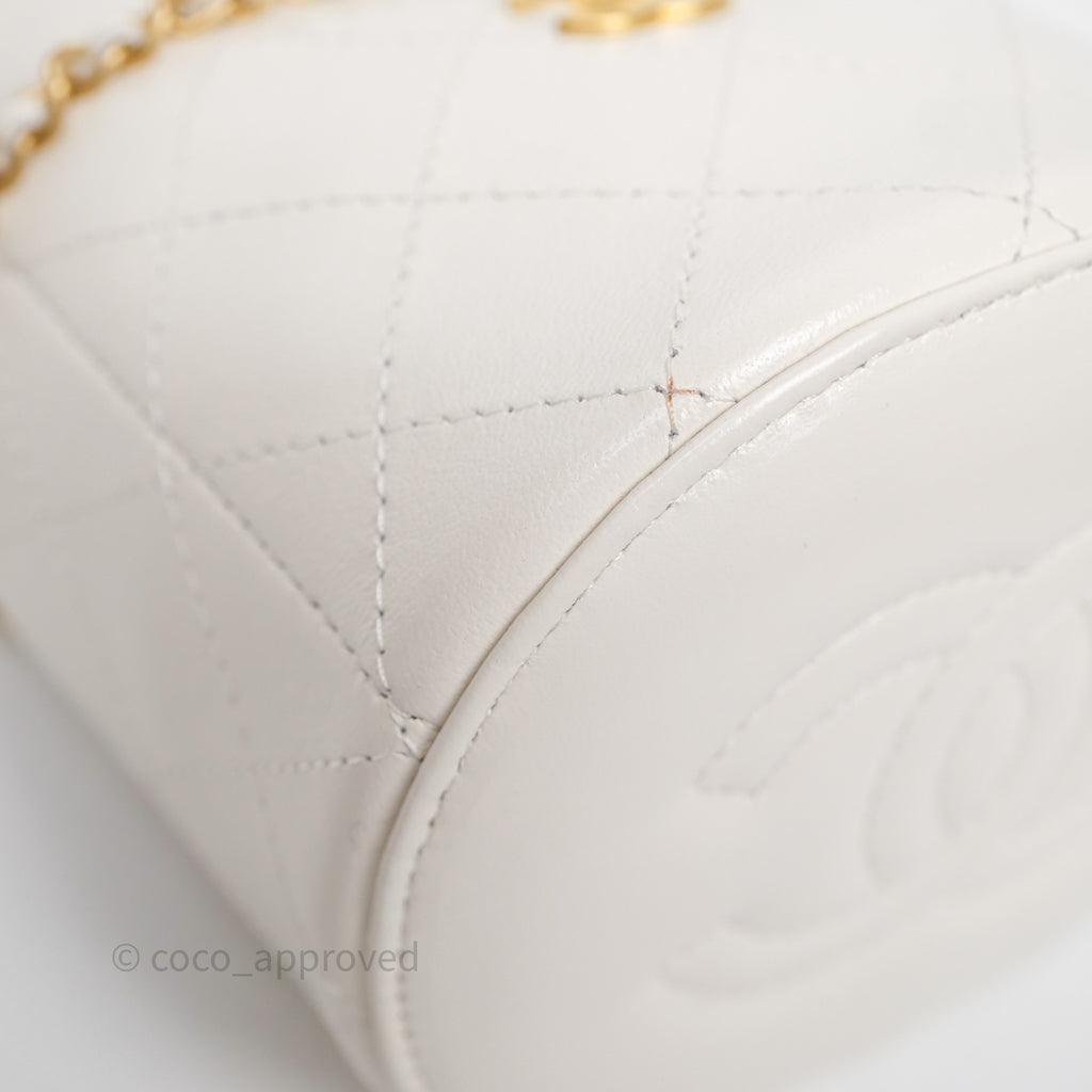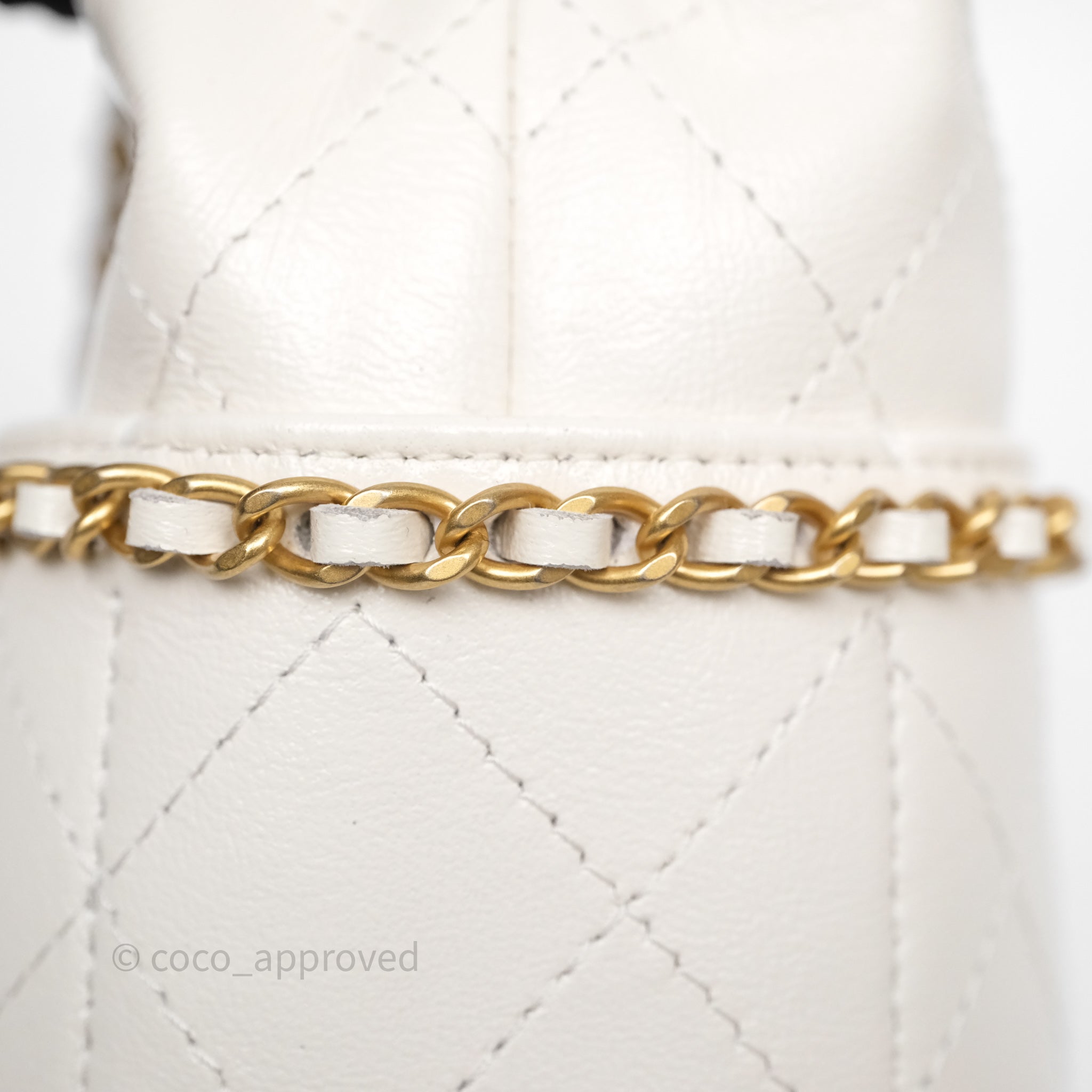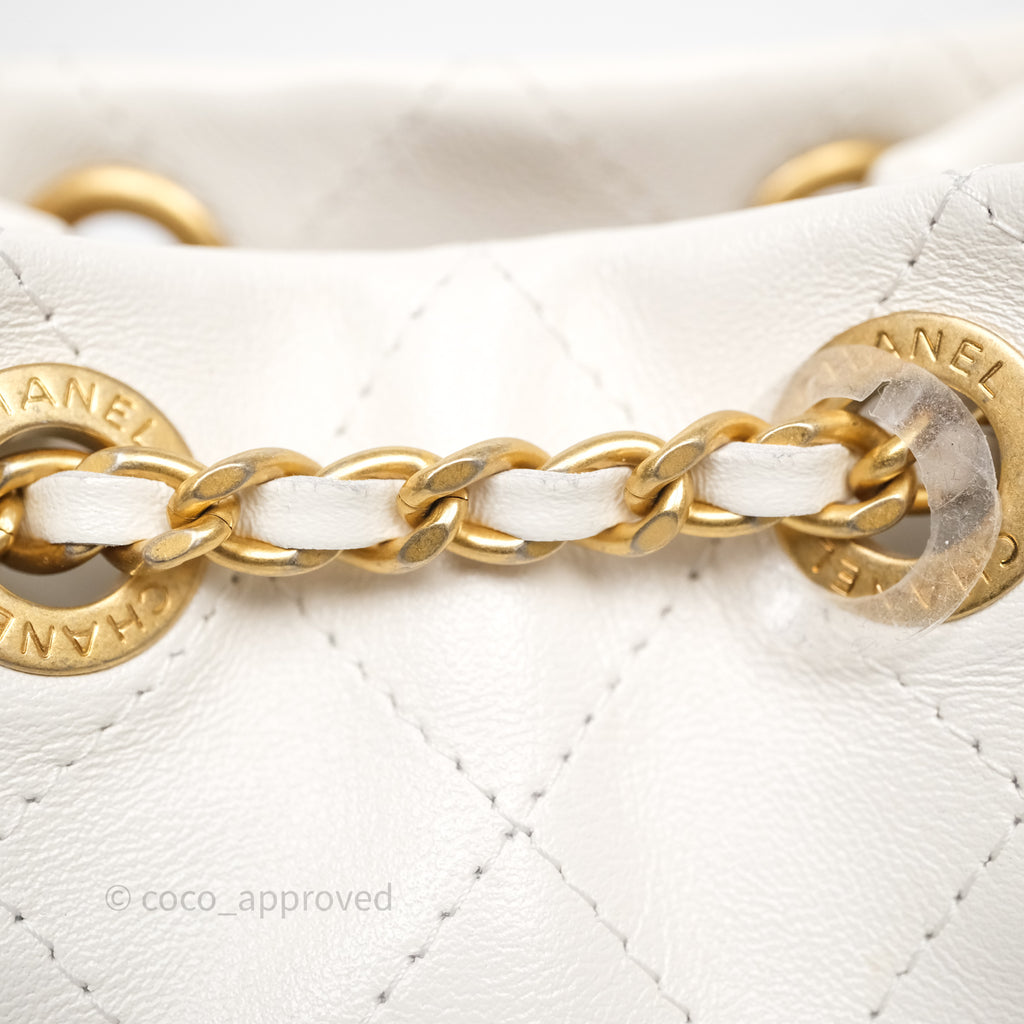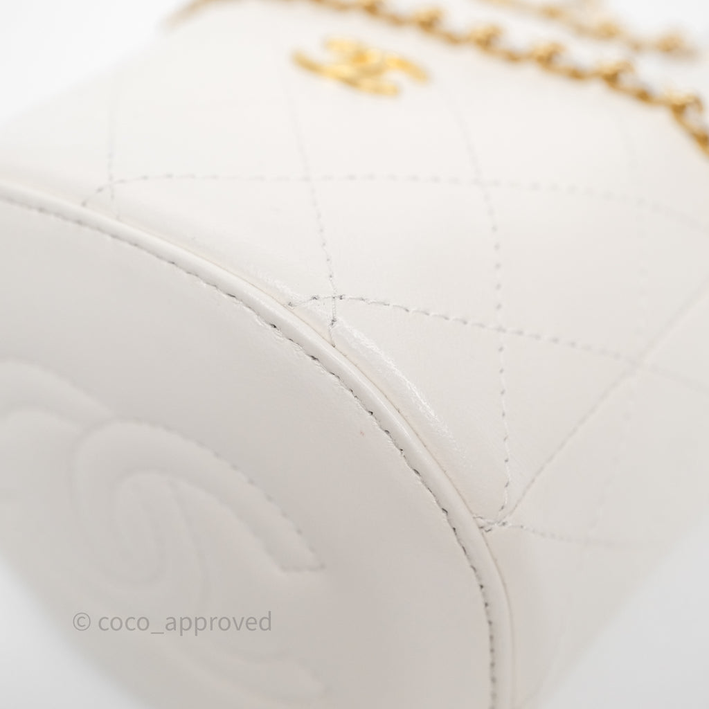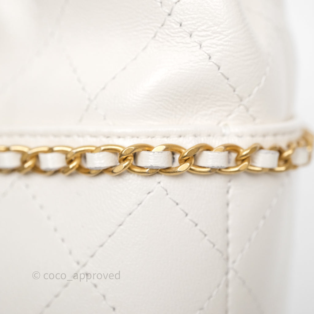 Chanel Mini Bucket Bag White Shiny Lambskin Aged Gold Hardware 25C