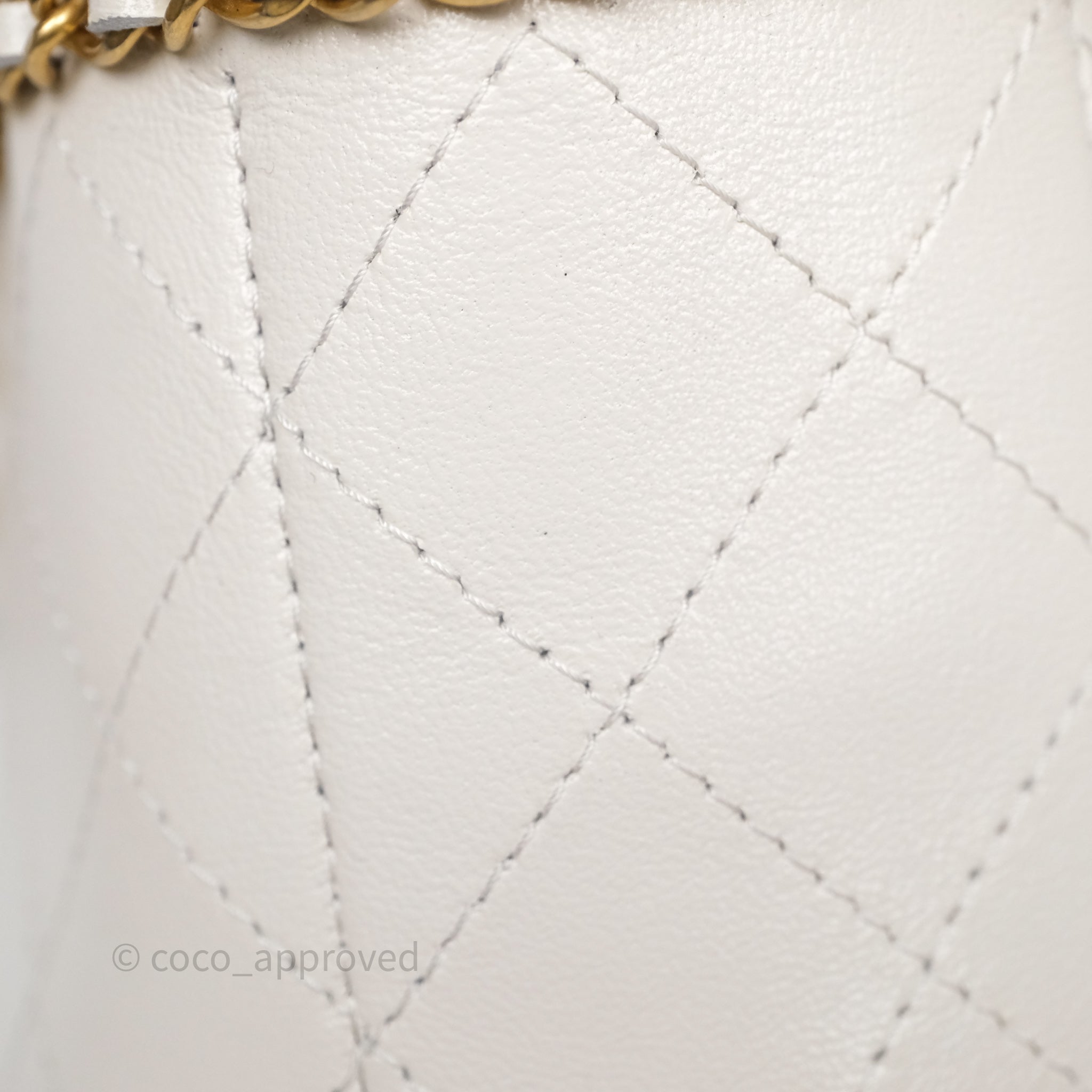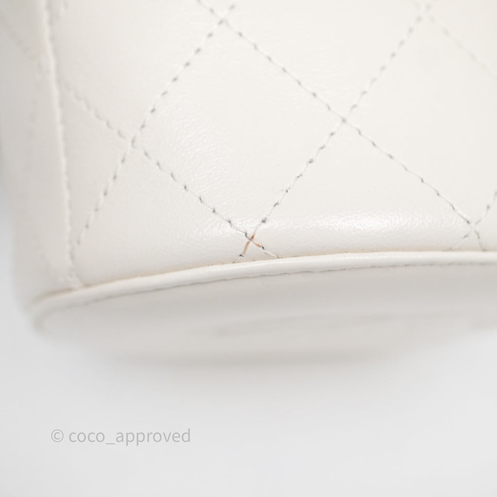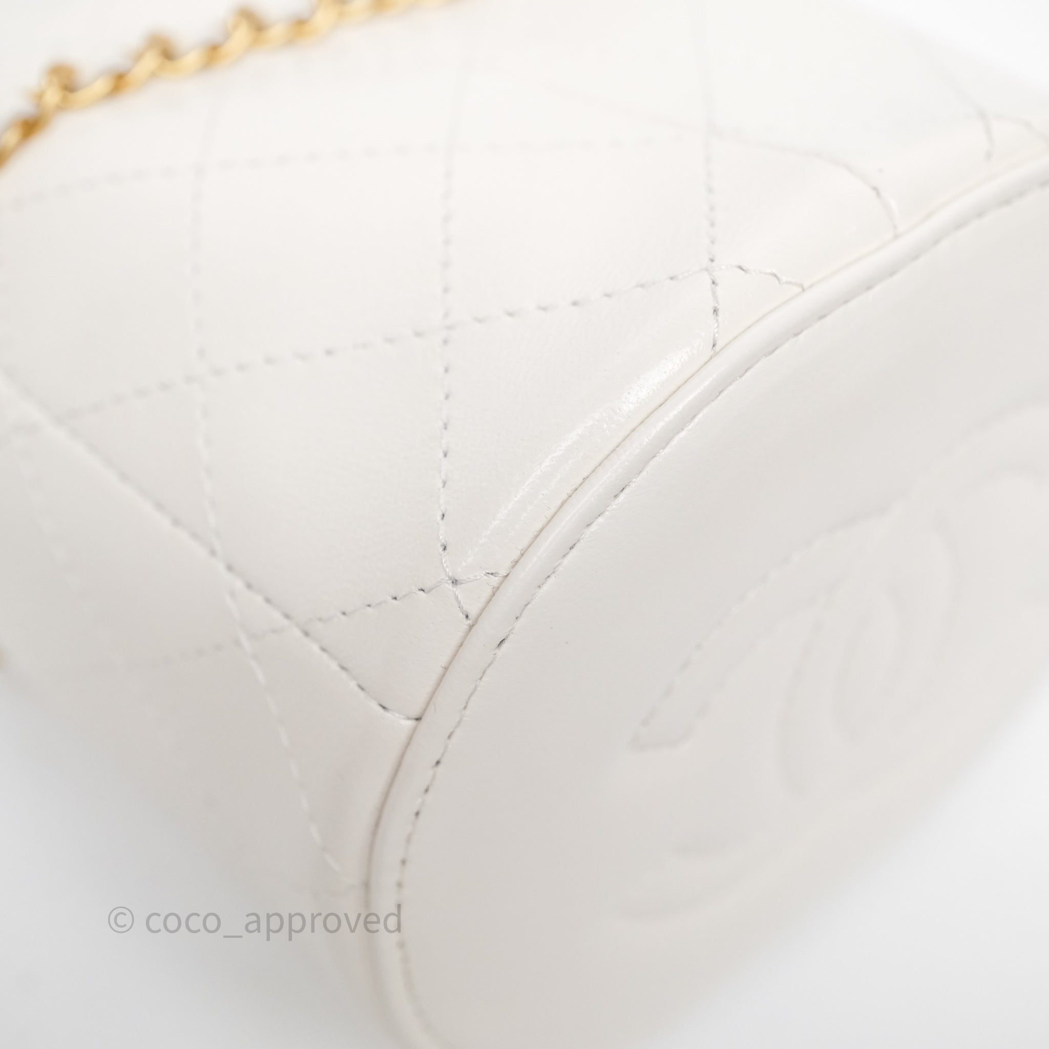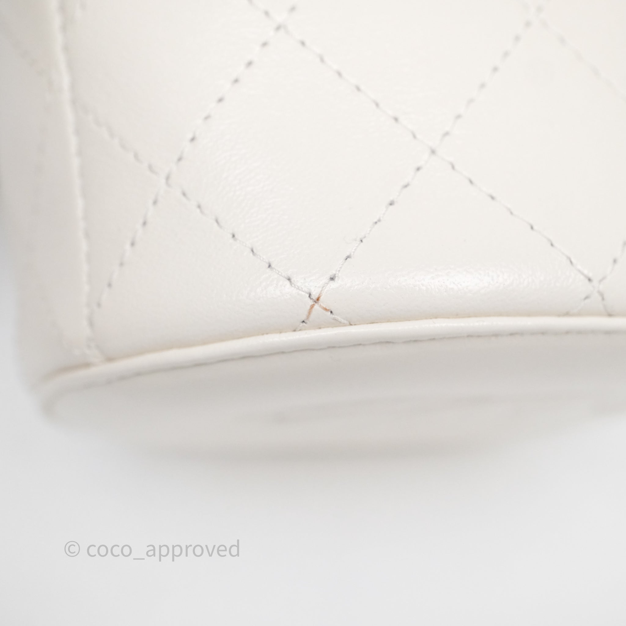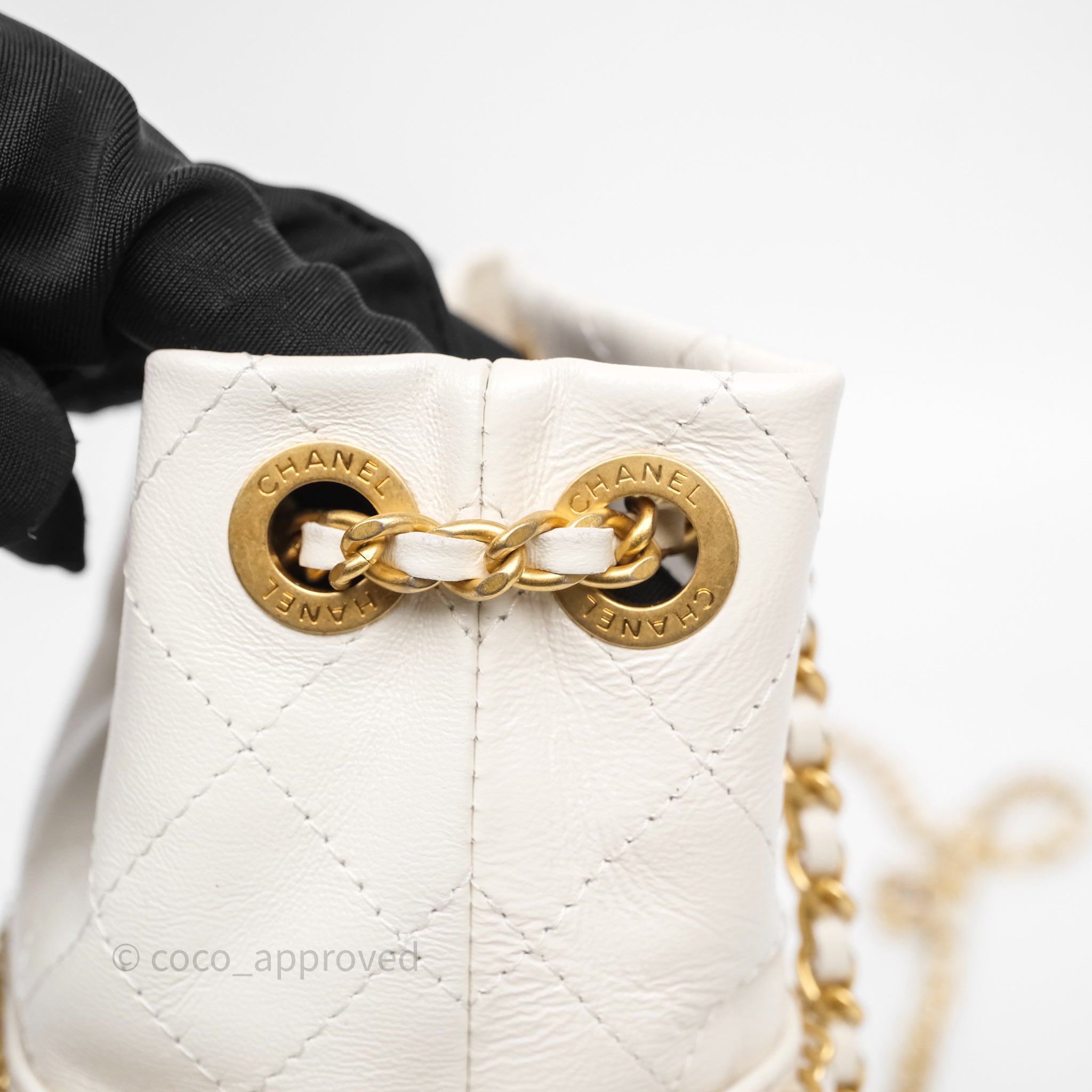 Chanel Mini Bucket Bag White Shiny Lambskin Aged Gold Hardware 25C