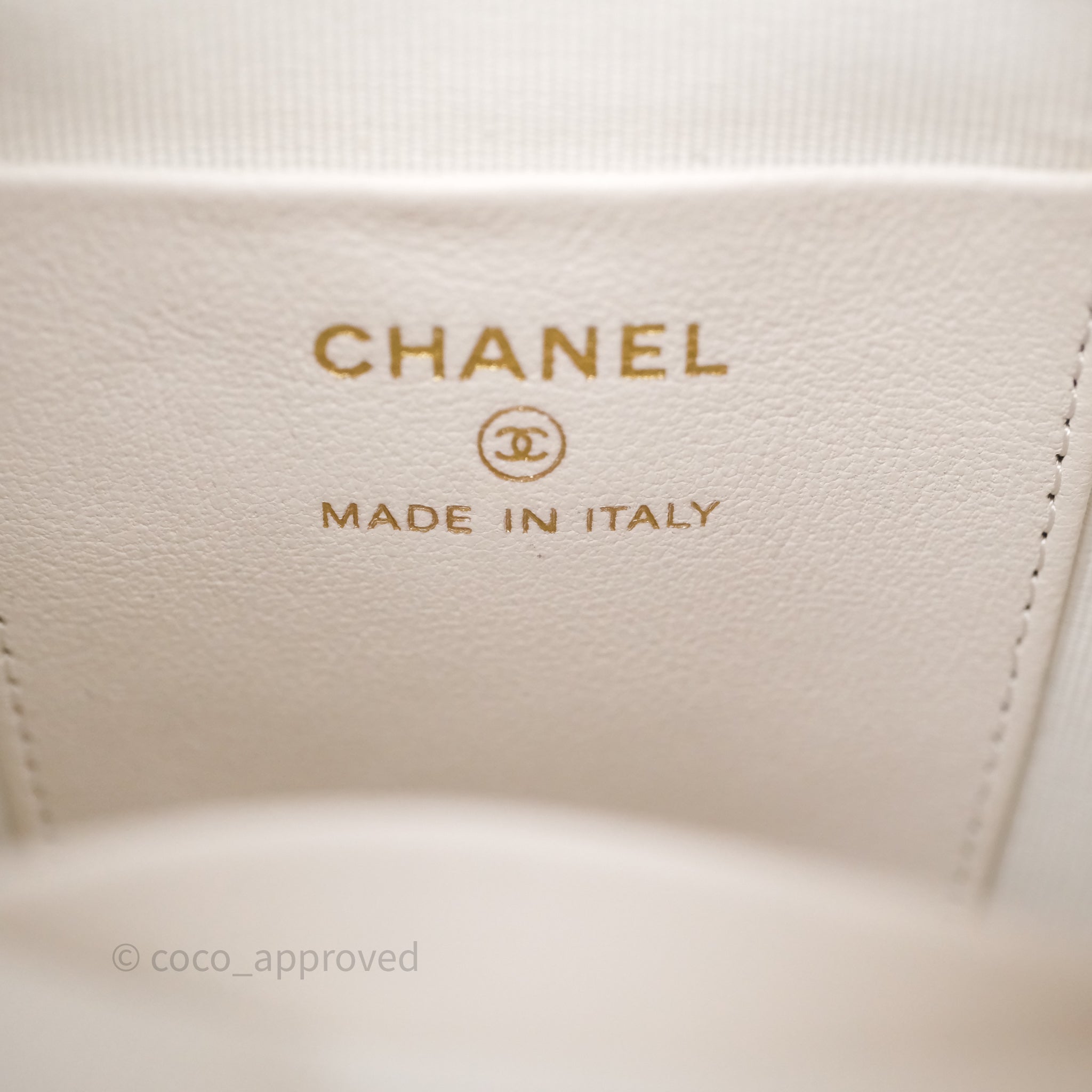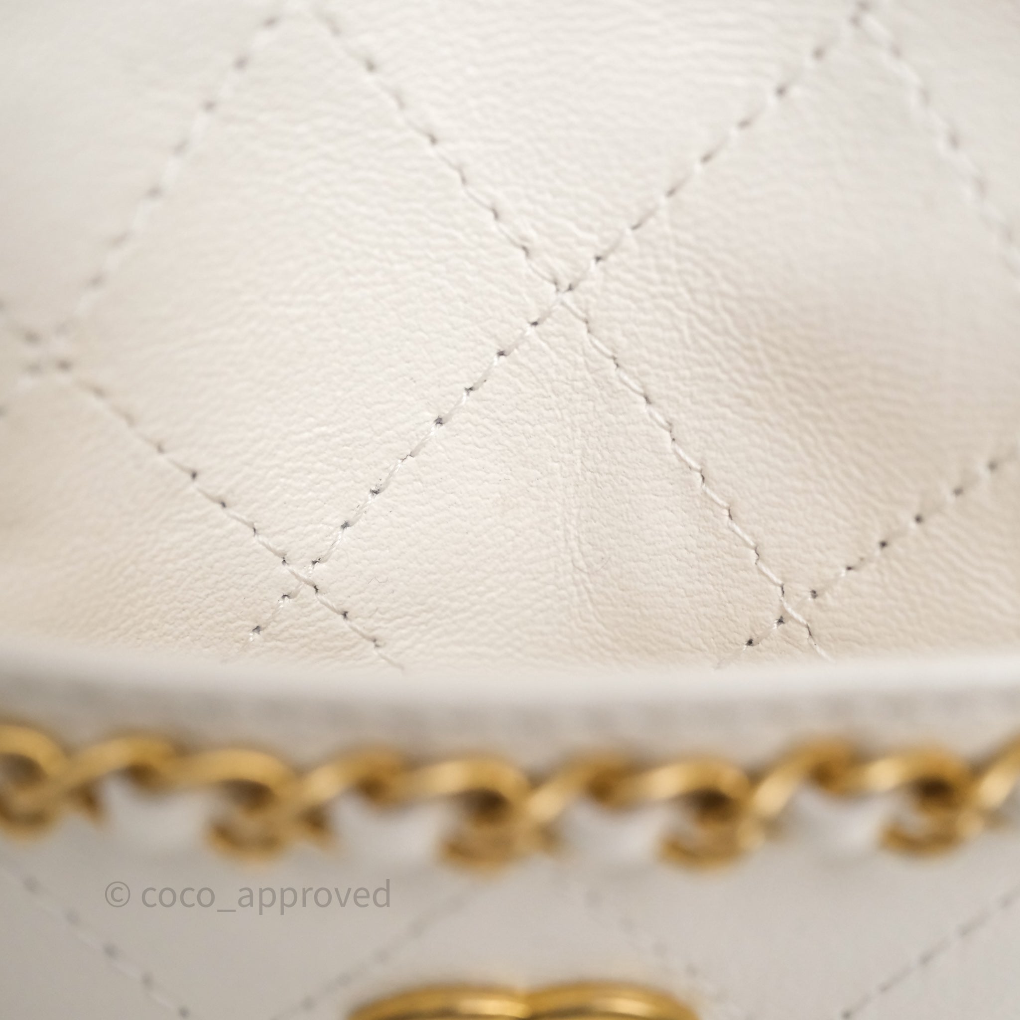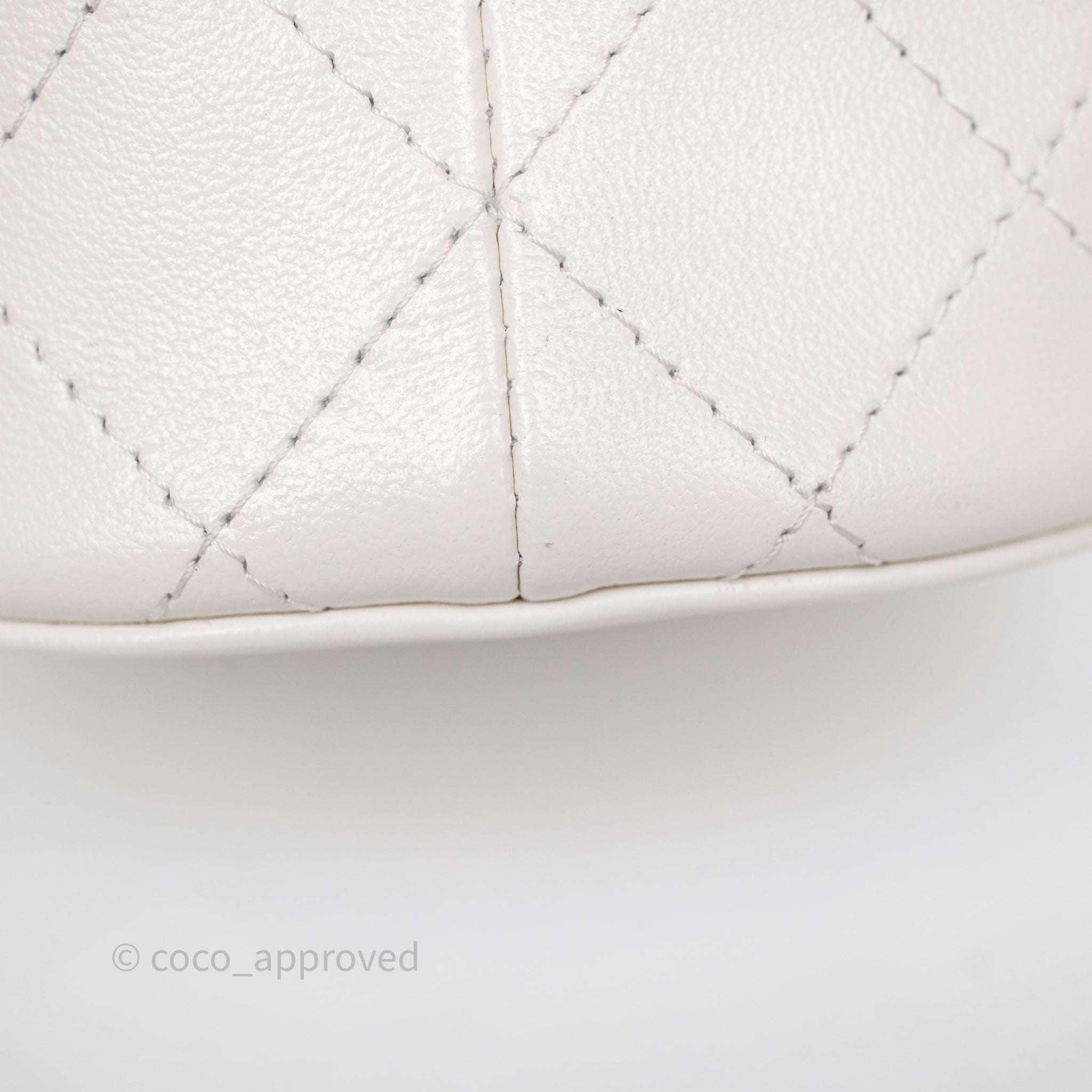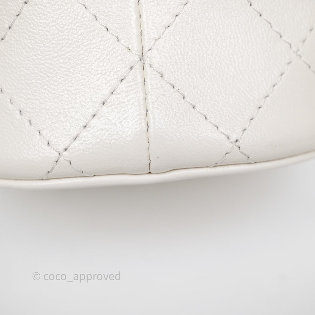 Chanel Mini Bucket Bag White Shiny Lambskin Aged Gold Hardware 25C