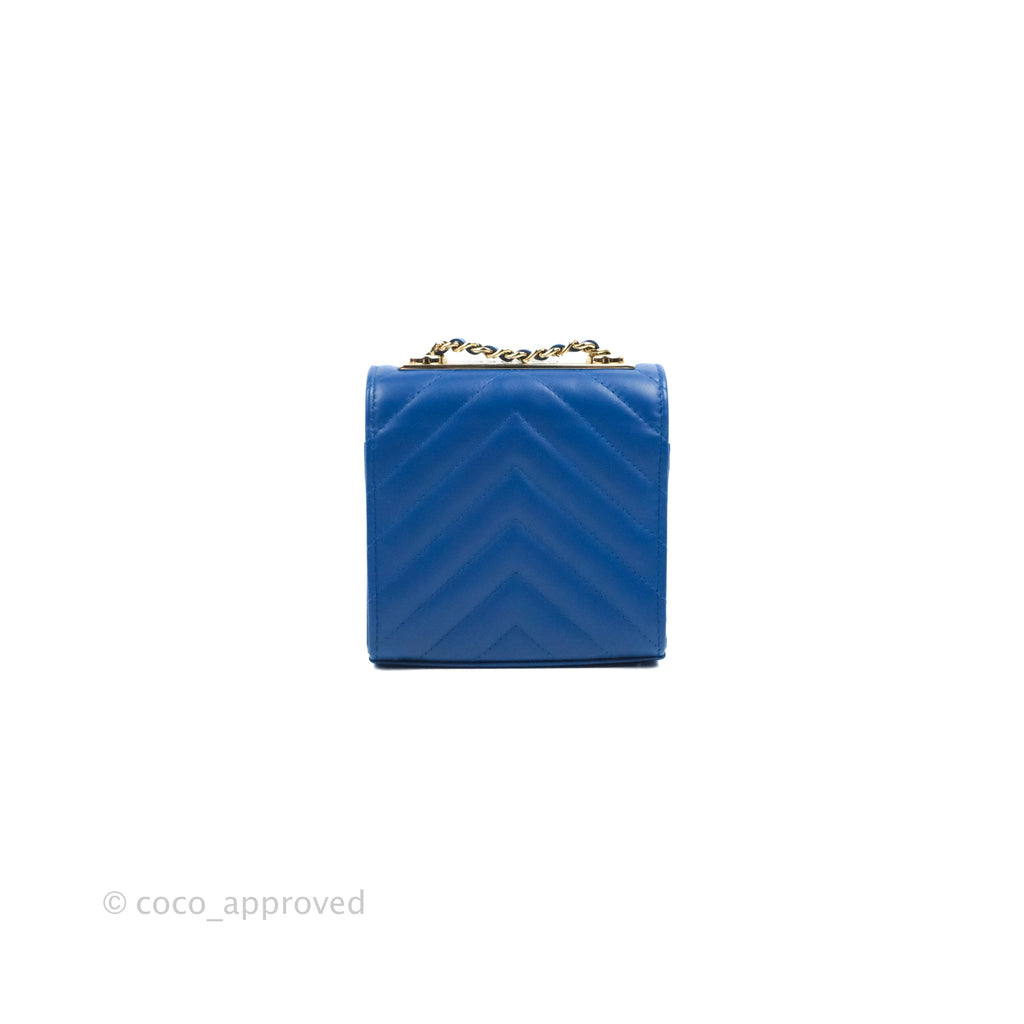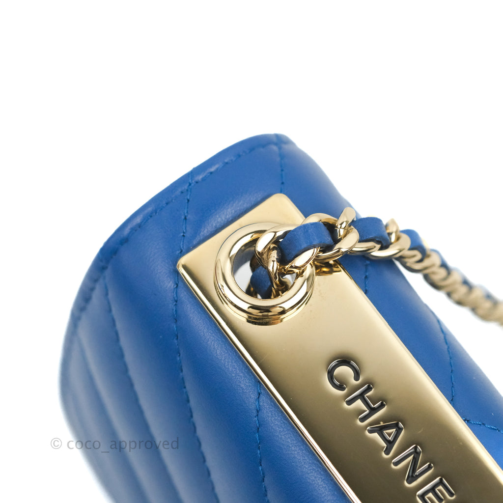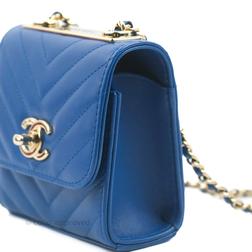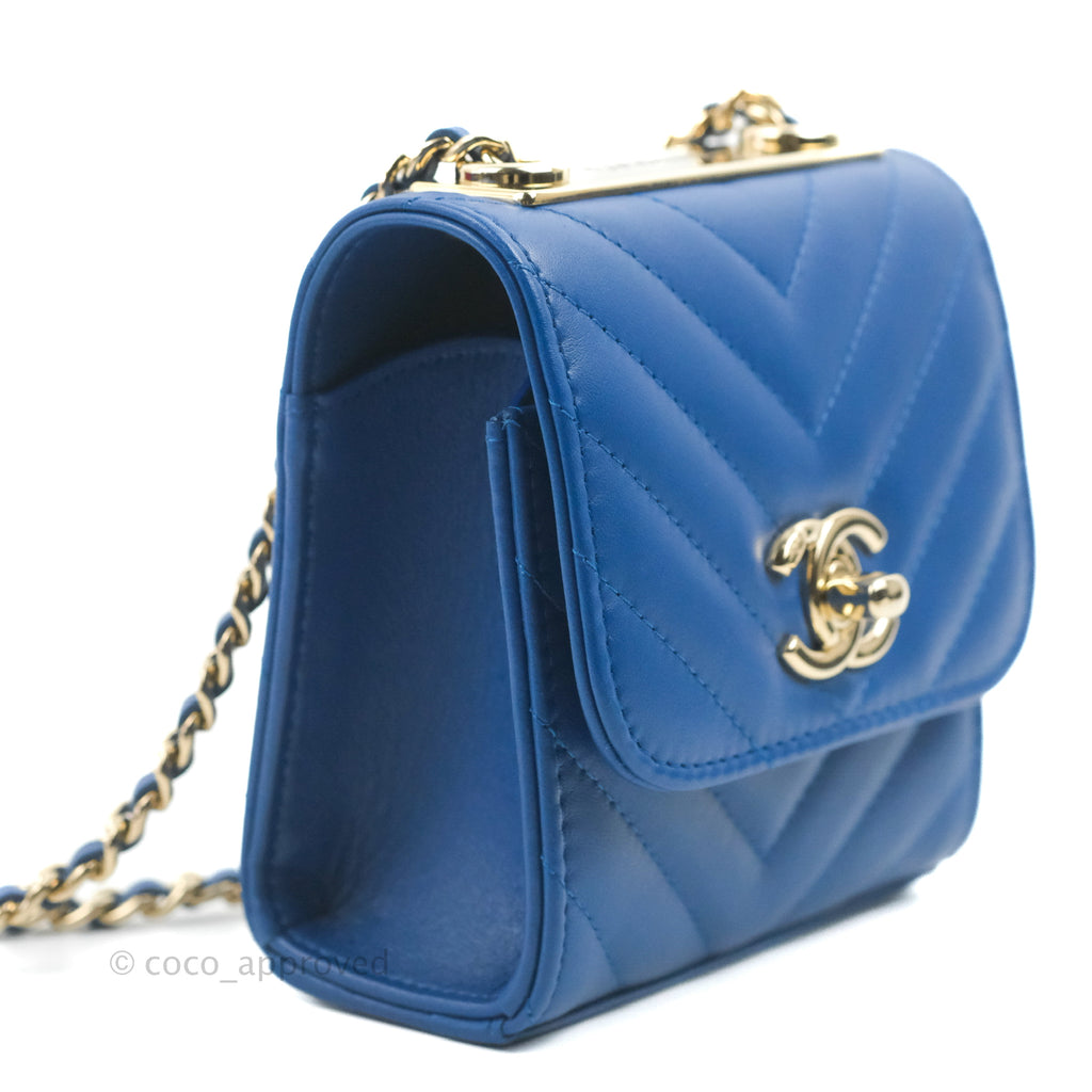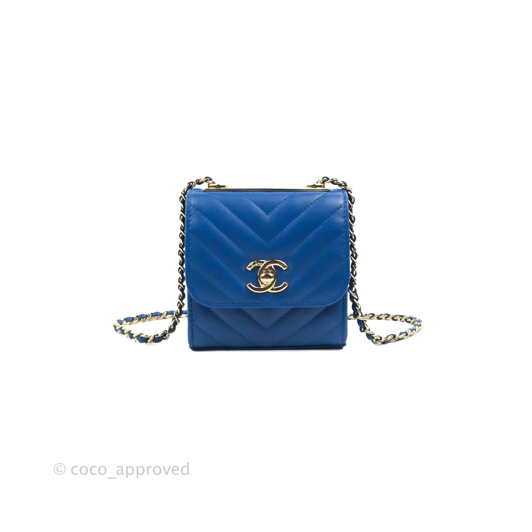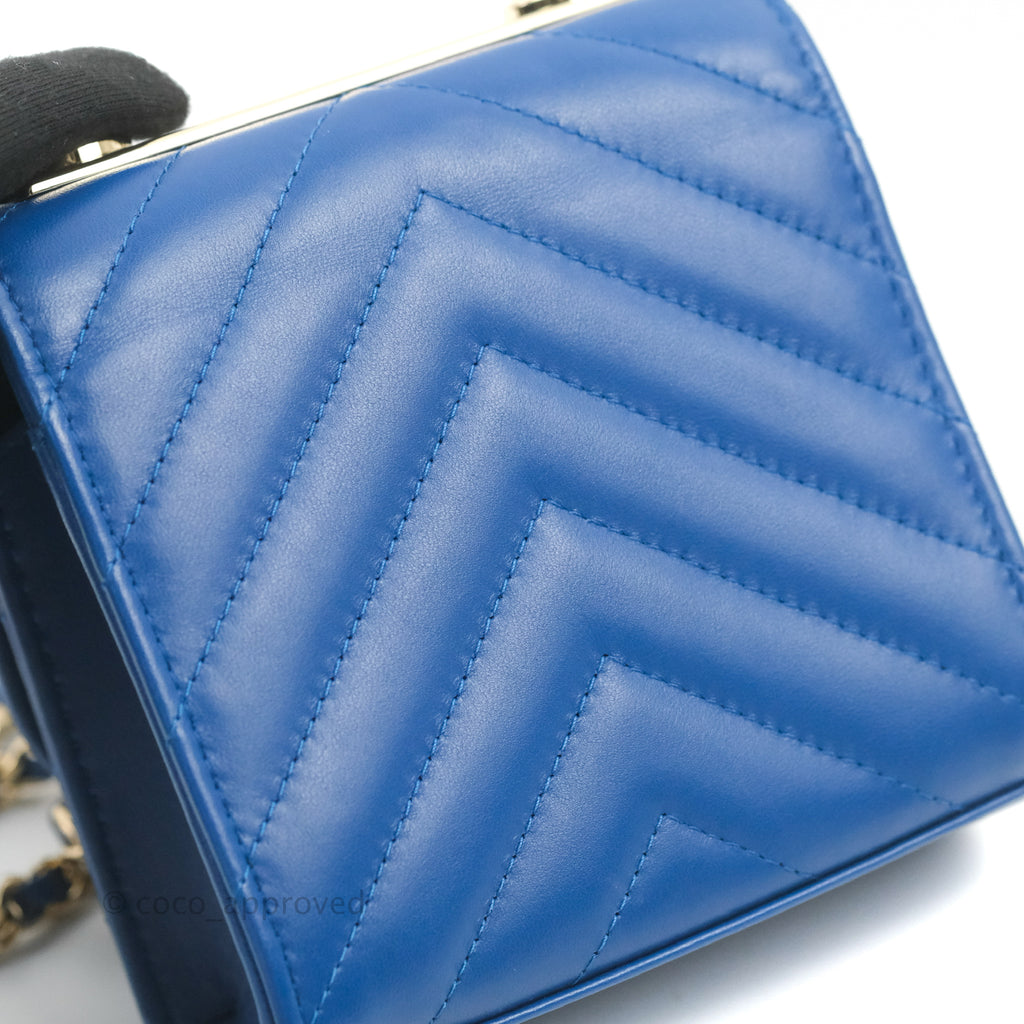 Chanel Mini Chevron Trendy CC Clutch With Chain Blue Lambskin Gold Hardware