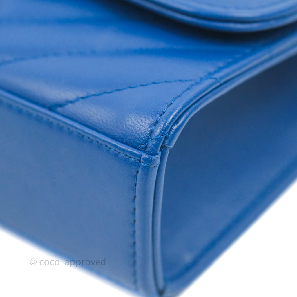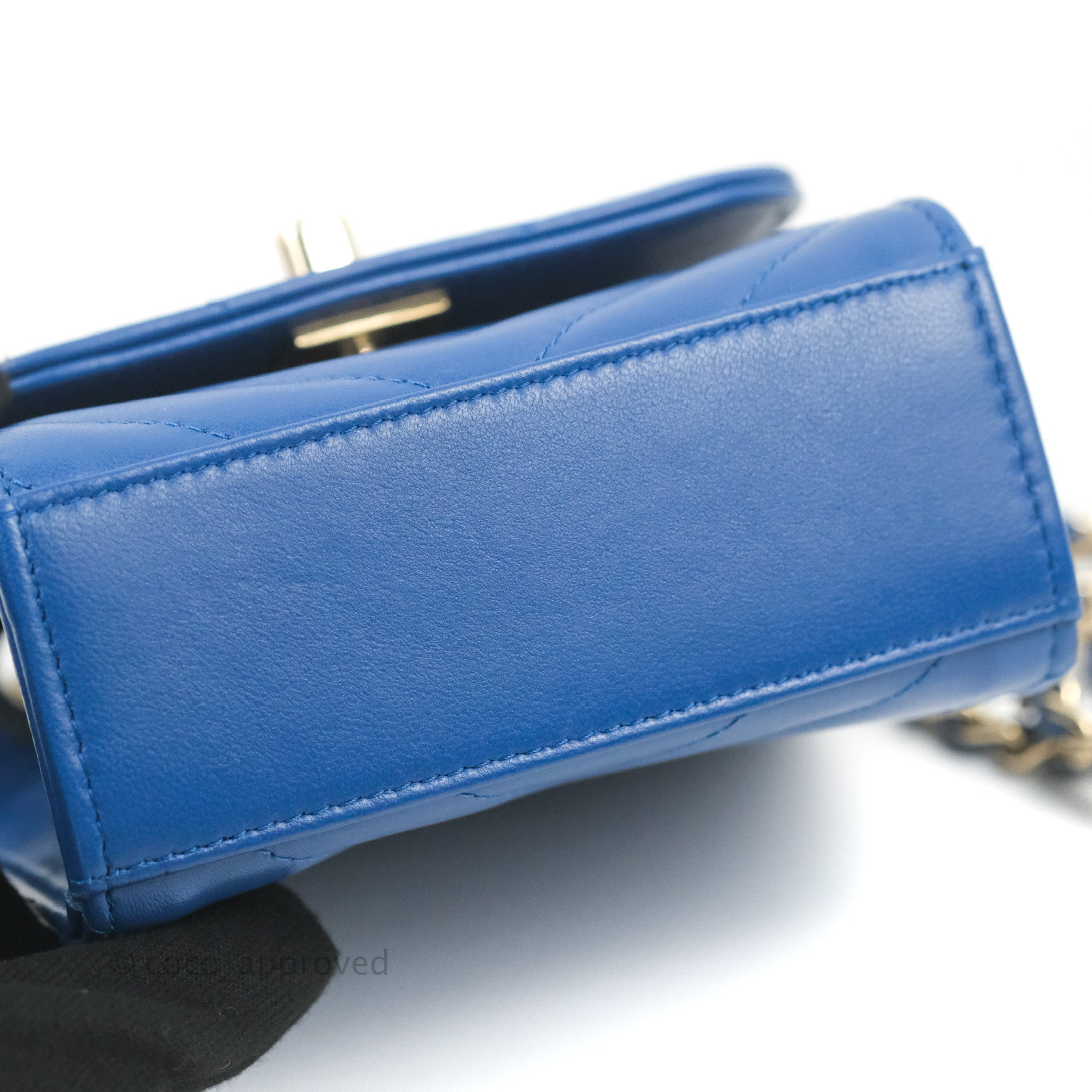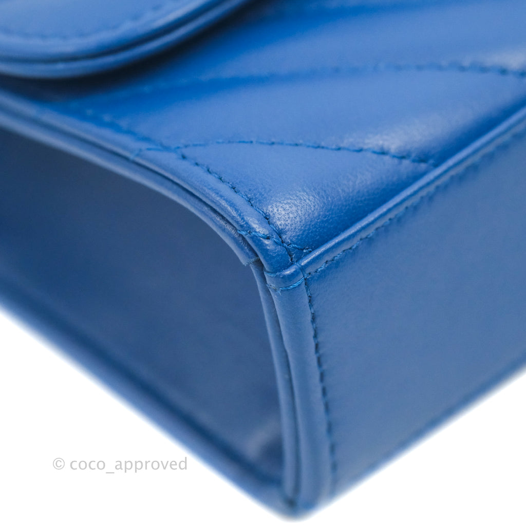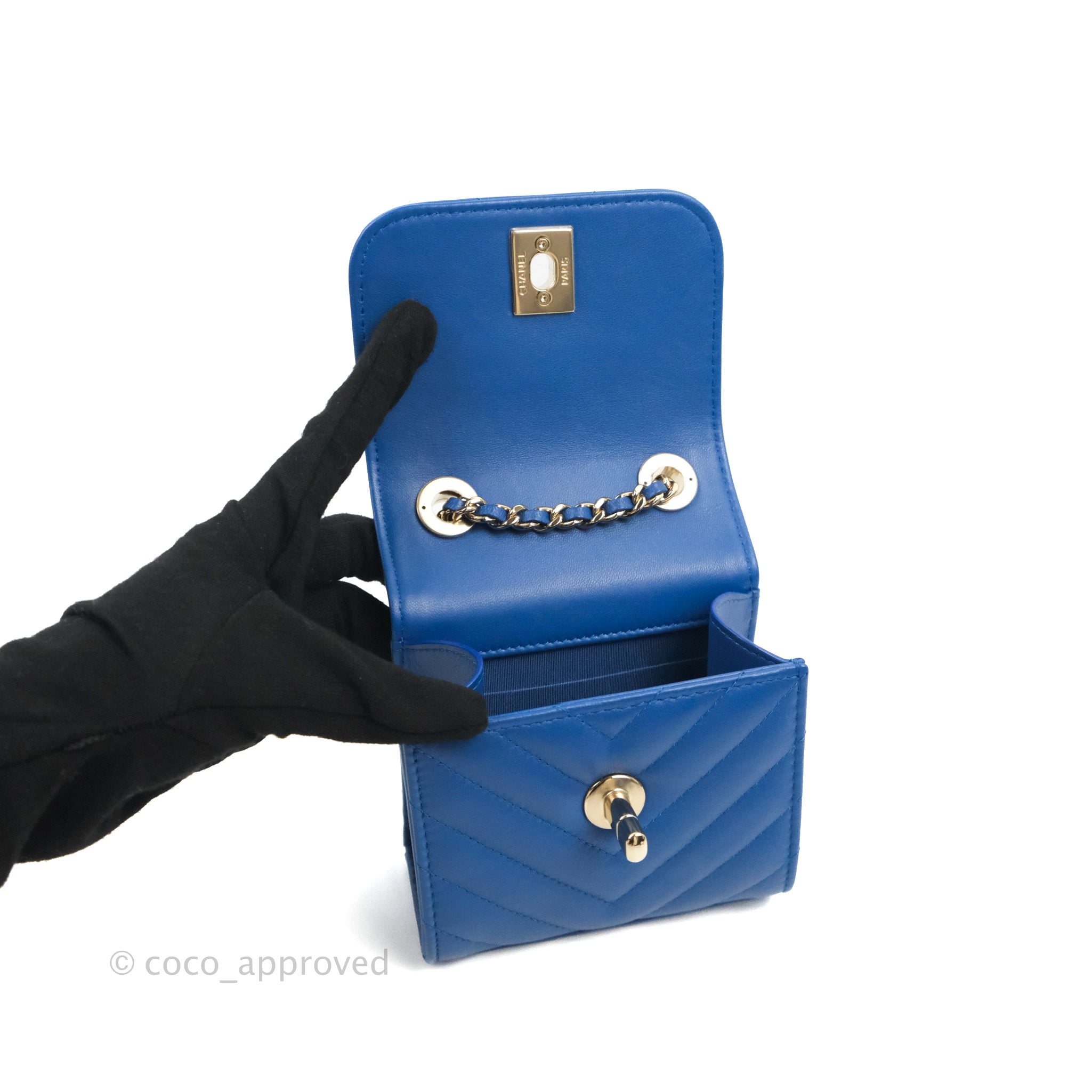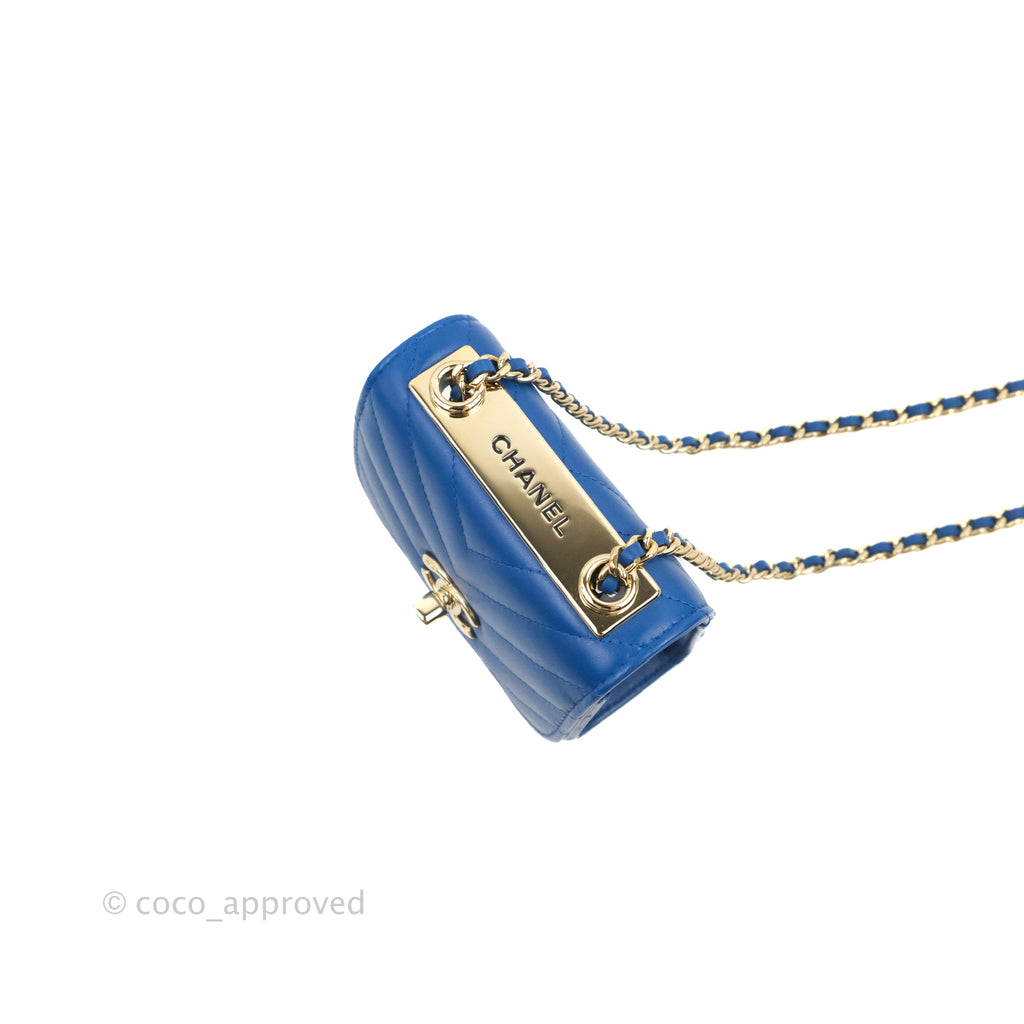Chanel Mini Chevron Trendy CC Clutch With Chain Blue Lambskin Gold Hardware
