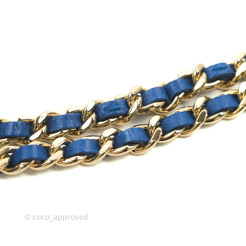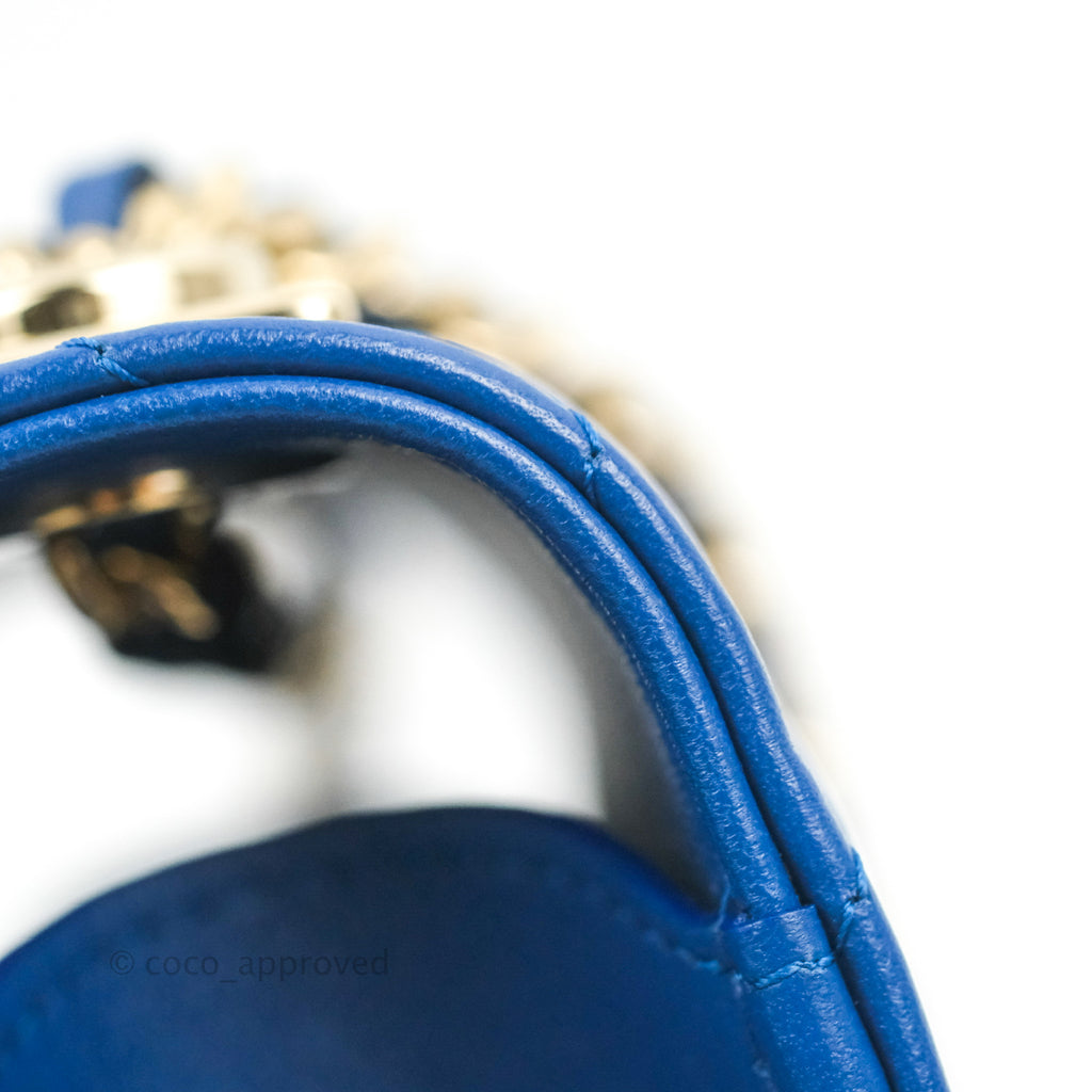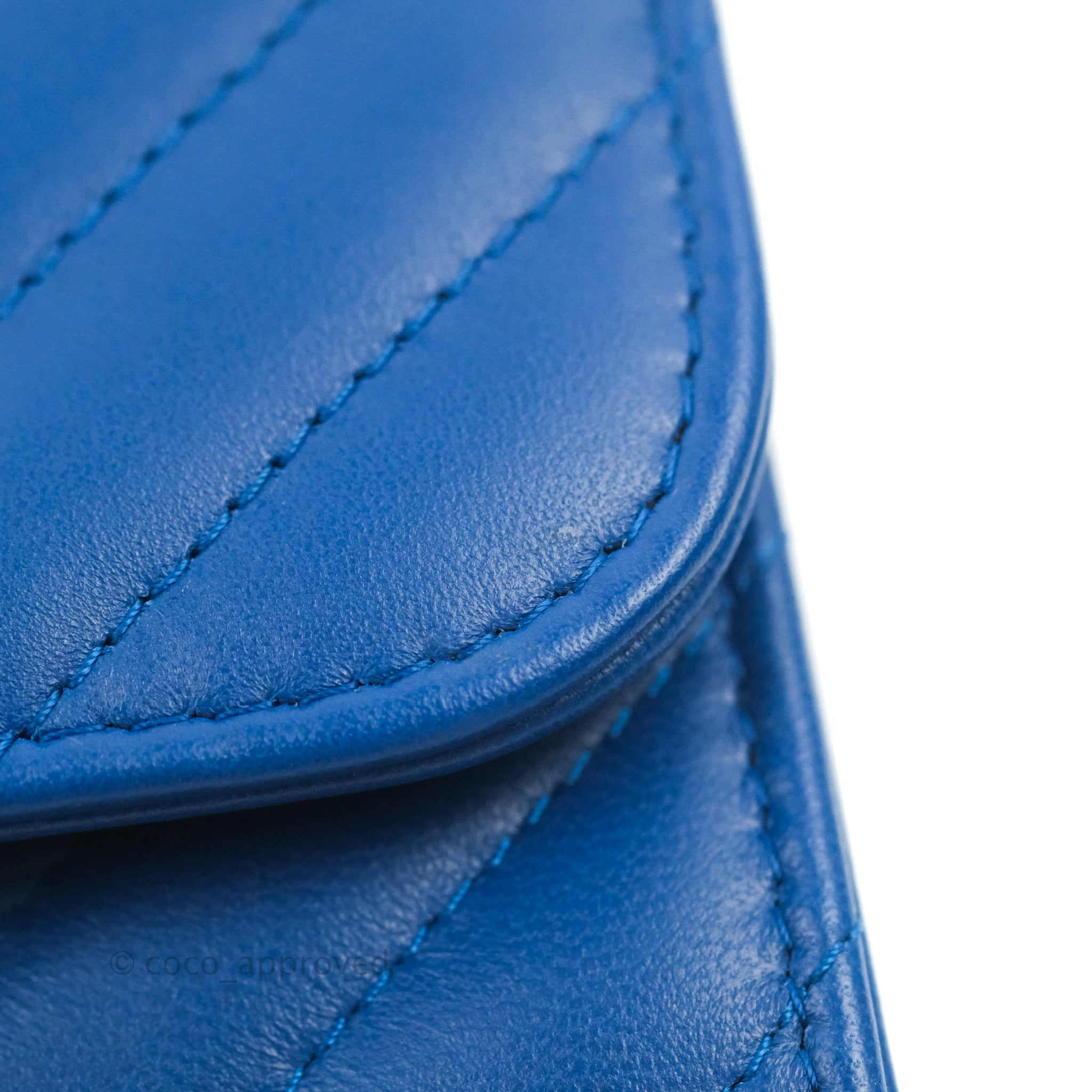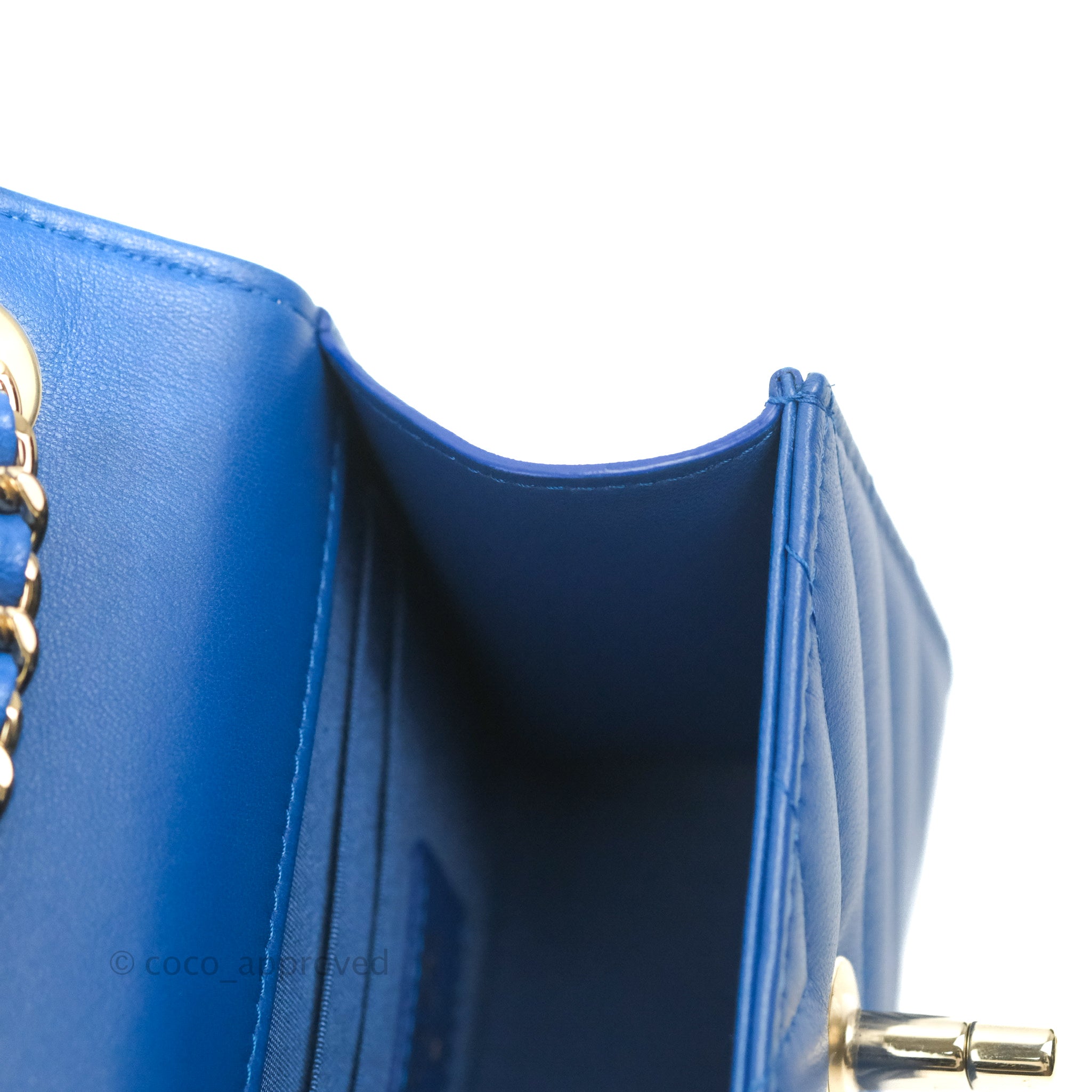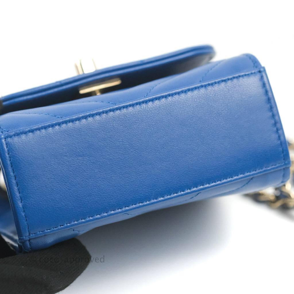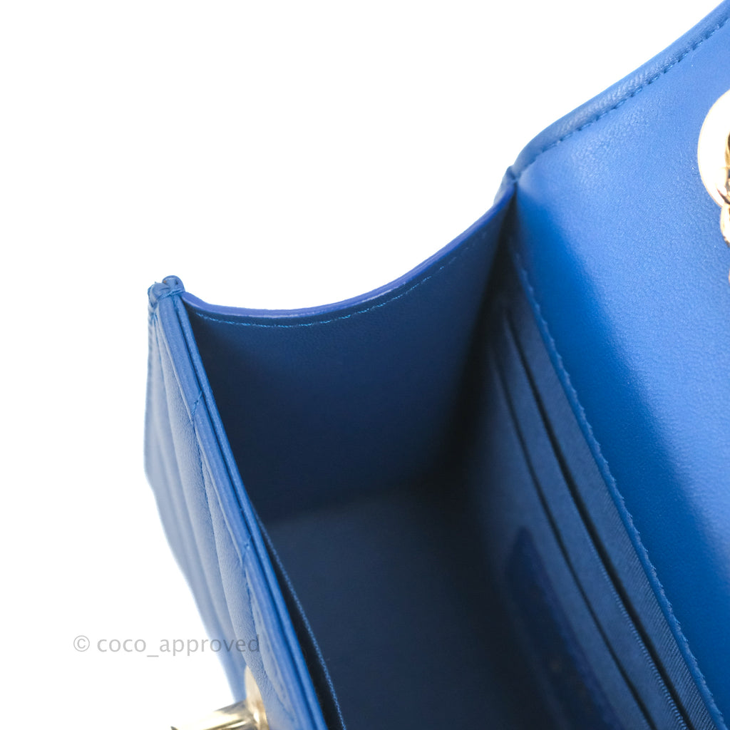 Chanel Mini Chevron Trendy CC Clutch With Chain Blue Lambskin Gold Hardware