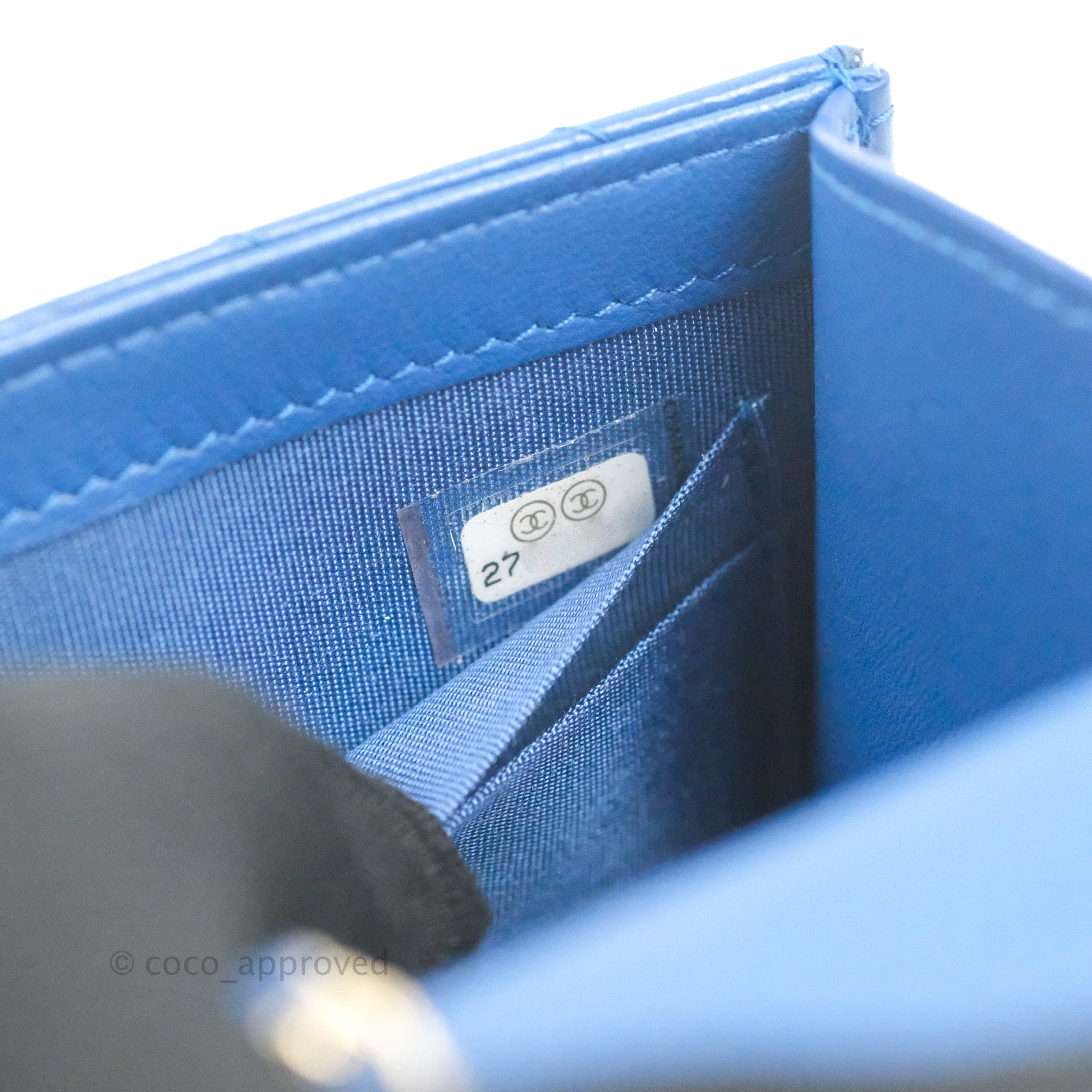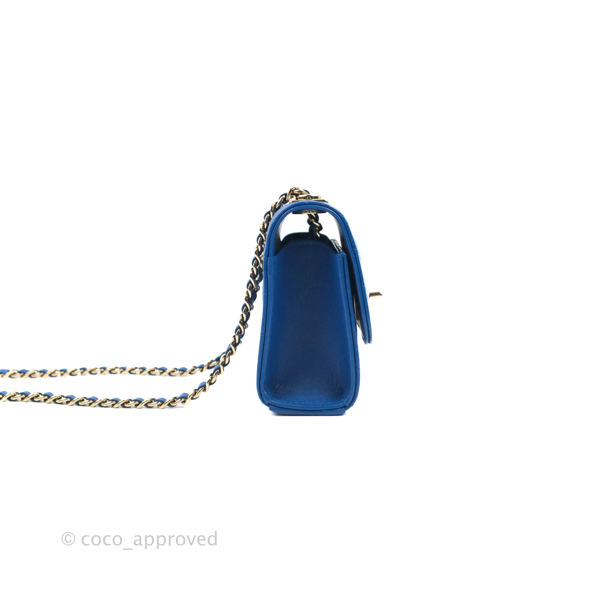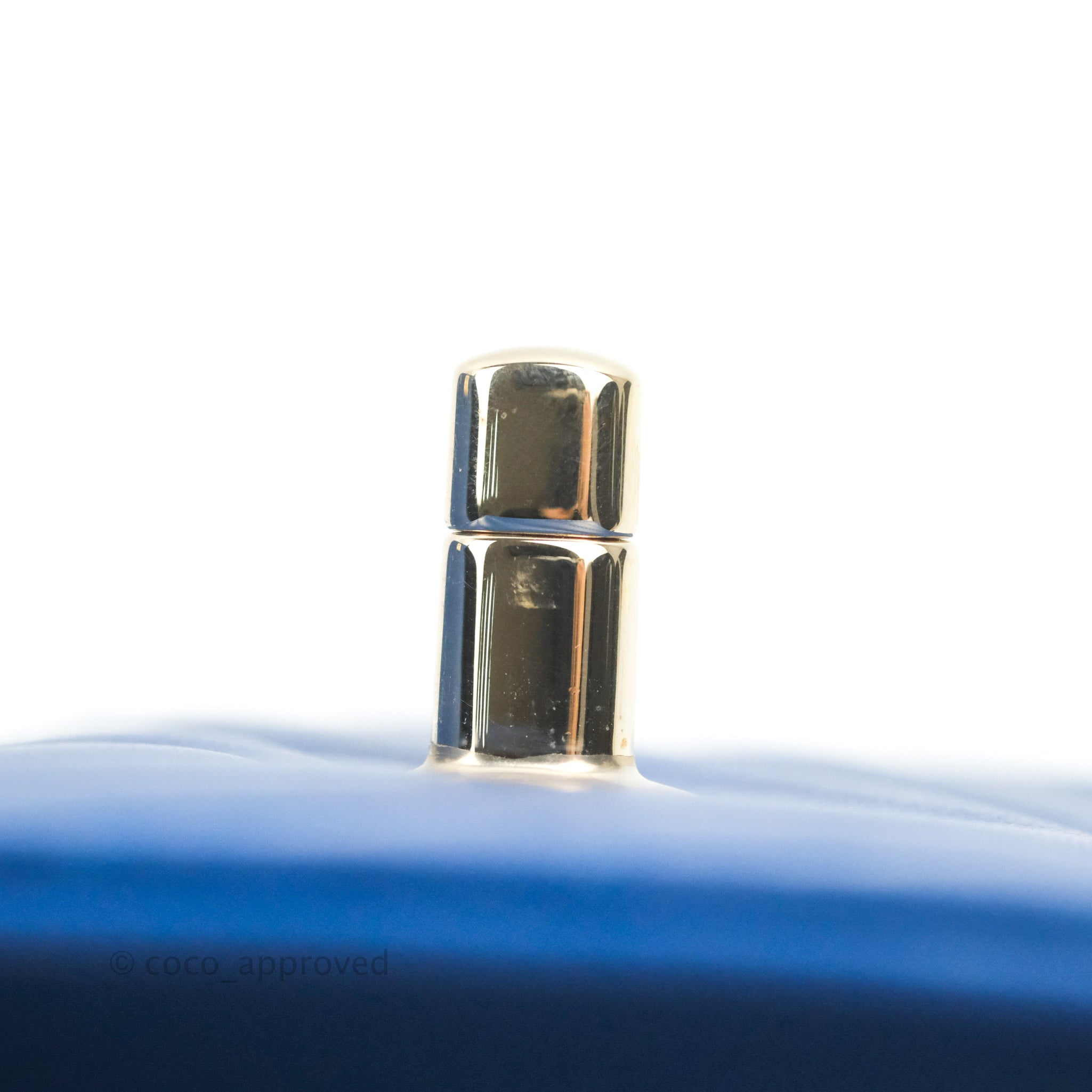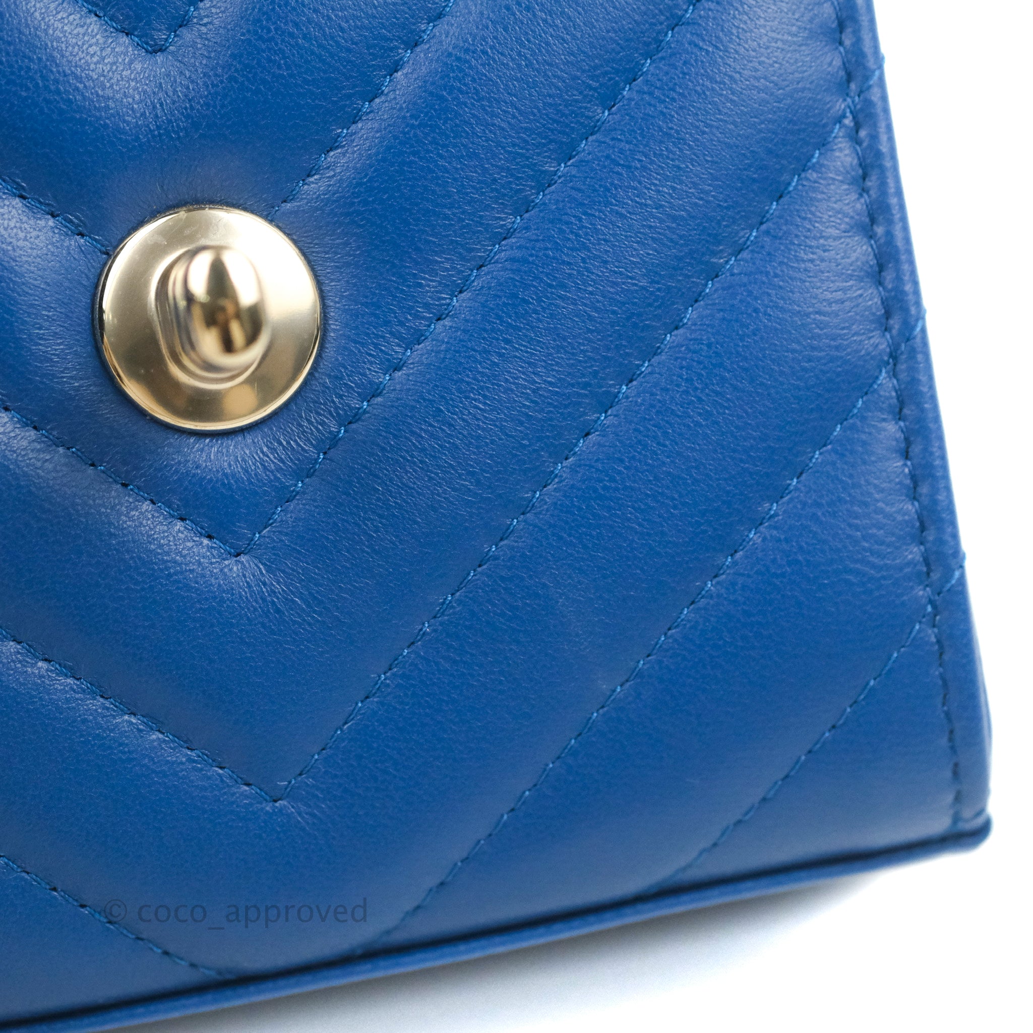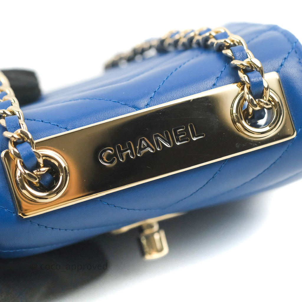 Chanel Mini Chevron Trendy CC Clutch With Chain Blue Lambskin Gold Hardware