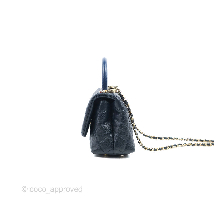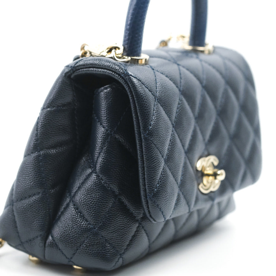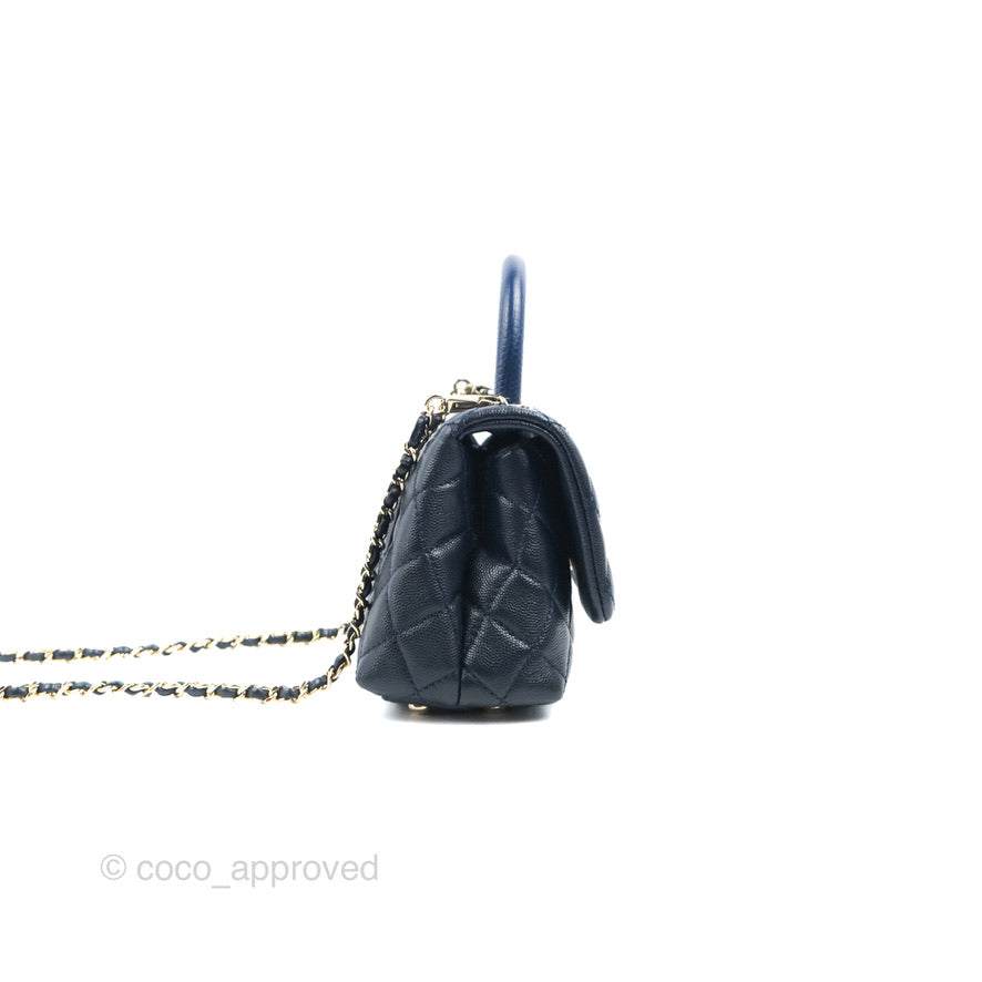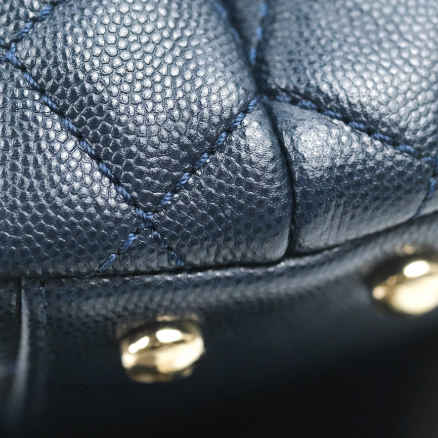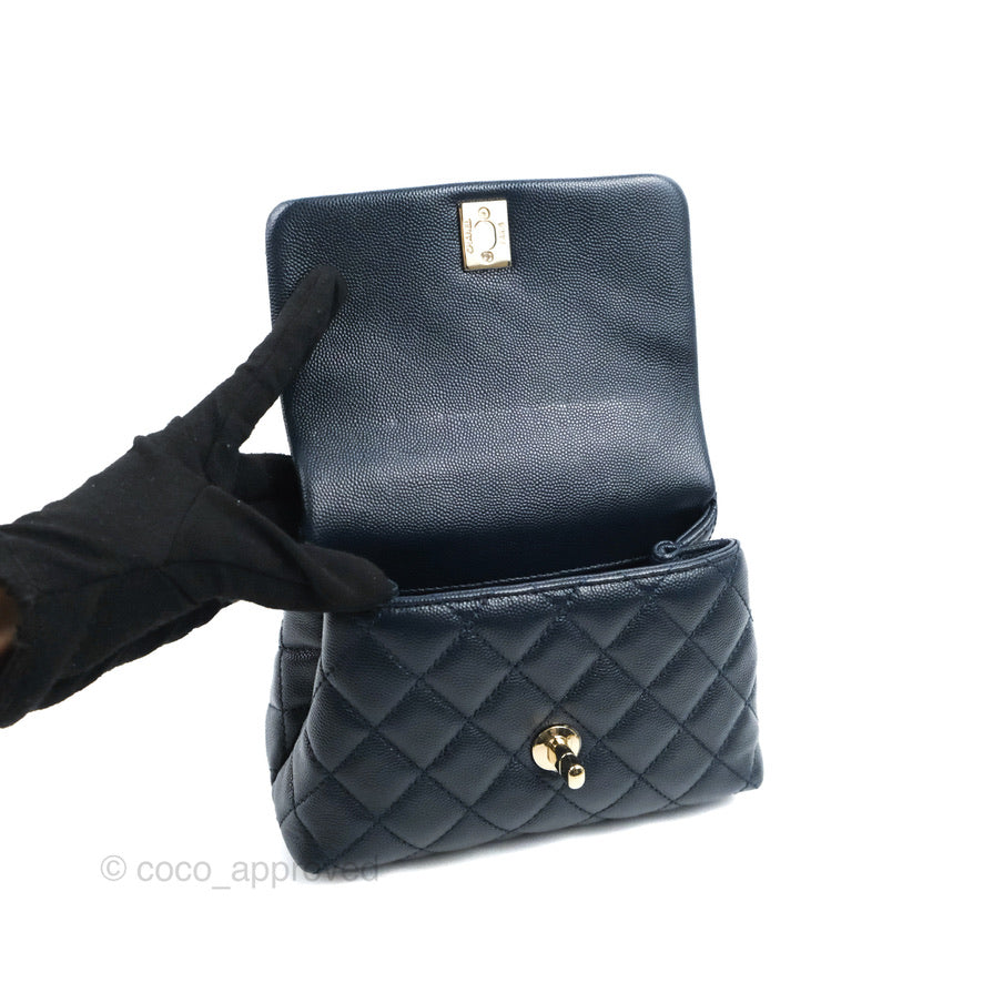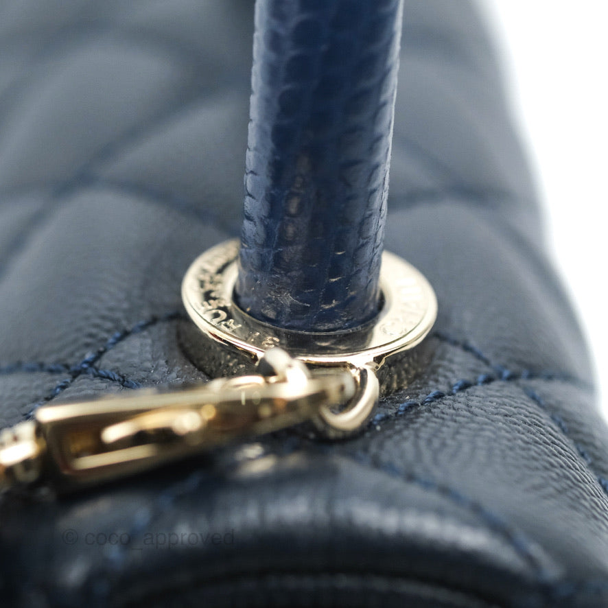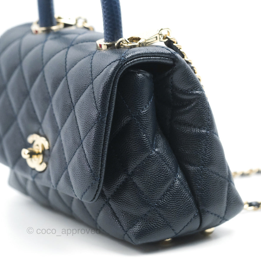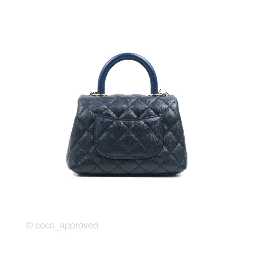 Chanel Mini Coco Handle Quilted Navy Caviar Gold Hardware Lizard Embossed Handle
