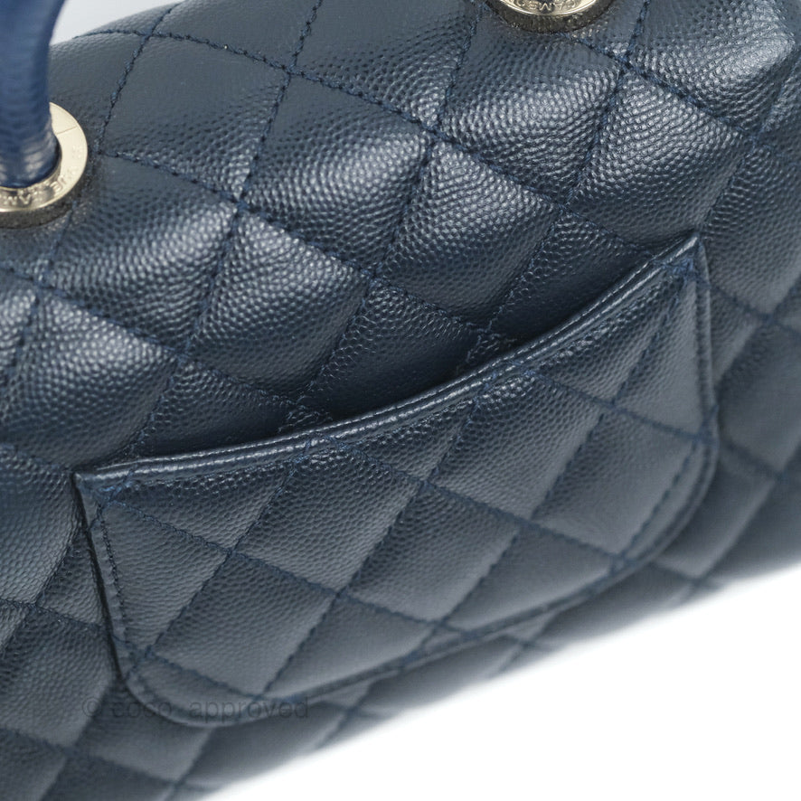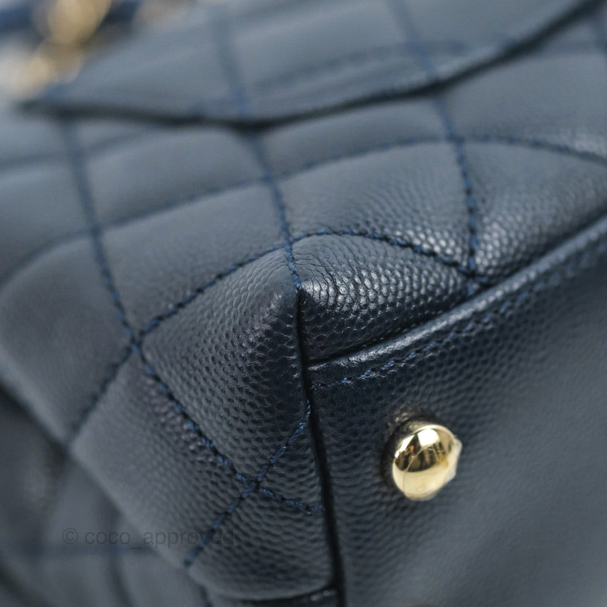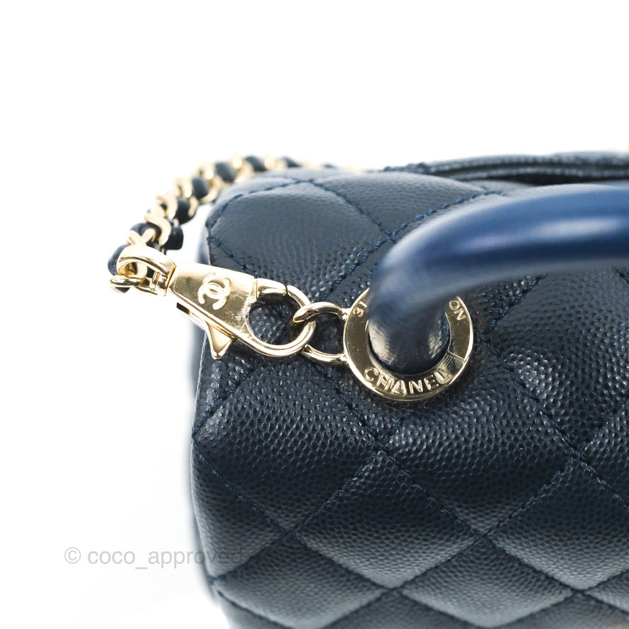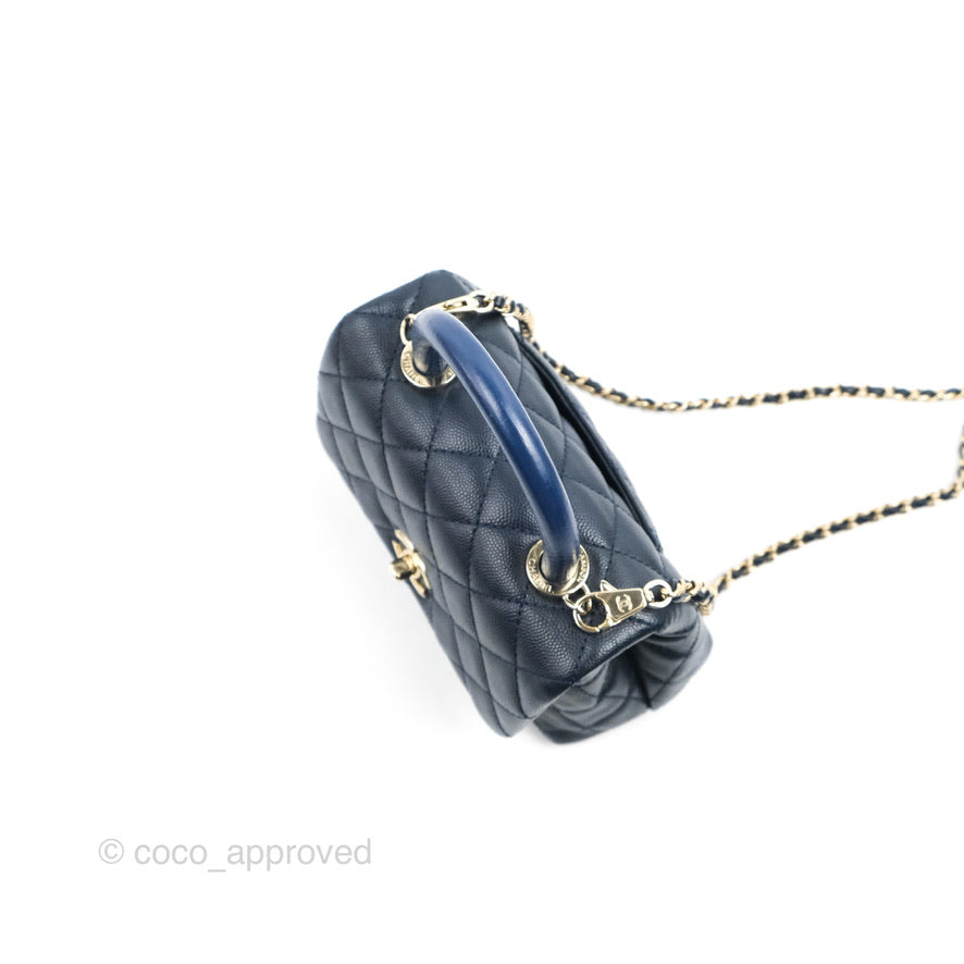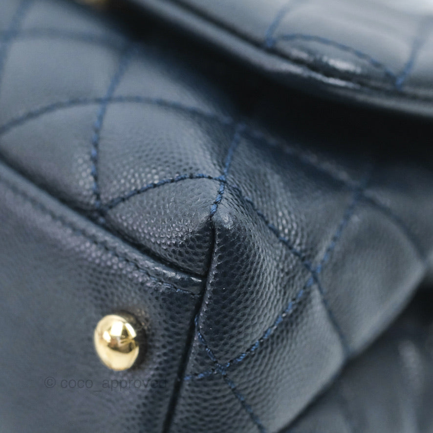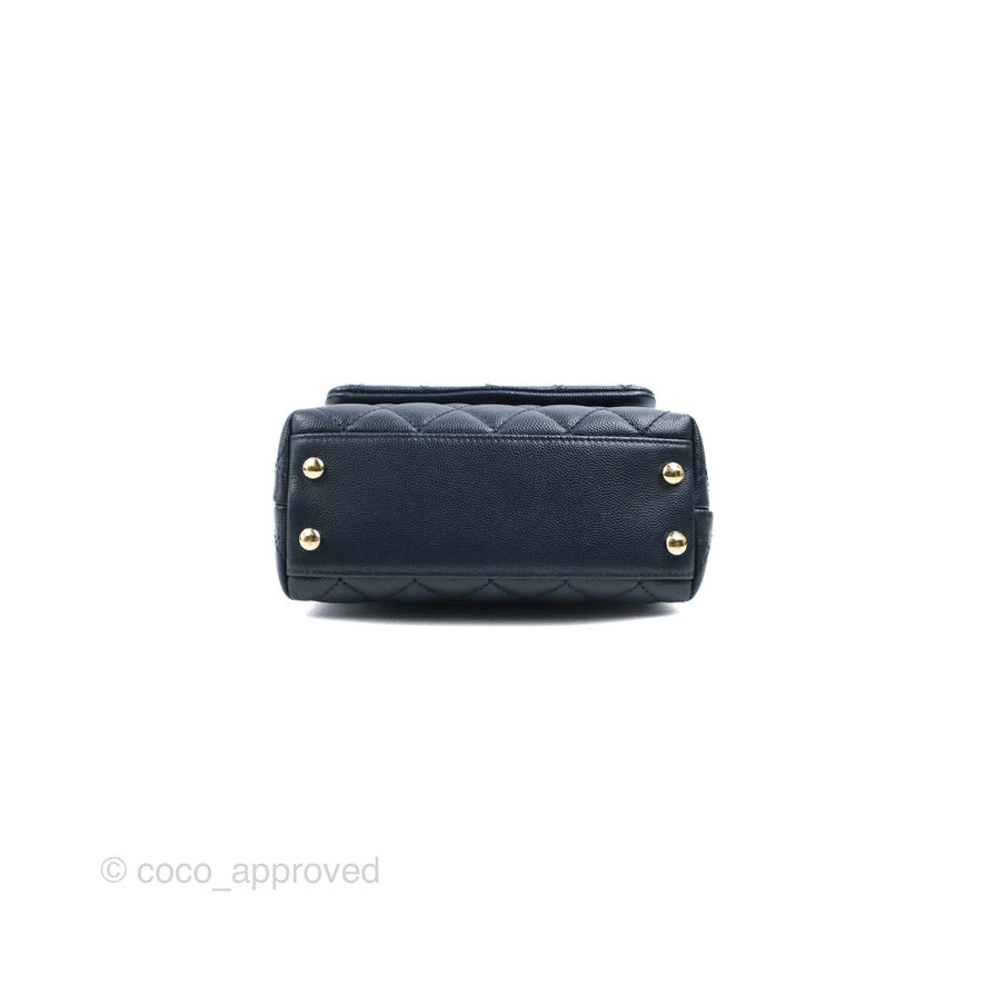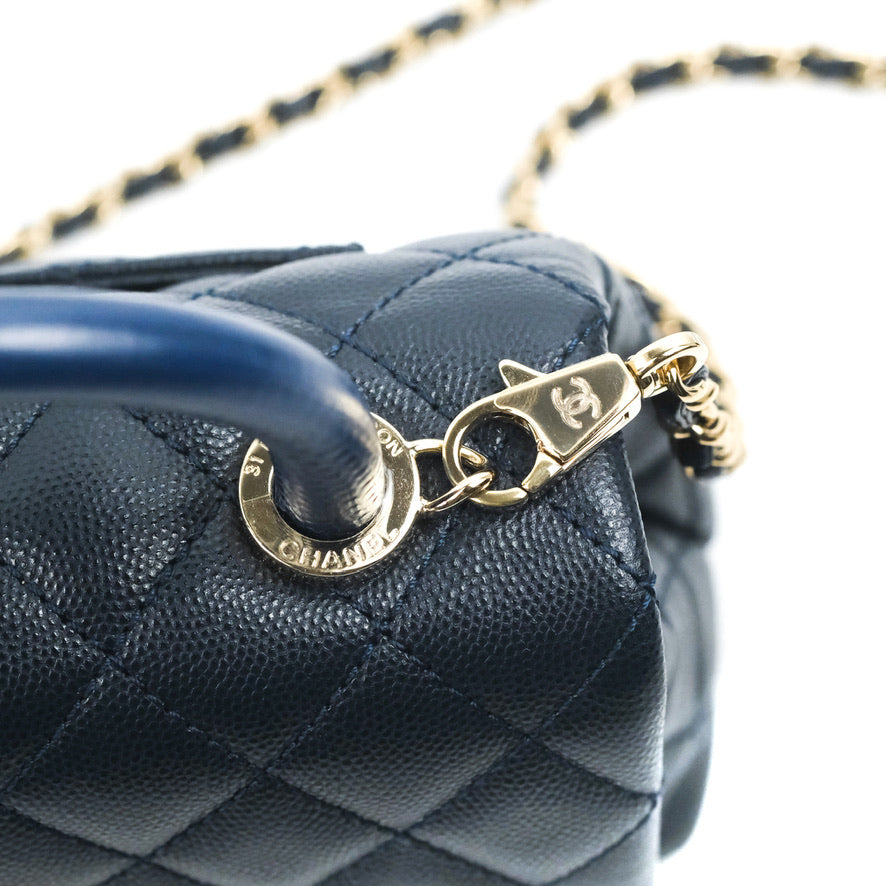 Chanel Mini Coco Handle Quilted Navy Caviar Gold Hardware Lizard Embossed Handle