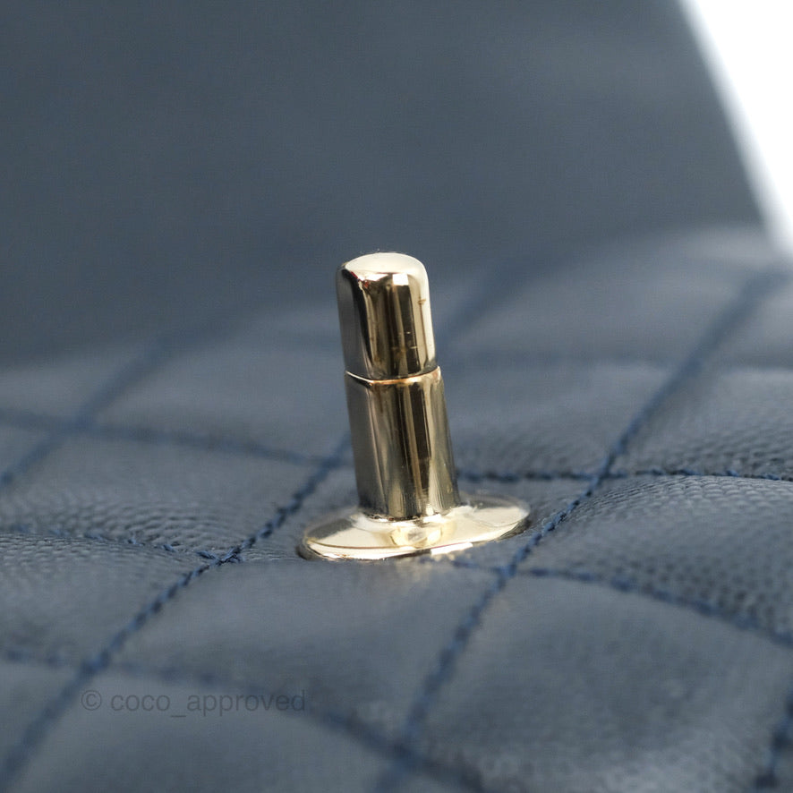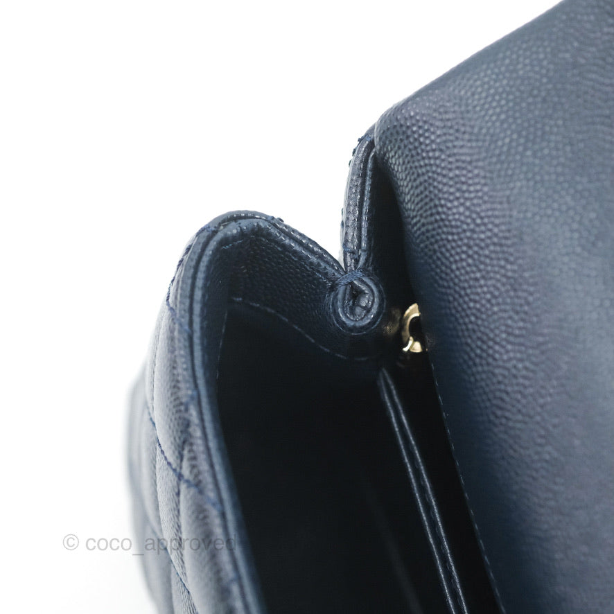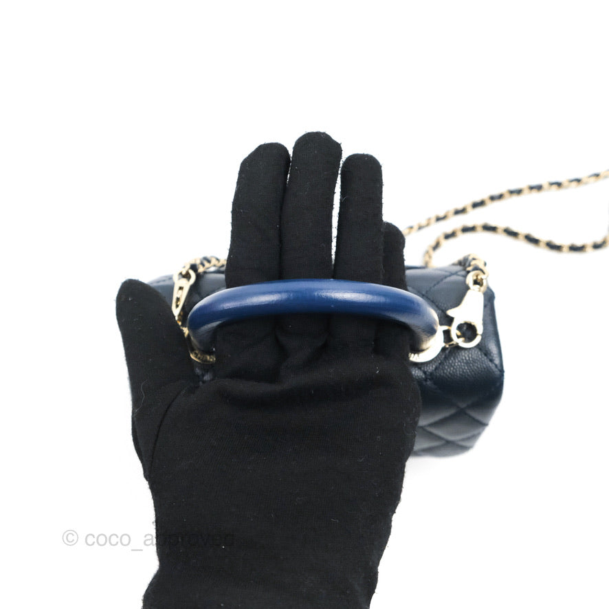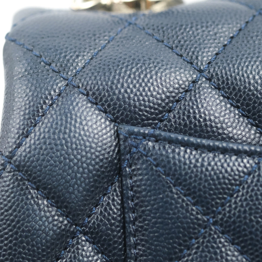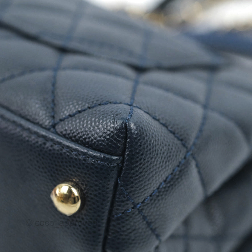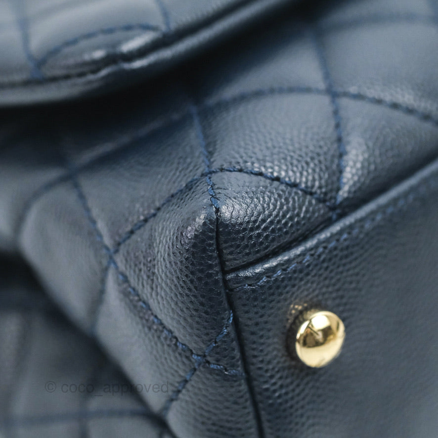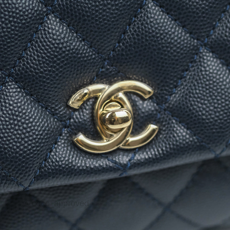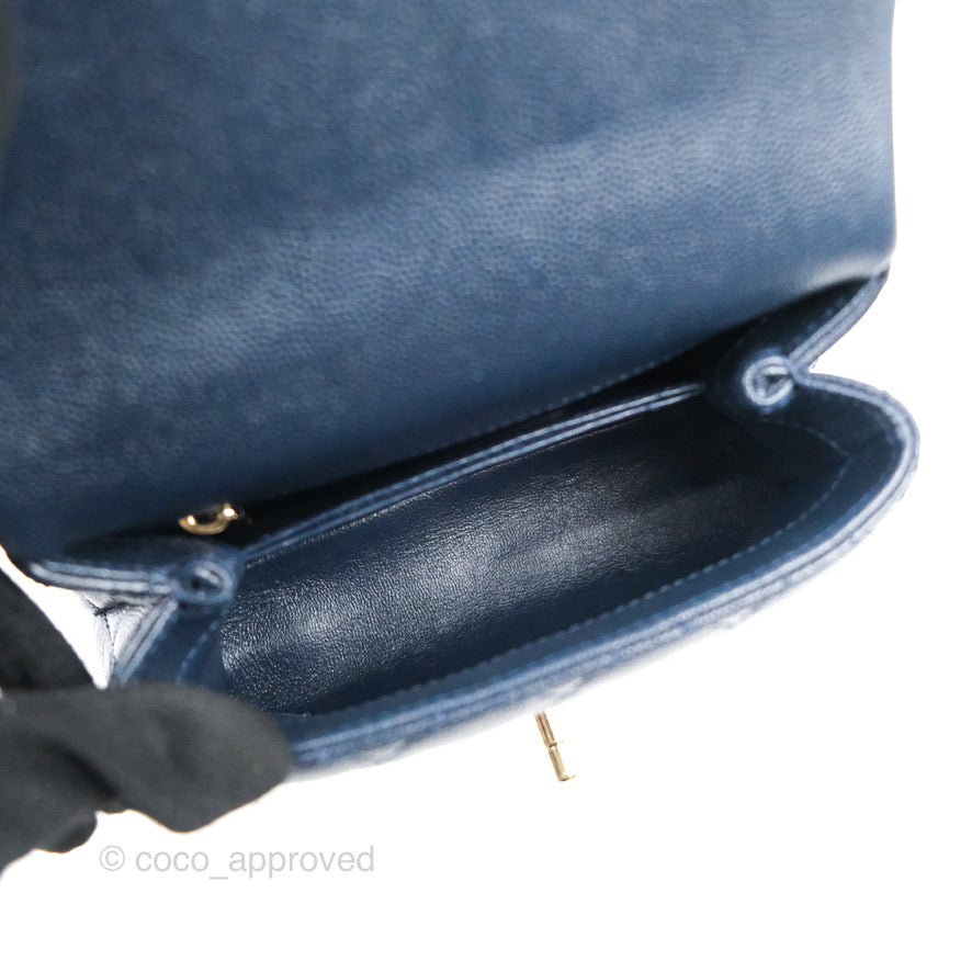 Chanel Mini Coco Handle Quilted Navy Caviar Gold Hardware Lizard Embossed Handle