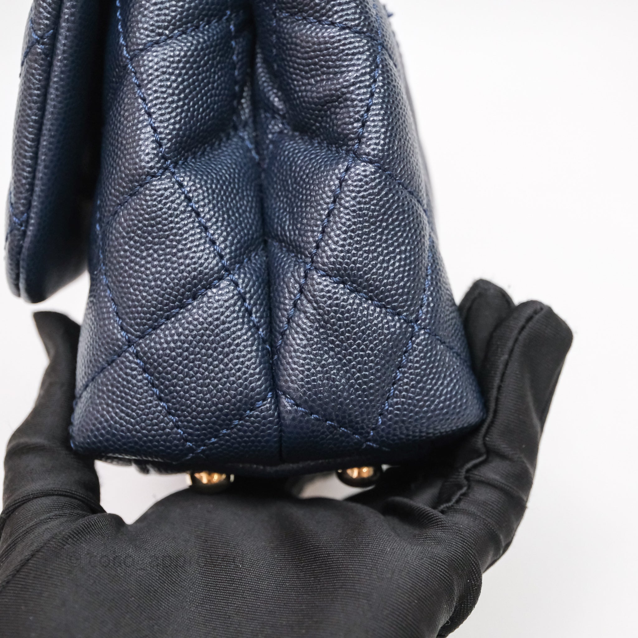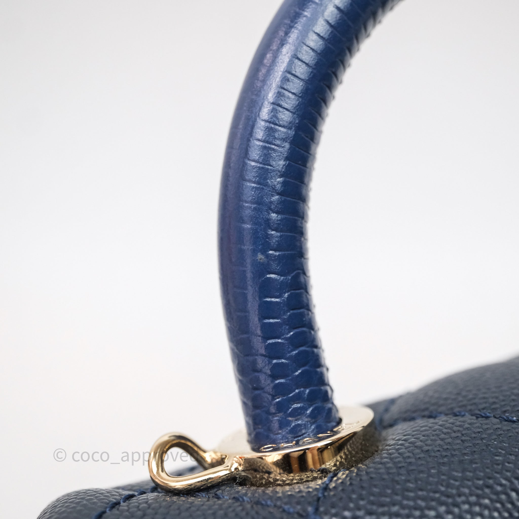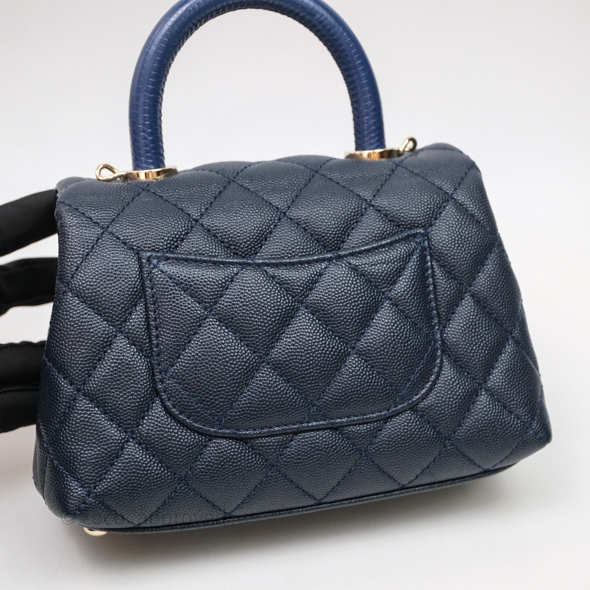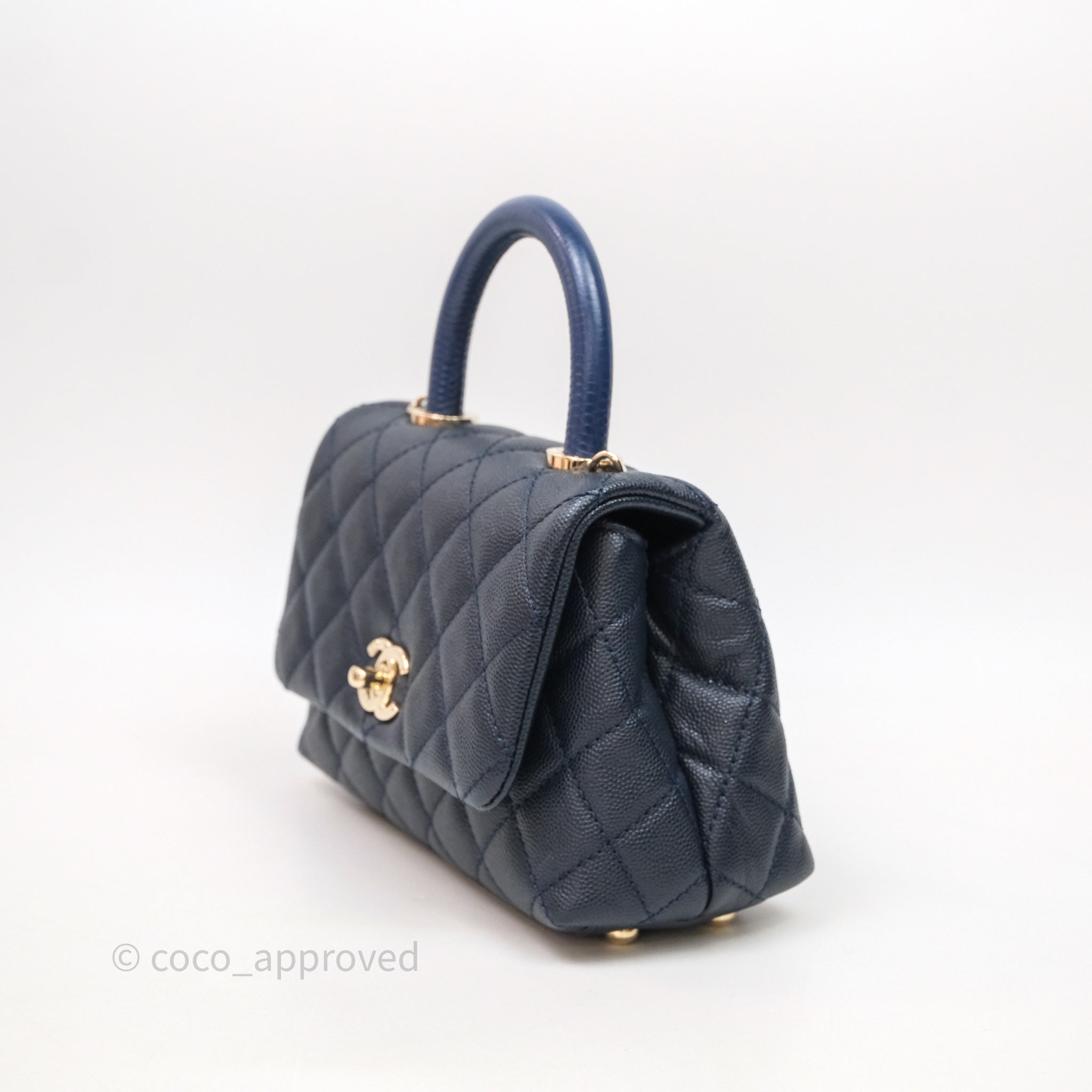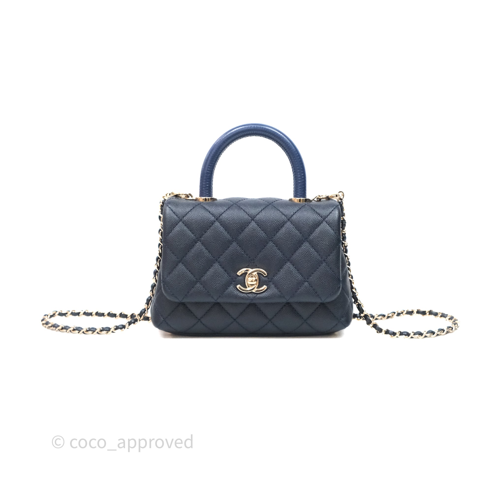 Chanel Mini Coco Handle Quilted Navy Caviar Gold Hardware Lizard Embossed Handle