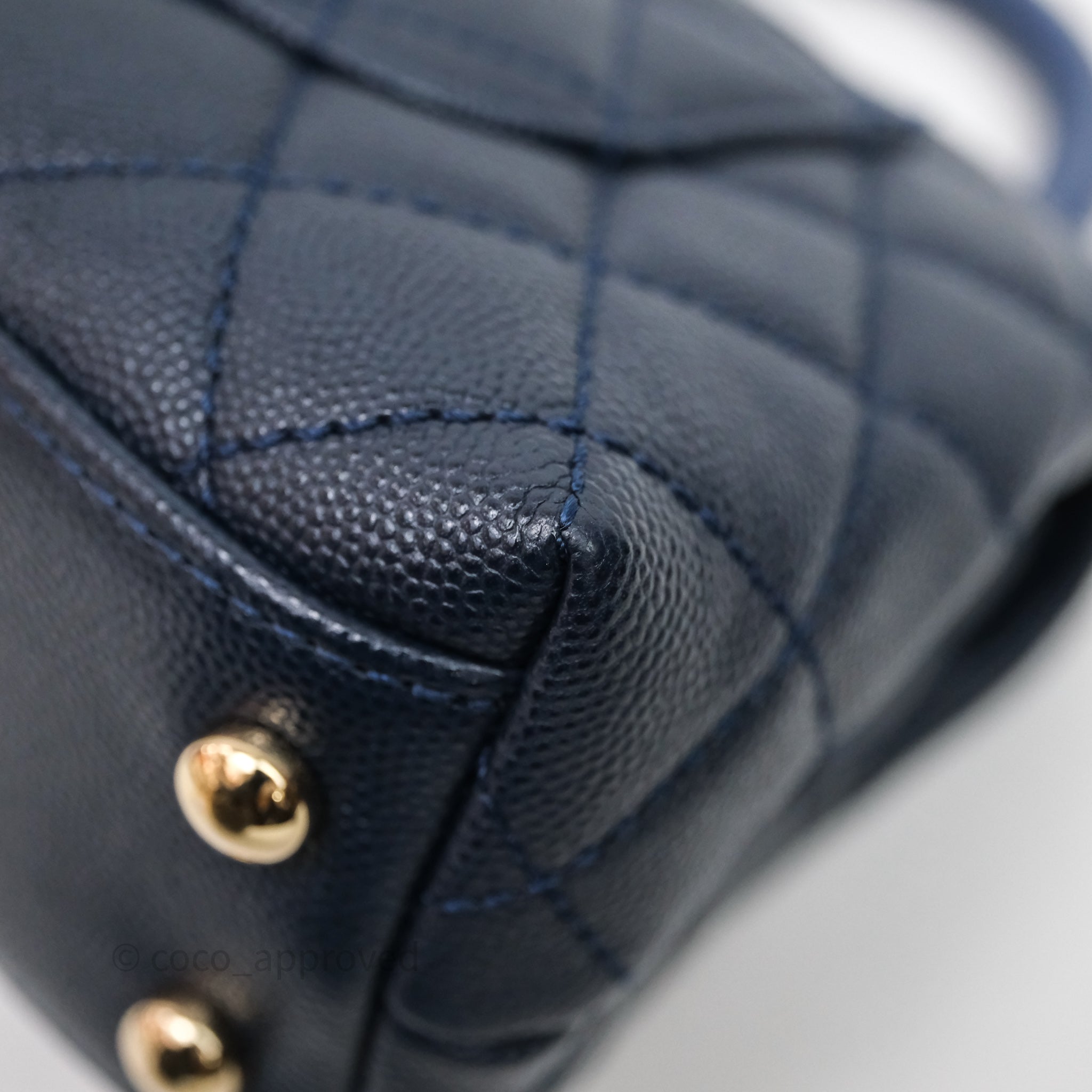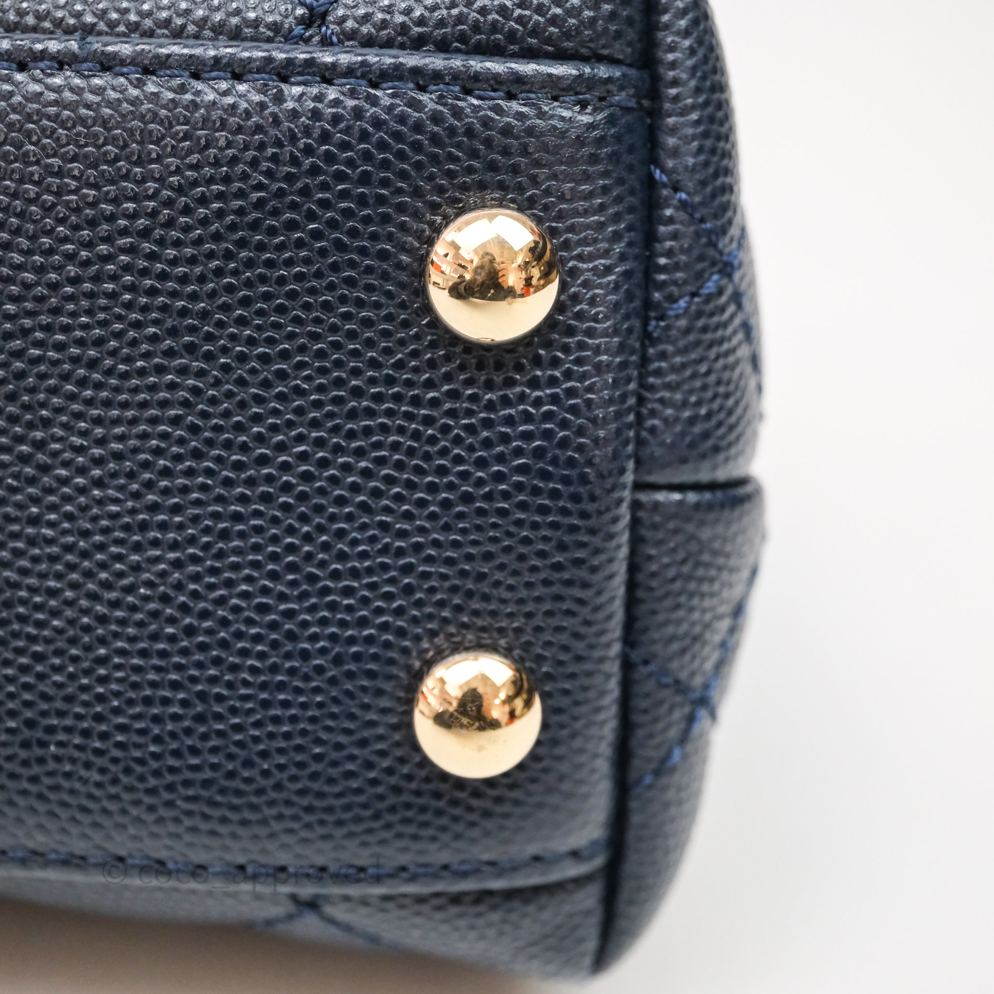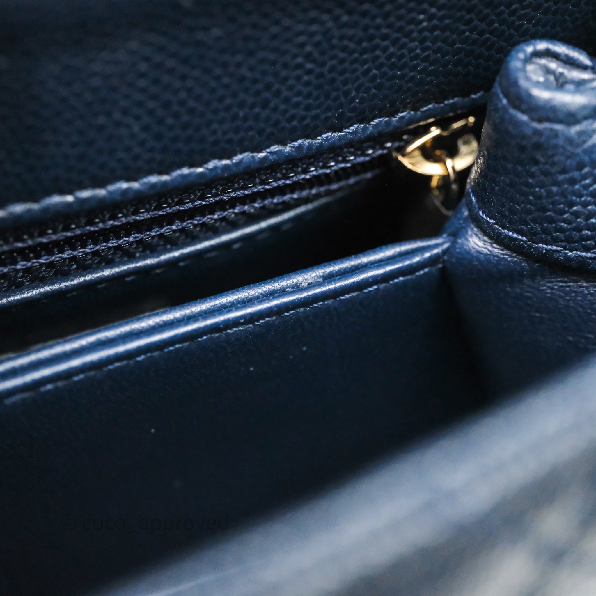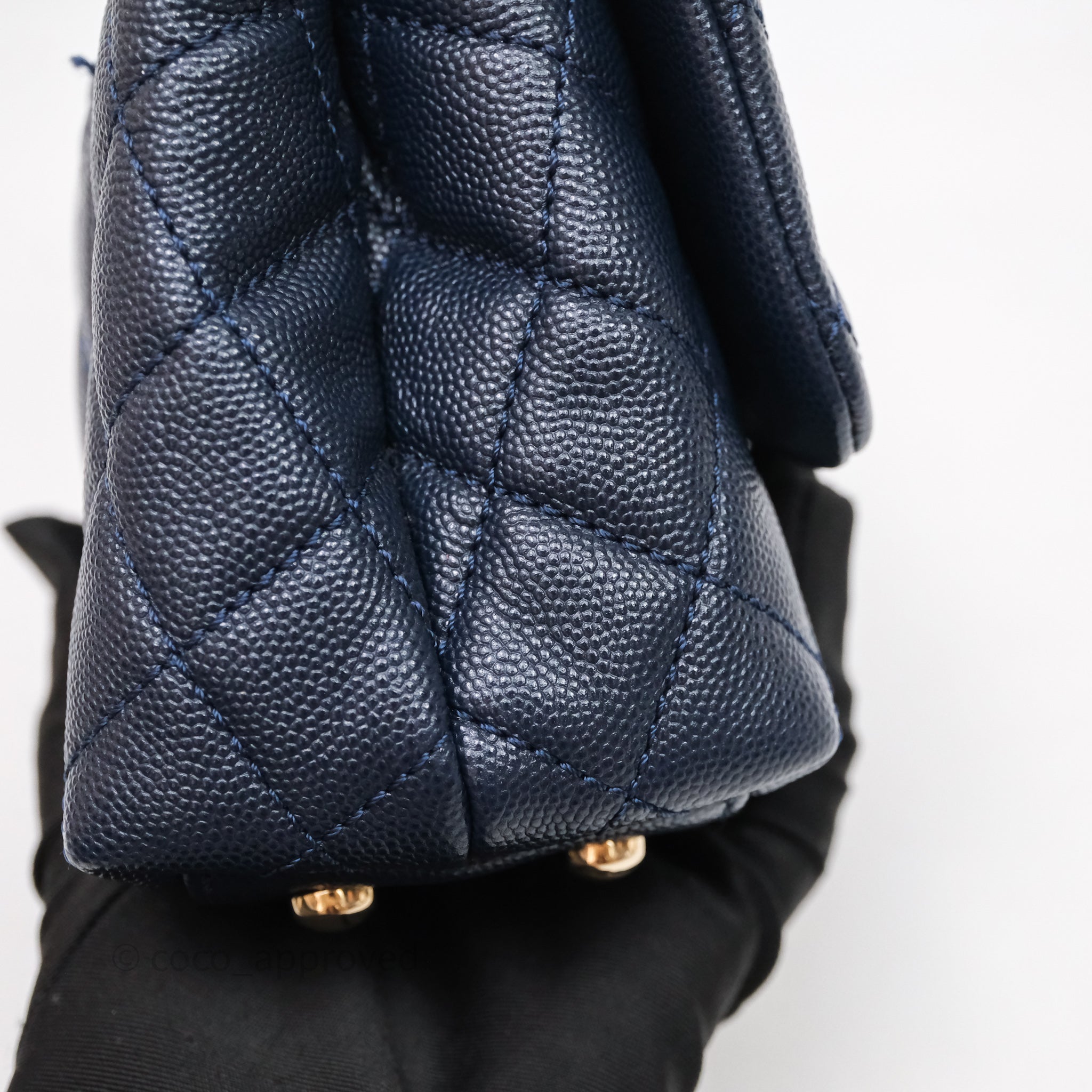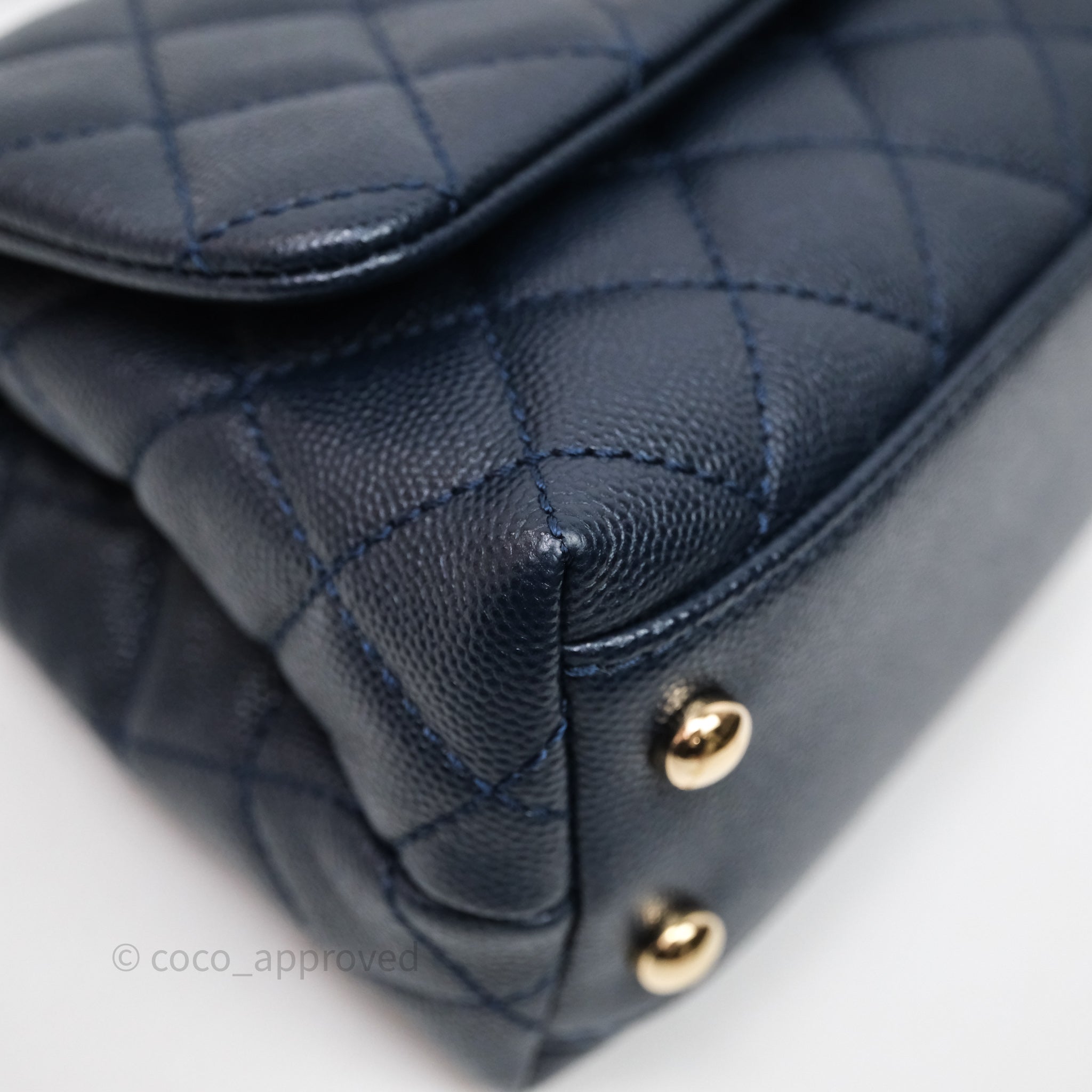 Chanel Mini Coco Handle Quilted Navy Caviar Gold Hardware Lizard Embossed Handle