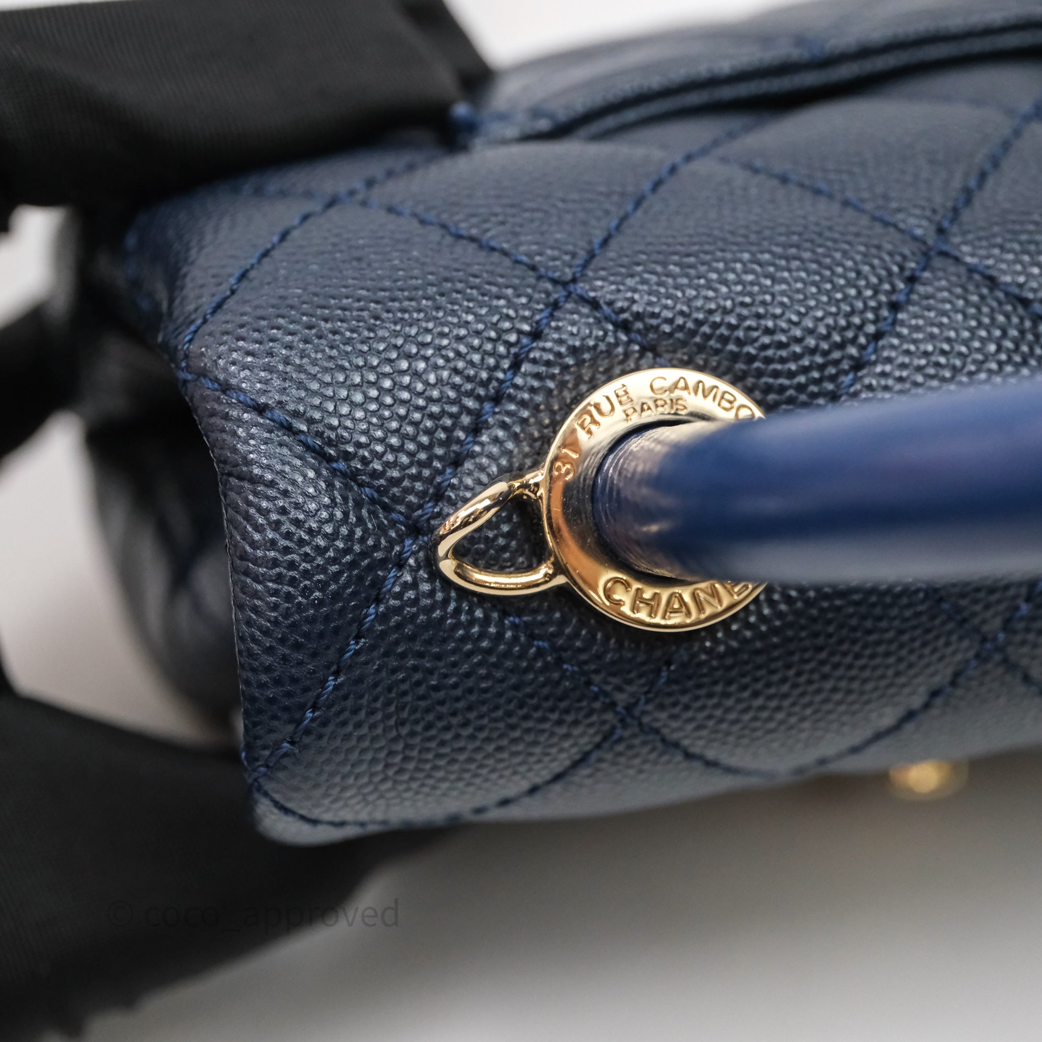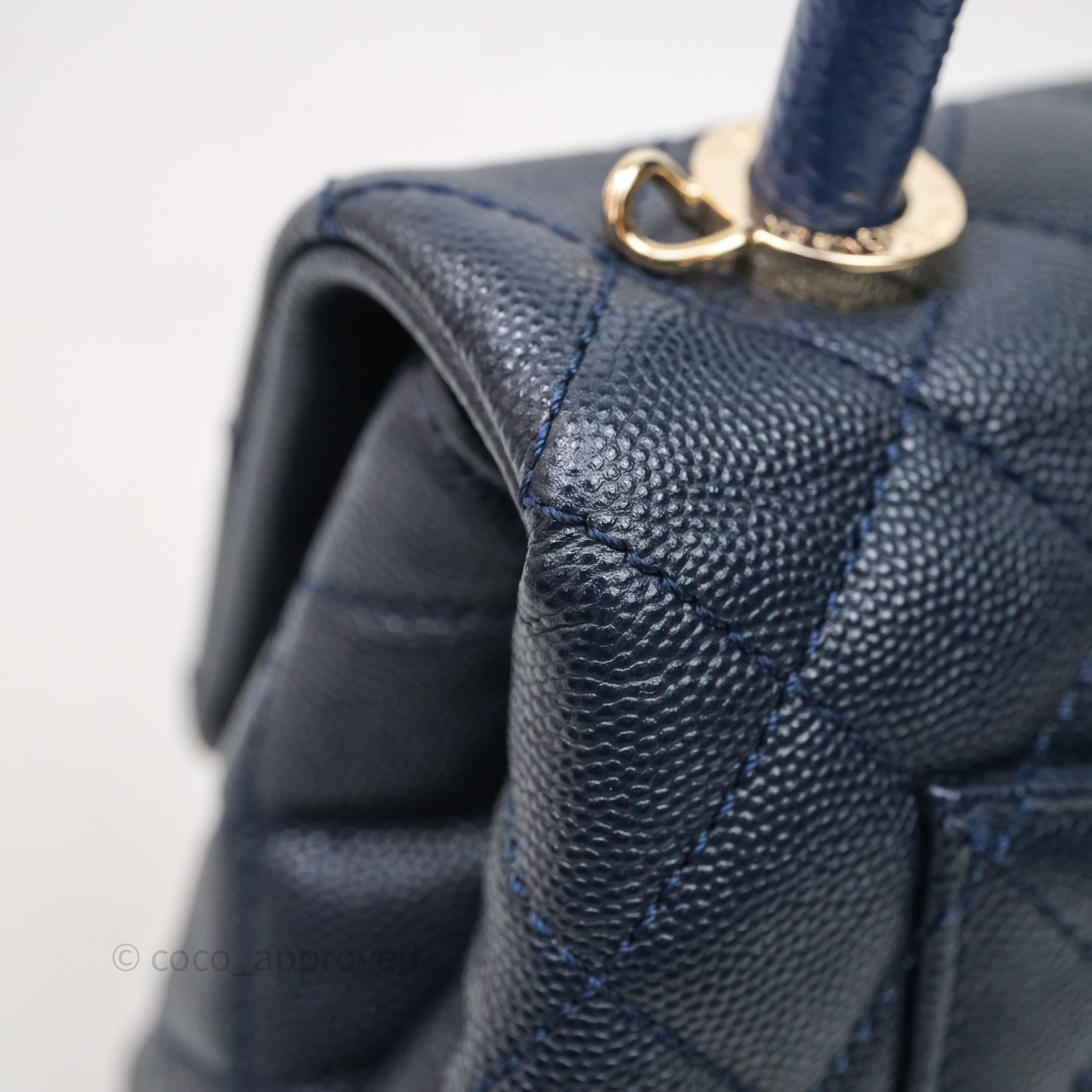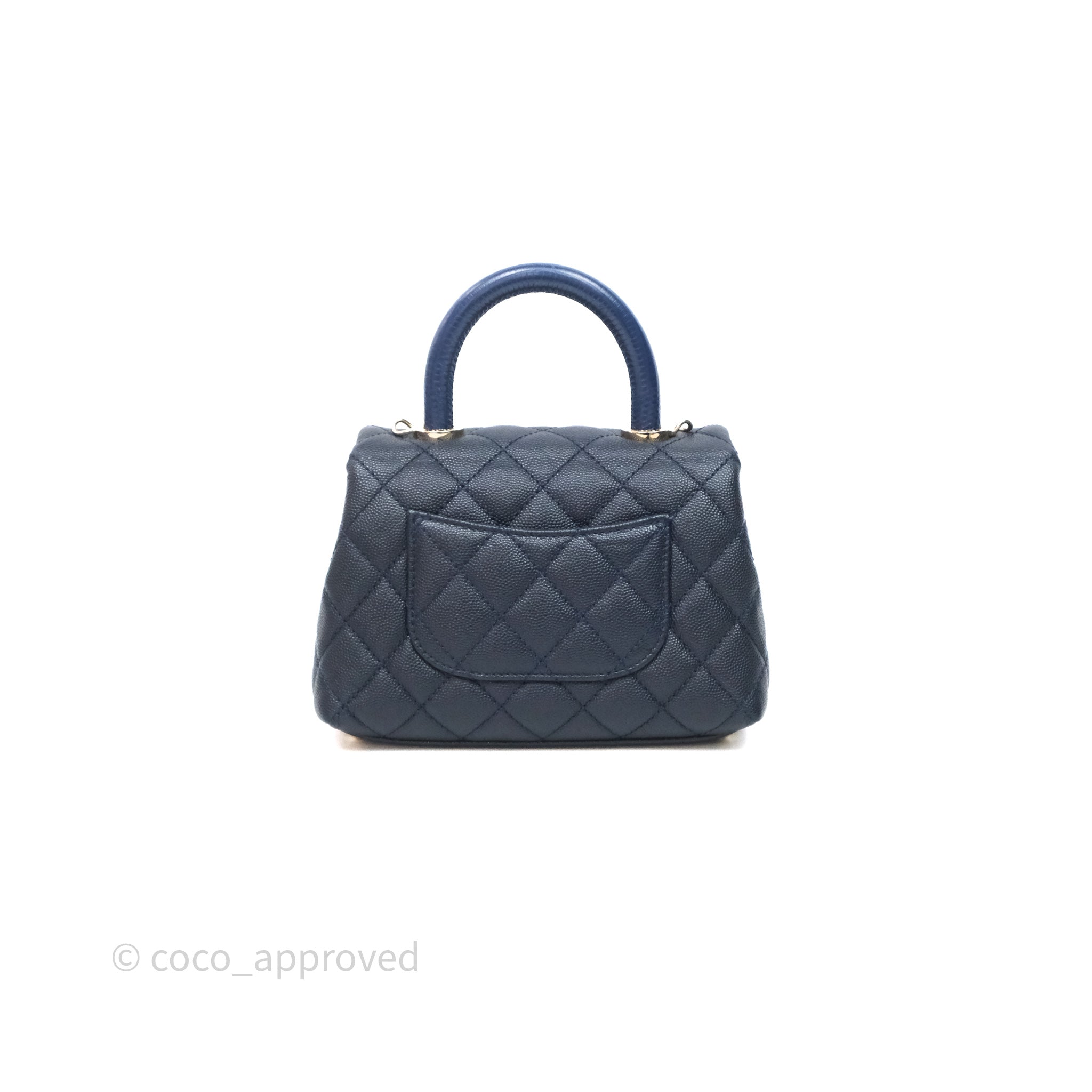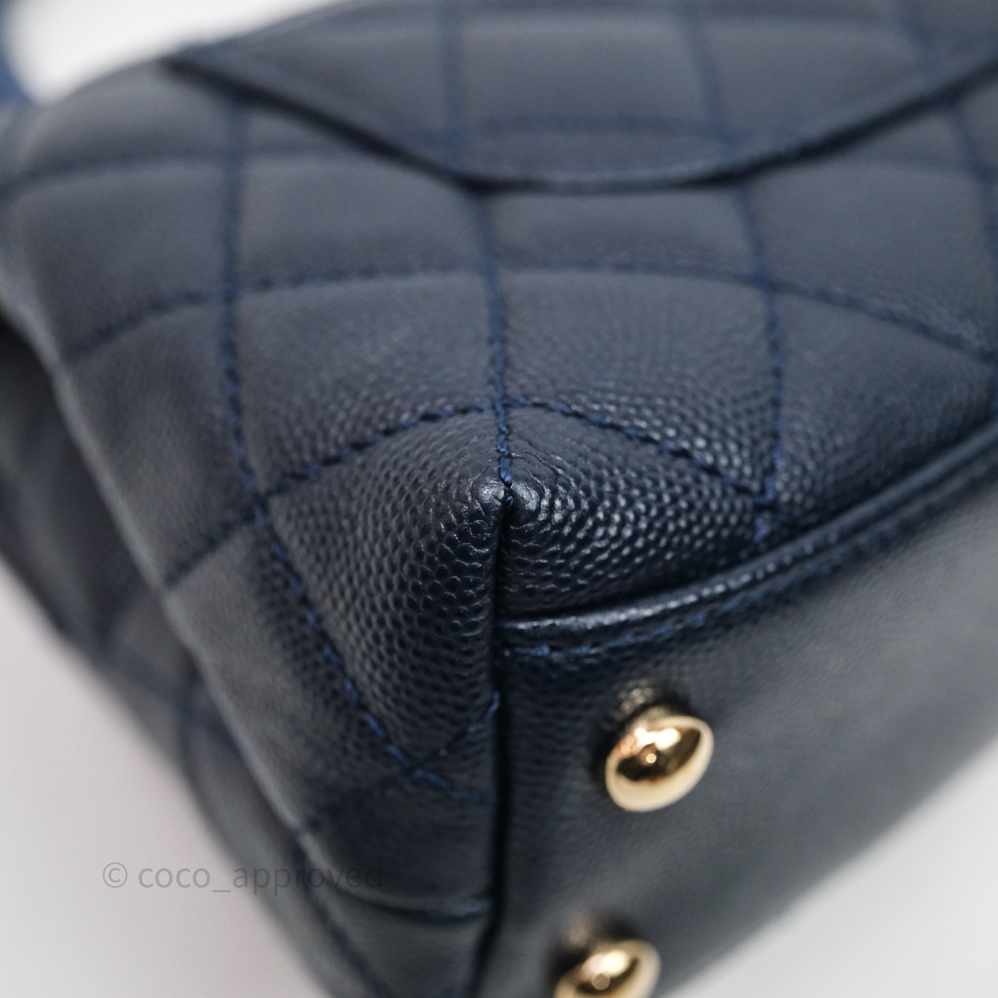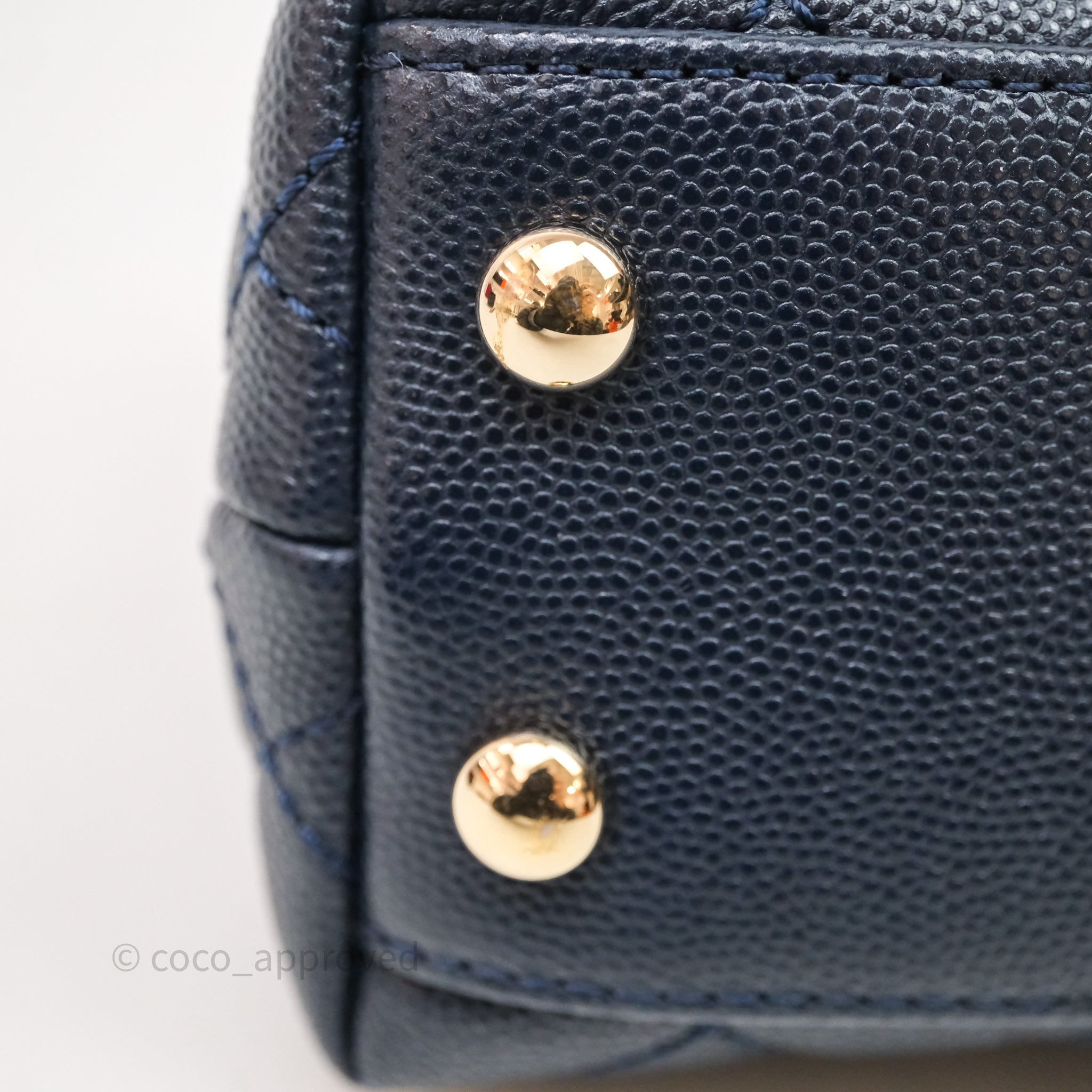 Chanel Mini Coco Handle Quilted Navy Caviar Gold Hardware Lizard Embossed Handle
