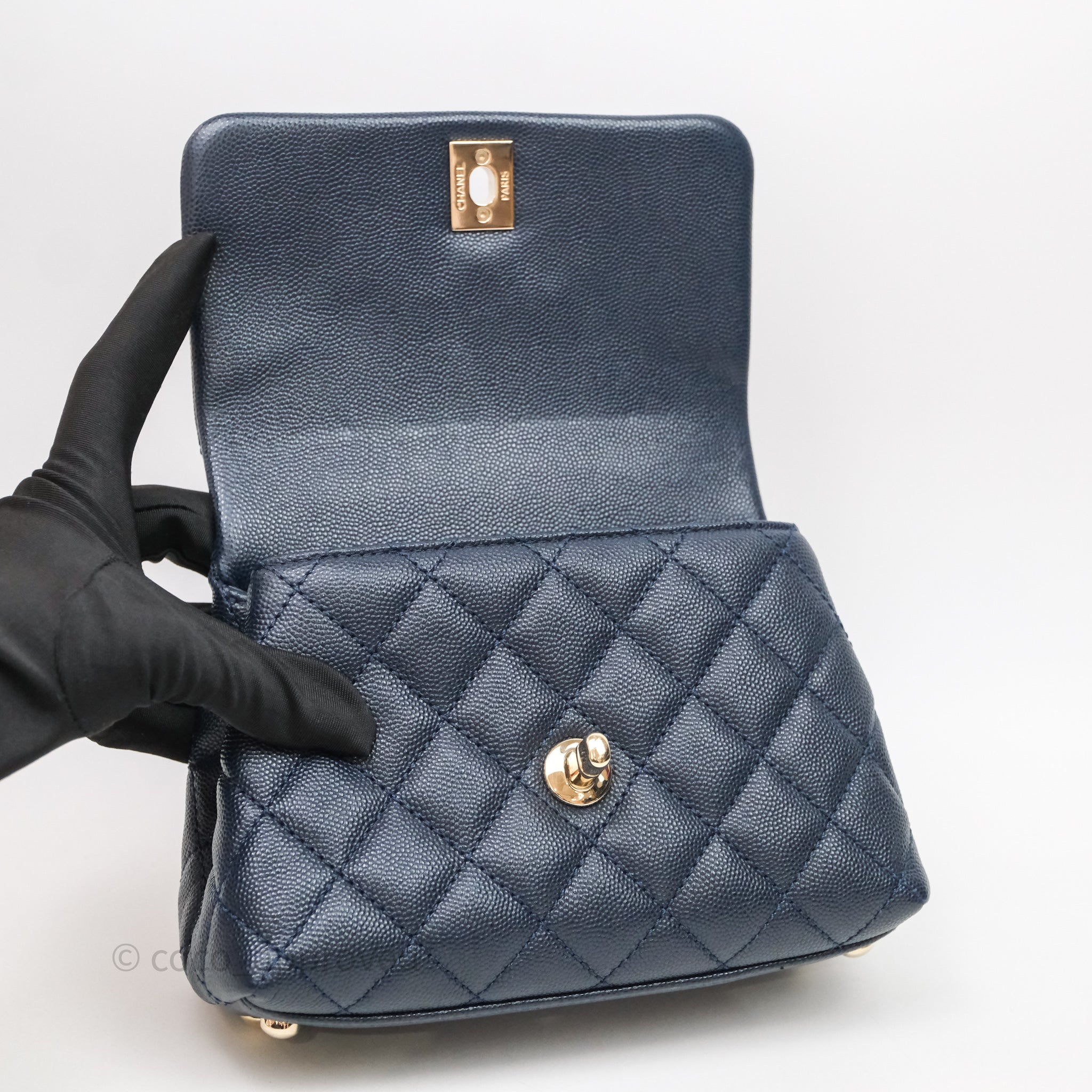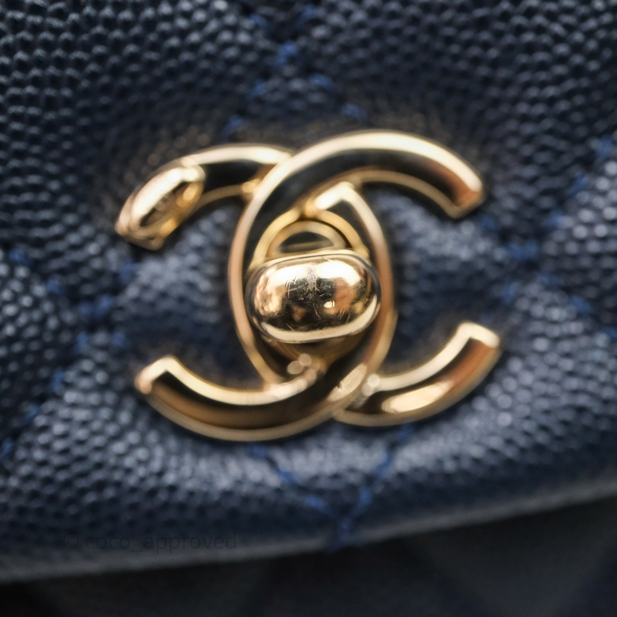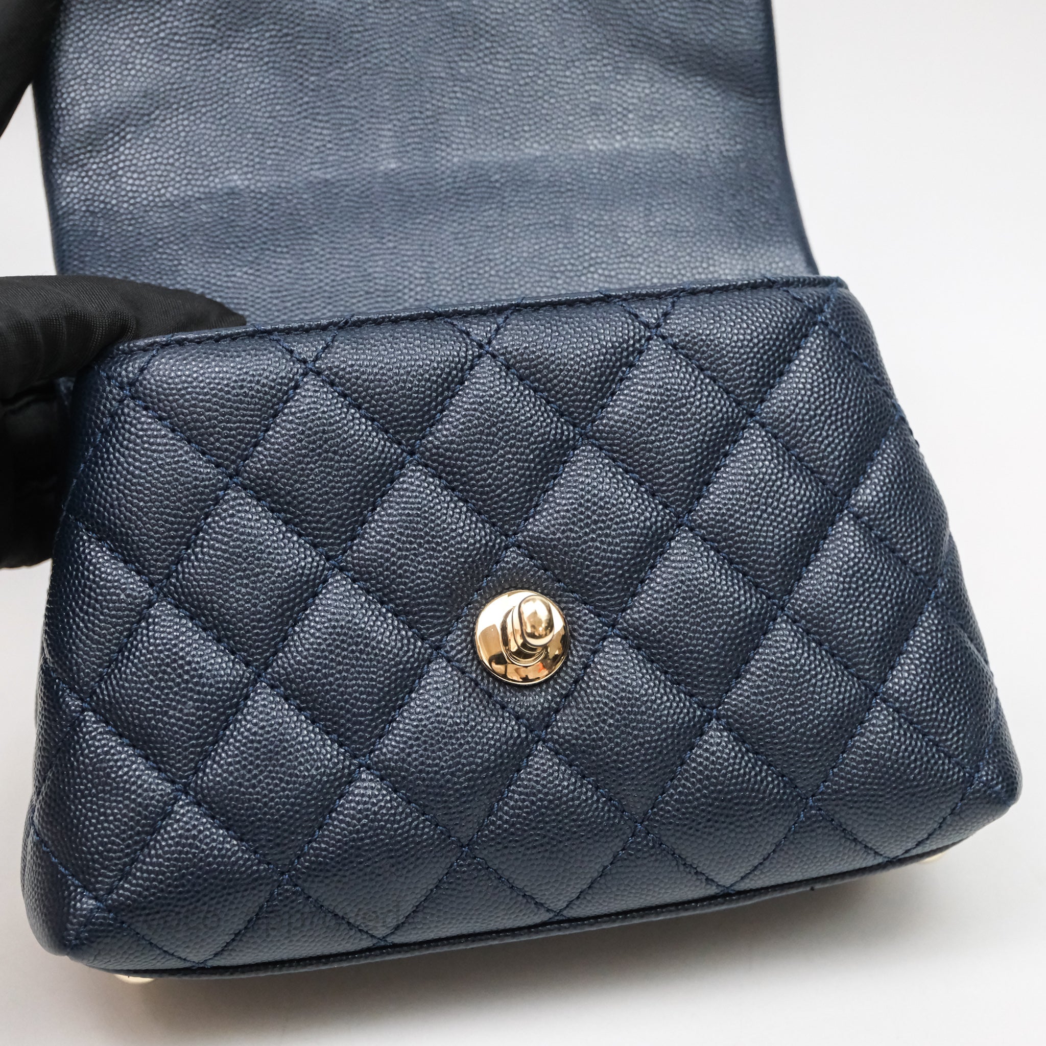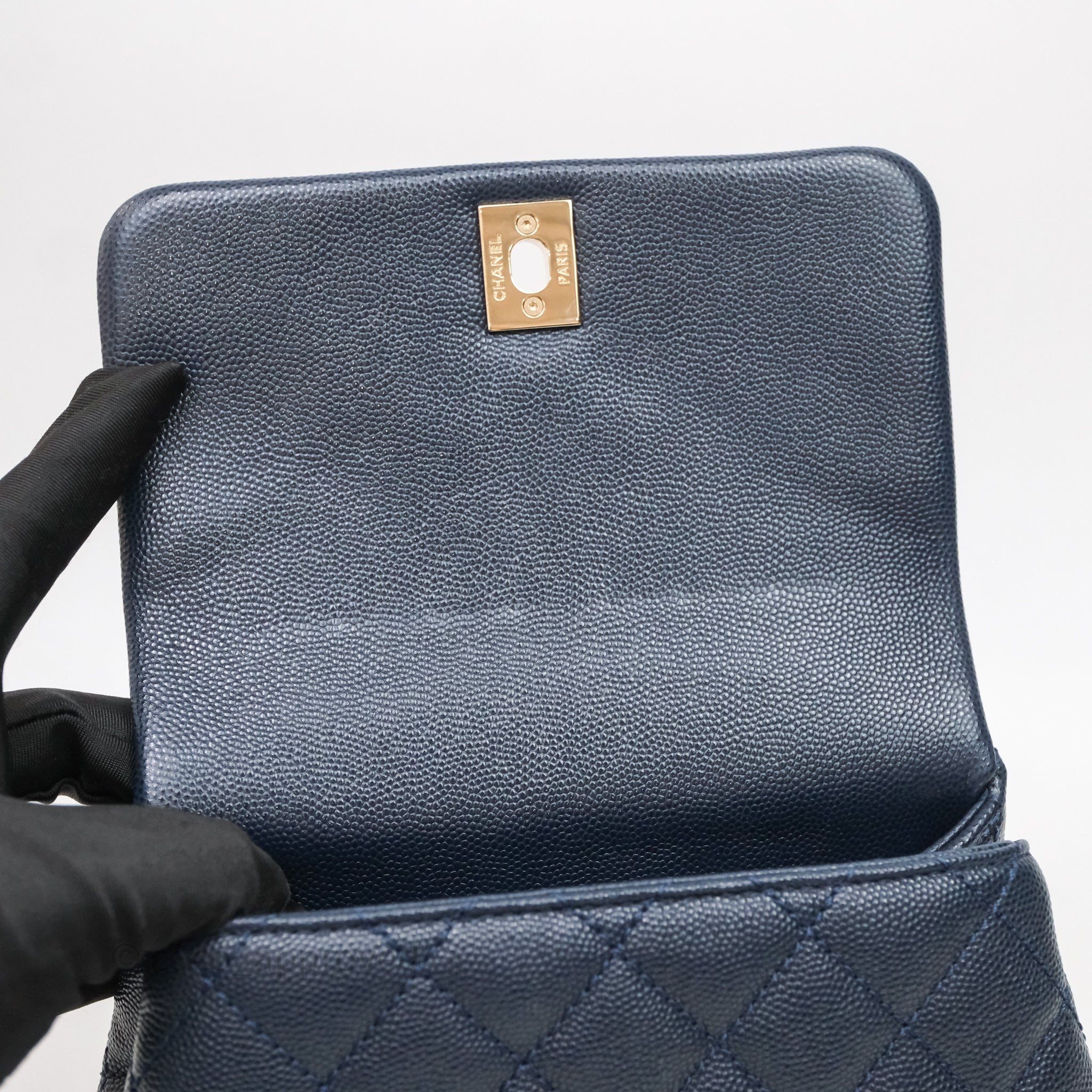 Chanel Mini Coco Handle Quilted Navy Caviar Gold Hardware Lizard Embossed Handle