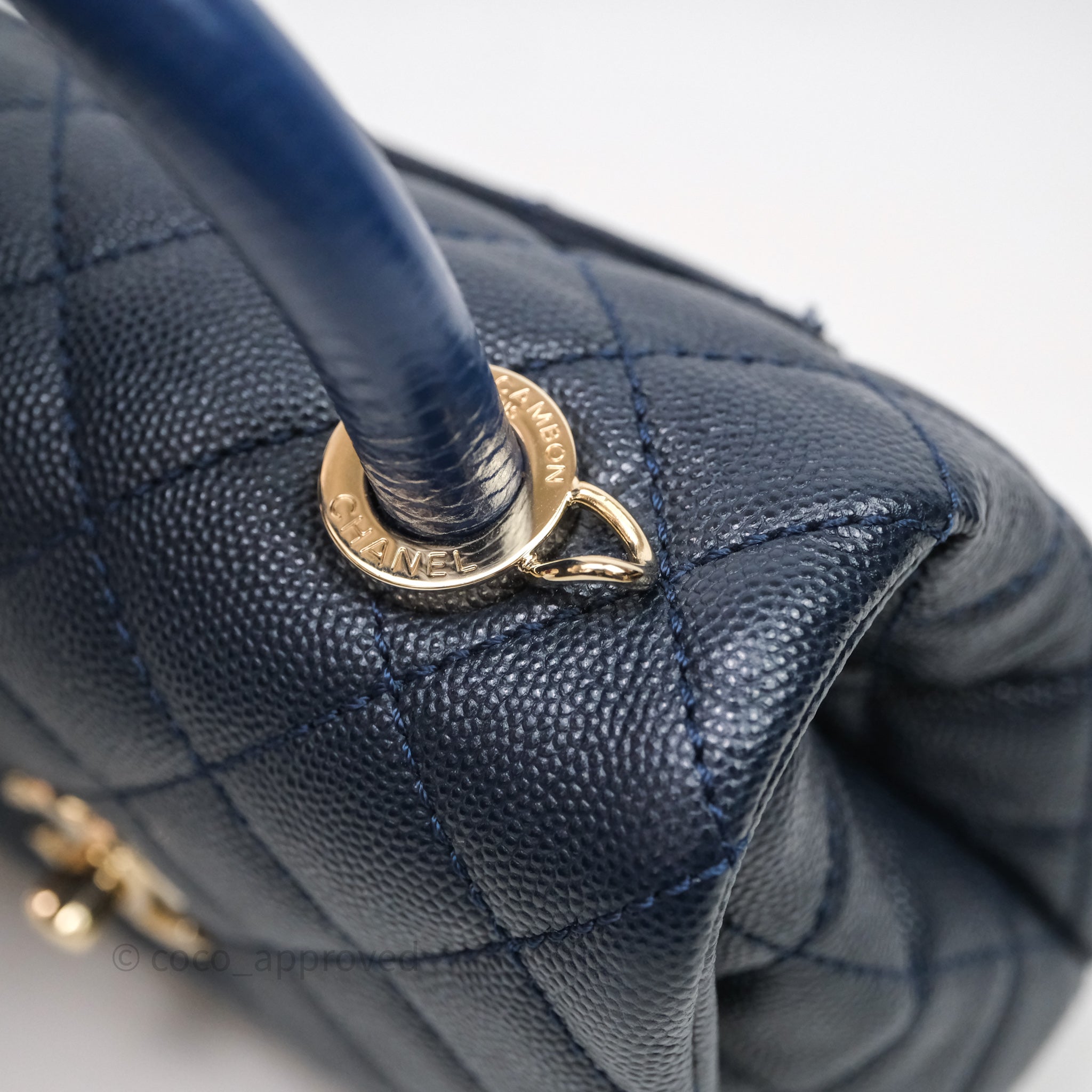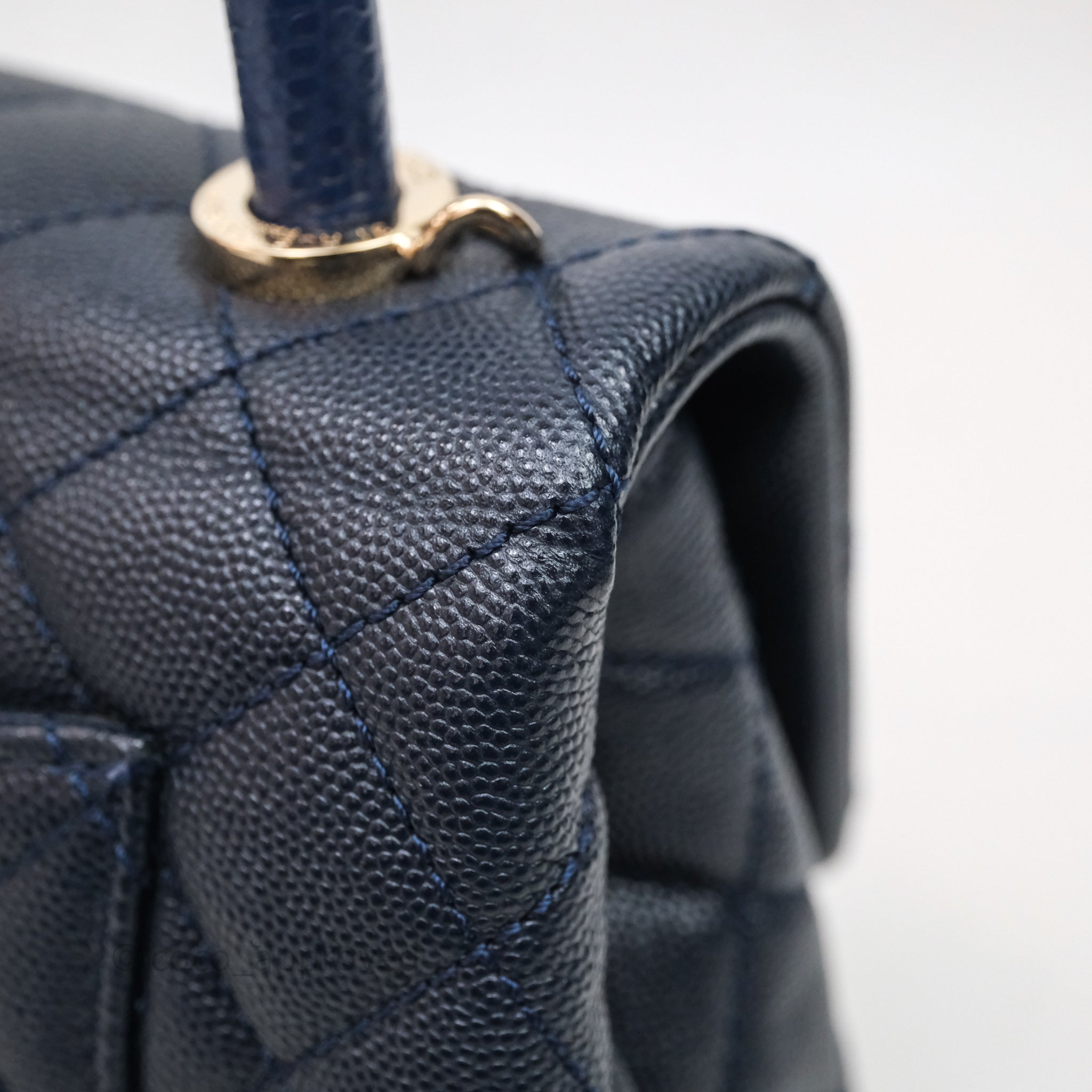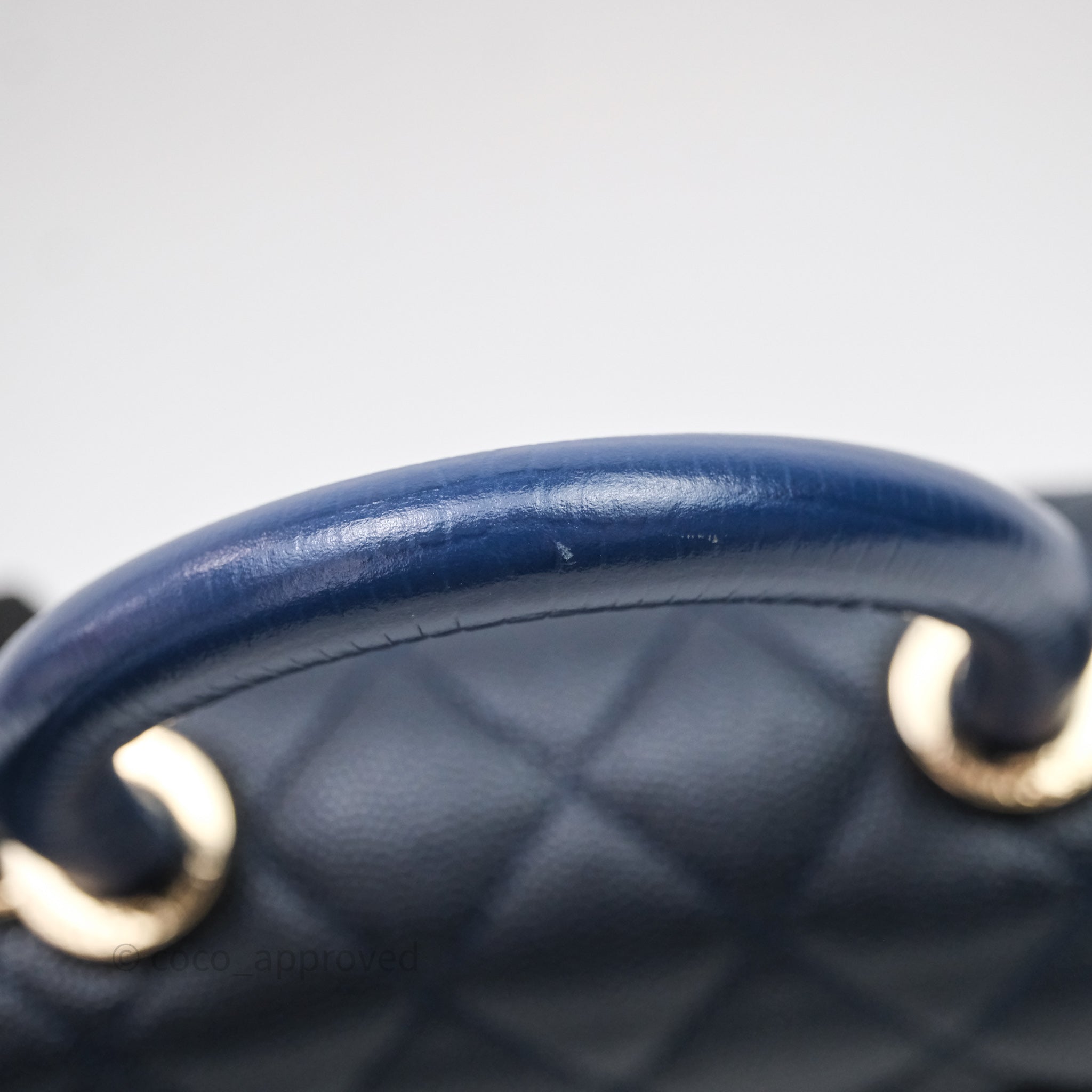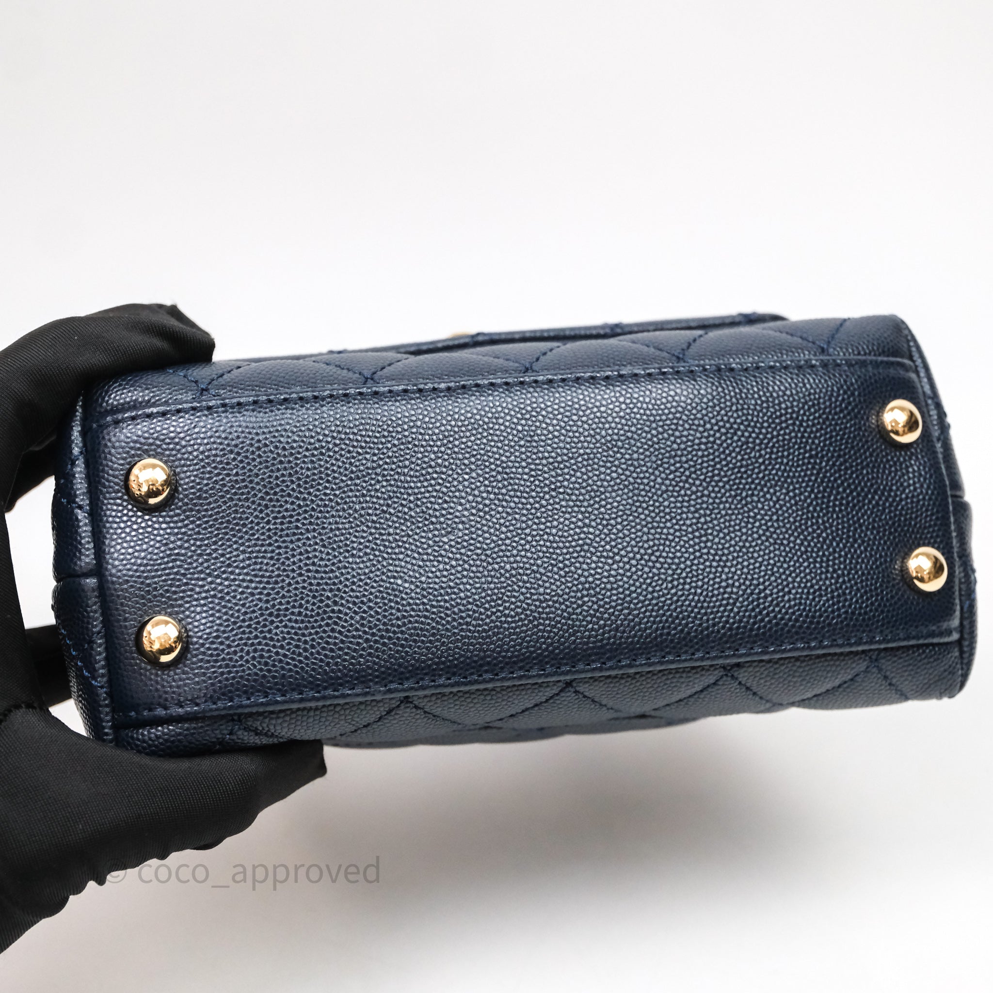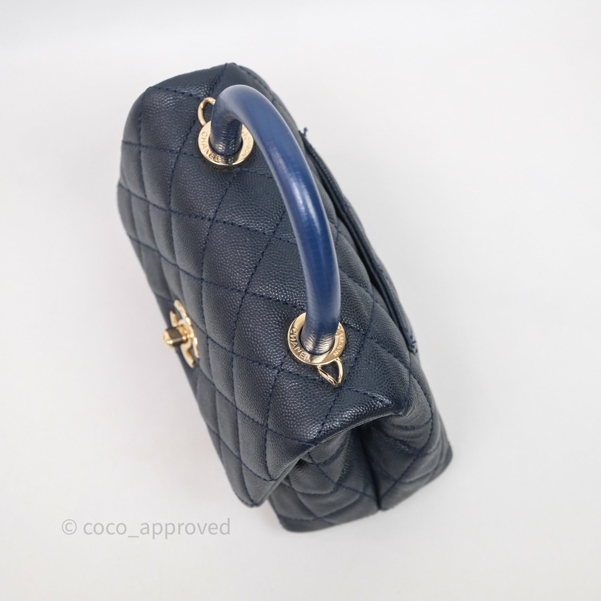 Chanel Mini Coco Handle Quilted Navy Caviar Gold Hardware Lizard Embossed Handle