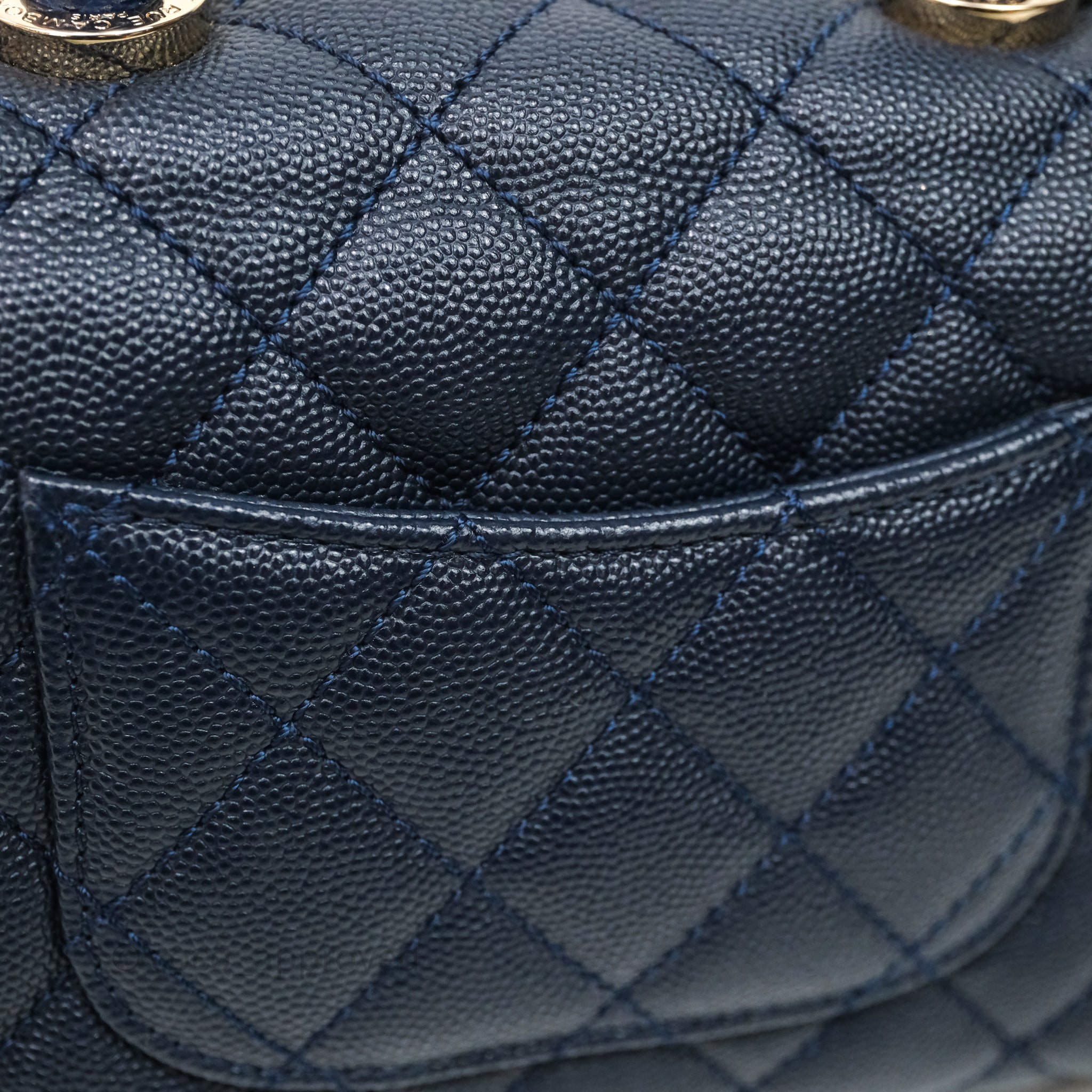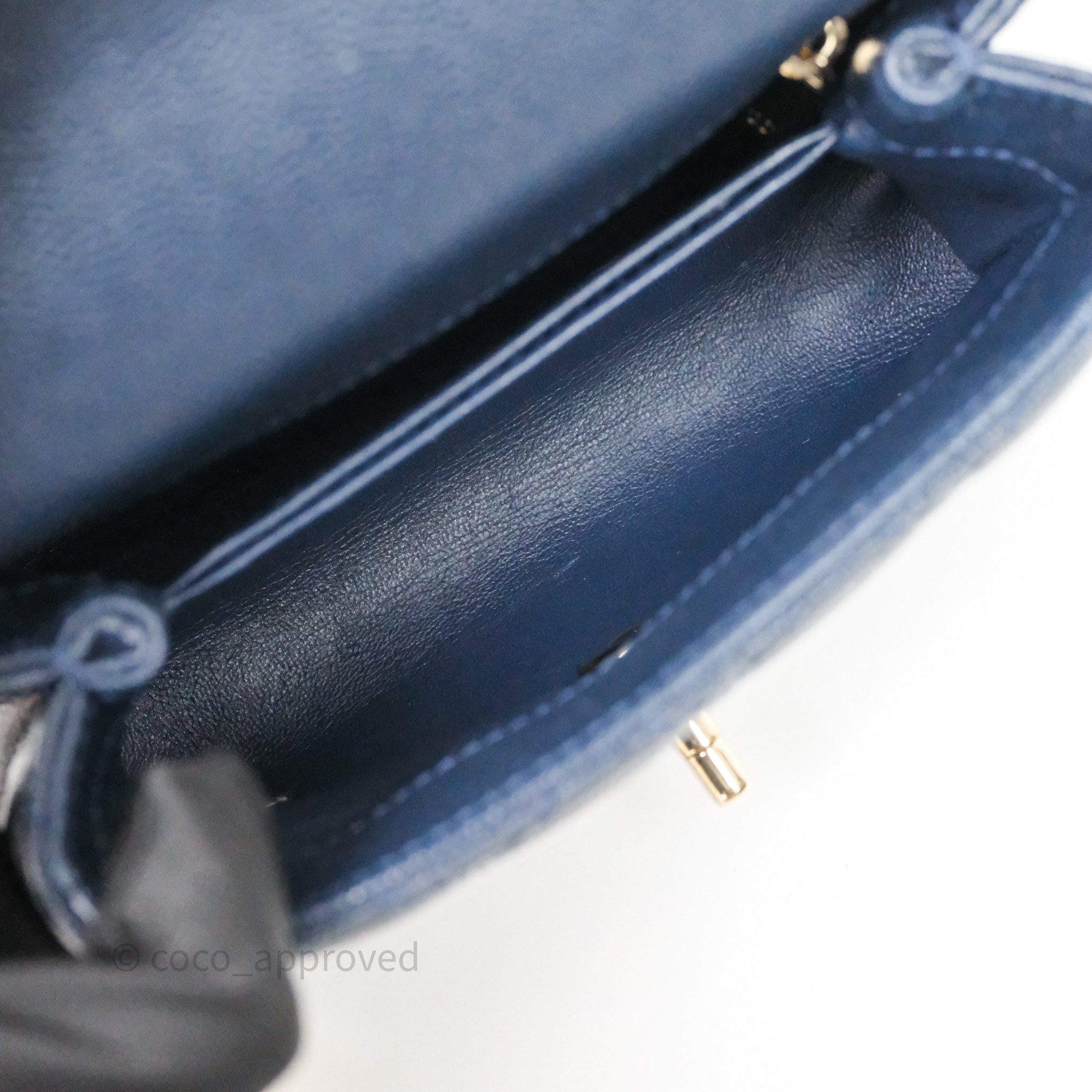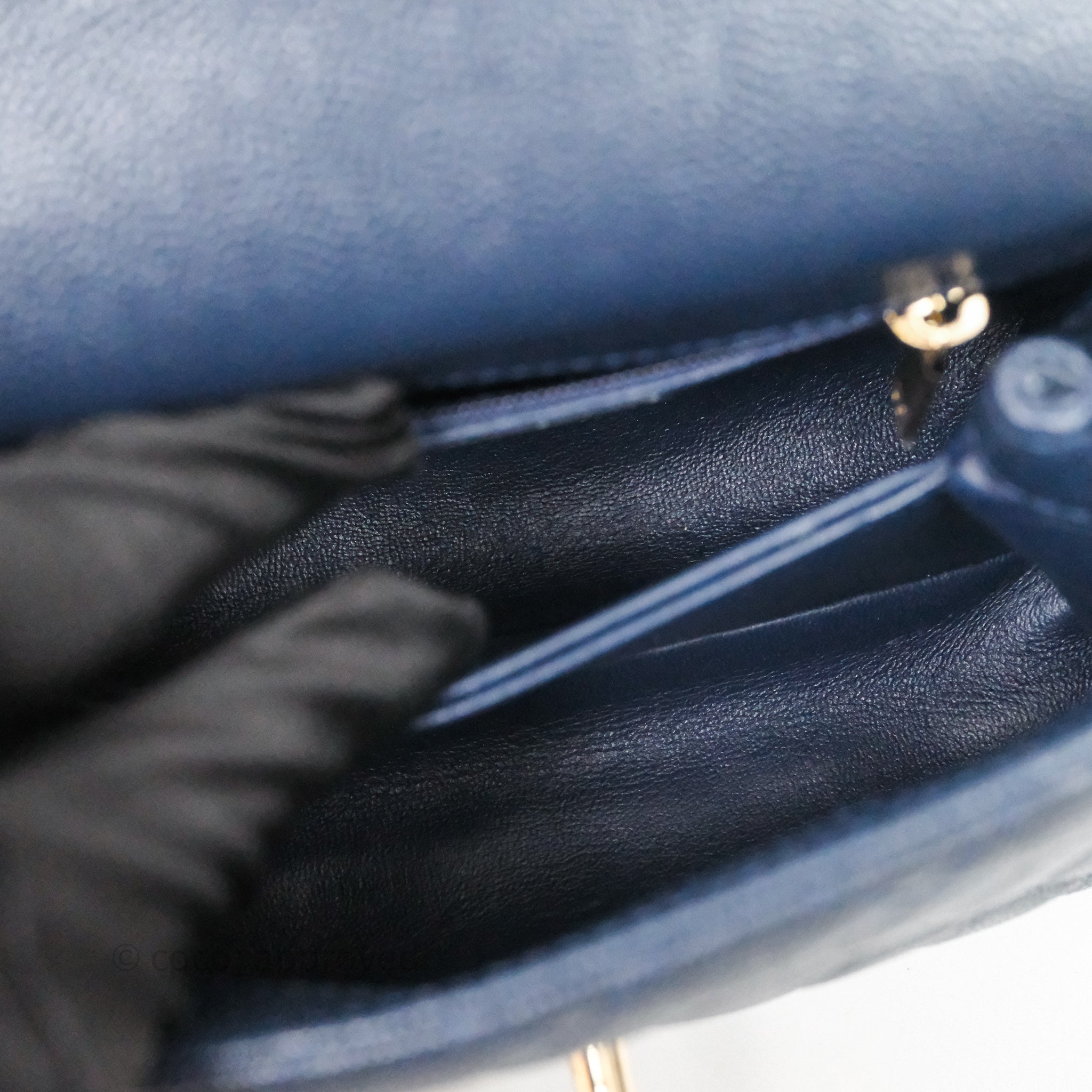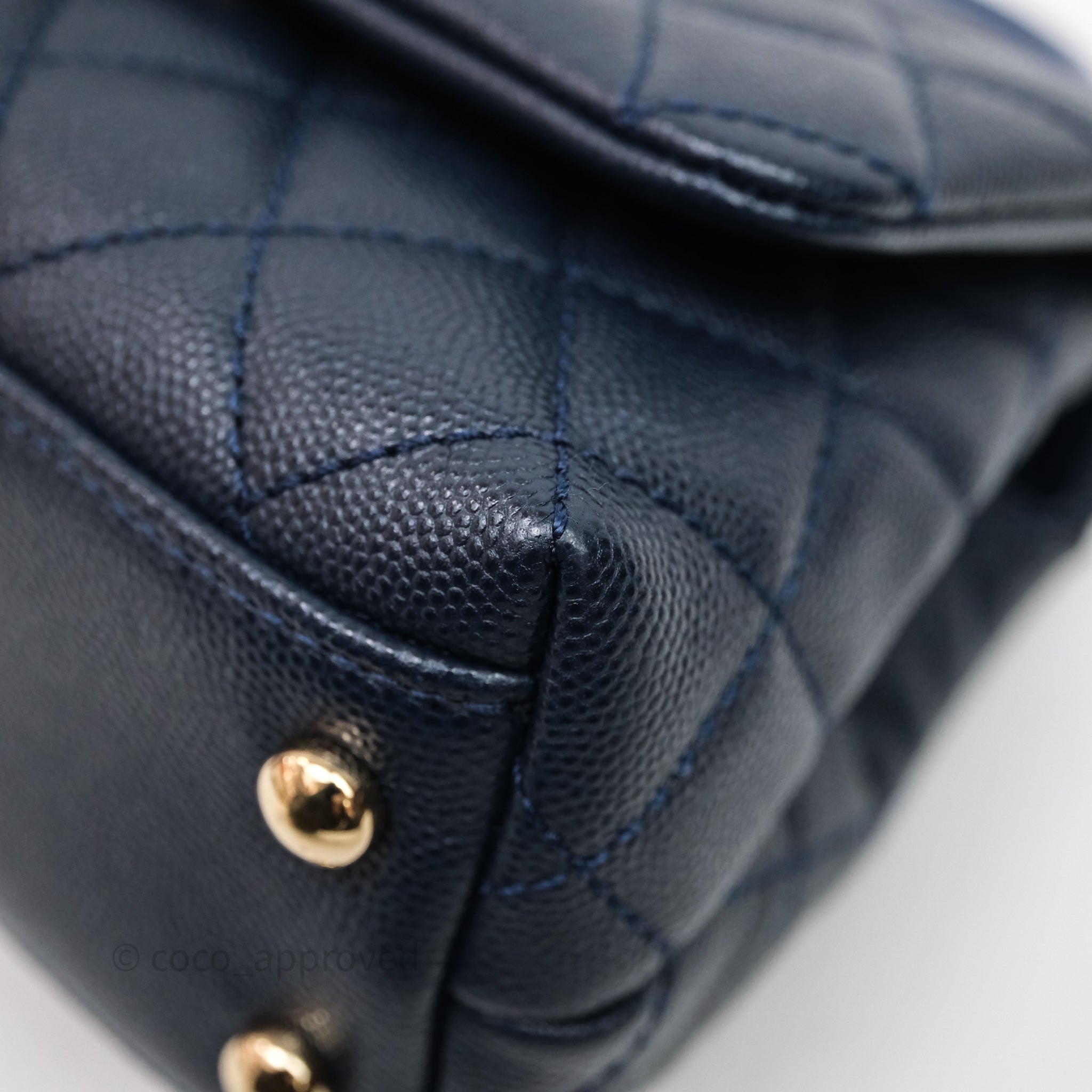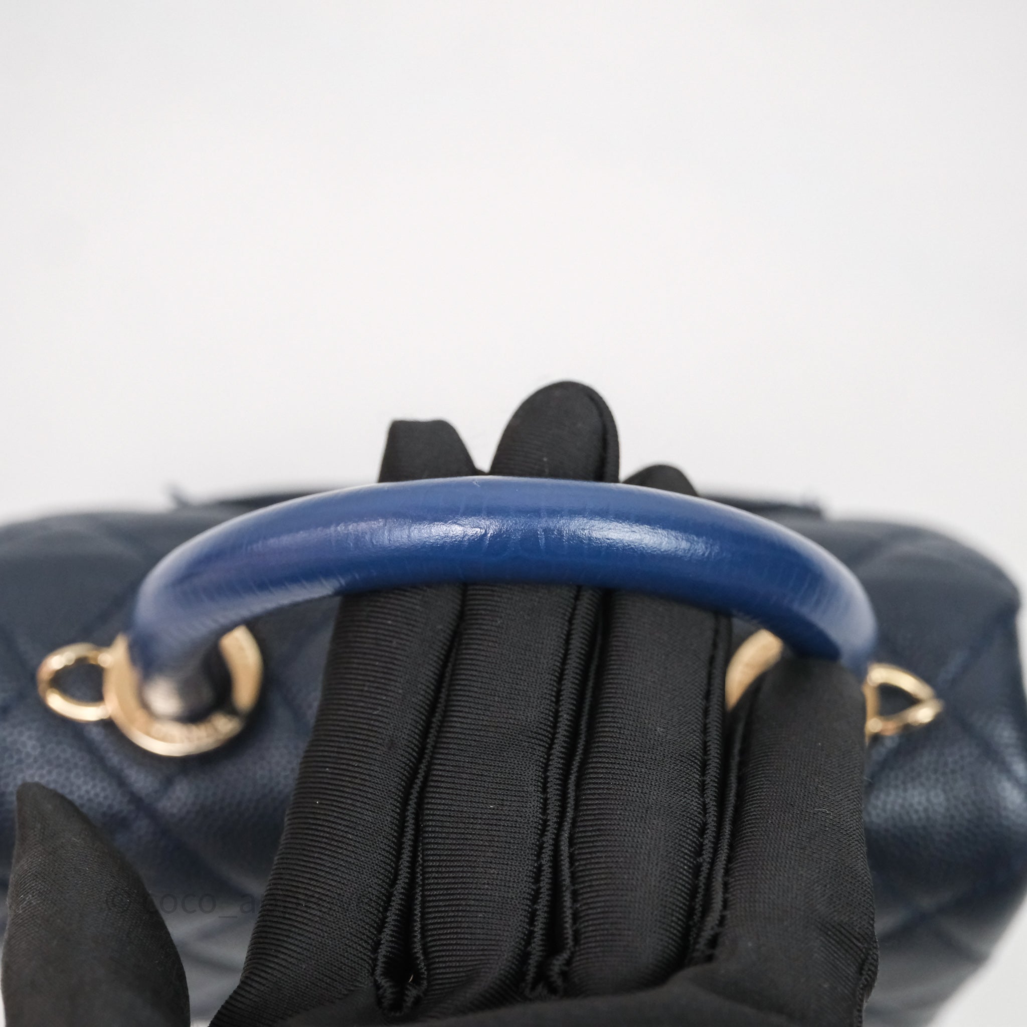 Chanel Mini Coco Handle Quilted Navy Caviar Gold Hardware Lizard Embossed Handle