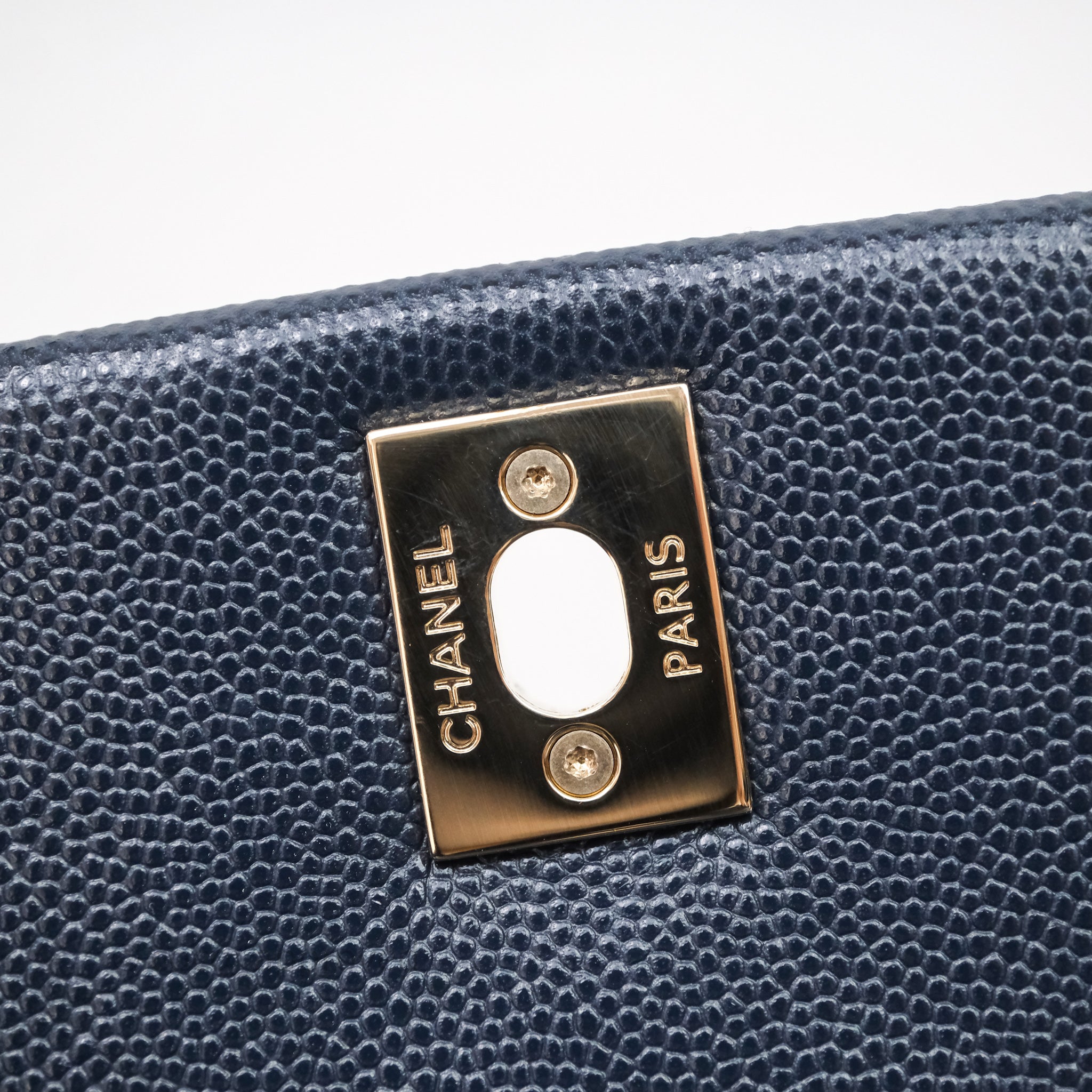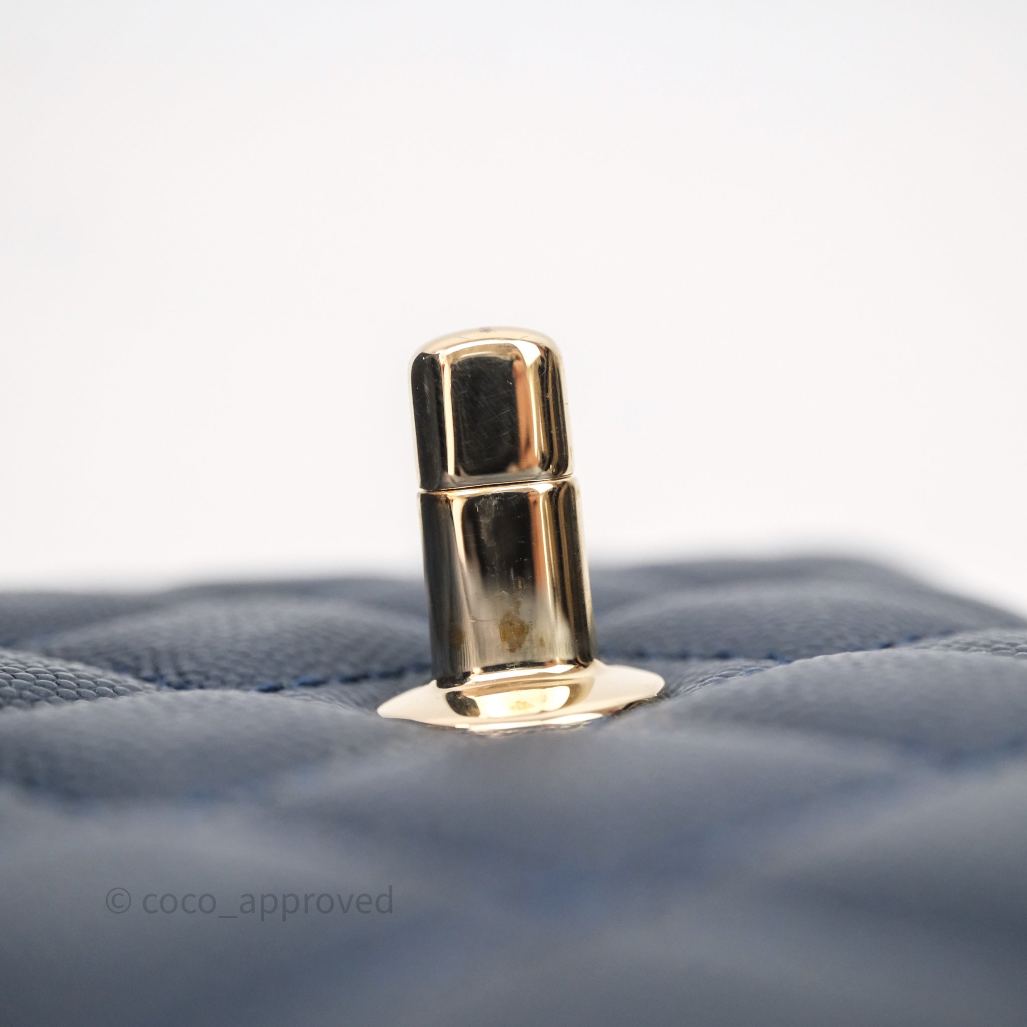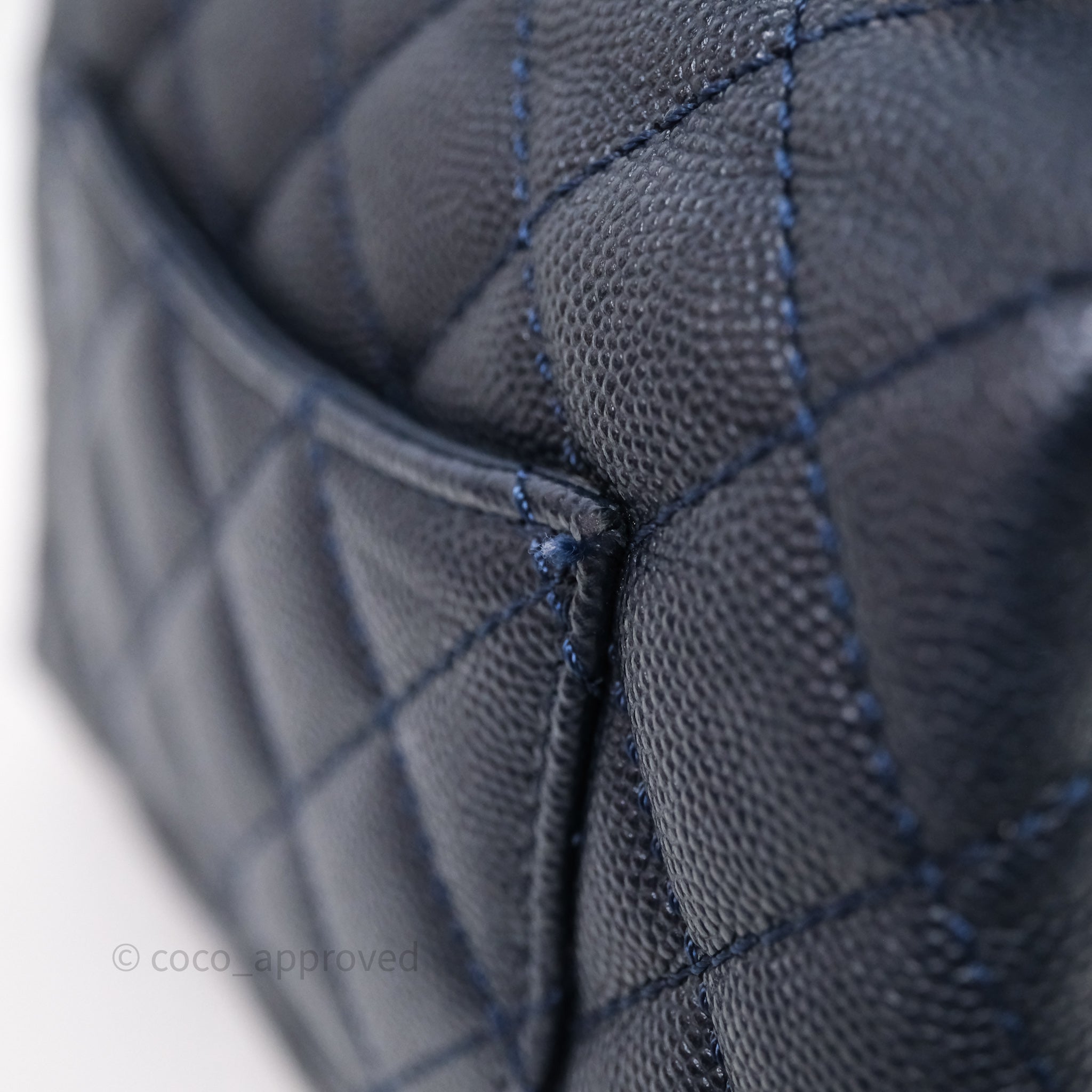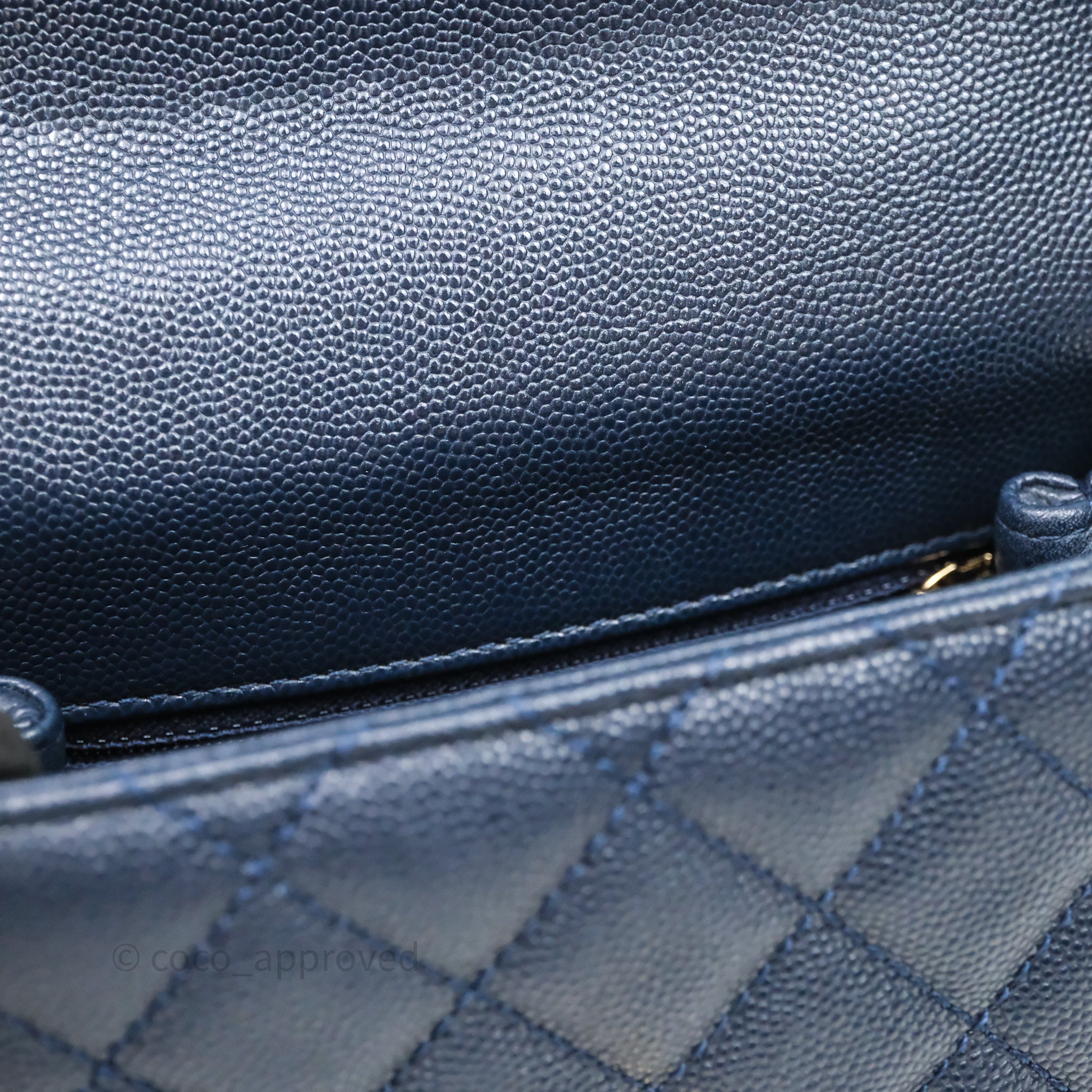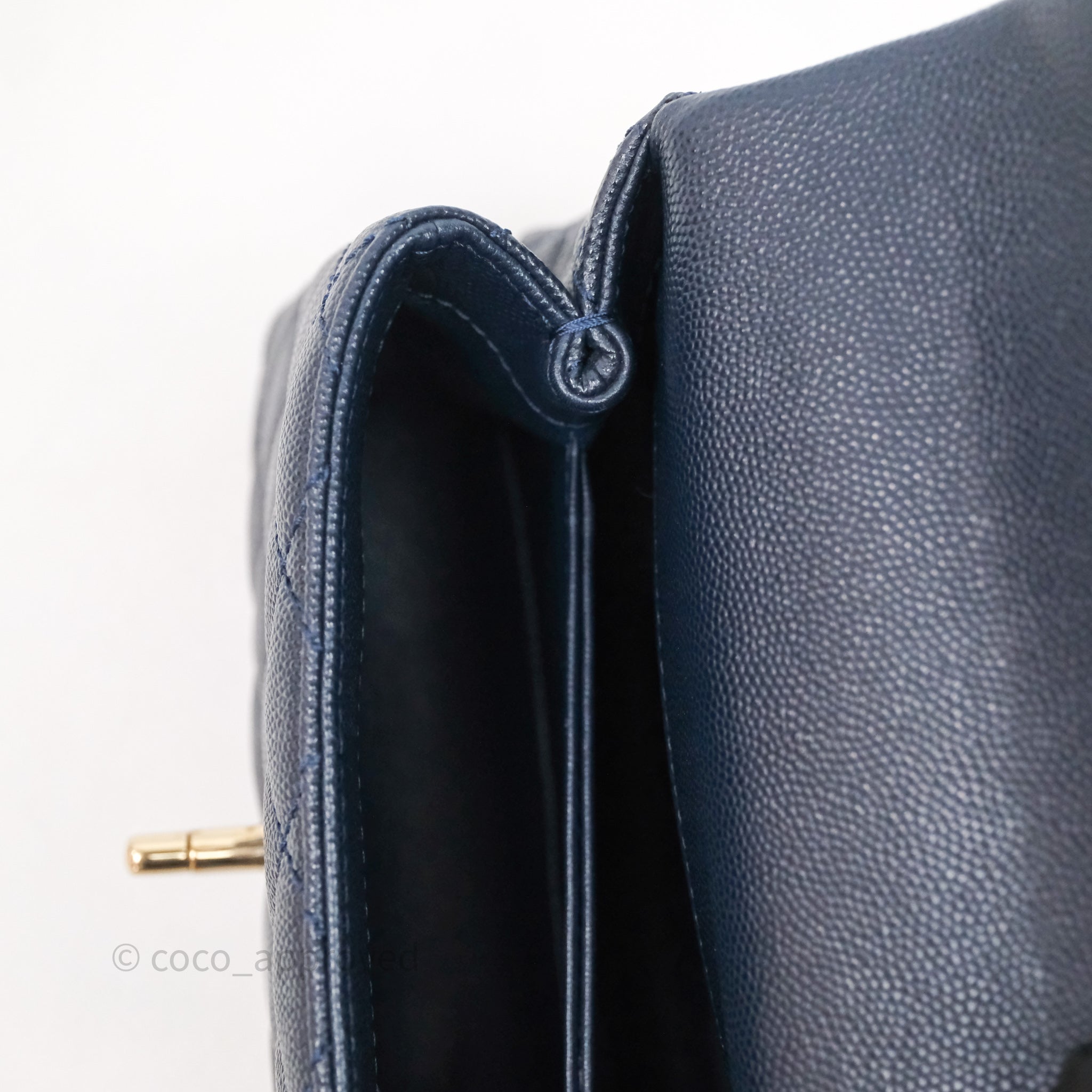 Chanel Mini Coco Handle Quilted Navy Caviar Gold Hardware Lizard Embossed Handle