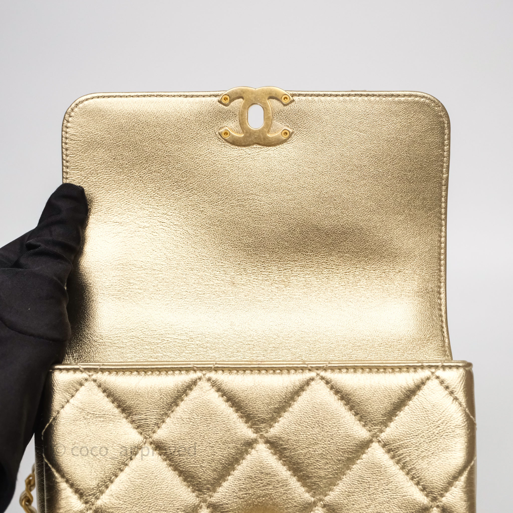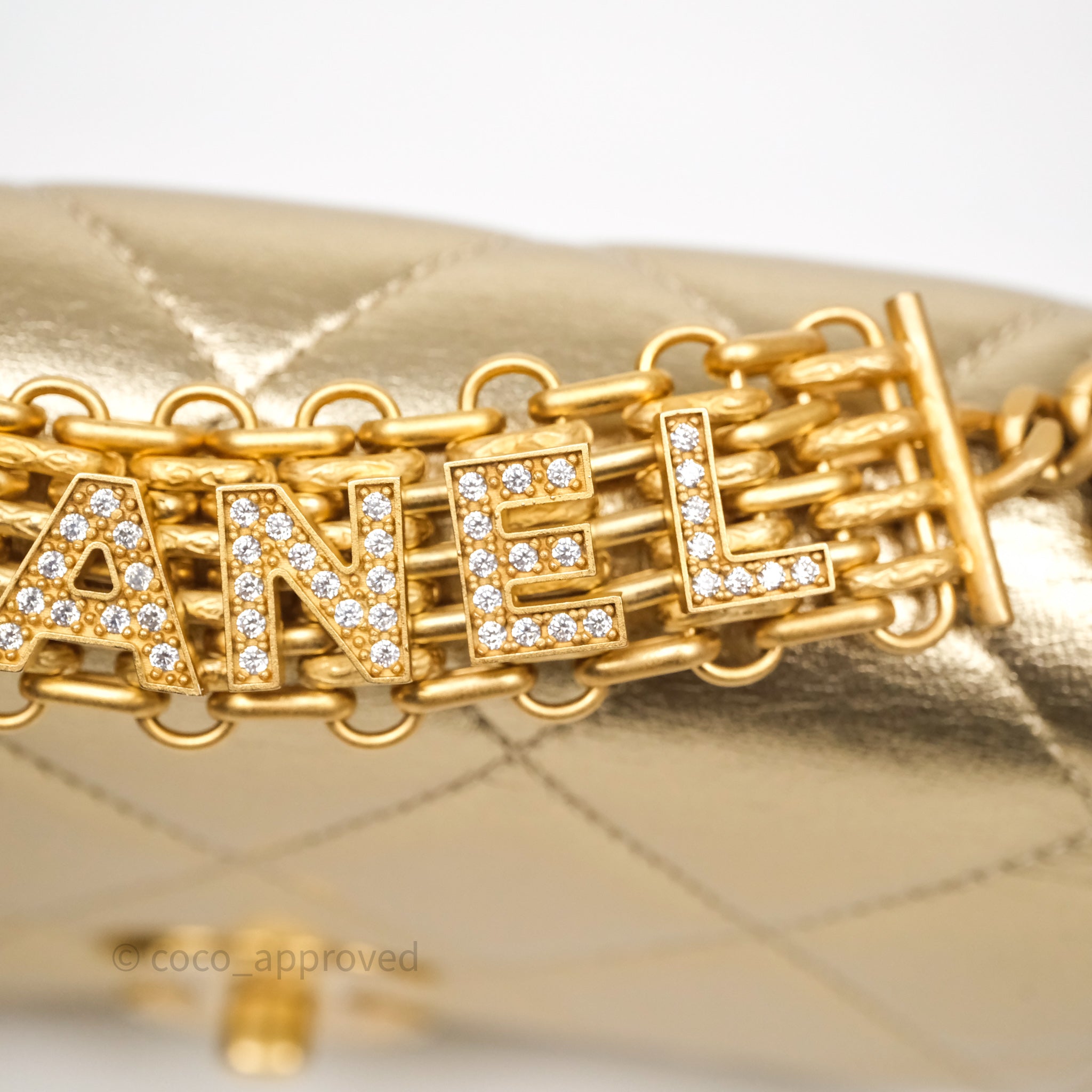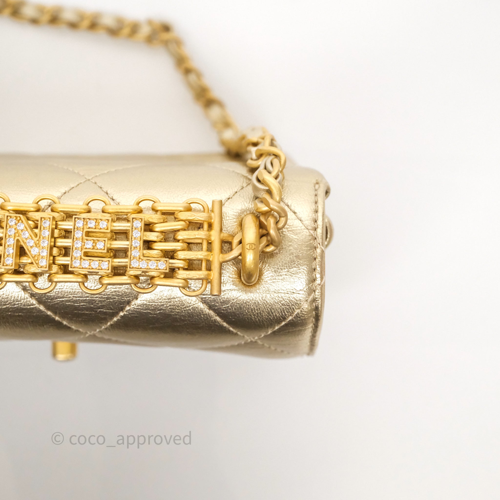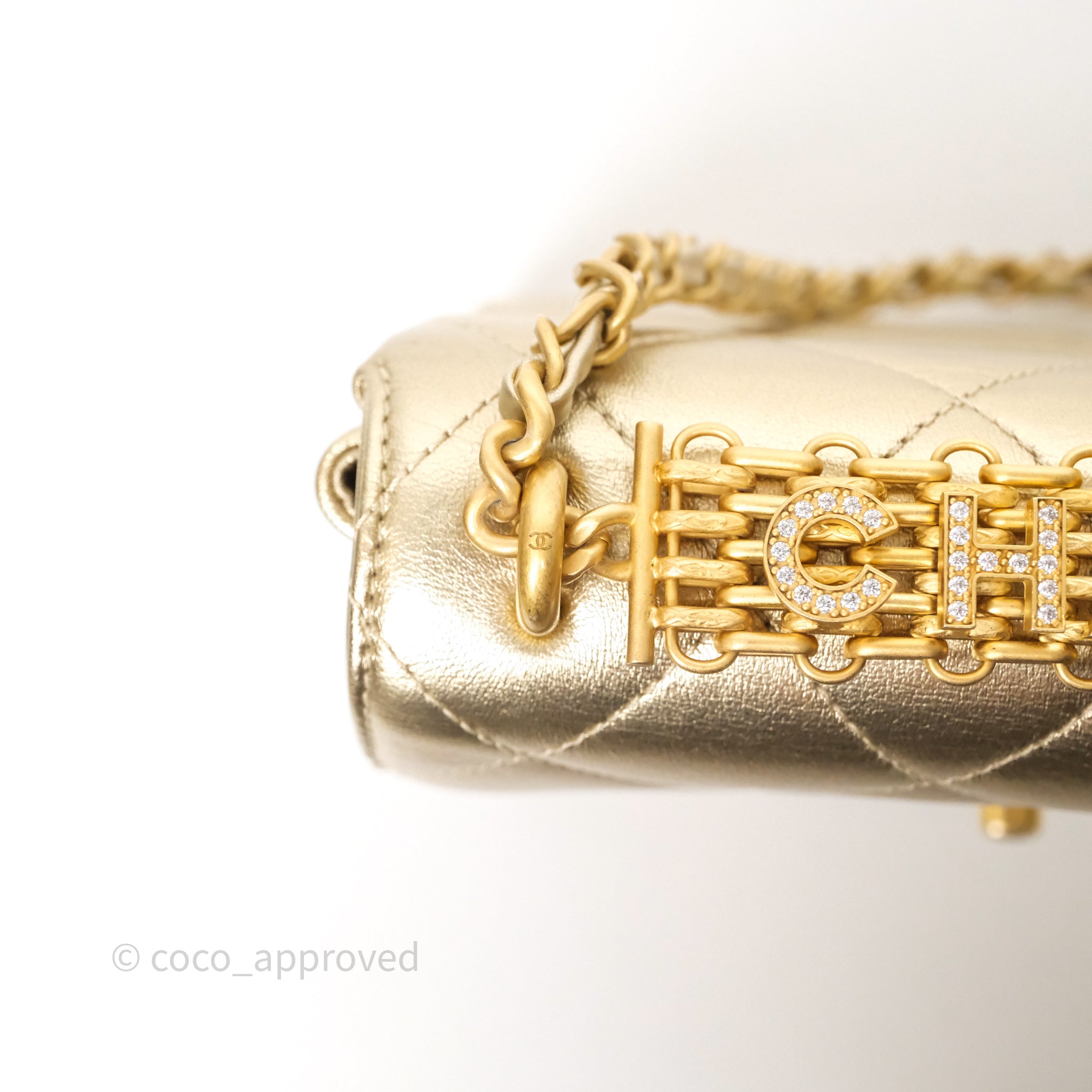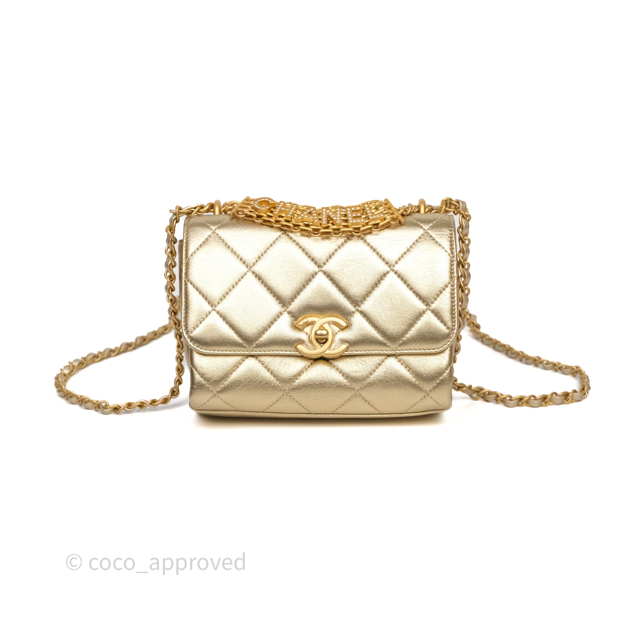 Chanel Mini Crystal Logo Handle Flap Bag Metallic Gold Lambskin 22S