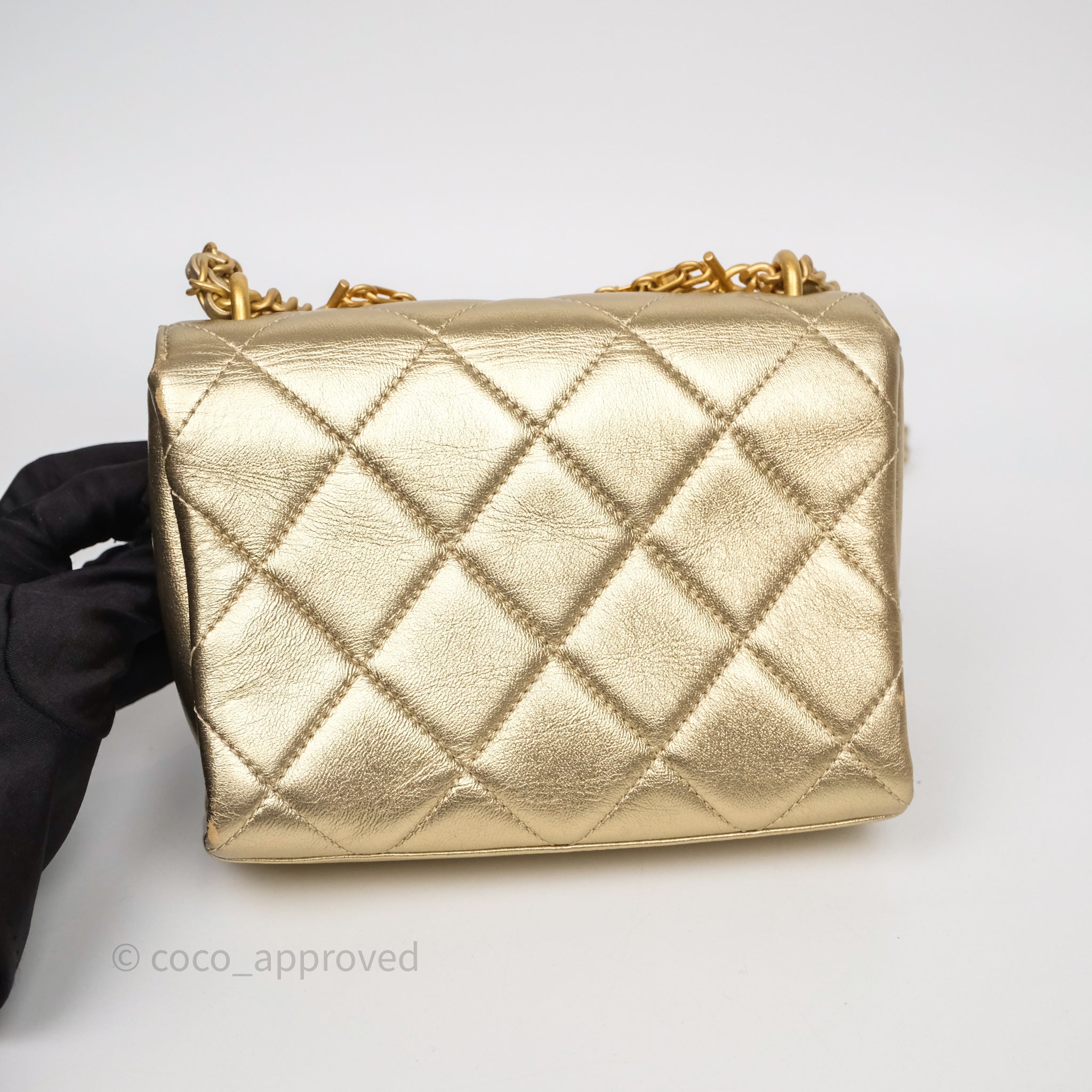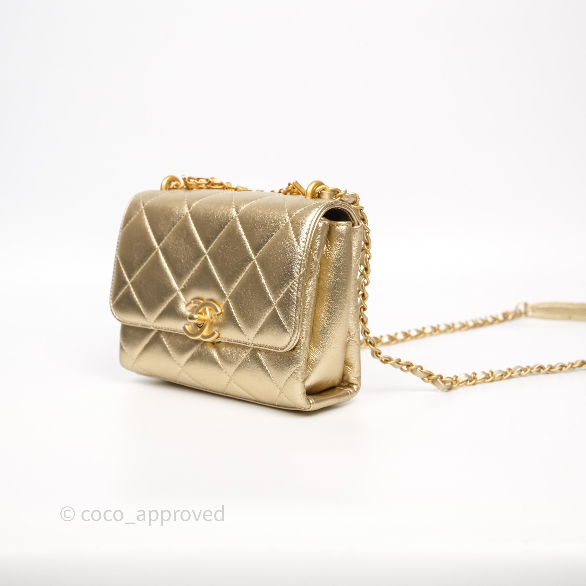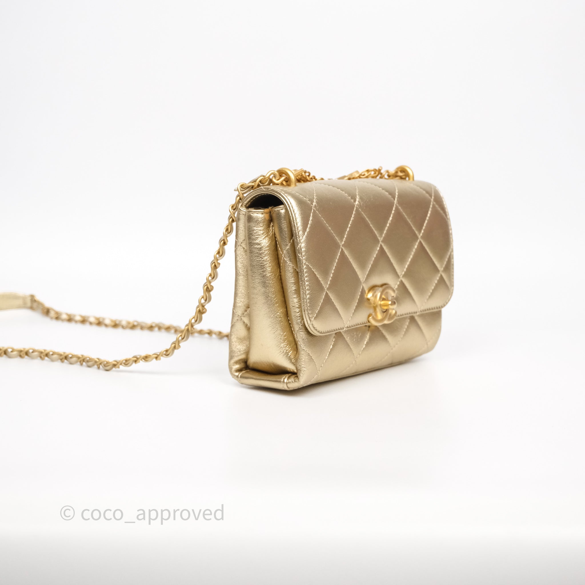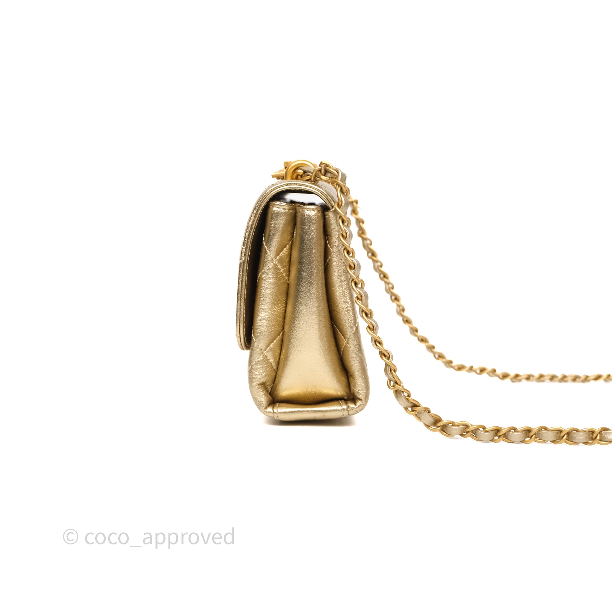 Chanel Mini Crystal Logo Handle Flap Bag Metallic Gold Lambskin 22S