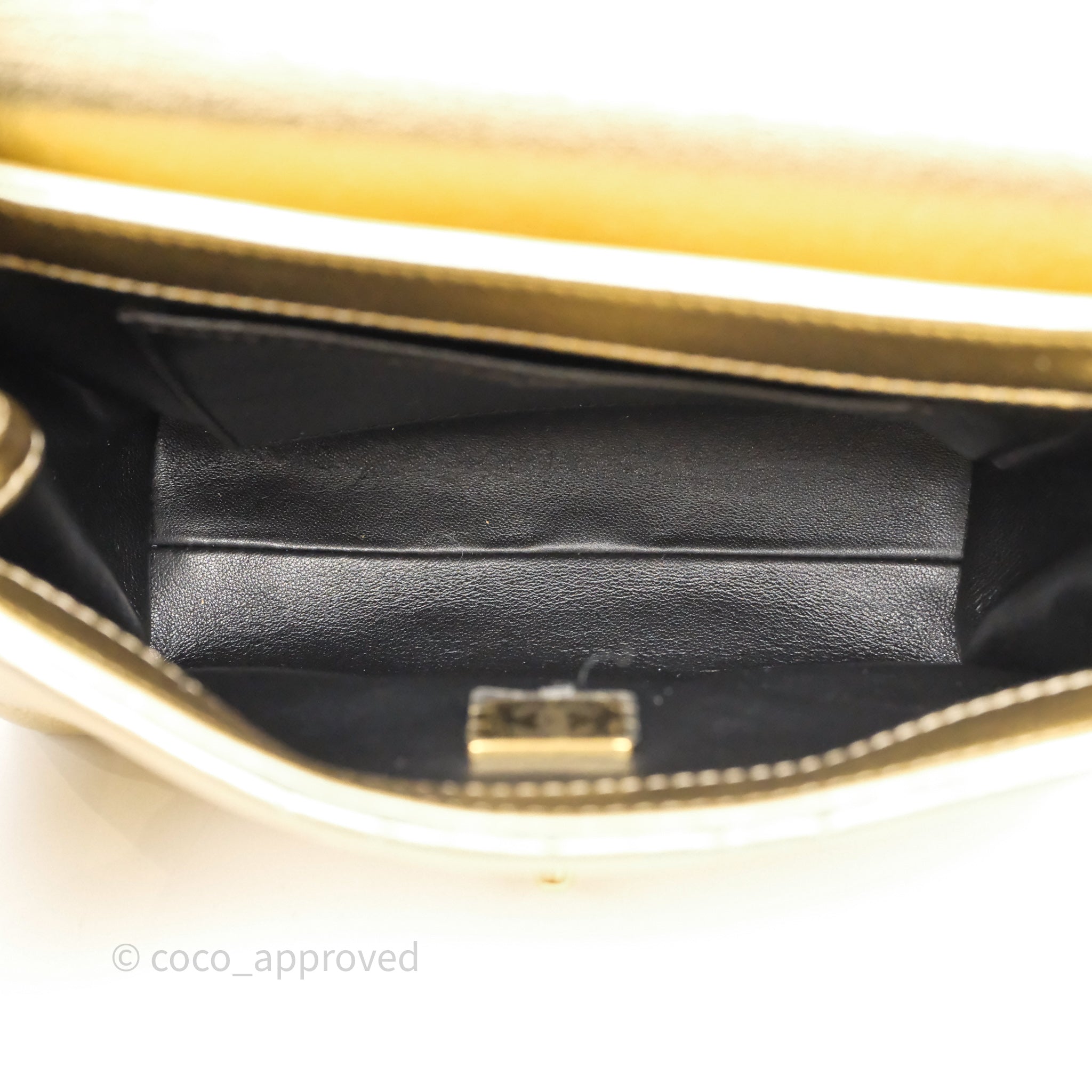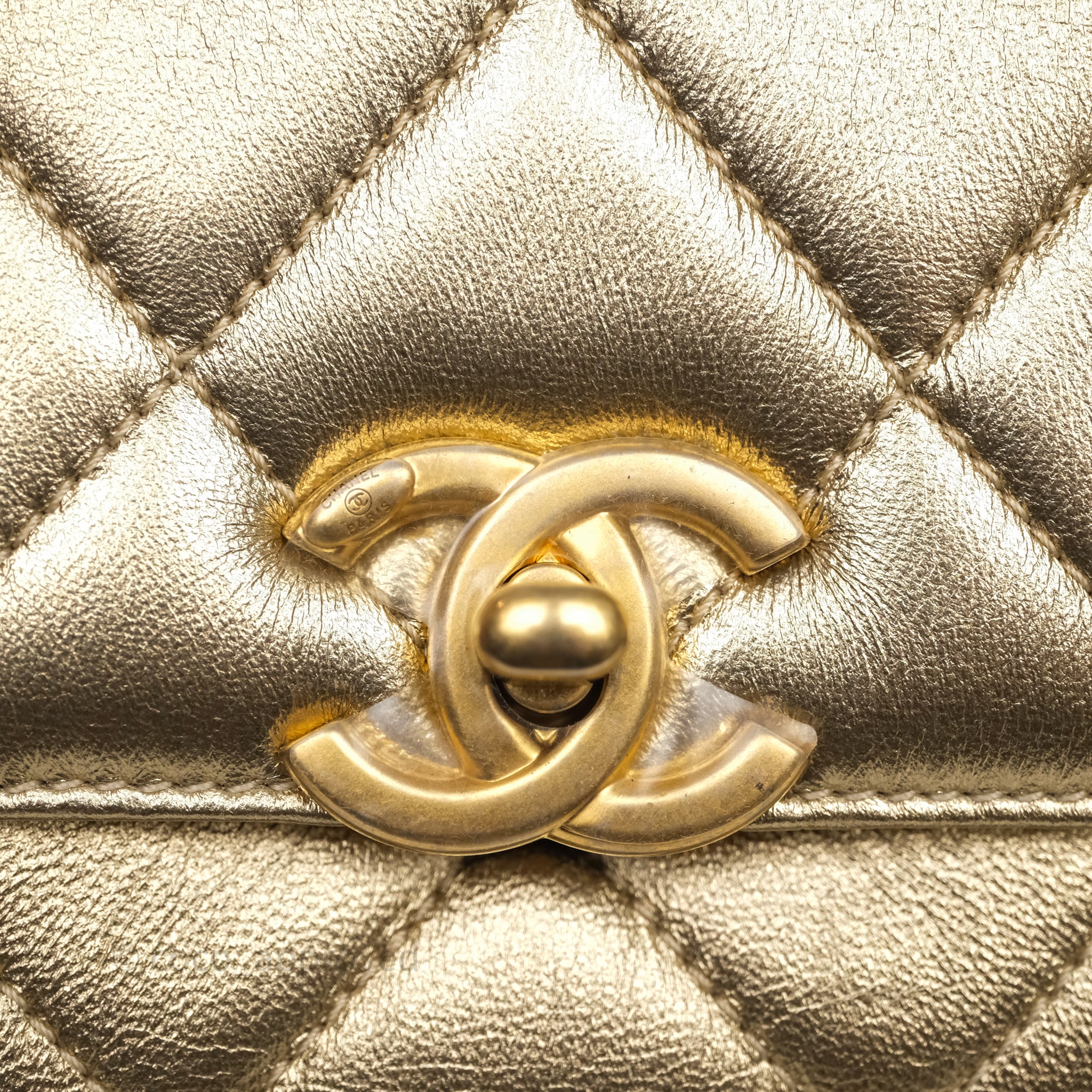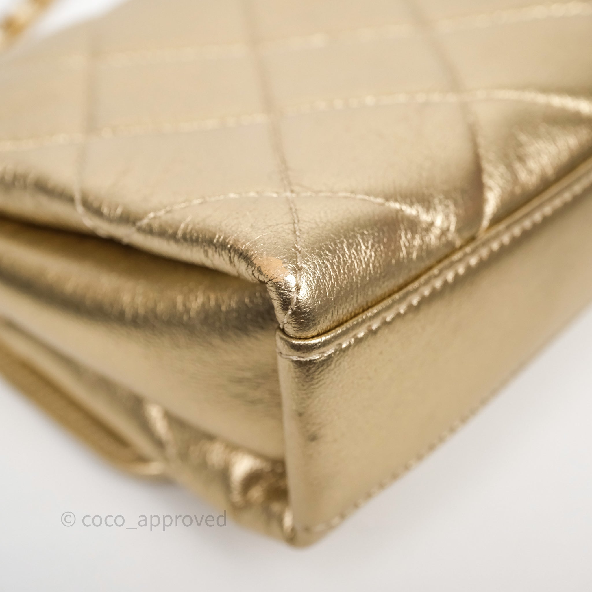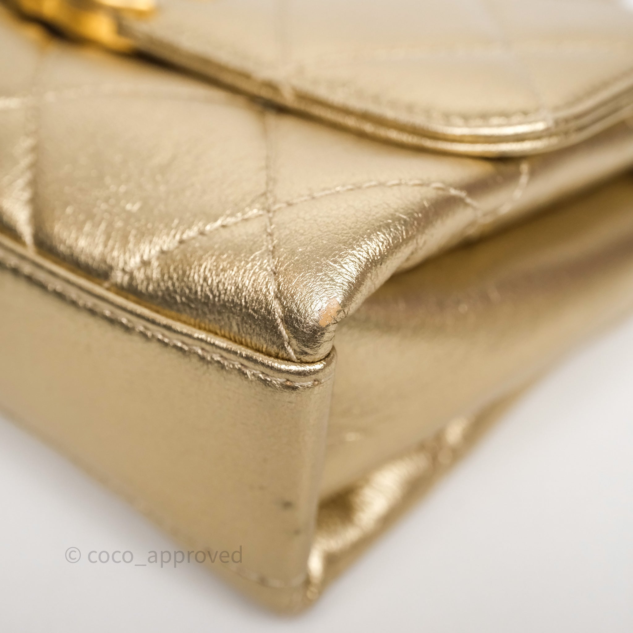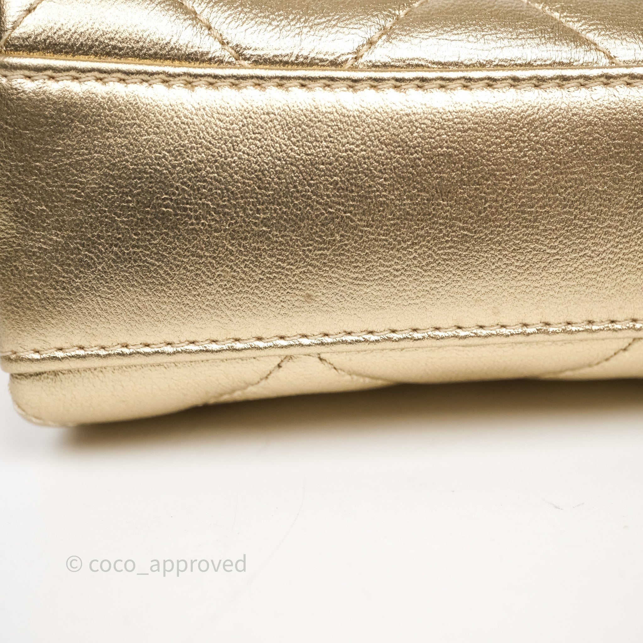 Chanel Mini Crystal Logo Handle Flap Bag Metallic Gold Lambskin 22S
