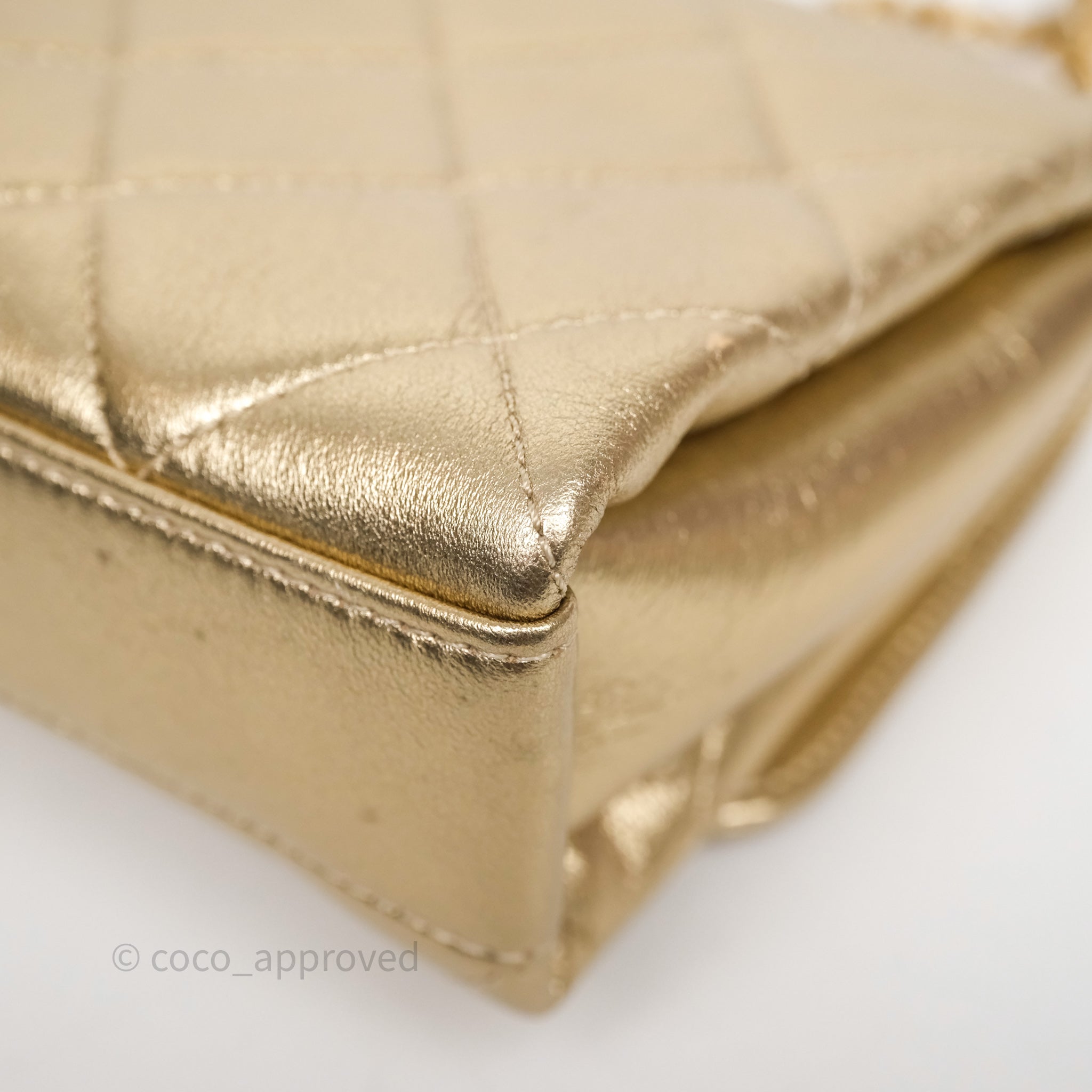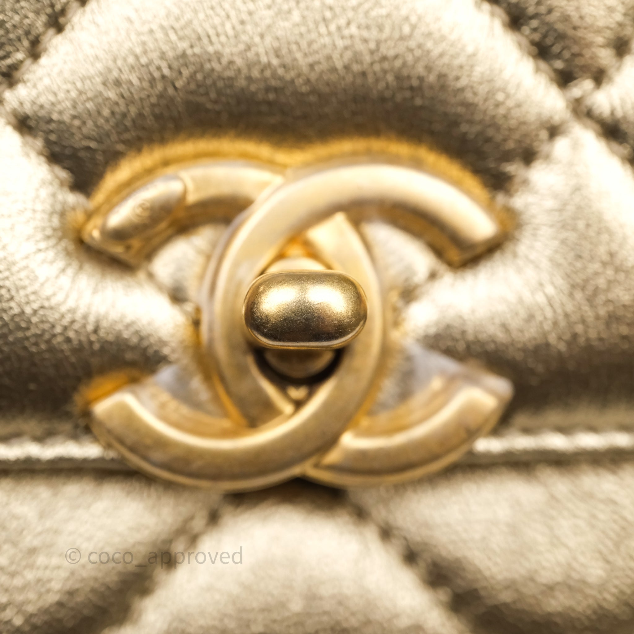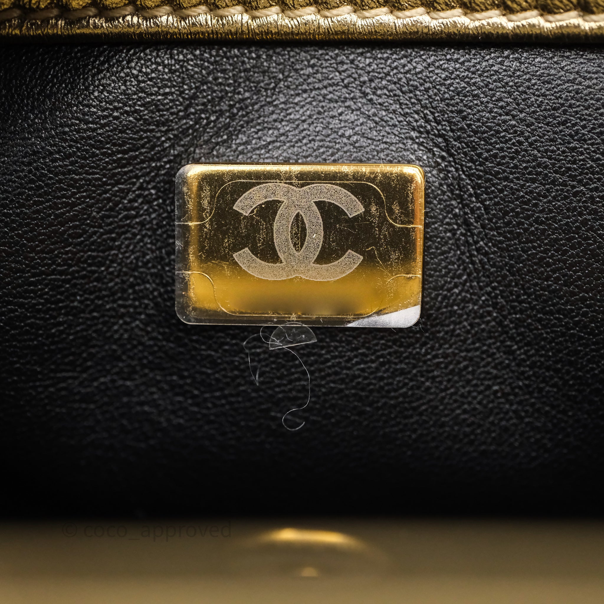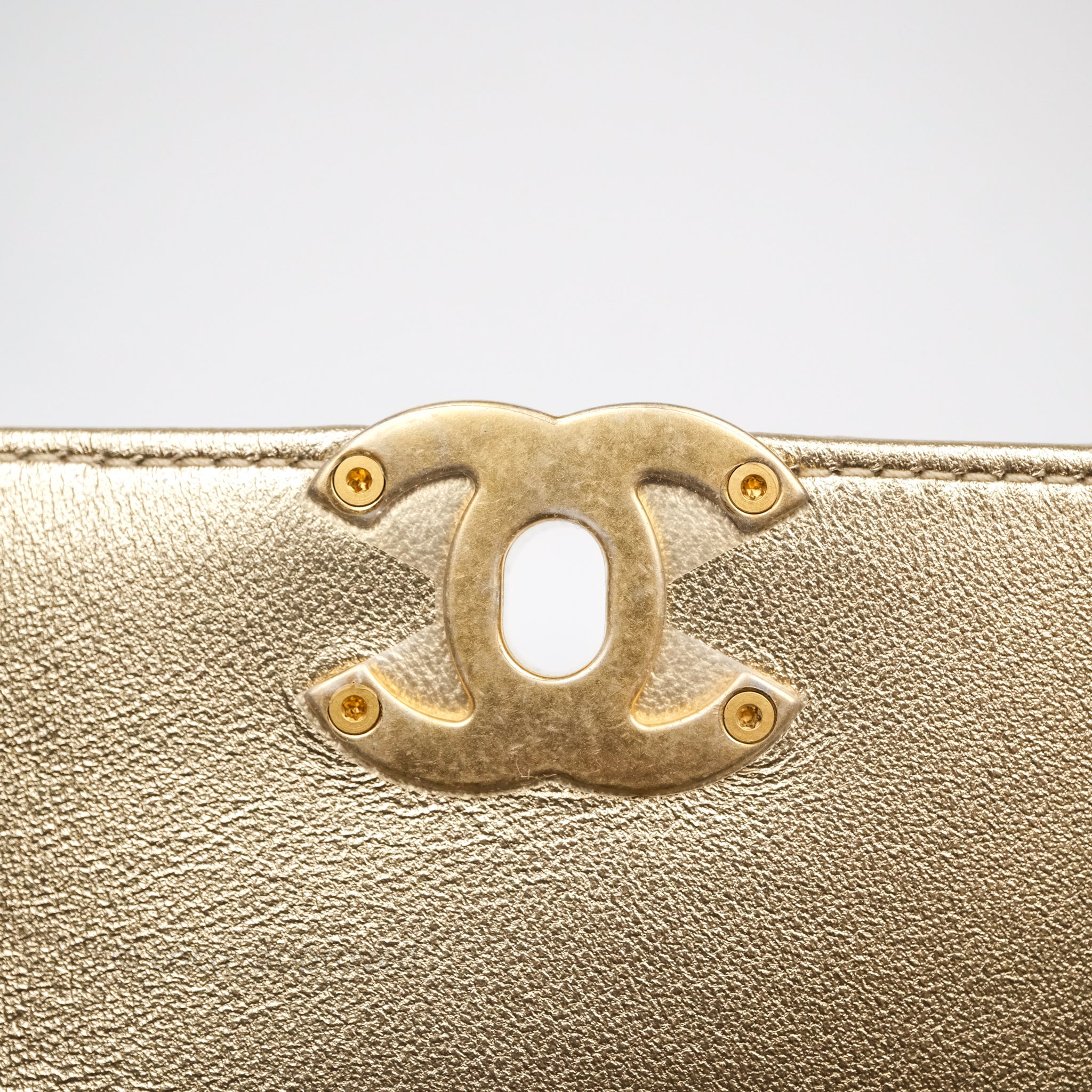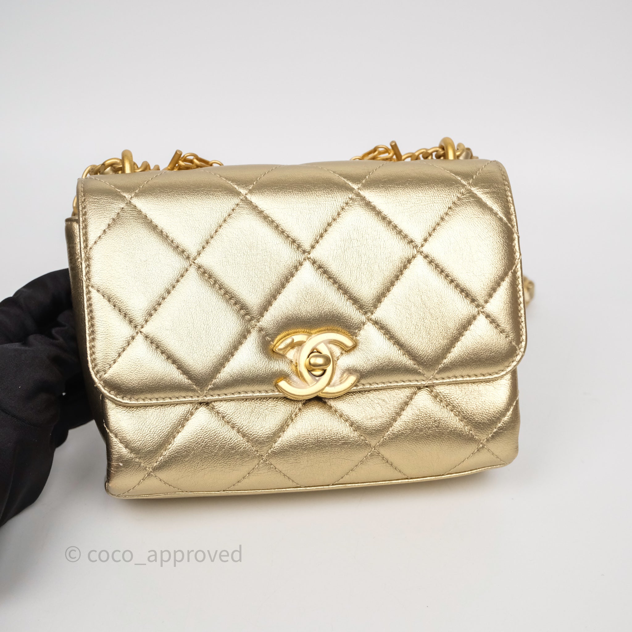 Chanel Mini Crystal Logo Handle Flap Bag Metallic Gold Lambskin 22S
