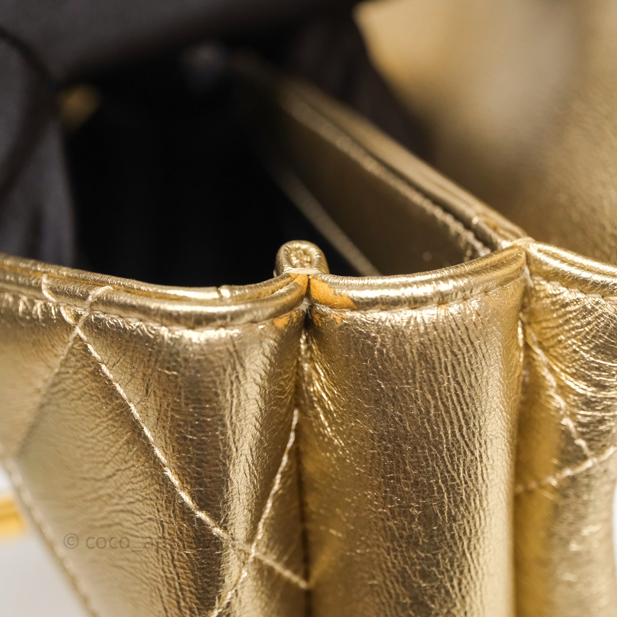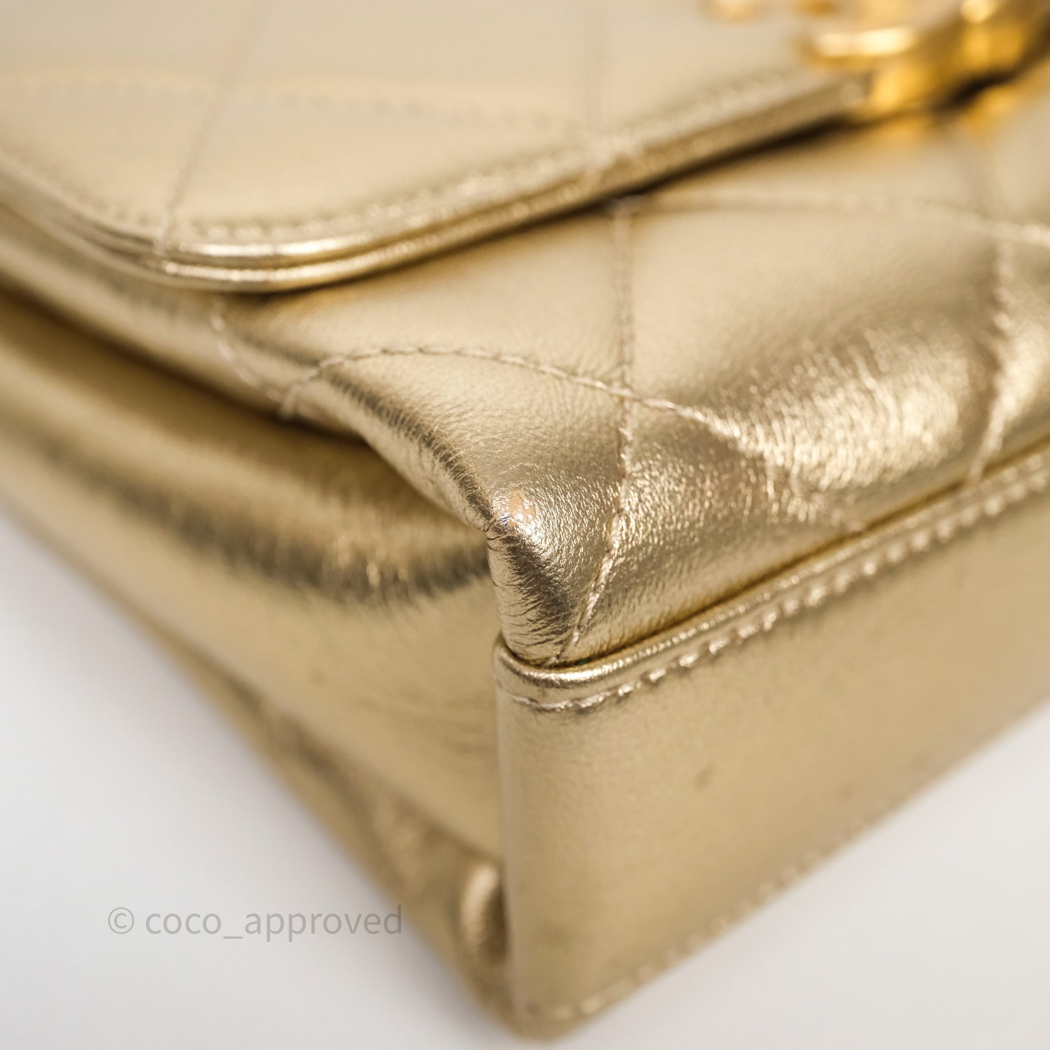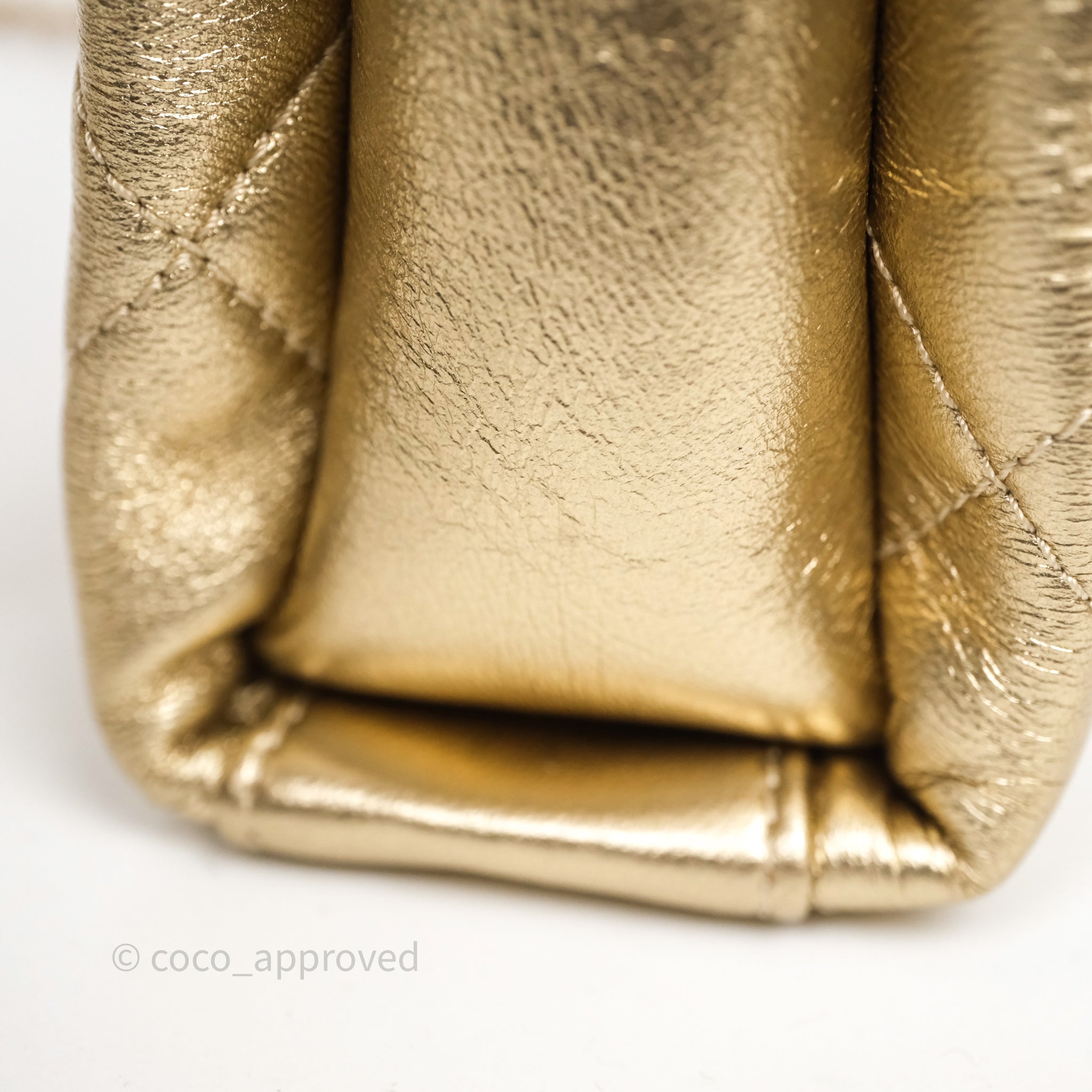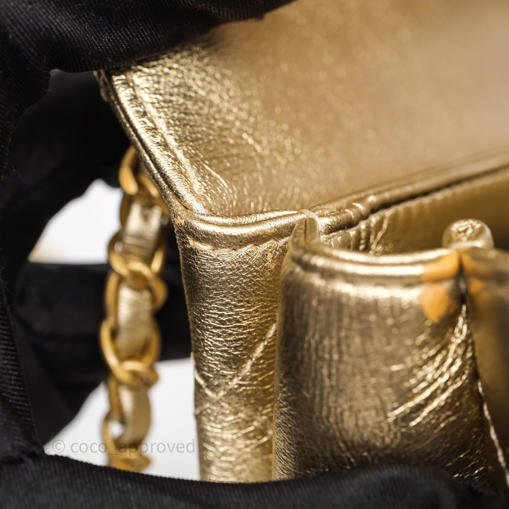 Chanel Mini Crystal Logo Handle Flap Bag Metallic Gold Lambskin 22S