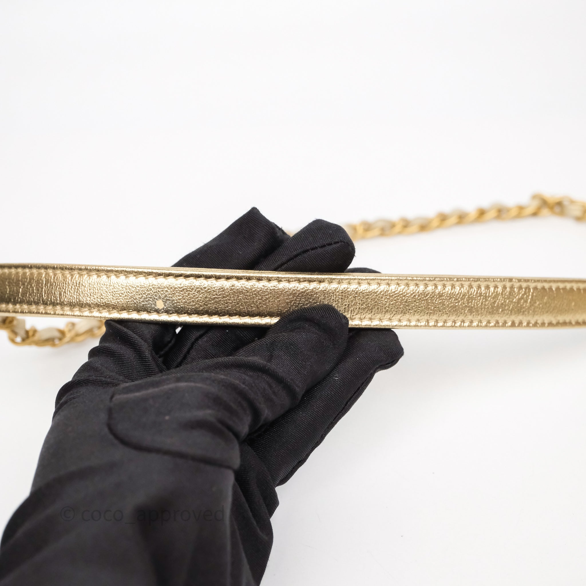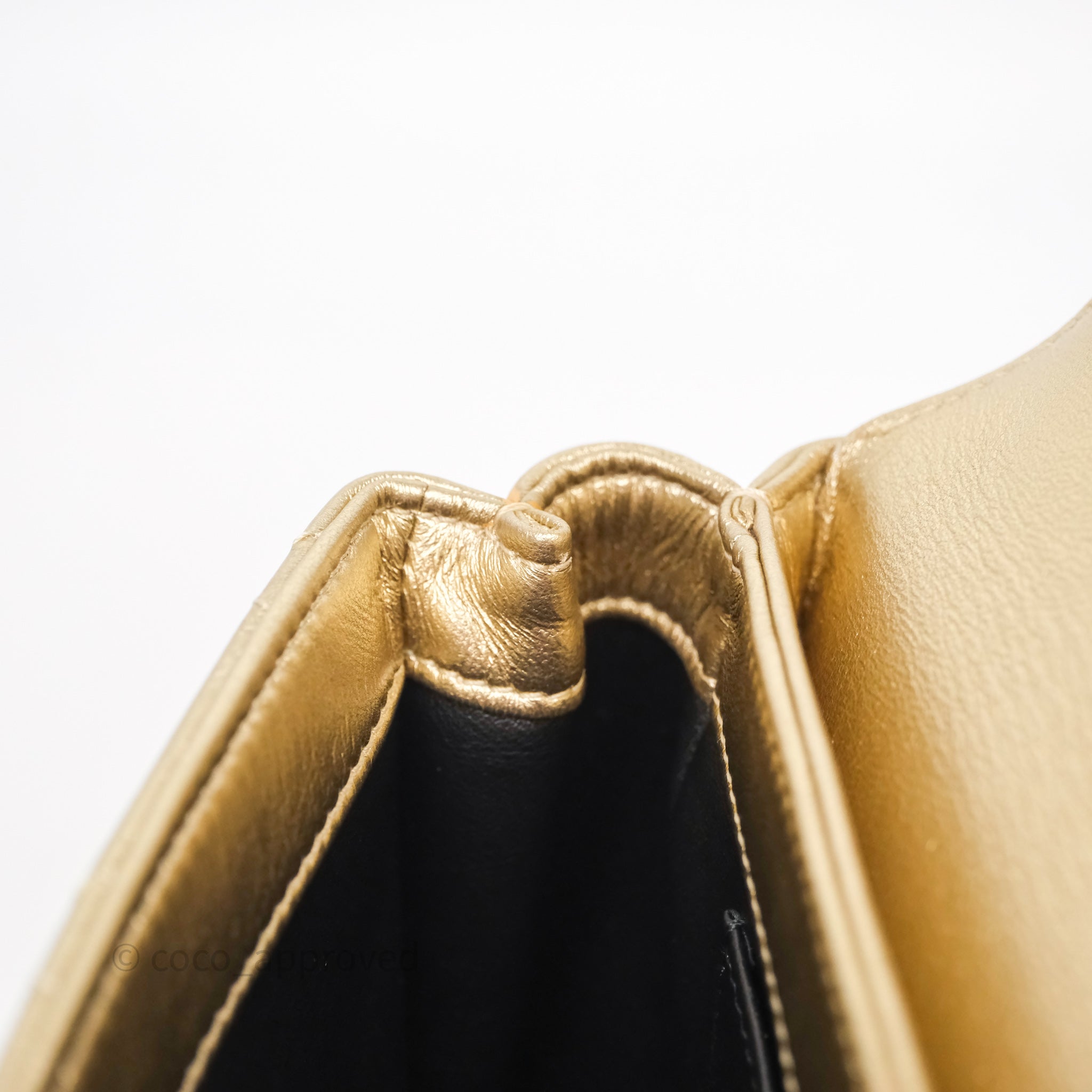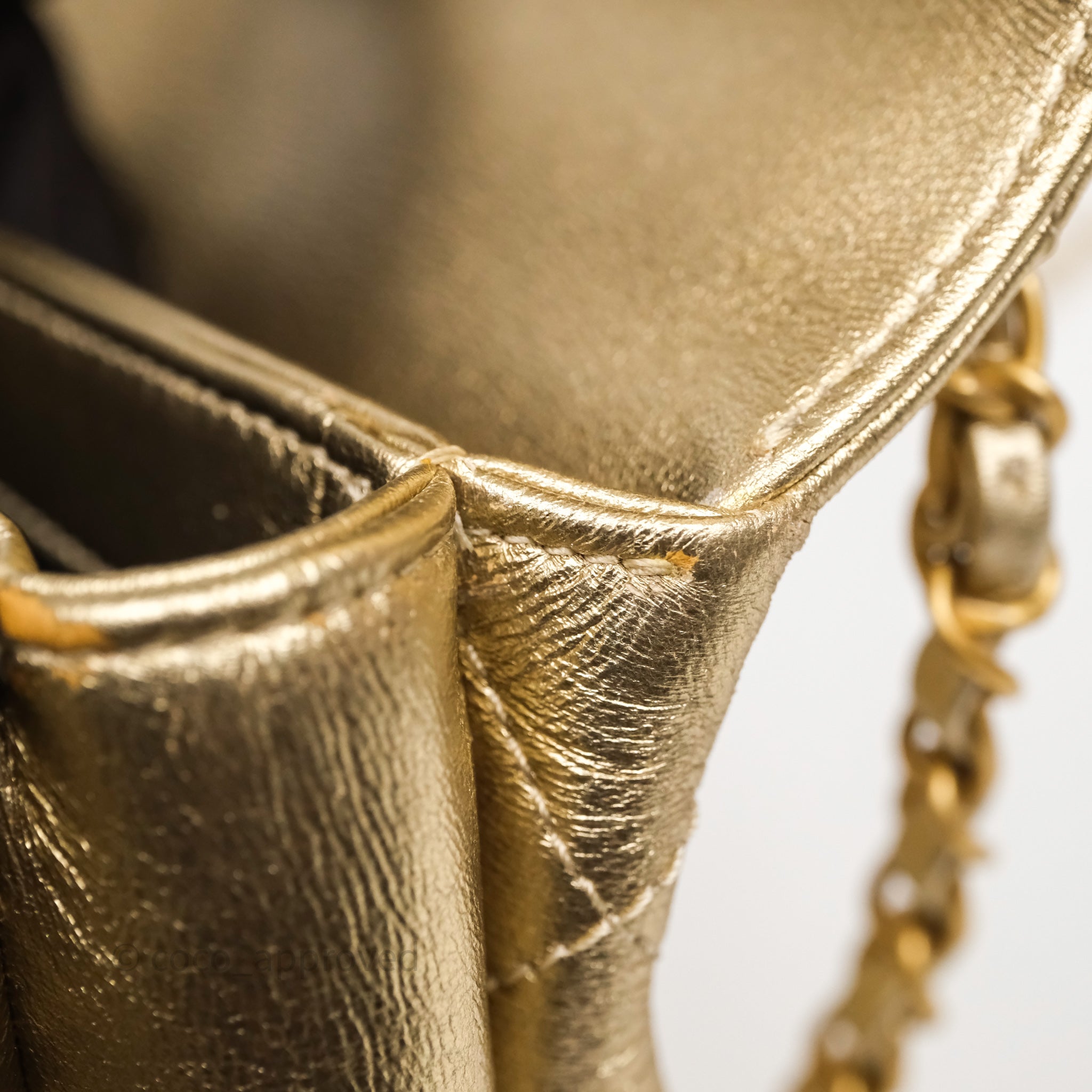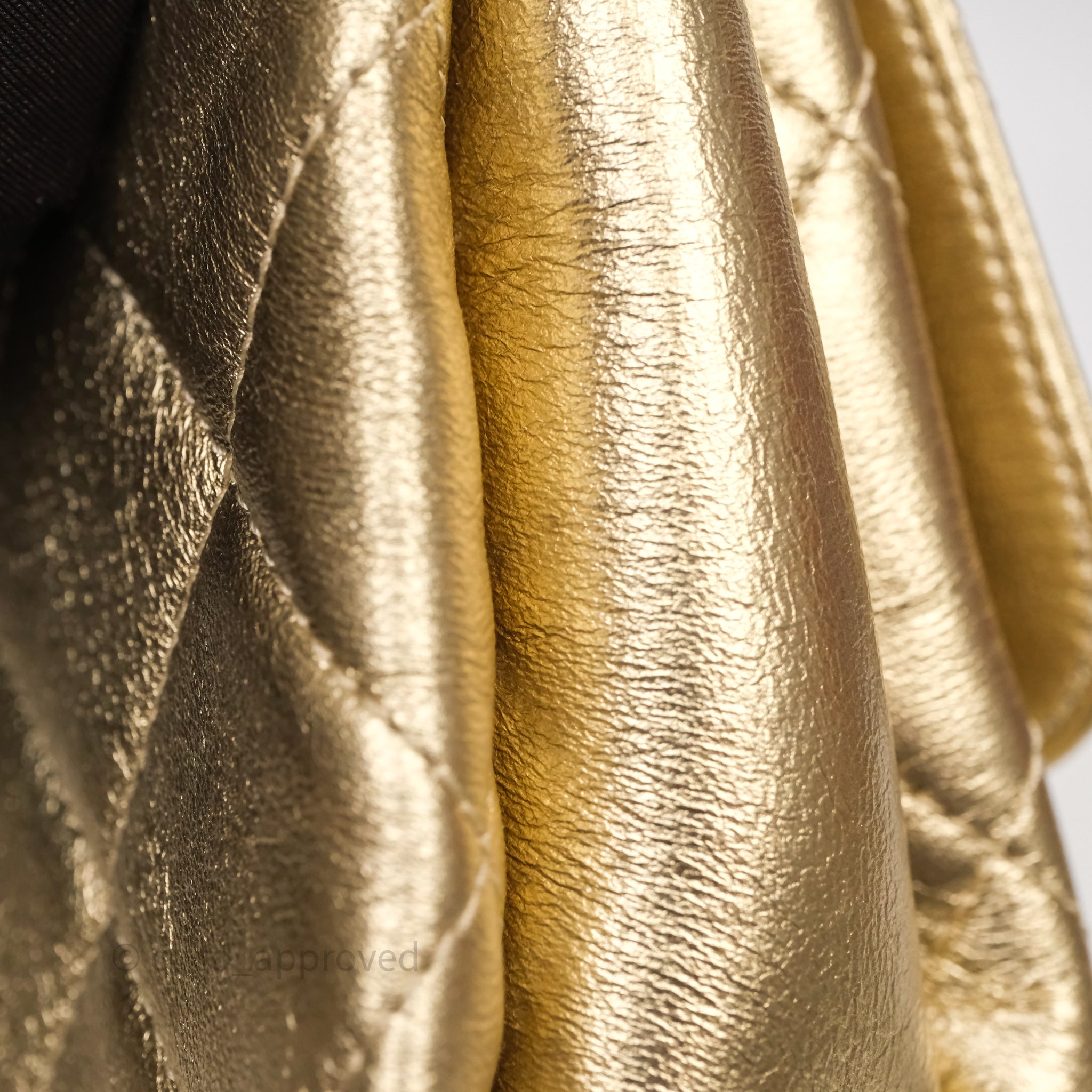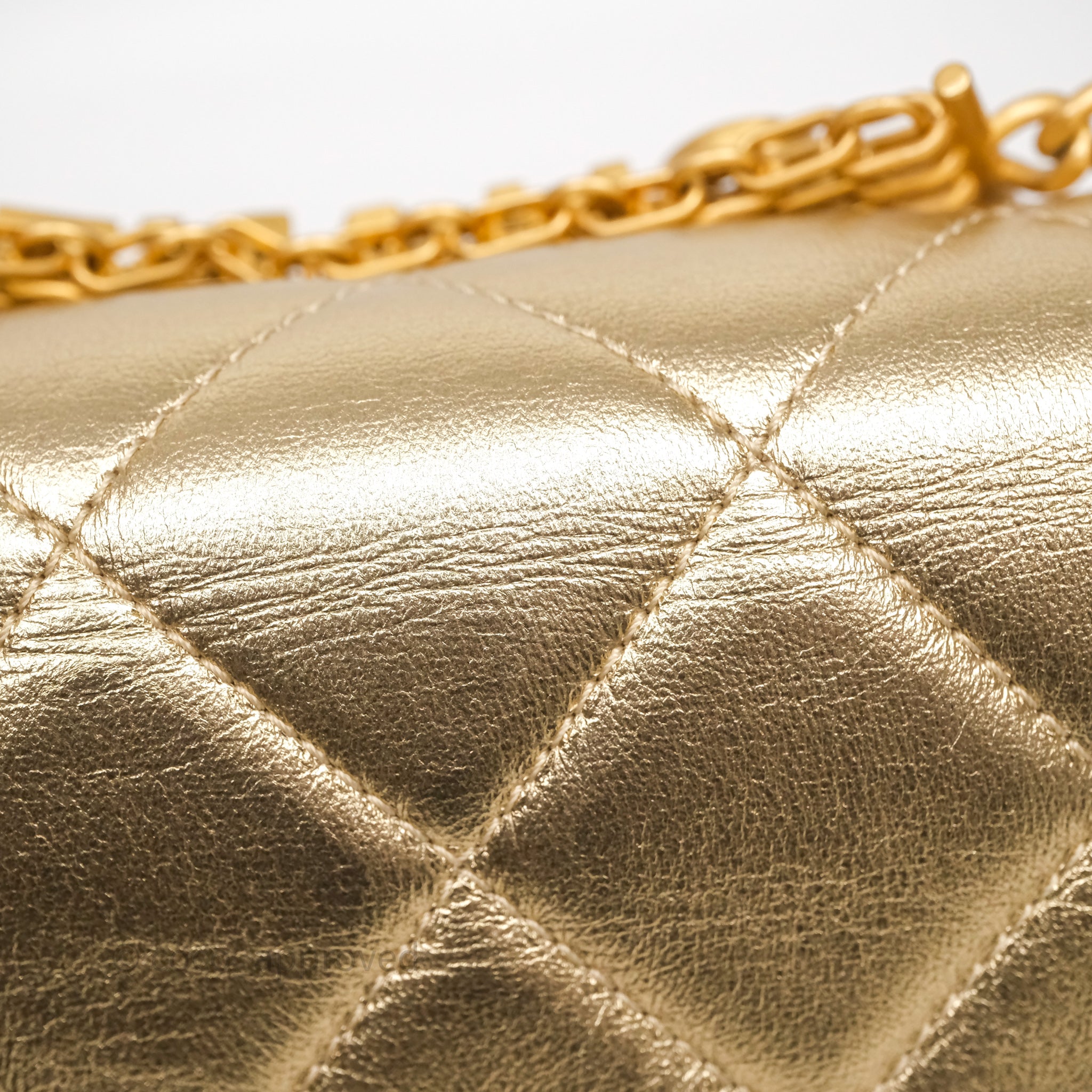 Chanel Mini Crystal Logo Handle Flap Bag Metallic Gold Lambskin 22S